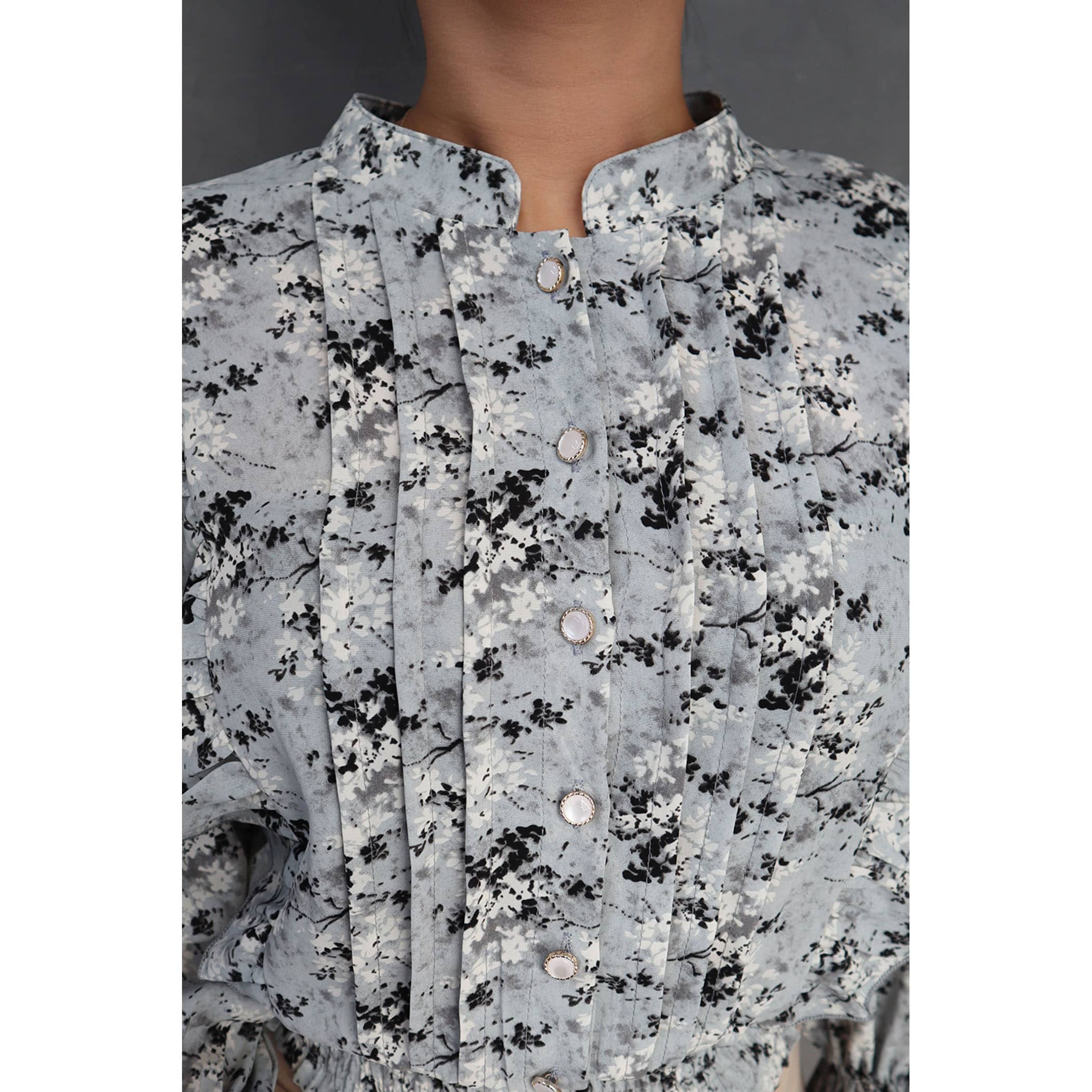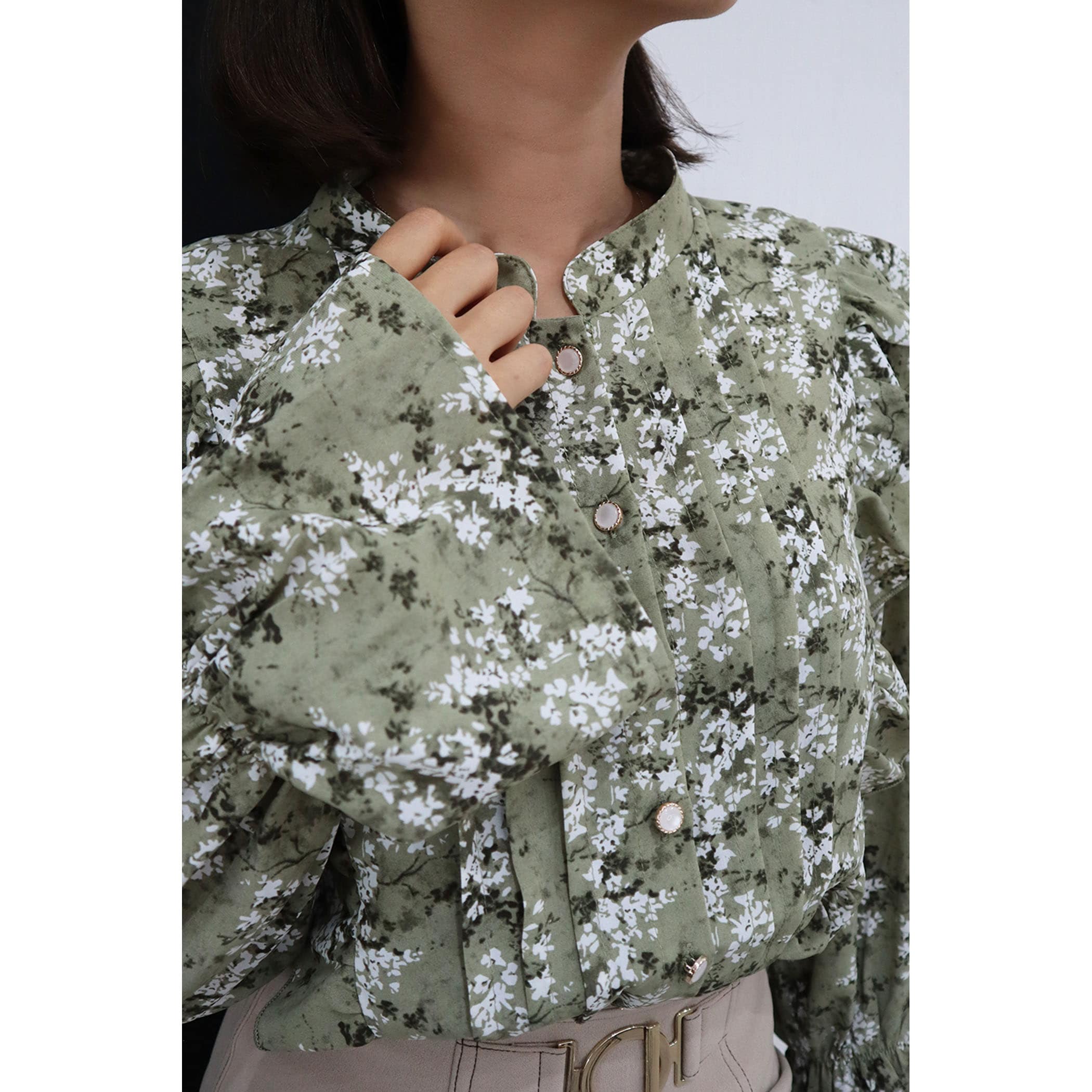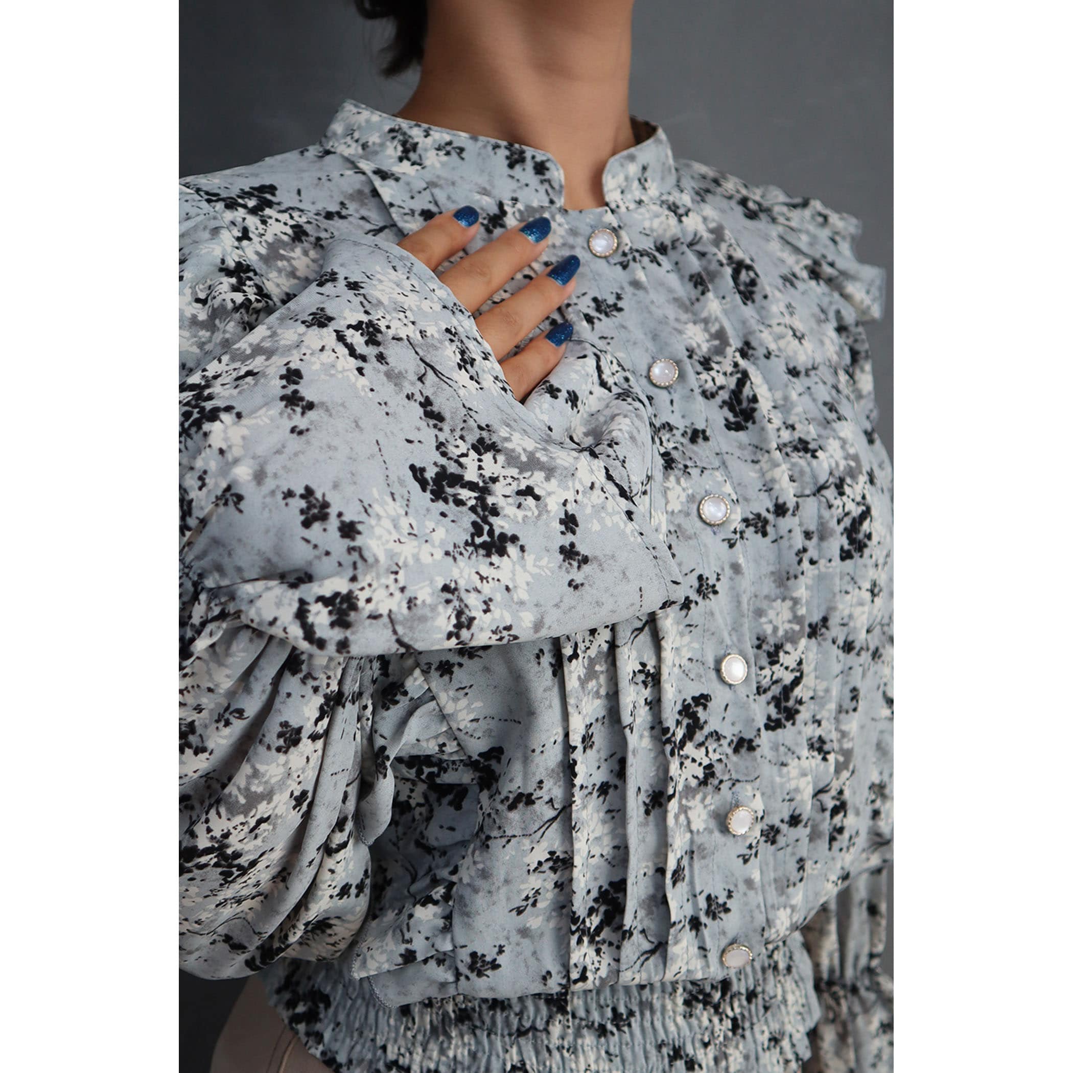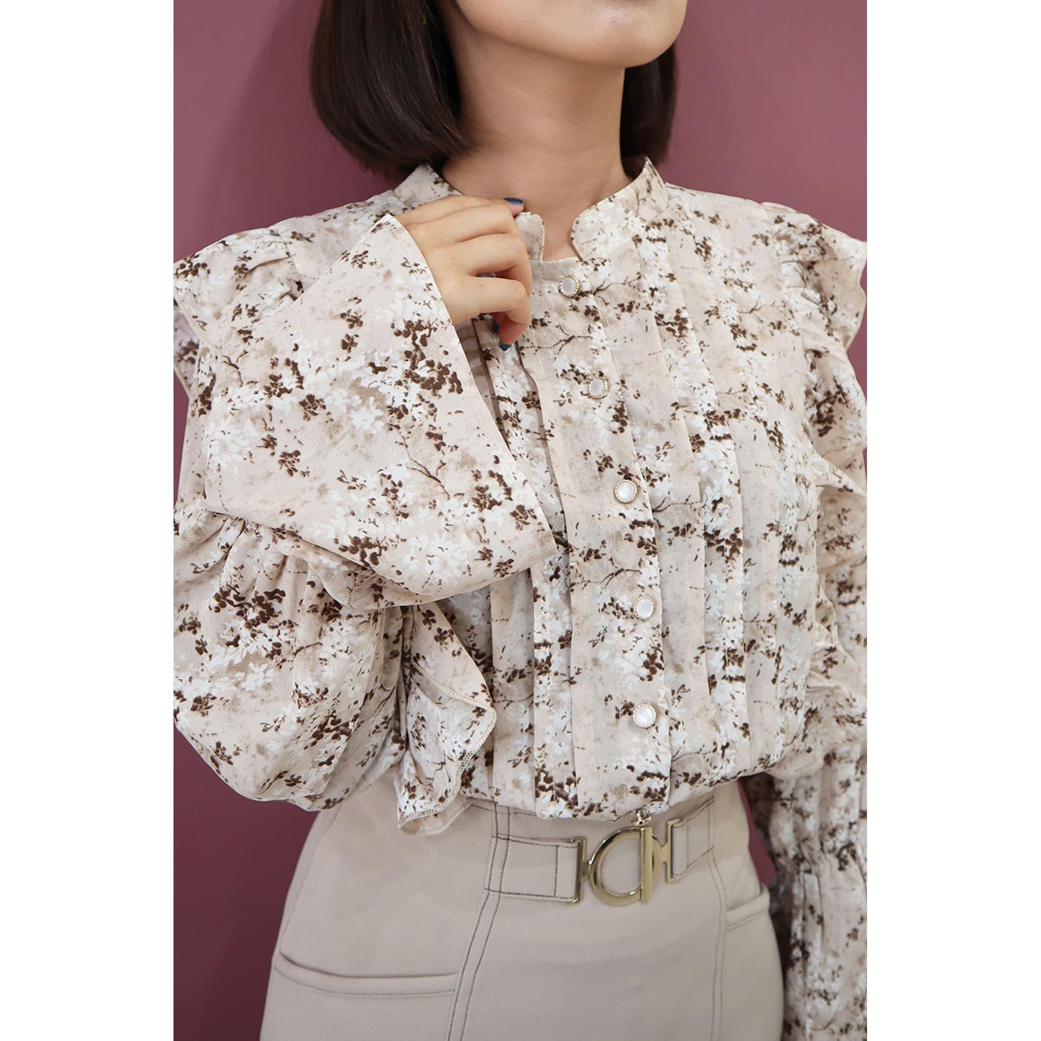 フレアデザインとキャンディースリーブがフェミニンムードを演出してくれる花柄プリントのブラウス。パールボタンもとってもキュート?ウエストのシャーリングがアクセントになっており、ウエストを細く見せてくれます。パンツスタイルにもスカートスタイルにも幅広く着用できる万能アイテムです♪