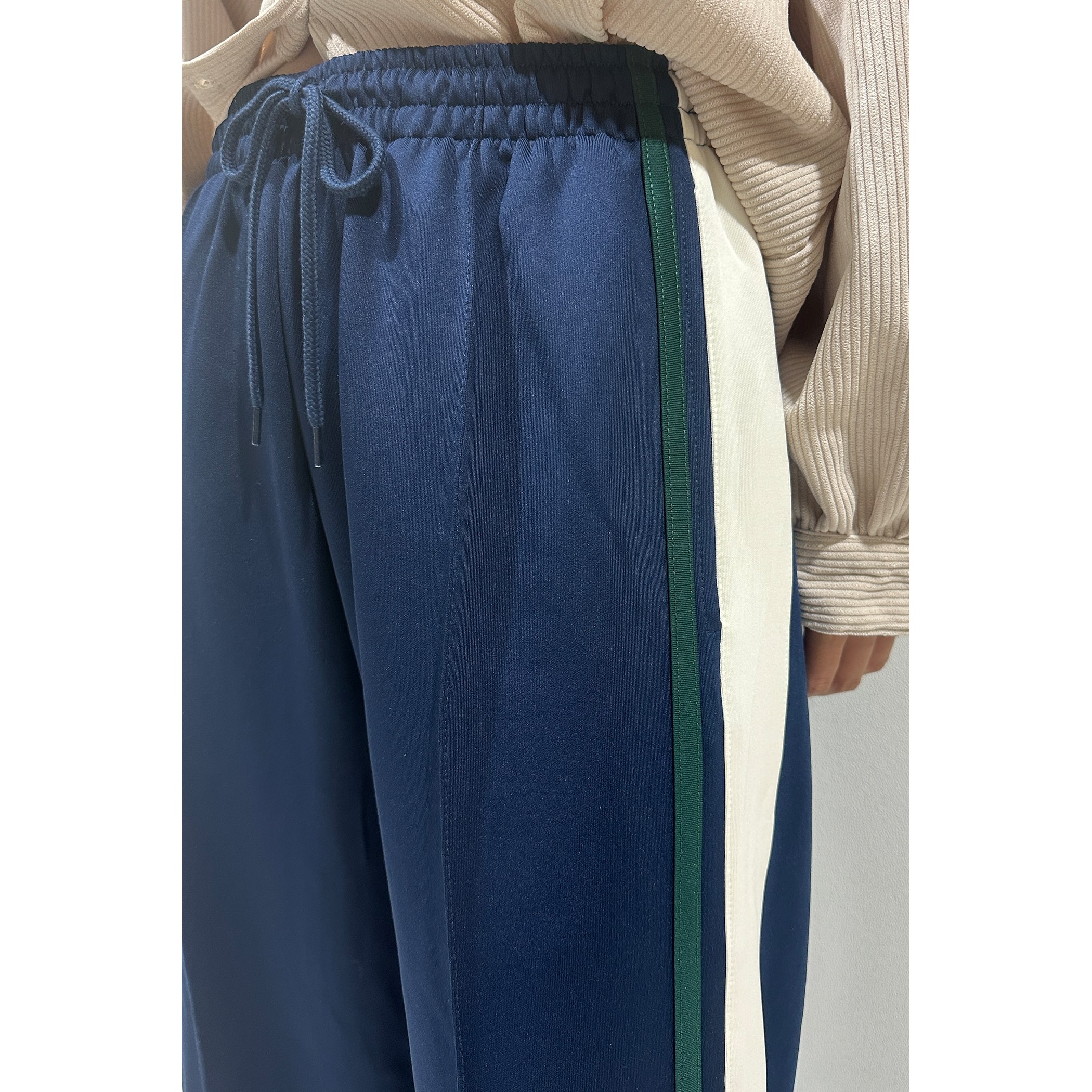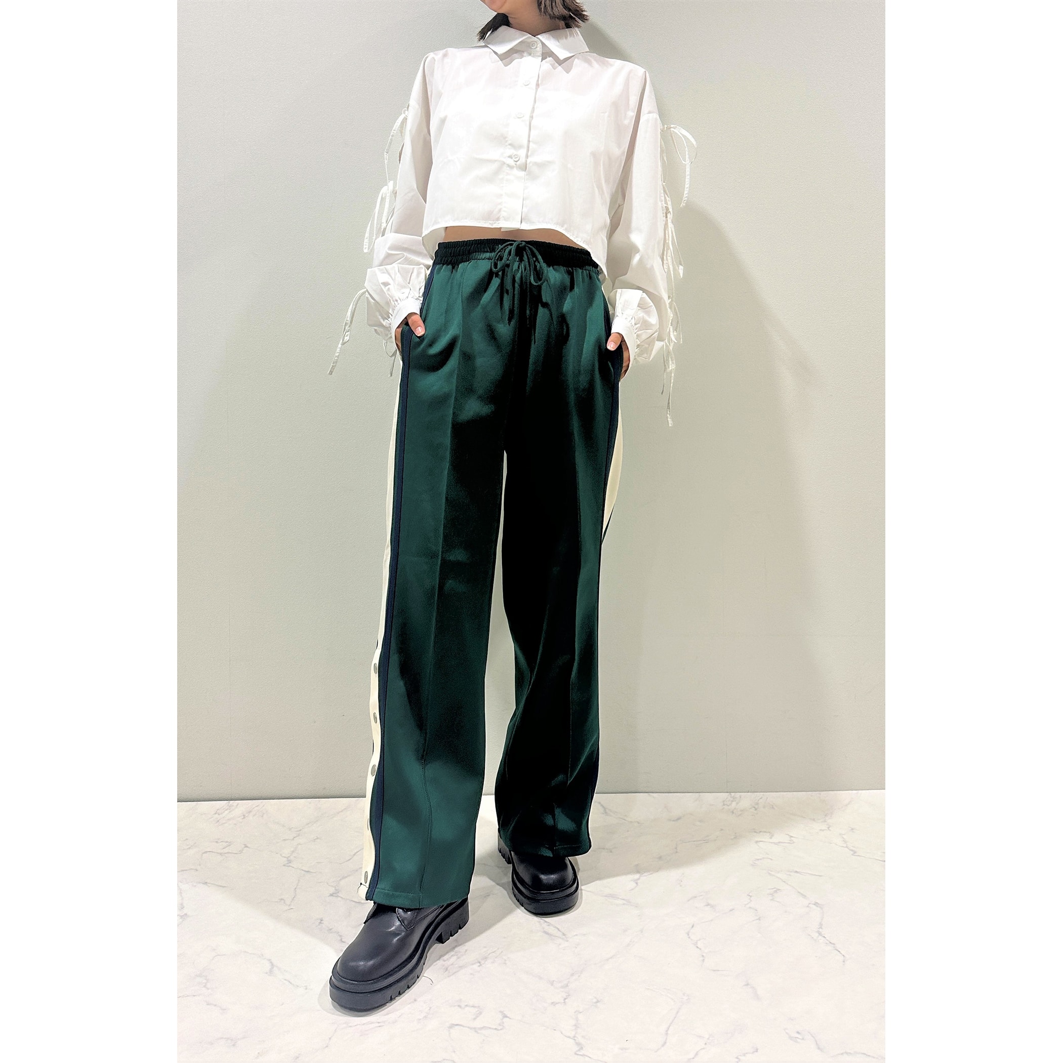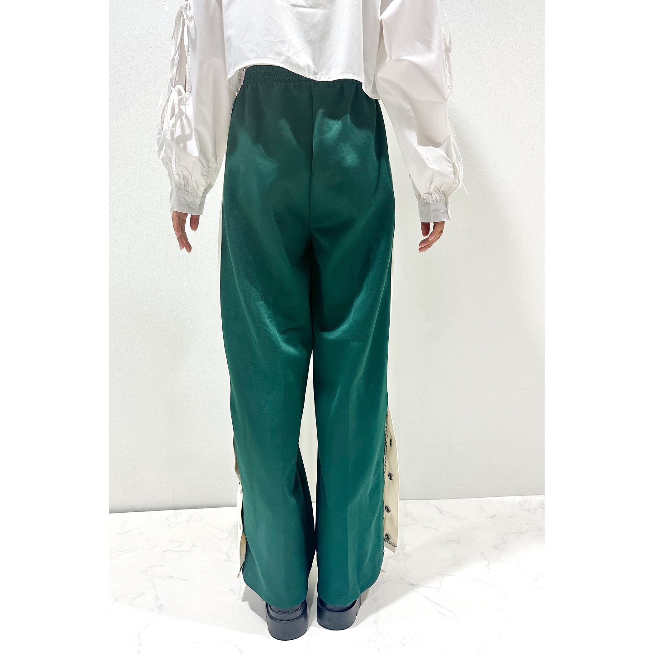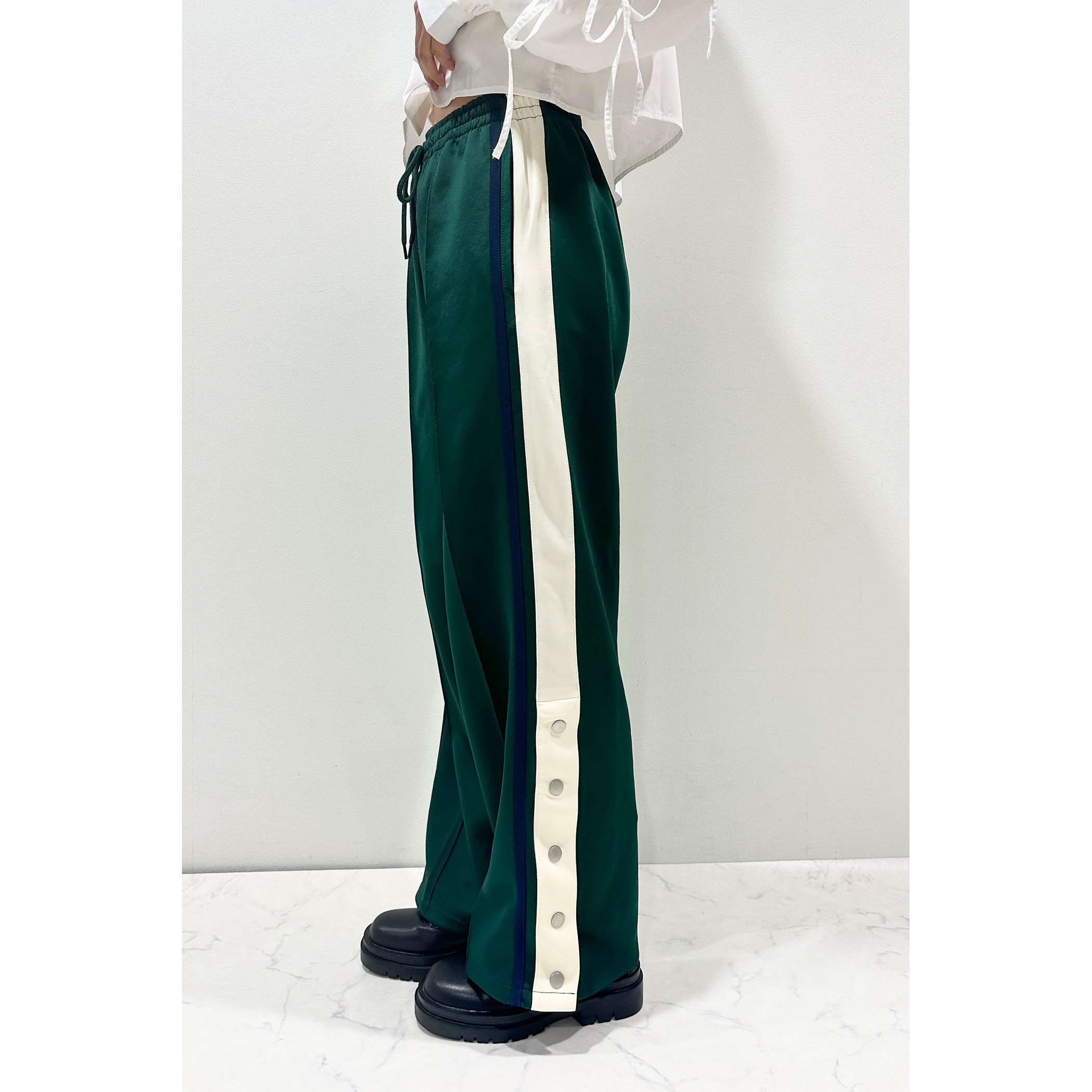 トレンドのラインパンツは幅広いコーデに合わせやすい1着。ワイドシルエットが抜け感のあるストリートスタイルを演出。裾にはボタンが付いているので、フレアシルエットも楽しめる2WAY仕様。ウエストはゴムなので履き心地抜群◎