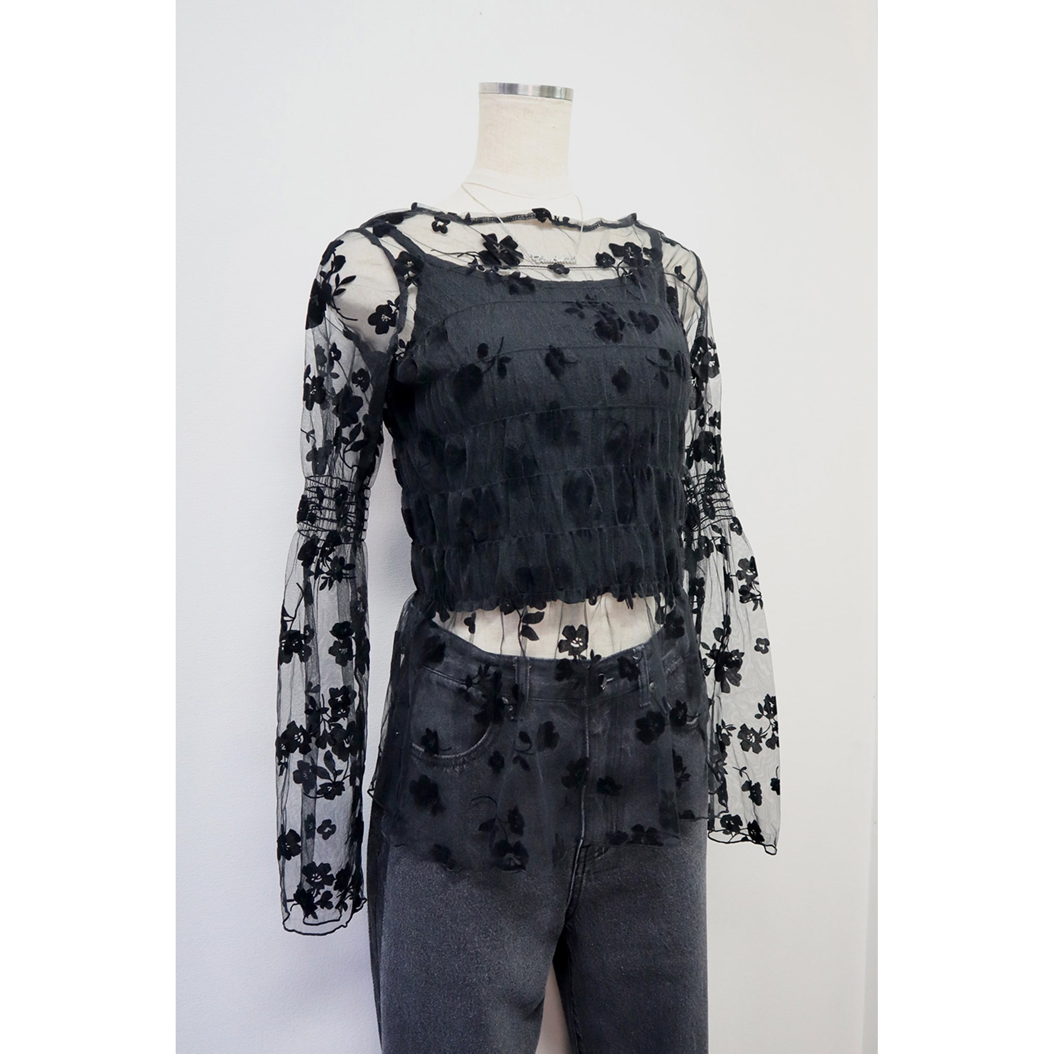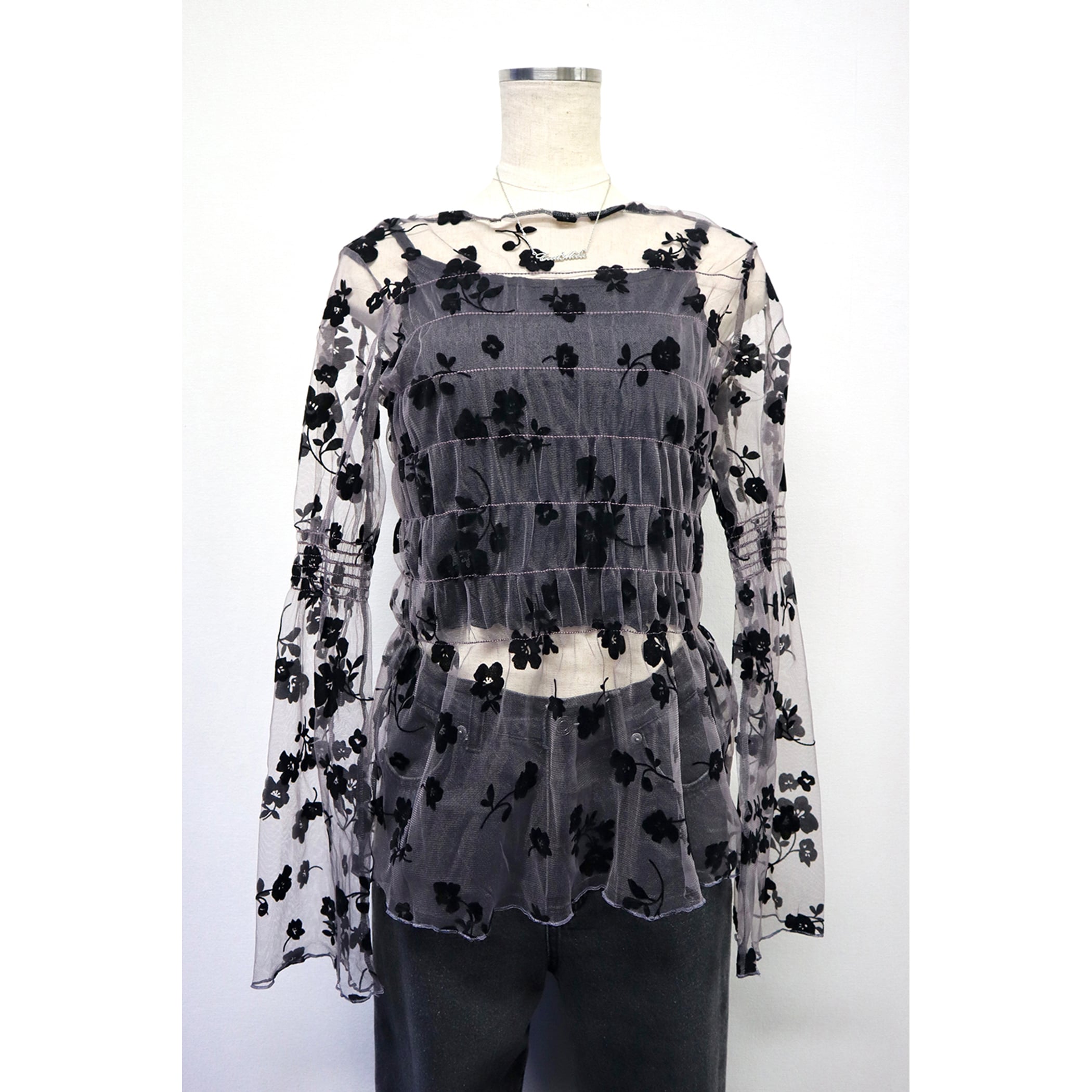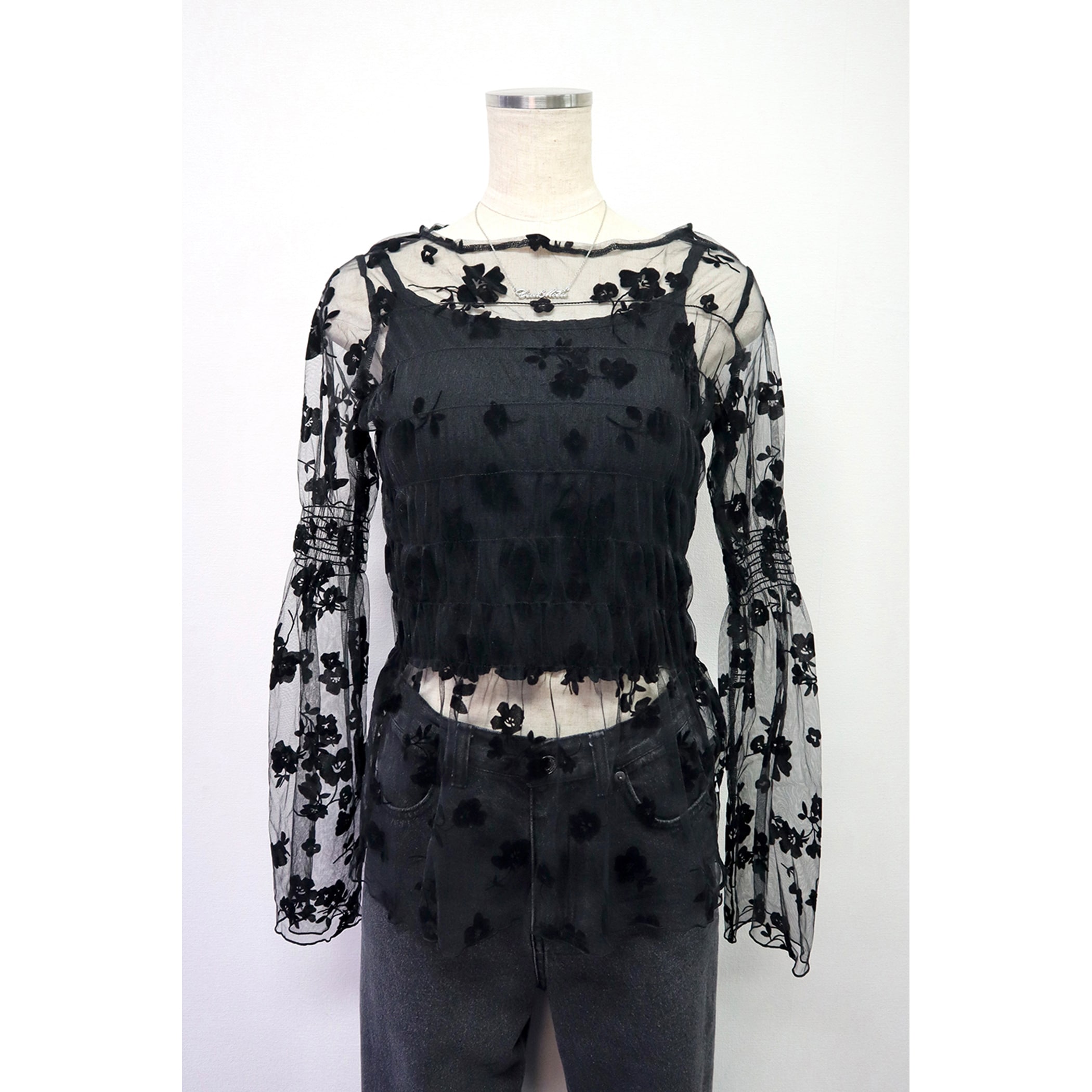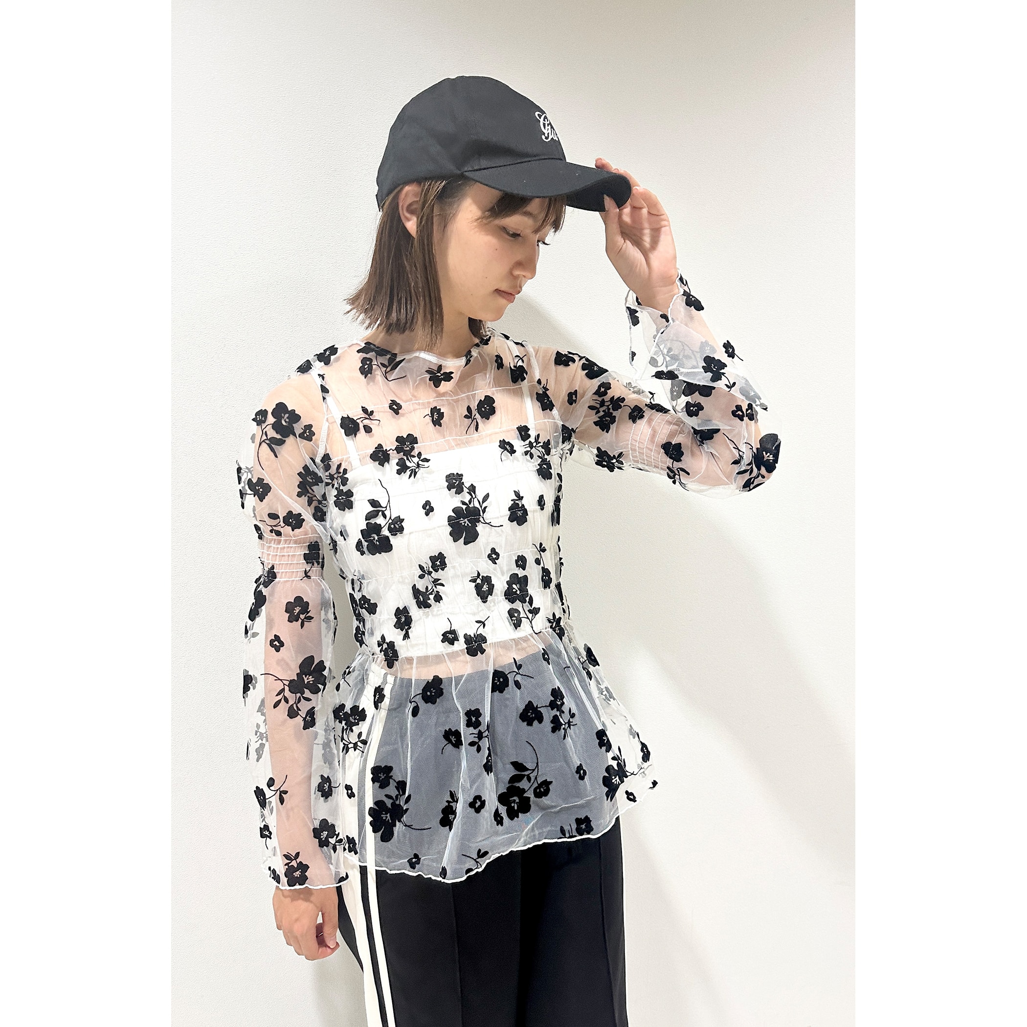 女性らしい華やかな印象のチュールトップス。控えめな透け感が上品な印象を与えてくれます。大人の肌見せが叶うシアーな素材は、オケージョンシーンでも、デニムと合わせてカジュアルダウンしても◎一枚で主役級のスタイリングに仕上げてくれるアイテムです。