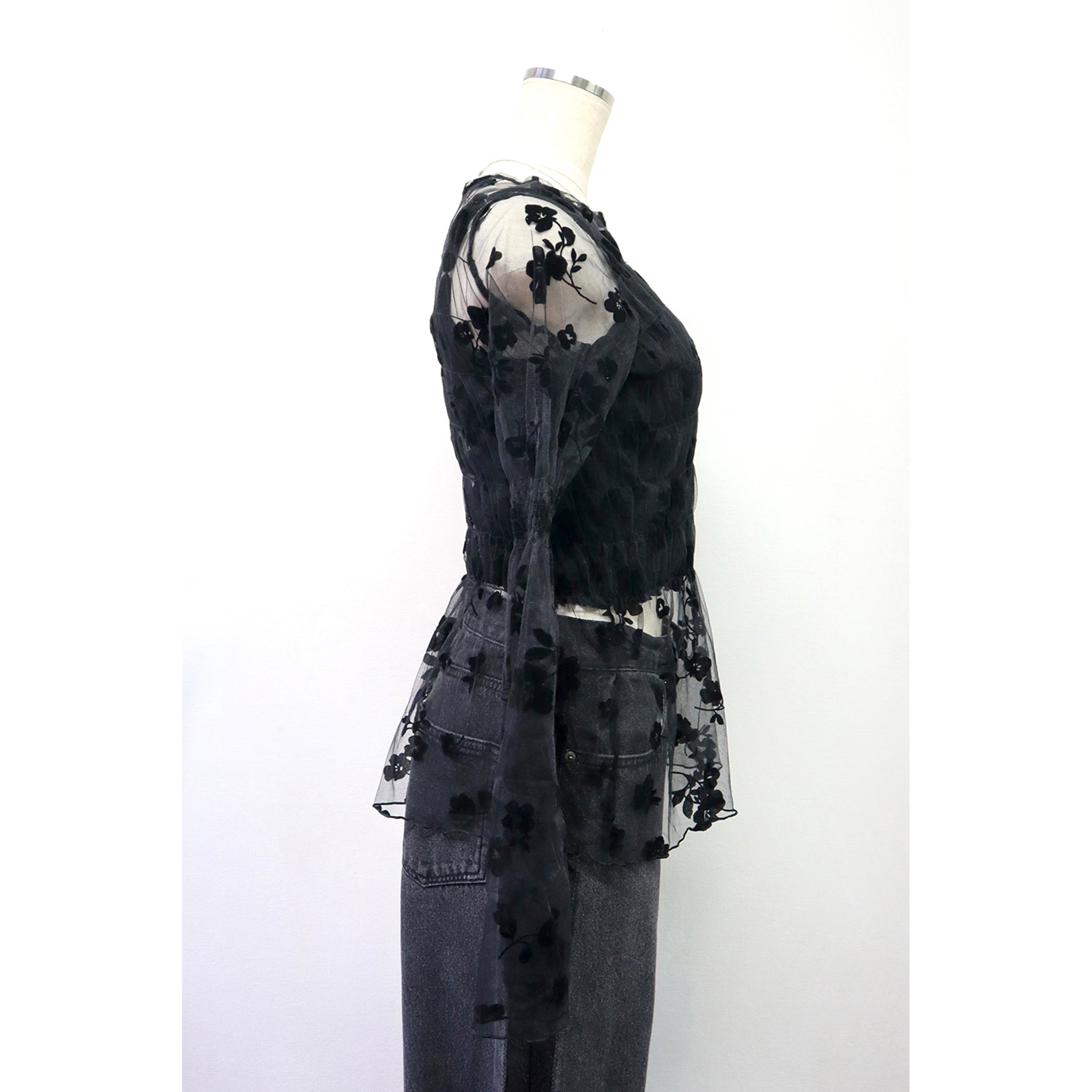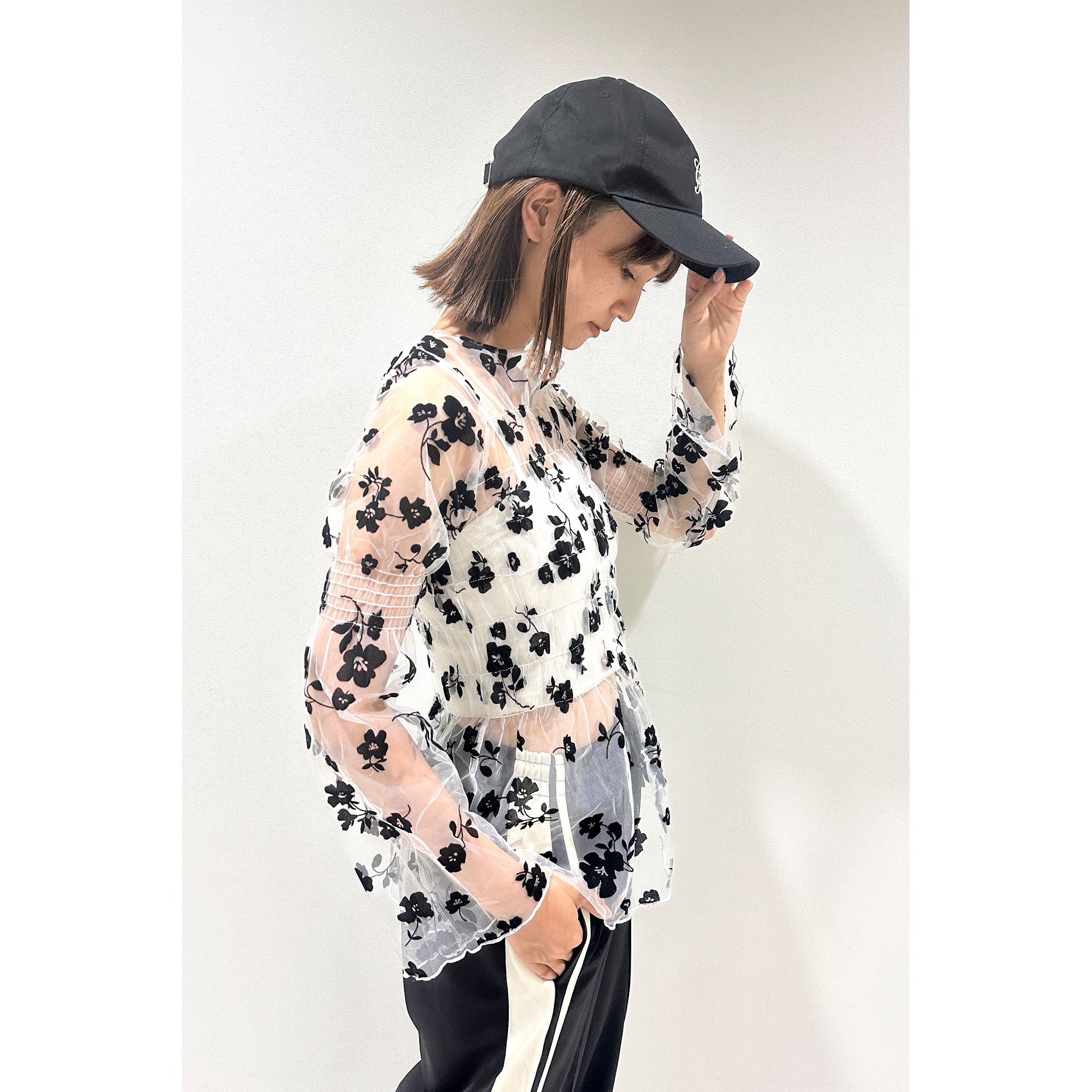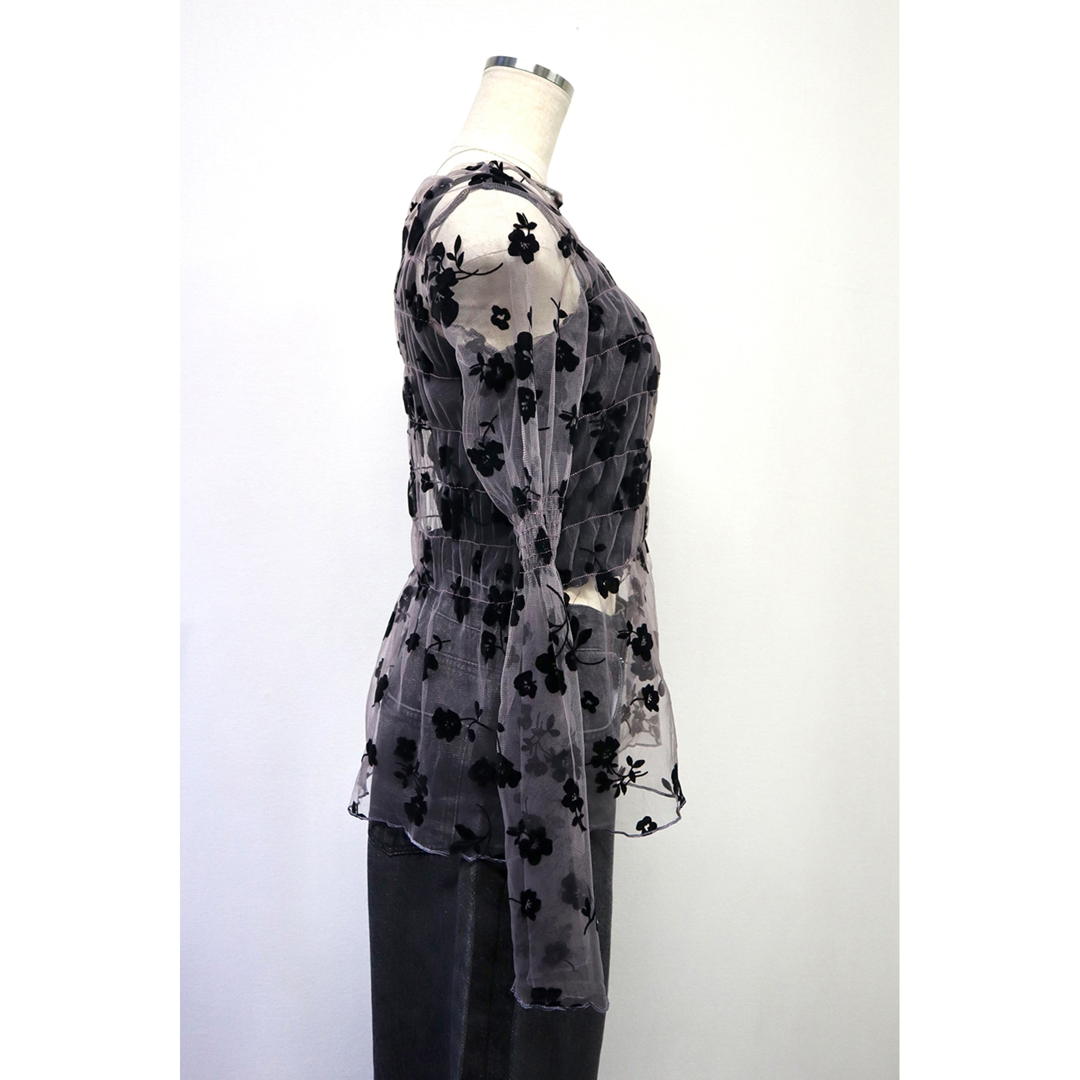 女性らしい華やかな印象のチュールトップス。控えめな透け感が上品な印象を与えてくれます。大人の肌見せが叶うシアーな素材は、オケージョンシーンでも、デニムと合わせてカジュアルダウンしても◎一枚で主役級のスタイリングに仕上げてくれるアイテムです。