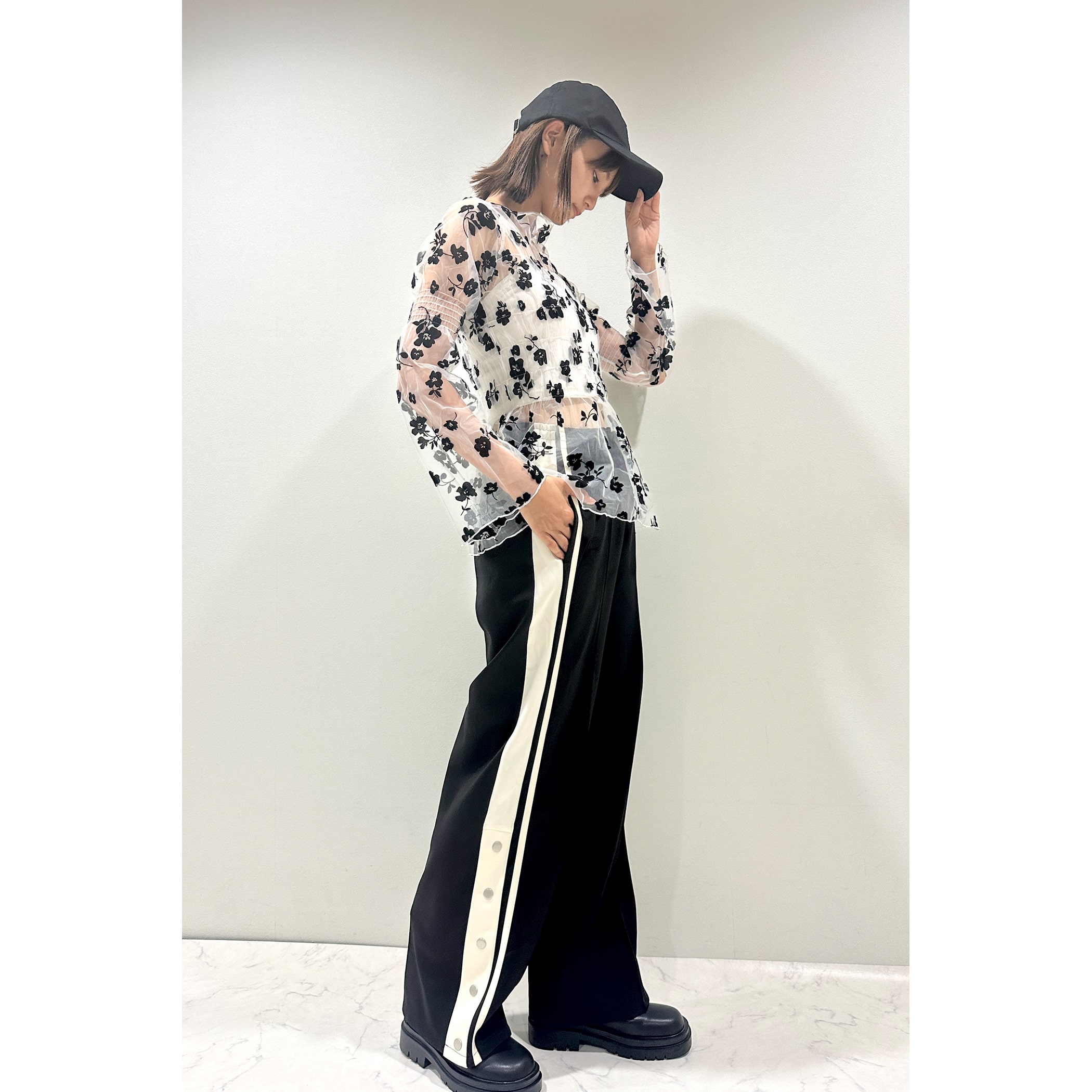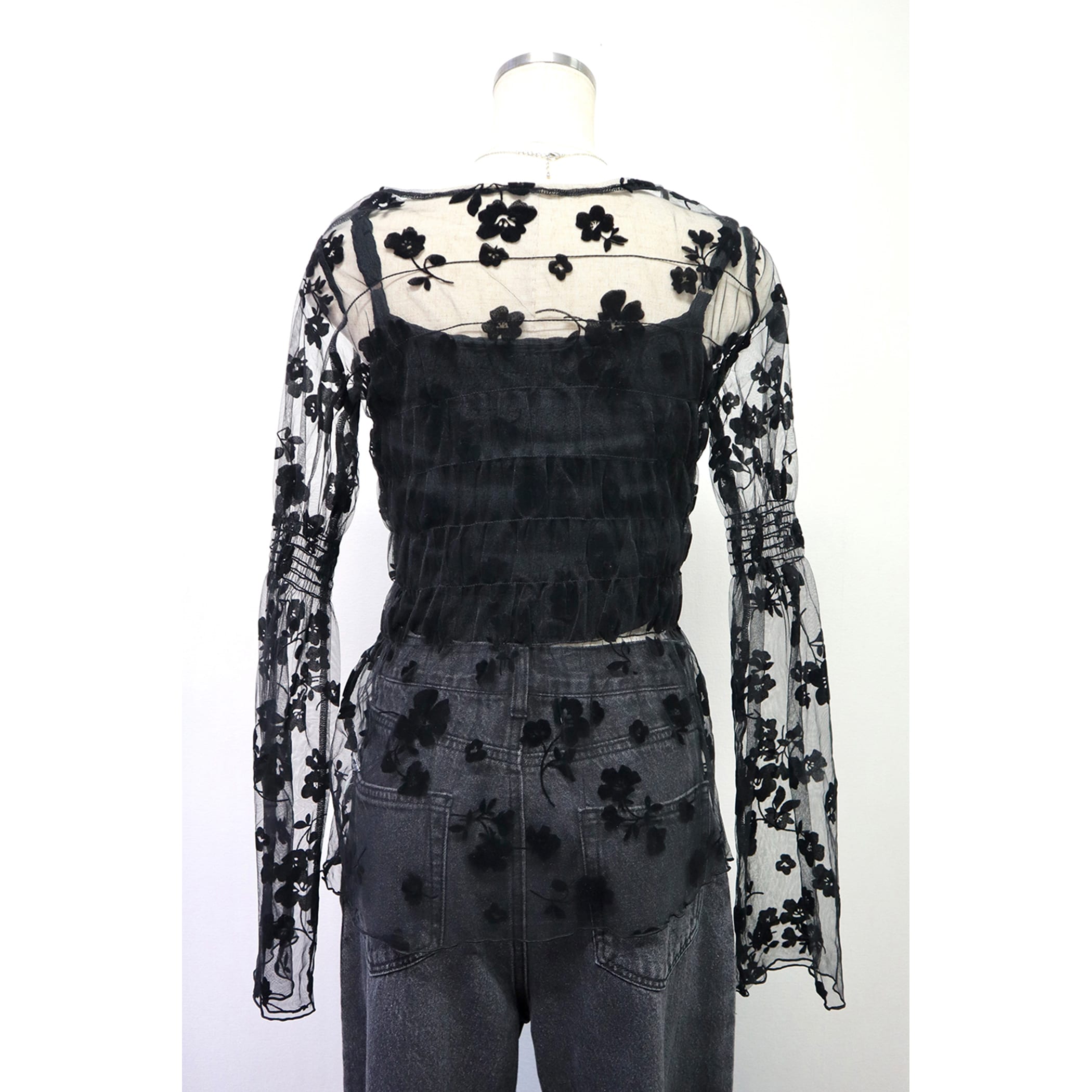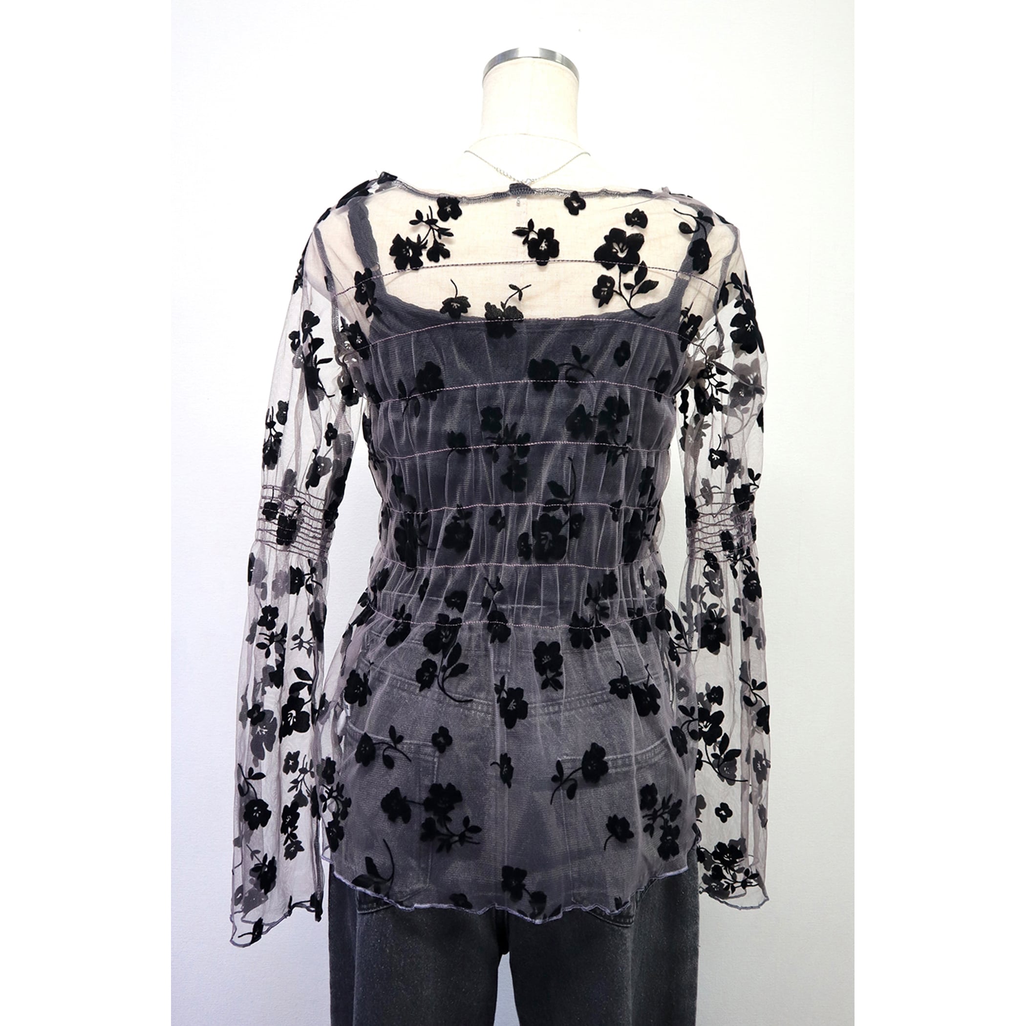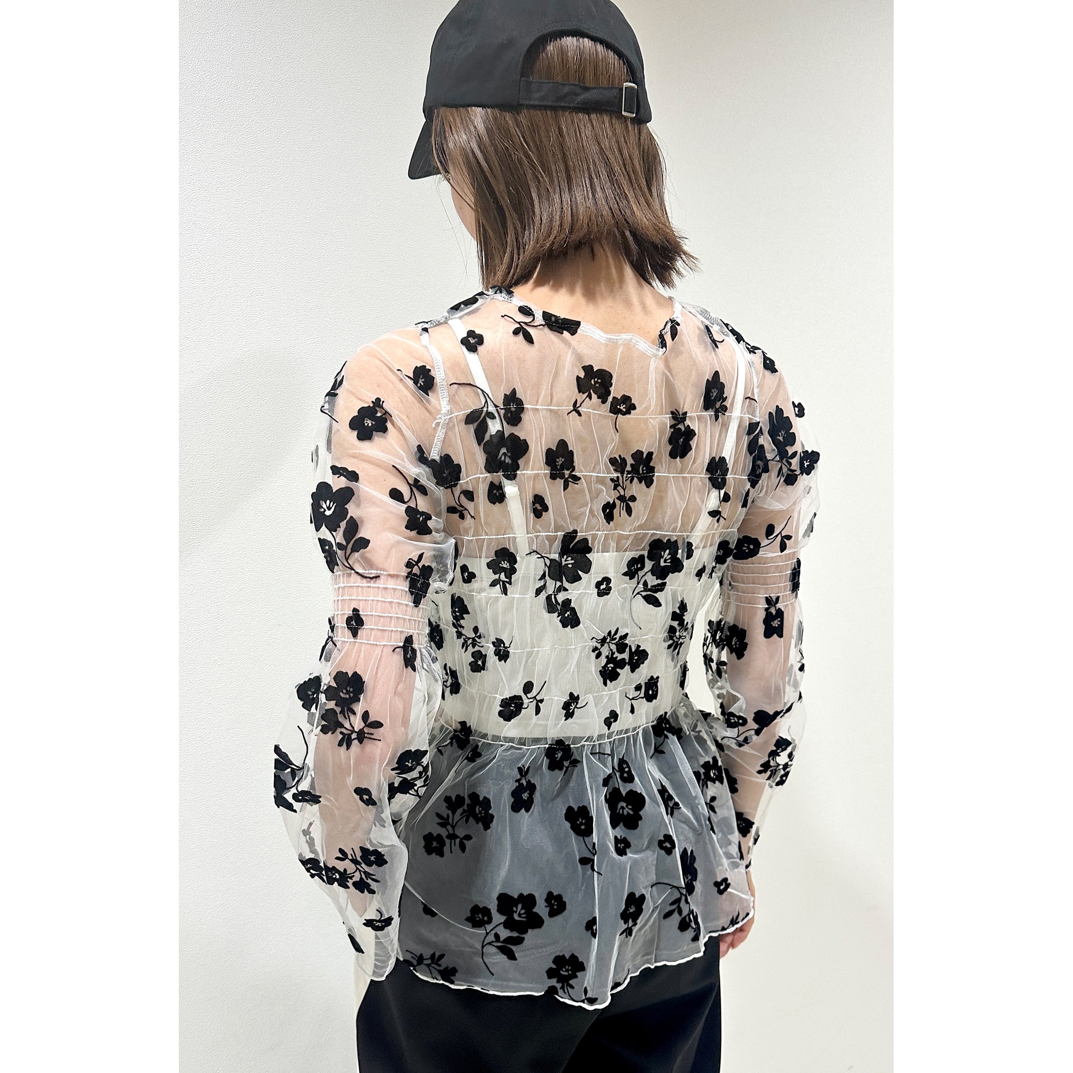 女性らしい華やかな印象のチュールトップス。控えめな透け感が上品な印象を与えてくれます。大人の肌見せが叶うシアーな素材は、オケージョンシーンでも、デニムと合わせてカジュアルダウンしても◎一枚で主役級のスタイリングに仕上げてくれるアイテムです。