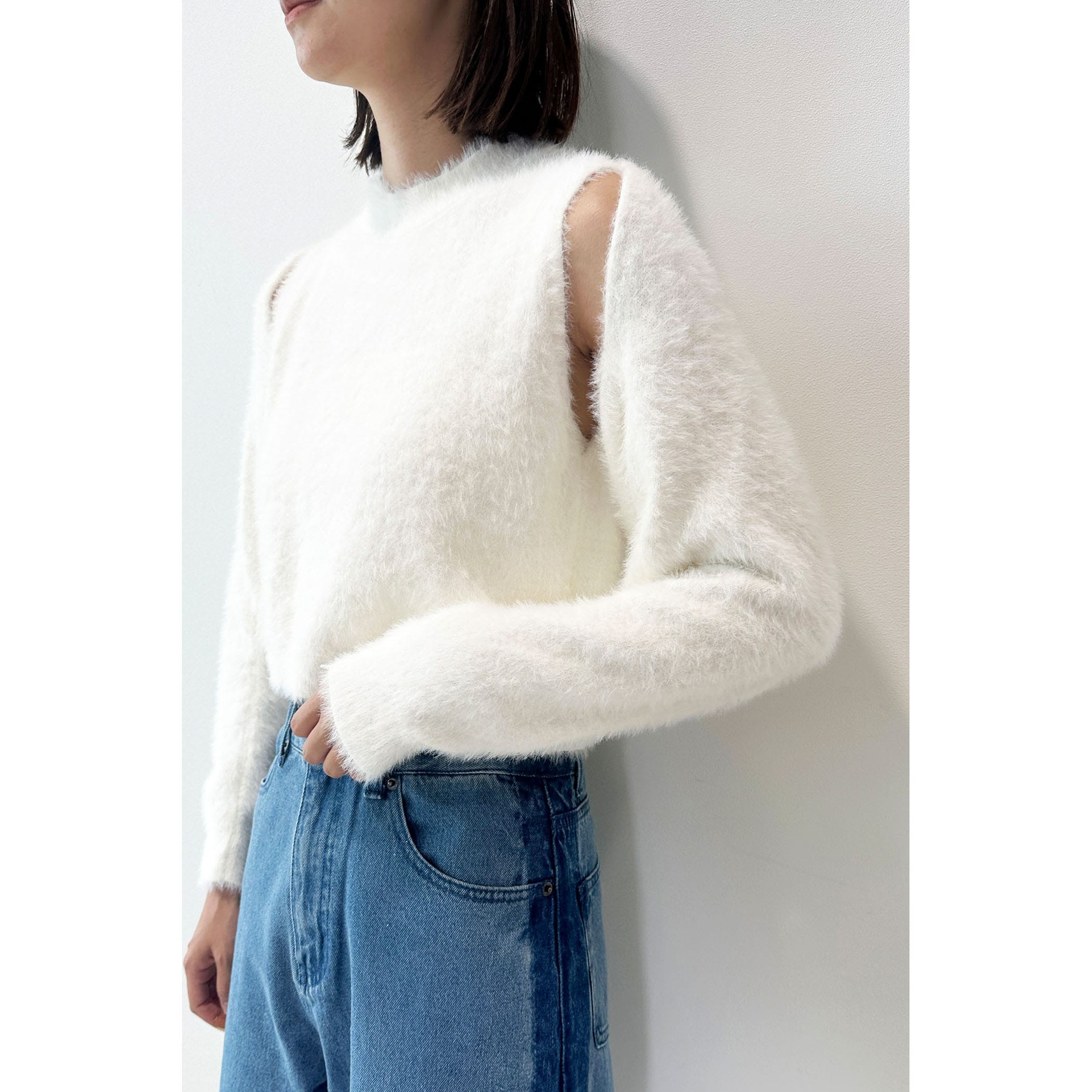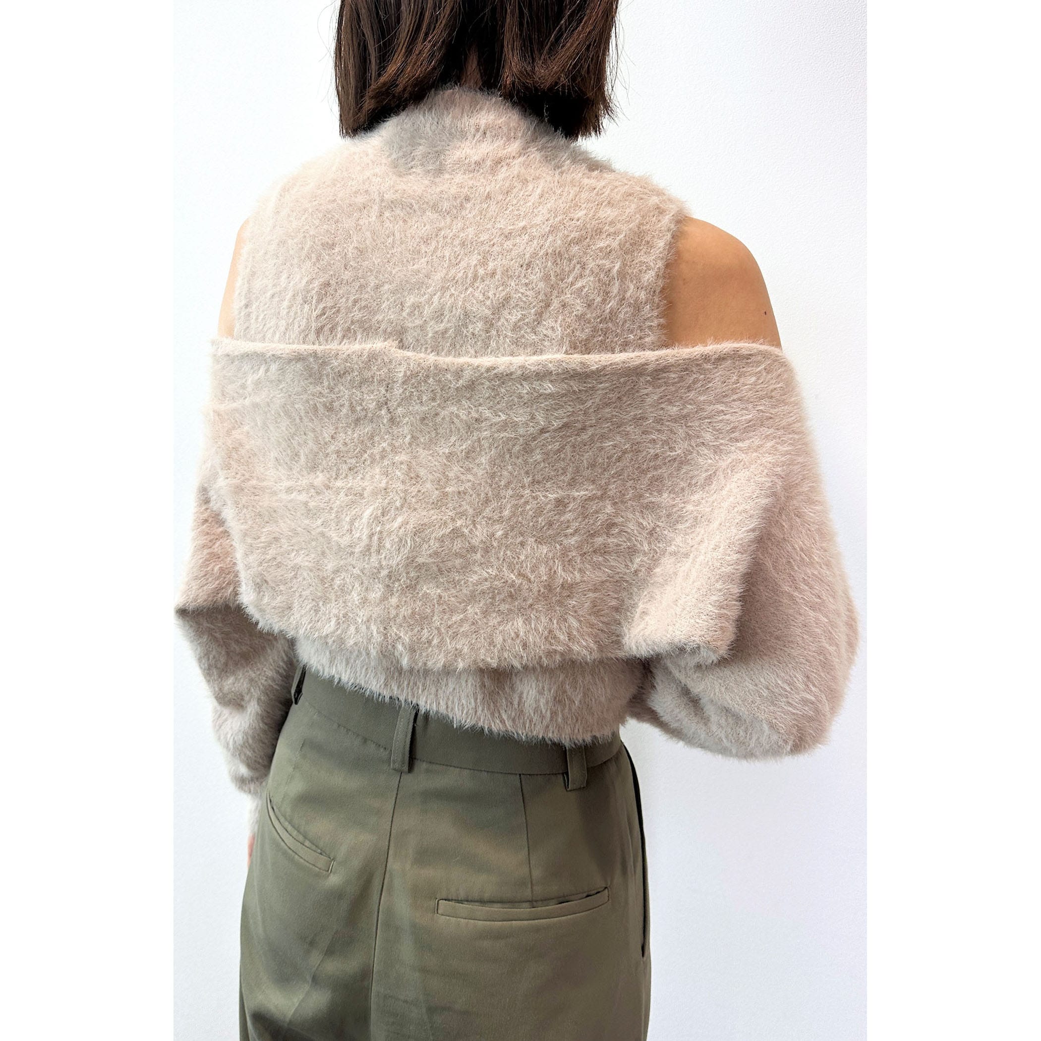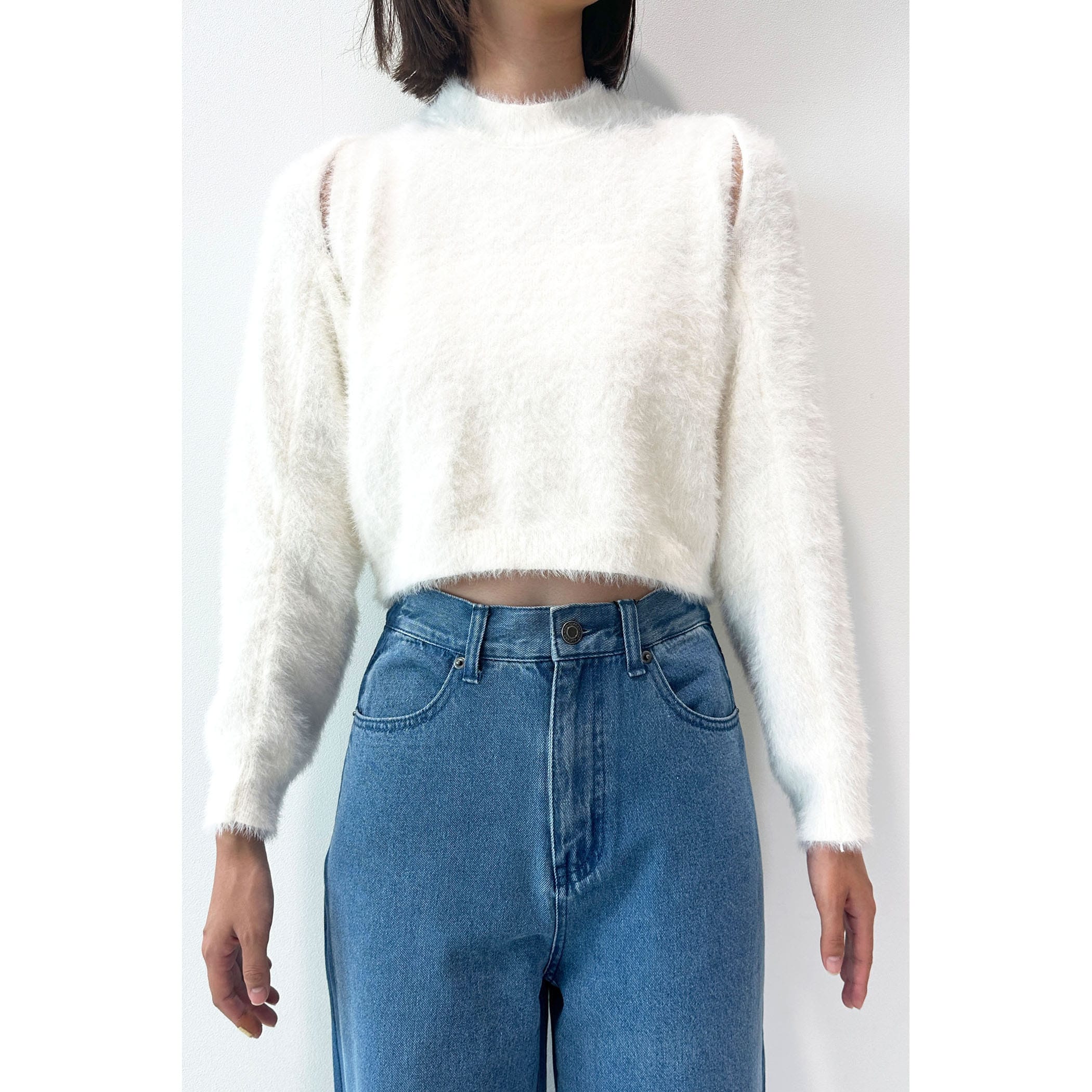 ふわふわで着心地抜群なフェザー素材のボレロとタンクトップがセットになったアイテム。着るだけでフェミニンムードを高めてくれます。ボレロはウエストがしっかり見える短丈なのでスタイルアップも叶います。タンクトップのインナーはシンプルなデザインで着回し力抜群。合わせるボトムスを選ばず、単品使いでも◎