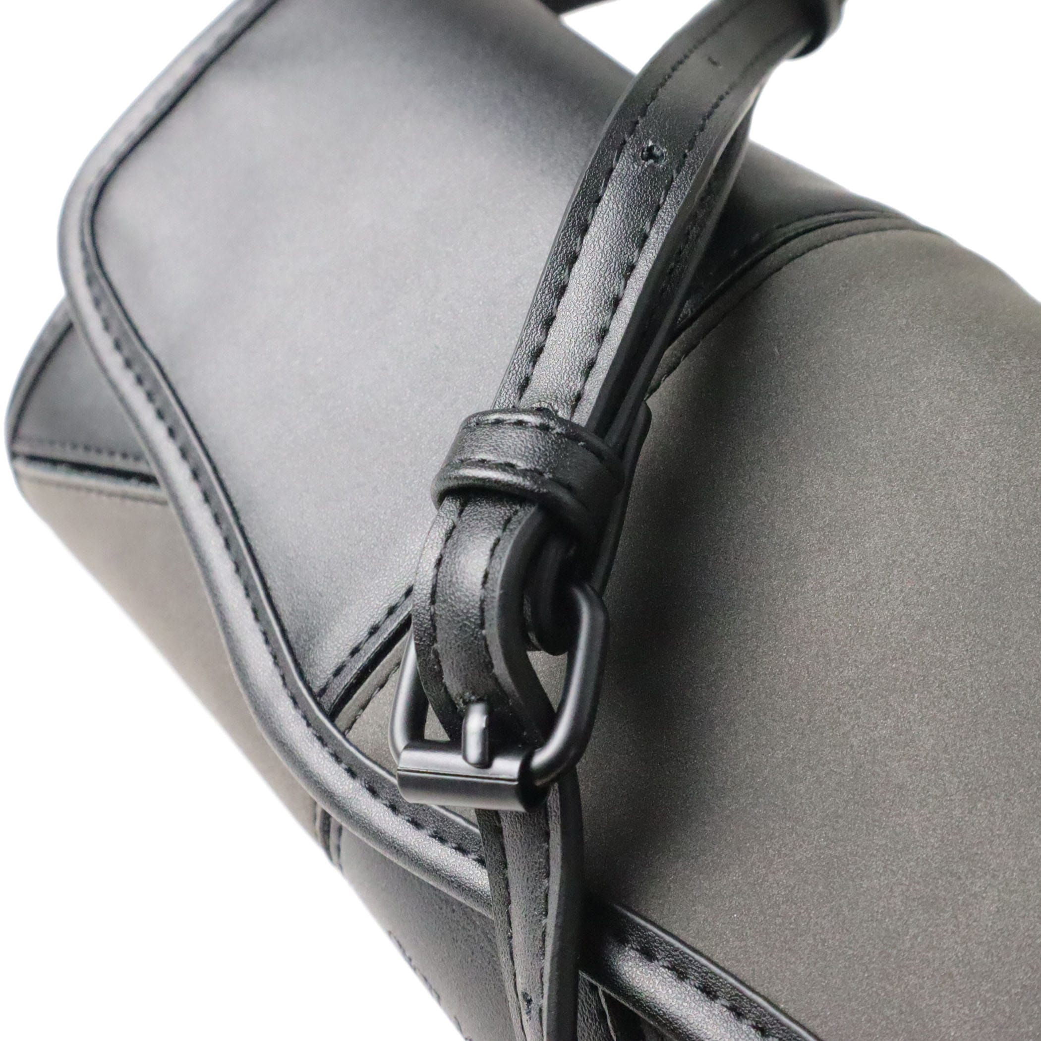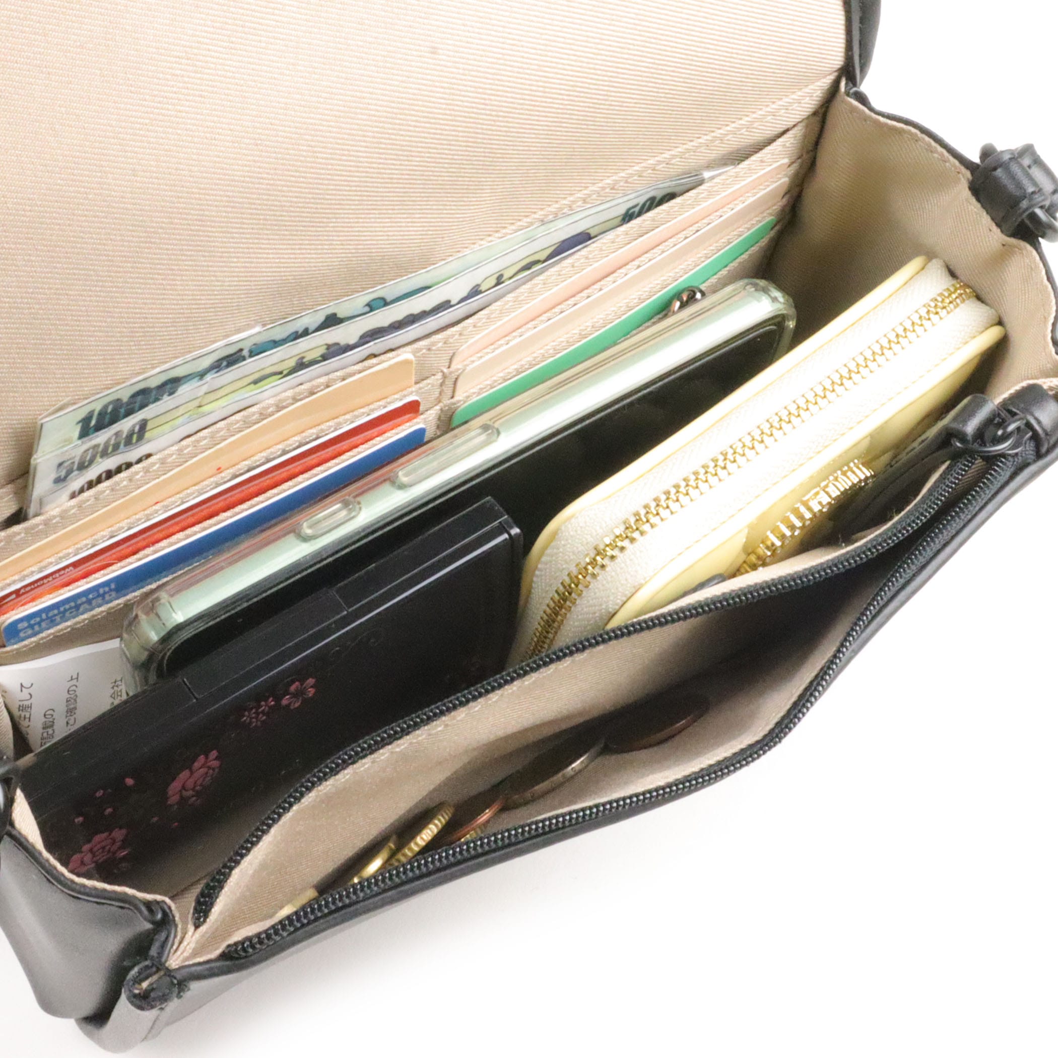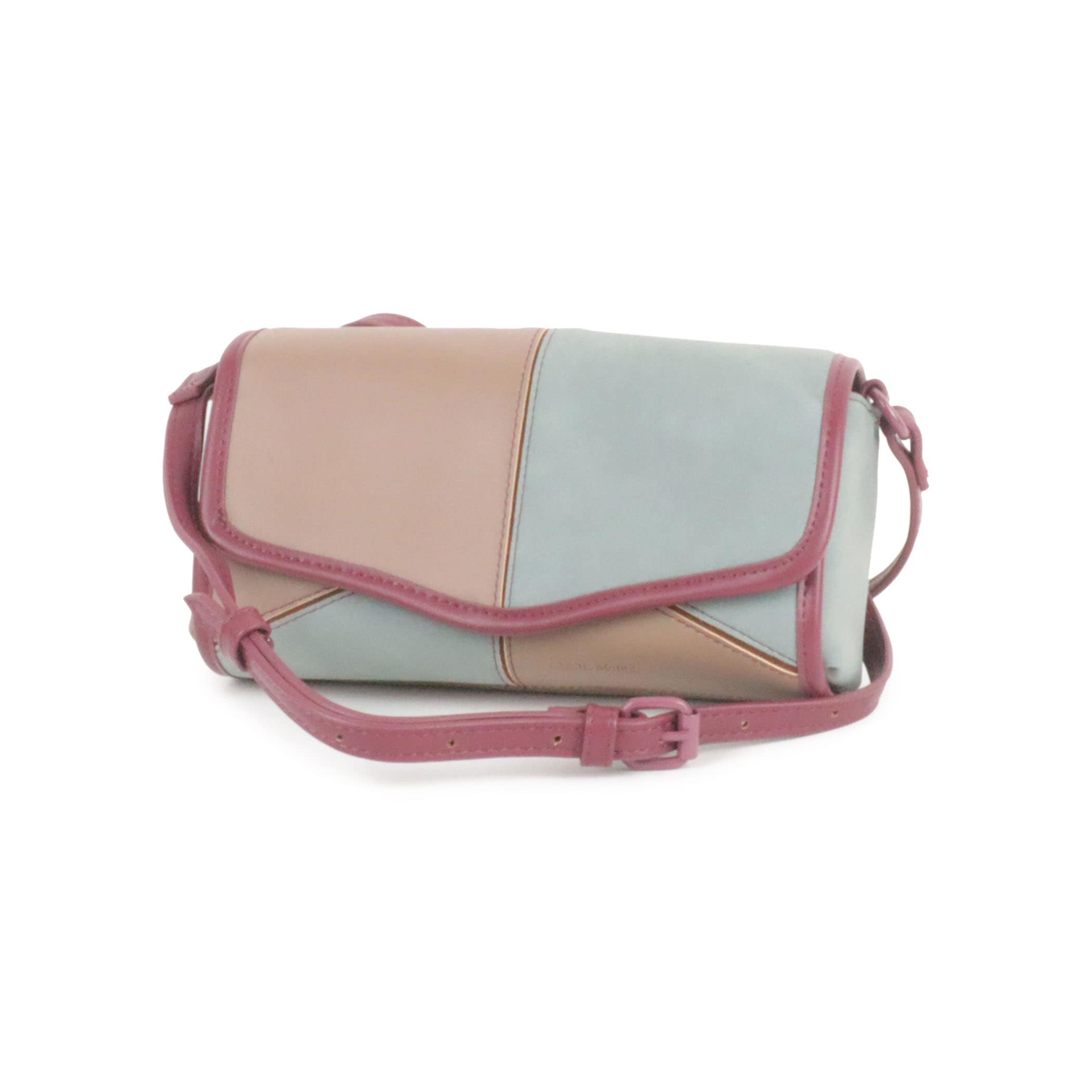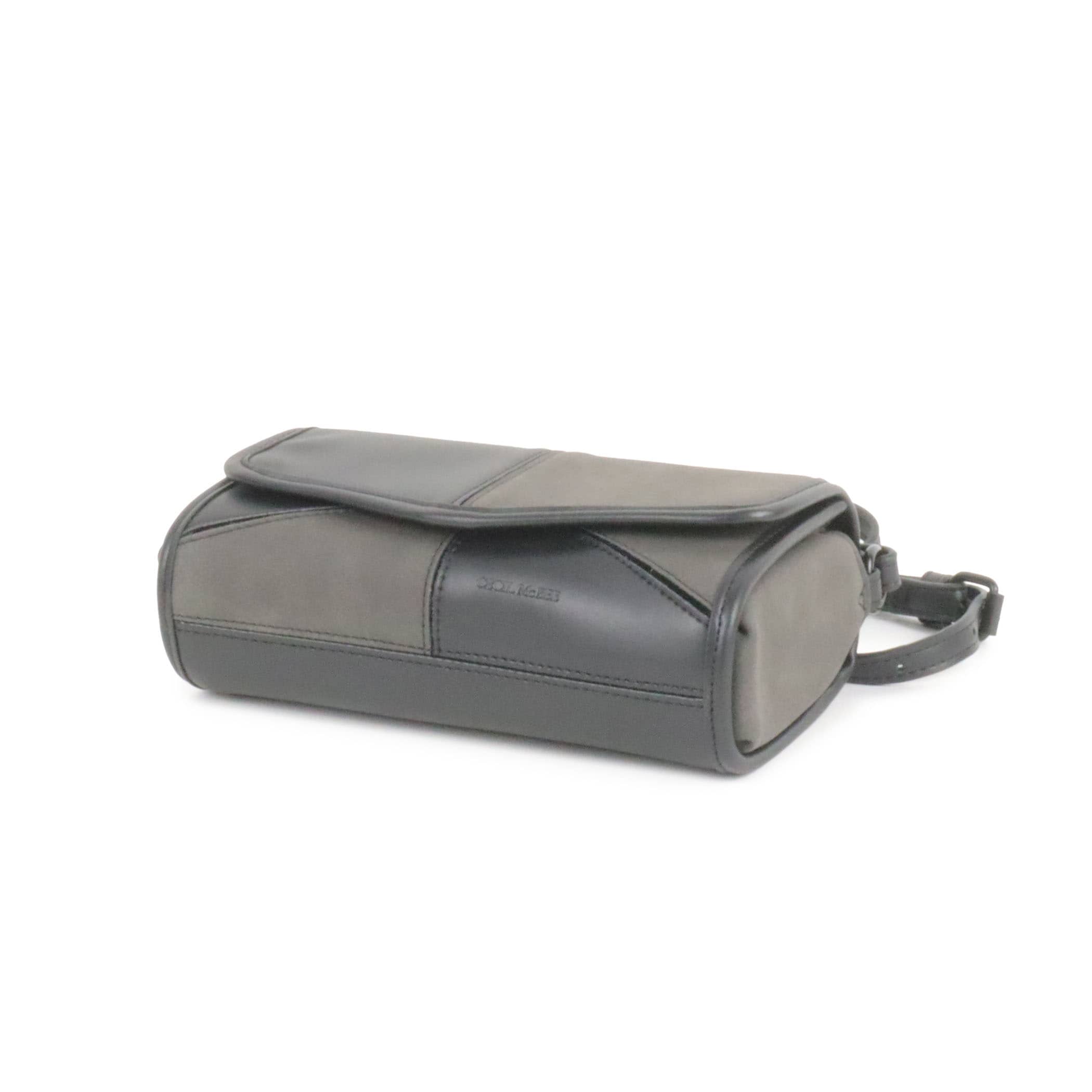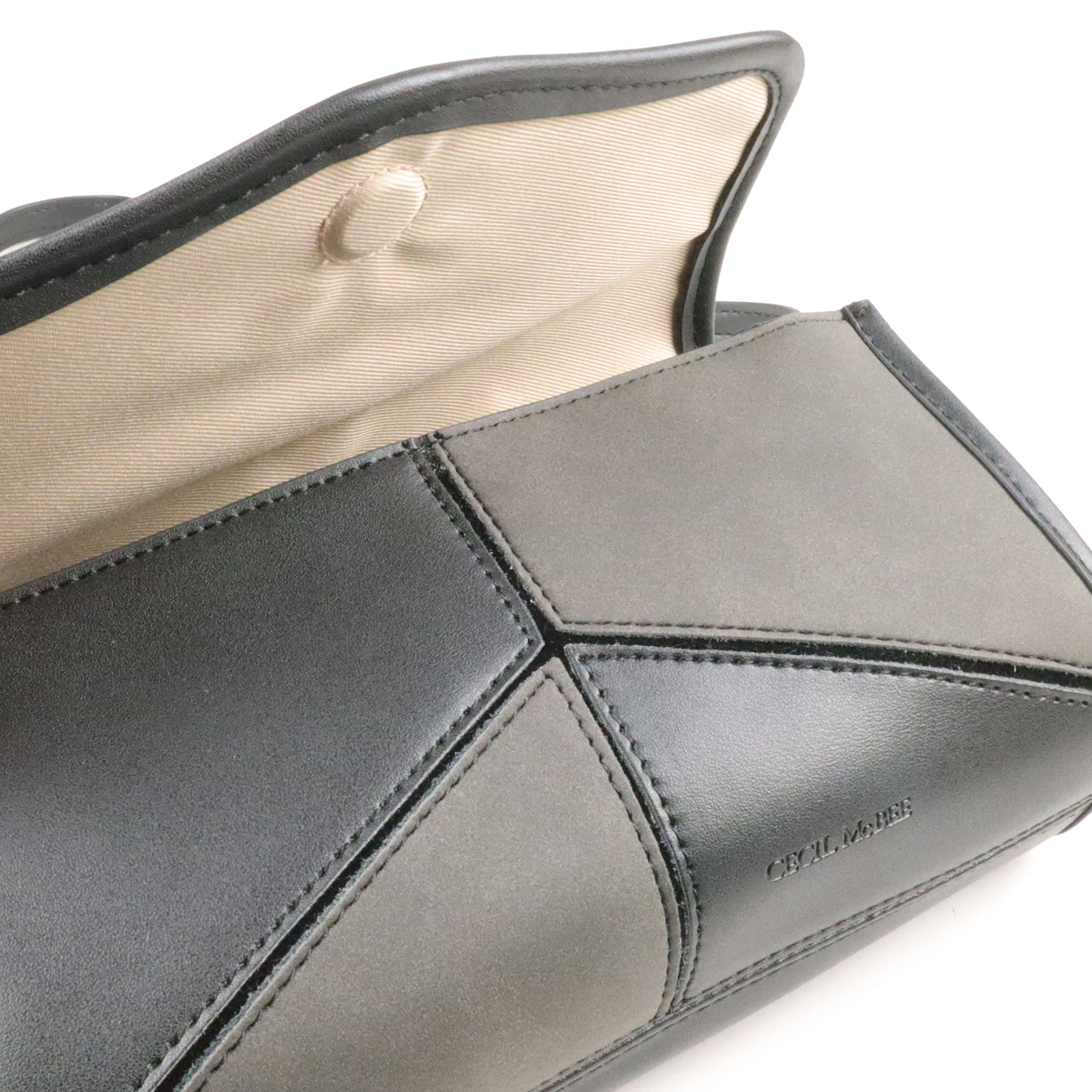 くすみカラーの配色とヌバック調素材が秋らしいパッチワークのデザイン。金具をマットカラーにしレトロ感を表現しています。