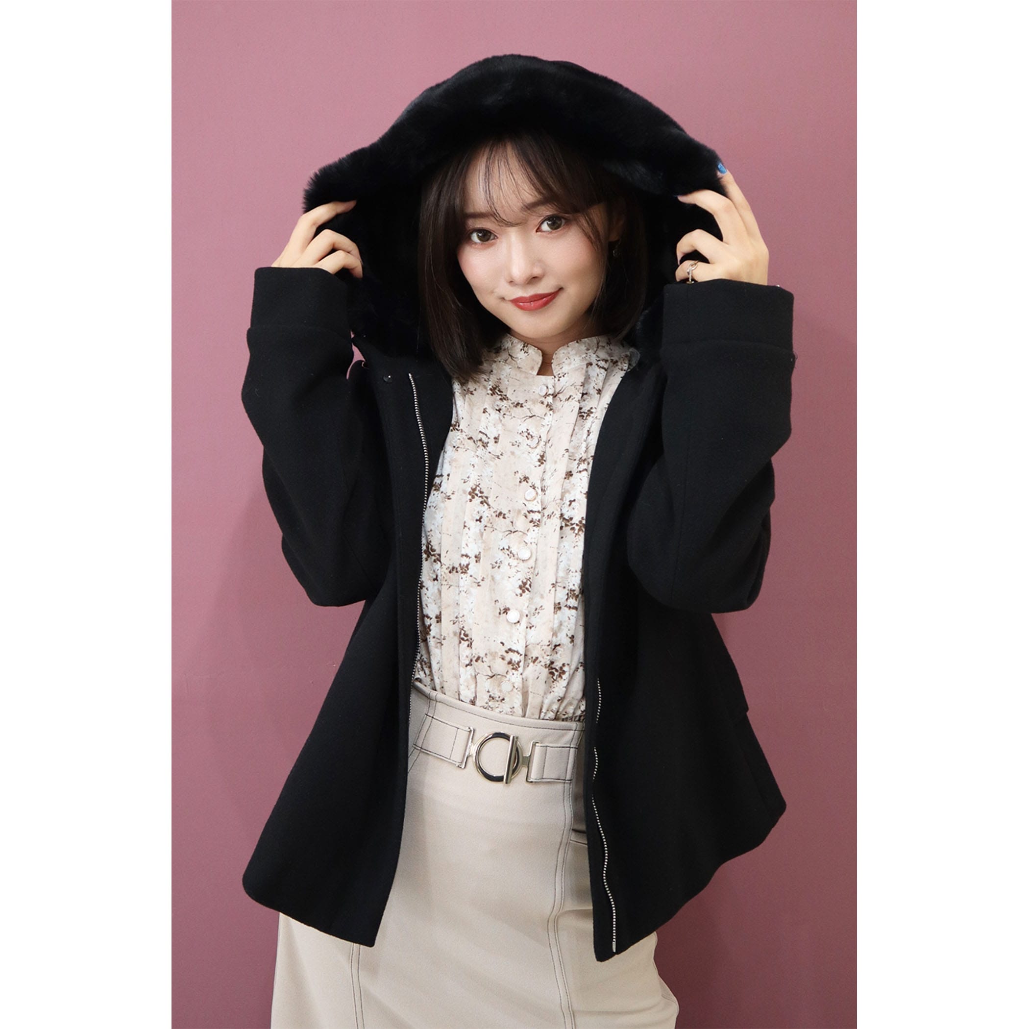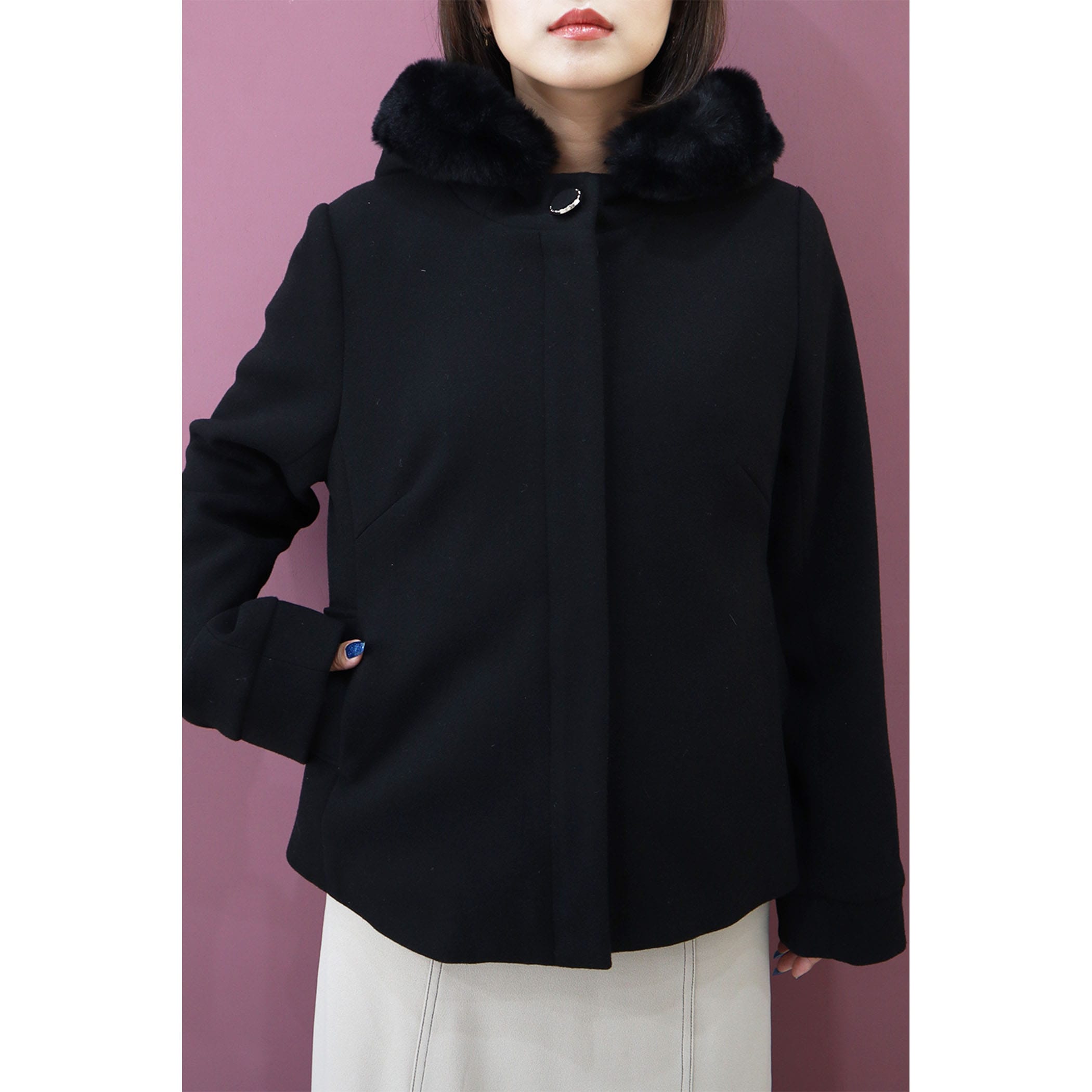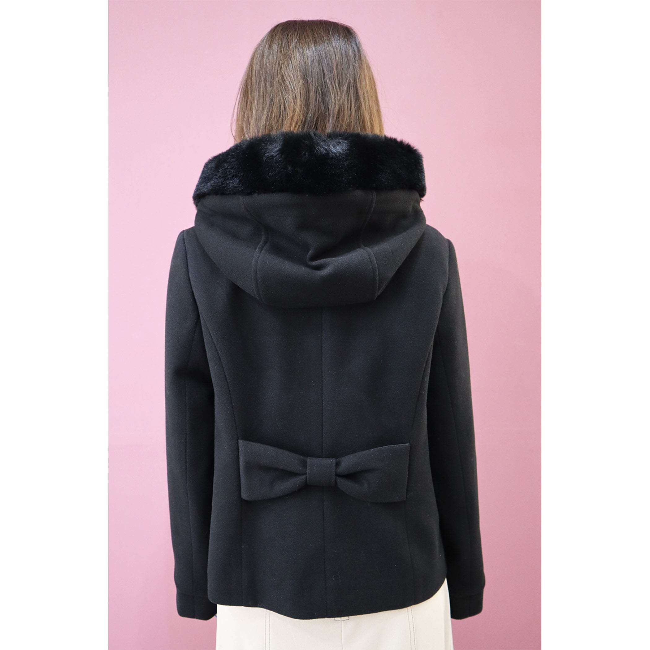 フェミニンで愛らしい印象のショートコート。バックのリボンが上品な甘さをプラスし360°可愛い、コーデの主役級アウターです。取り外し可能な襟のフェイクファーは外すとカジュアルダウンした印象に。表地はなめらかな肌ざわりと保温性を兼ね備えたニットメルトン生地を使用しており、しっかり防寒しつつかわいいコーデを叶えてくれる1着です。
