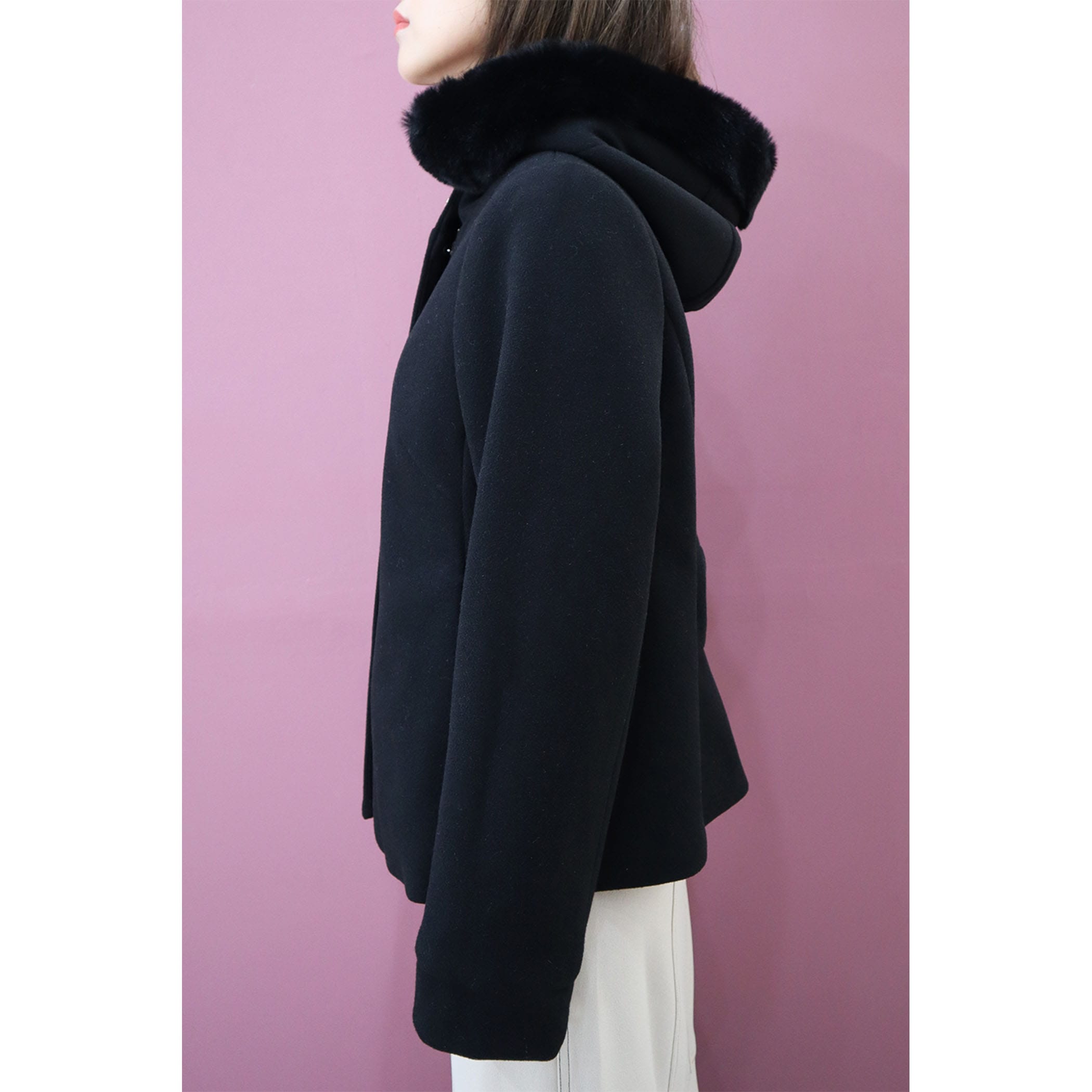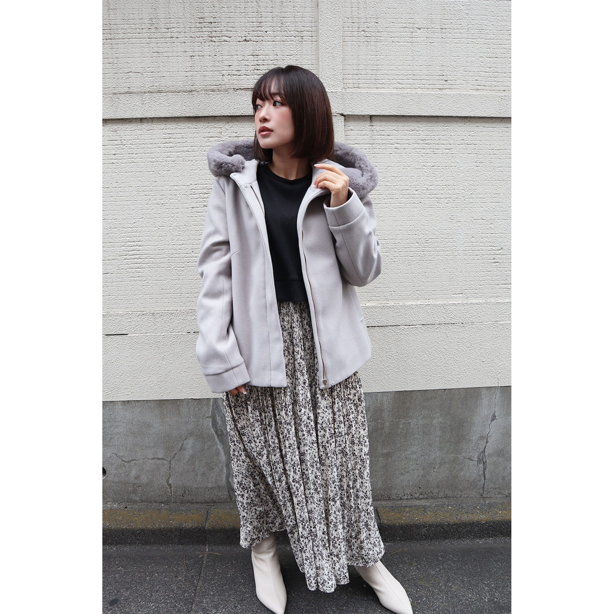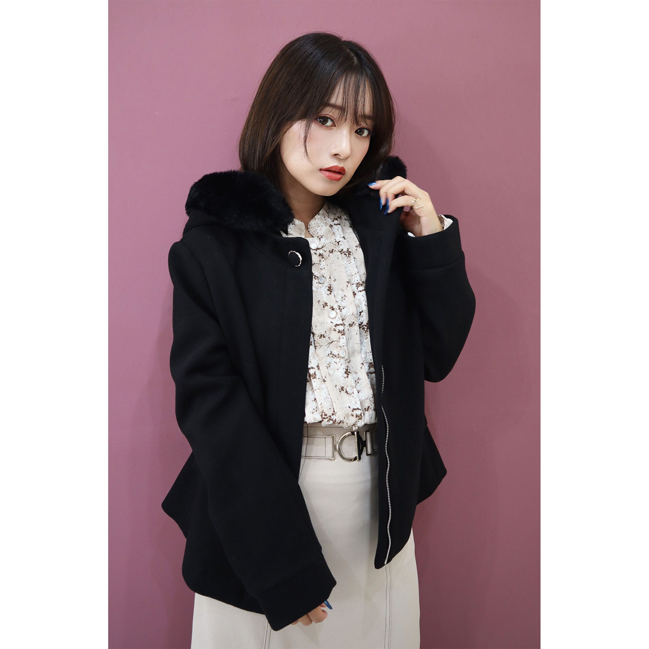 フェミニンで愛らしい印象のショートコート。バックのリボンが上品な甘さをプラスし360°可愛い、コーデの主役級アウターです。取り外し可能な襟のフェイクファーは外すとカジュアルダウンした印象に。表地はなめらかな肌ざわりと保温性を兼ね備えたニットメルトン生地を使用しており、しっかり防寒しつつかわいいコーデを叶えてくれる1着です。
