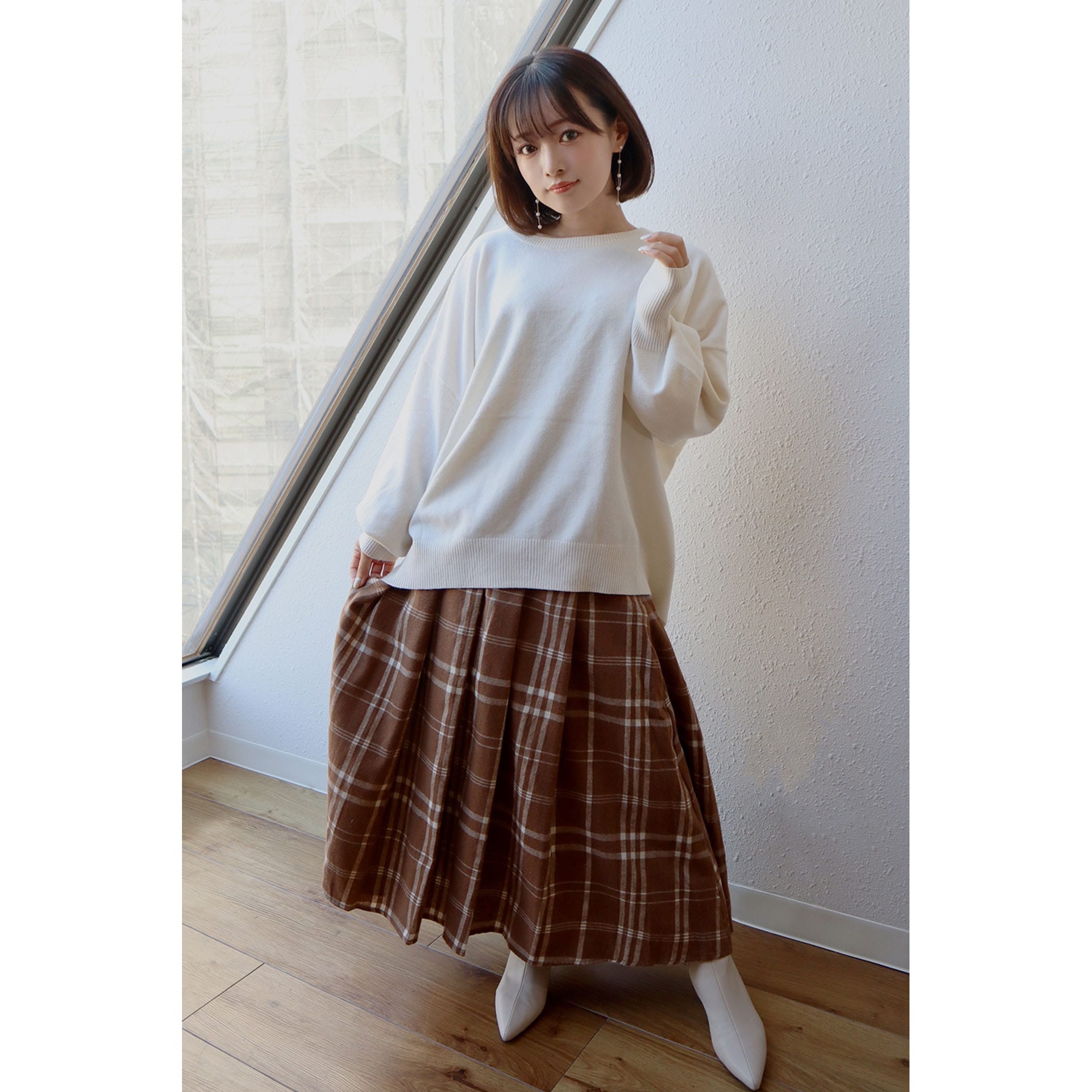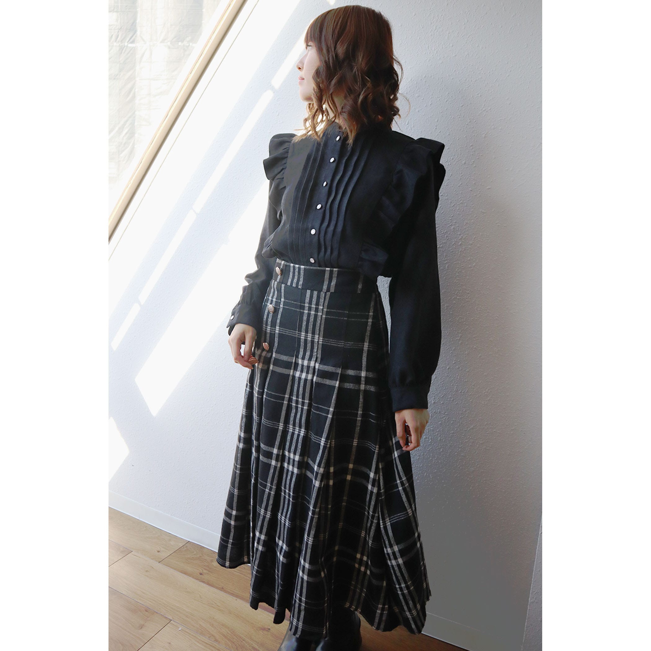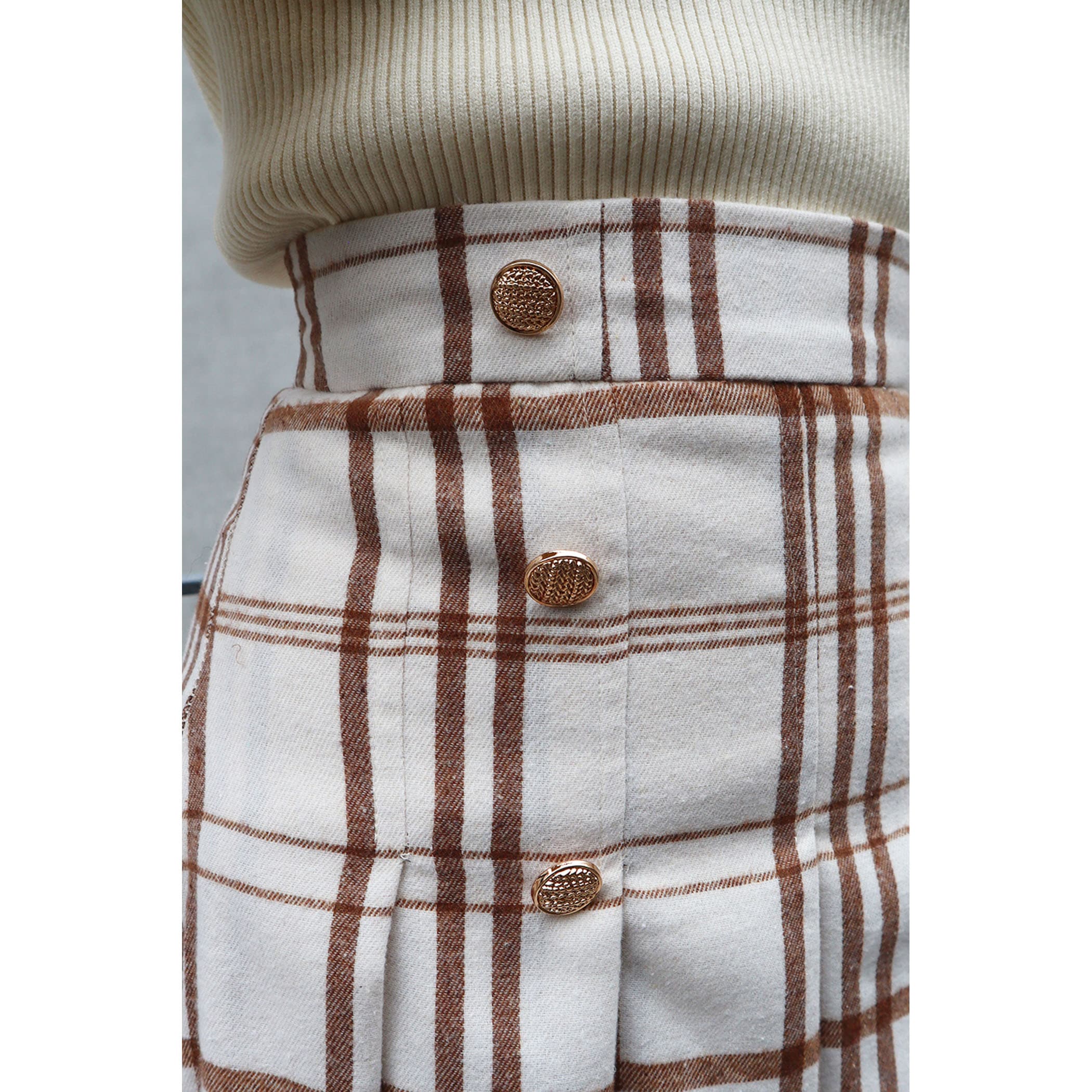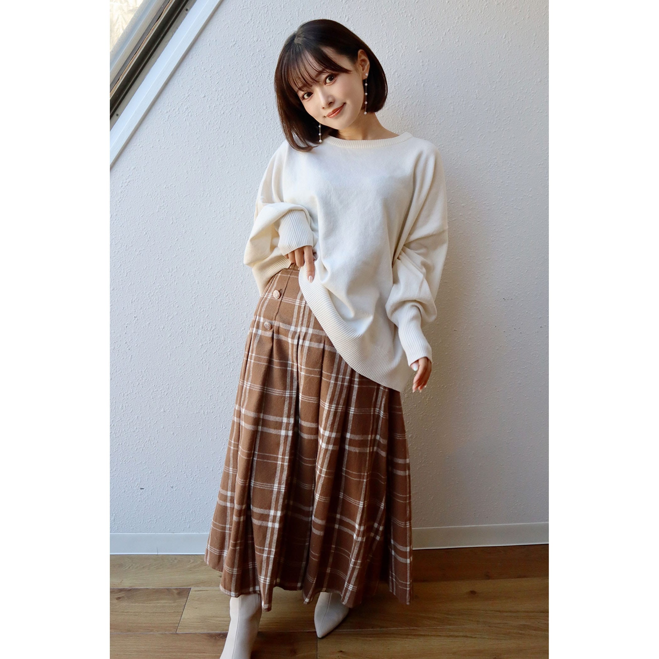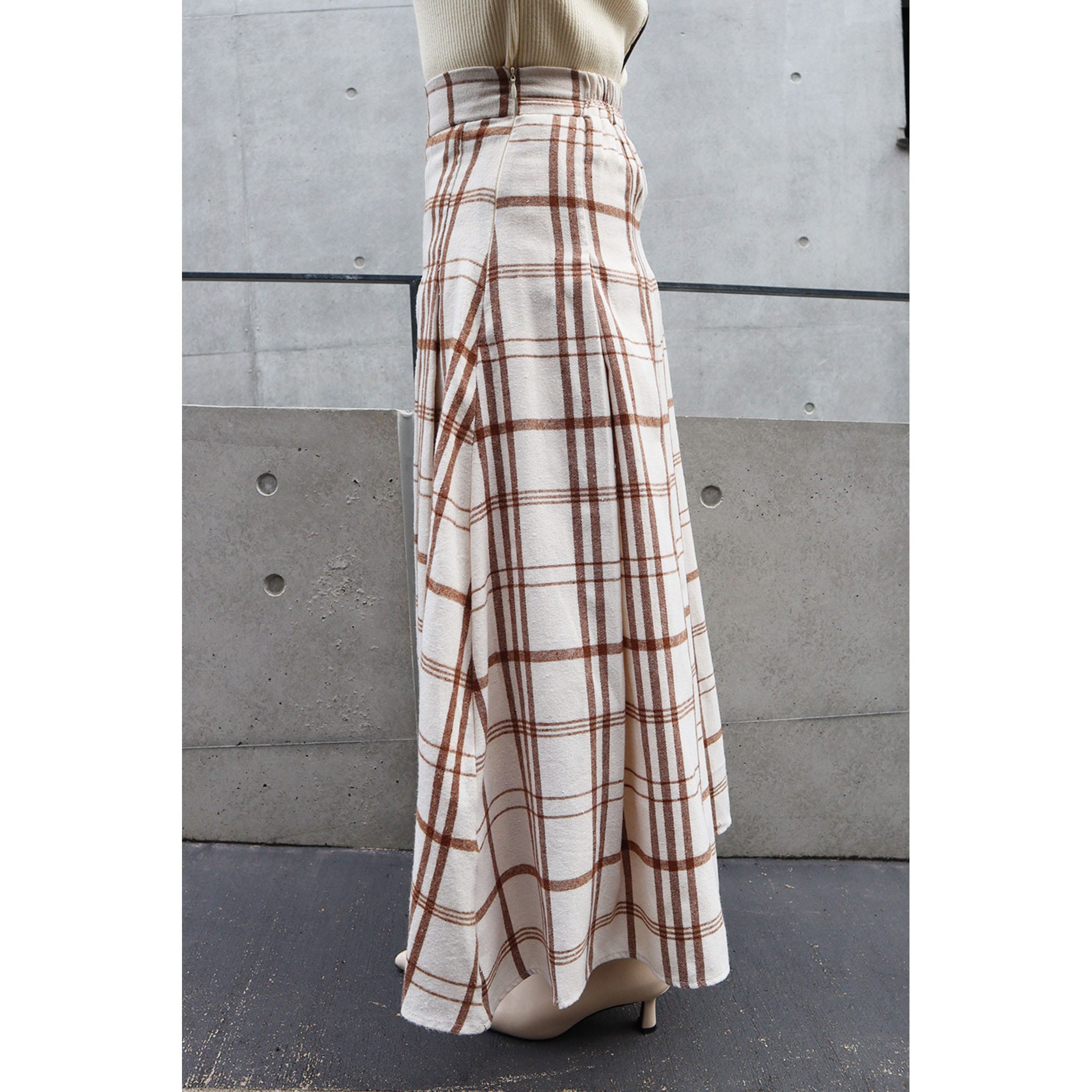 サイドボタンチェックプリーツスカート
