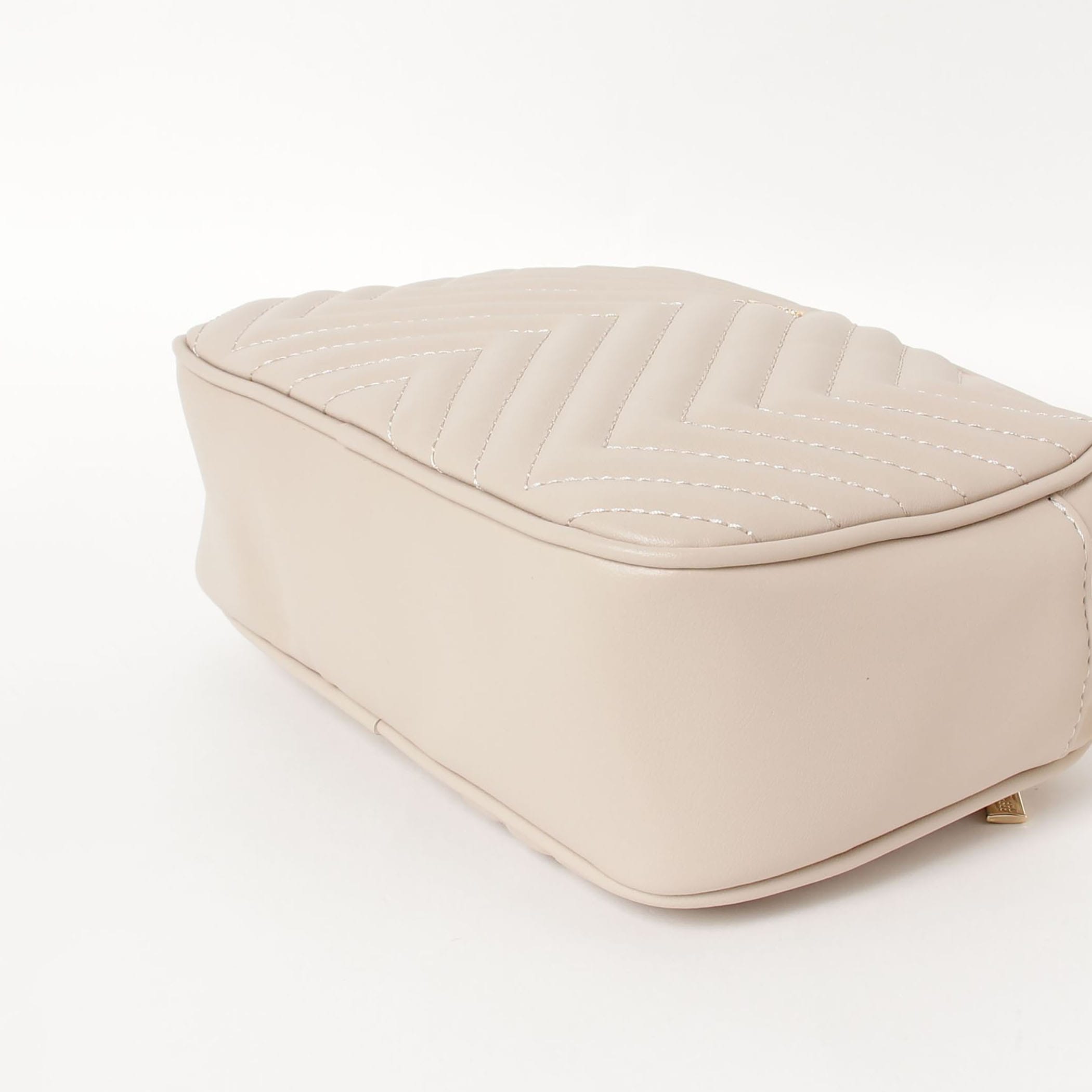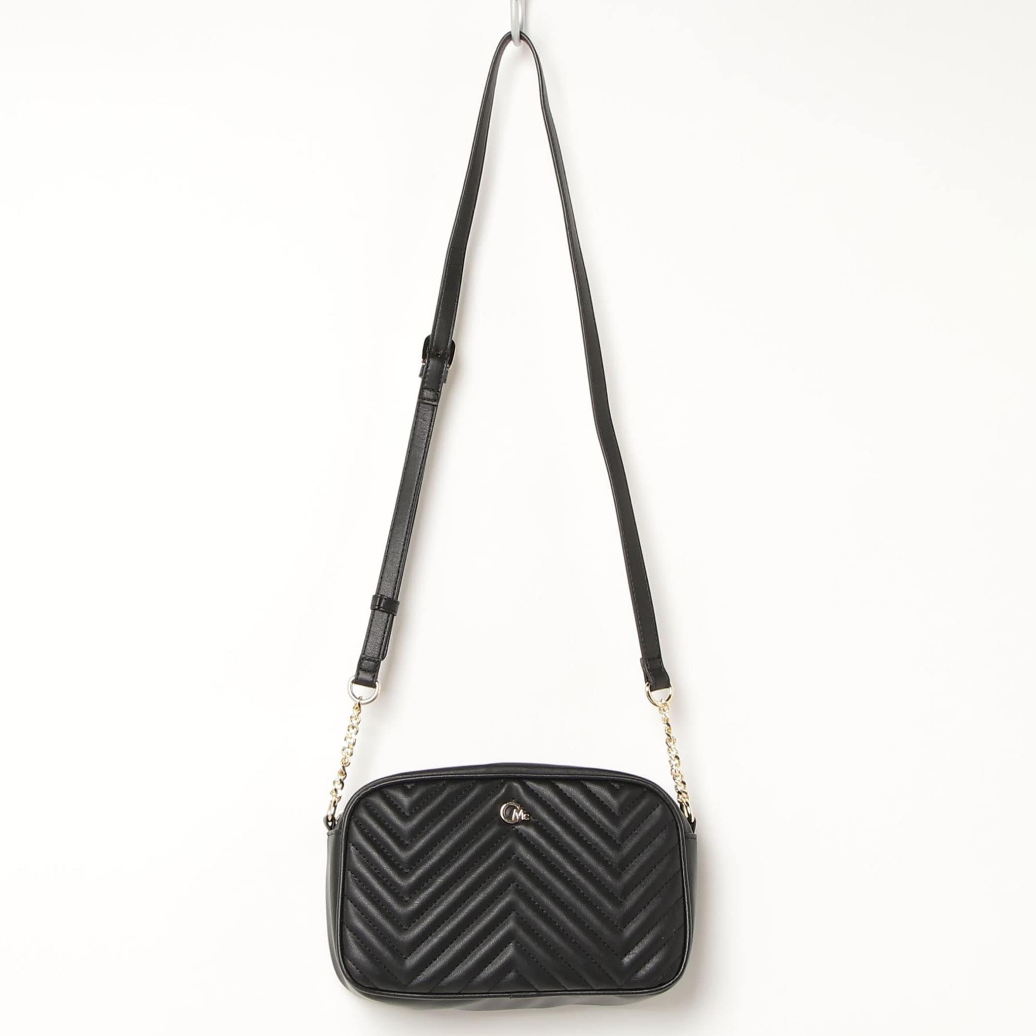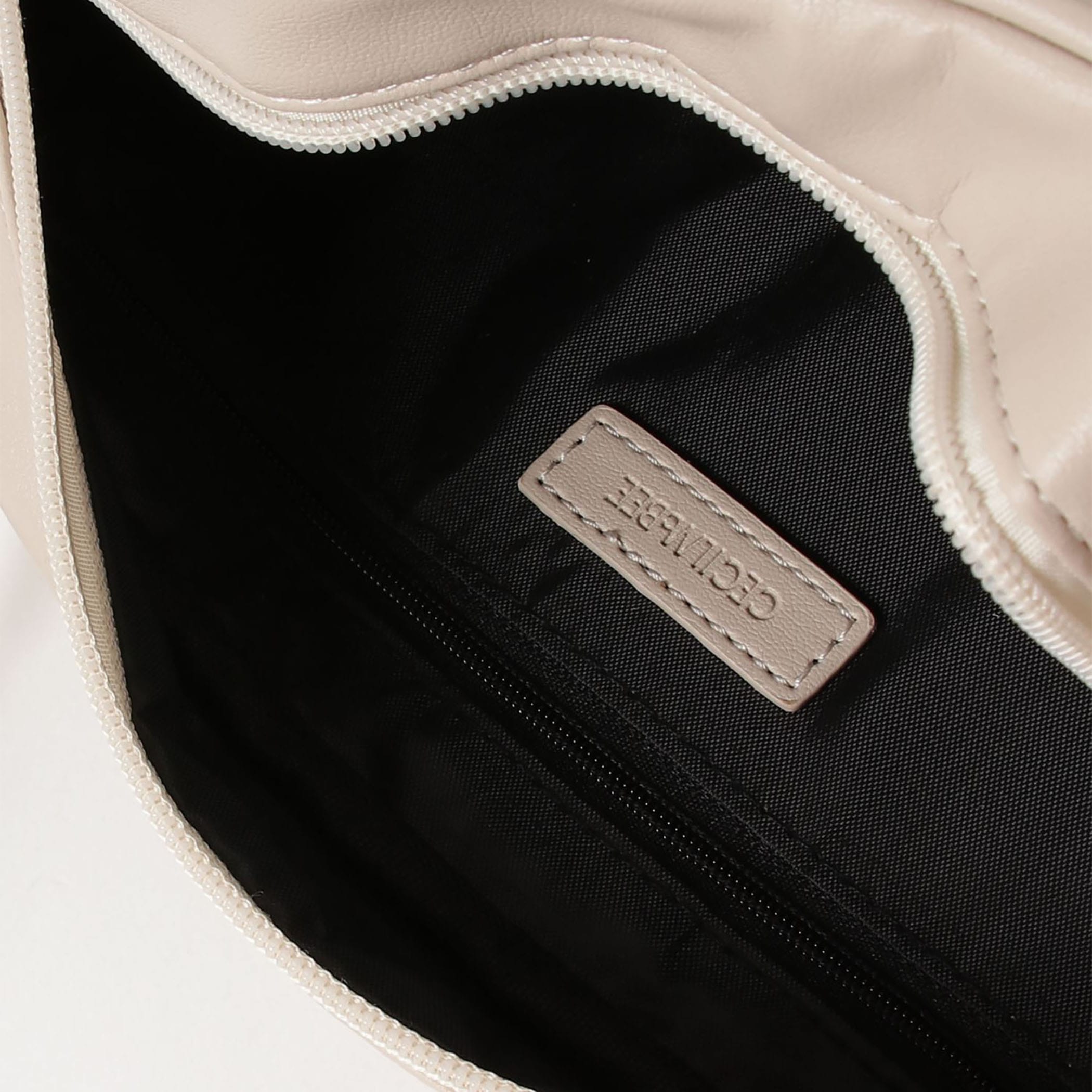 CECIL McBEEの定番アイコン、キルティング加工を施したバッグシリーズ。開口ファスナー。背胴側ファスナーポケット1。内装前胴側オープンポケット1。背胴側ファスナーポケット1。