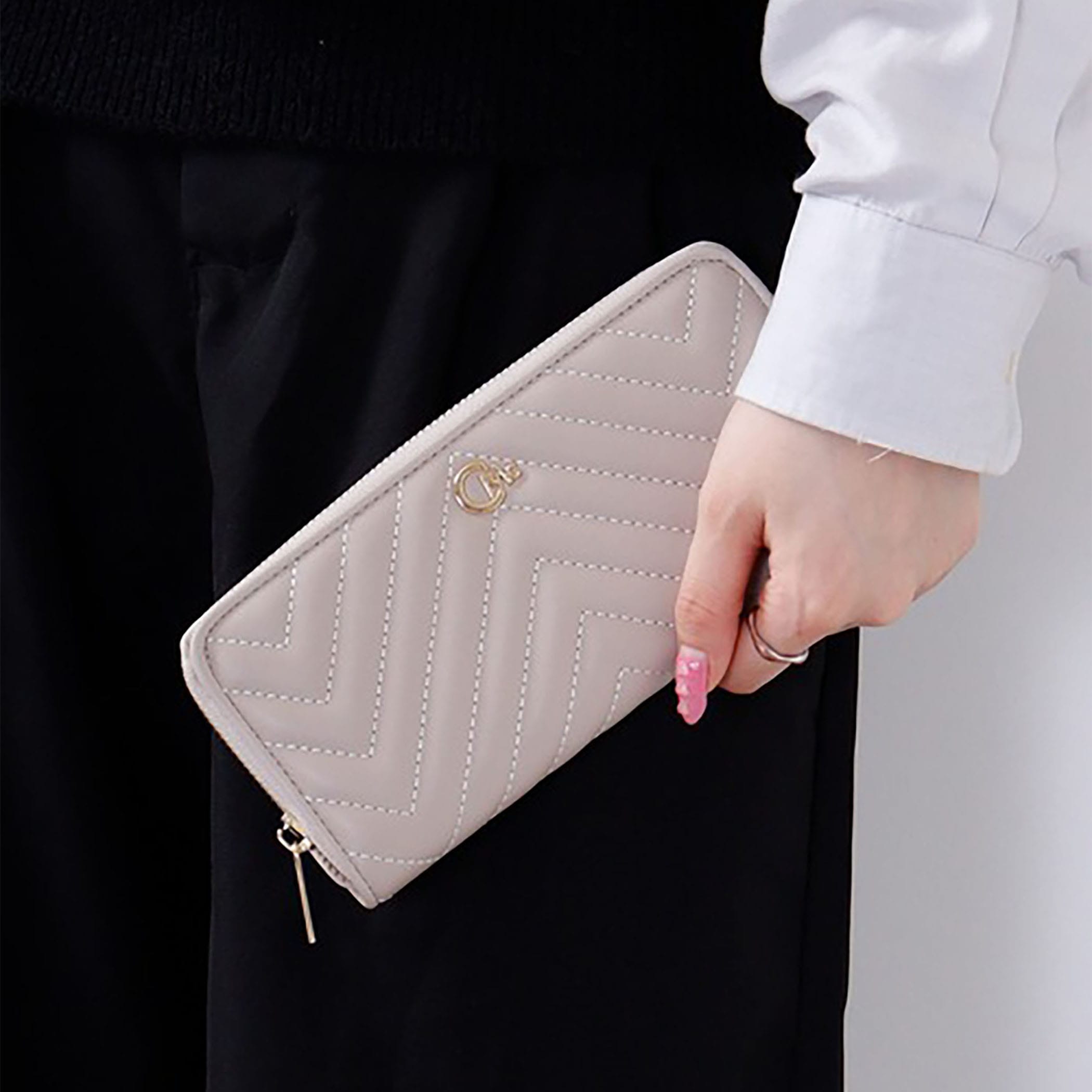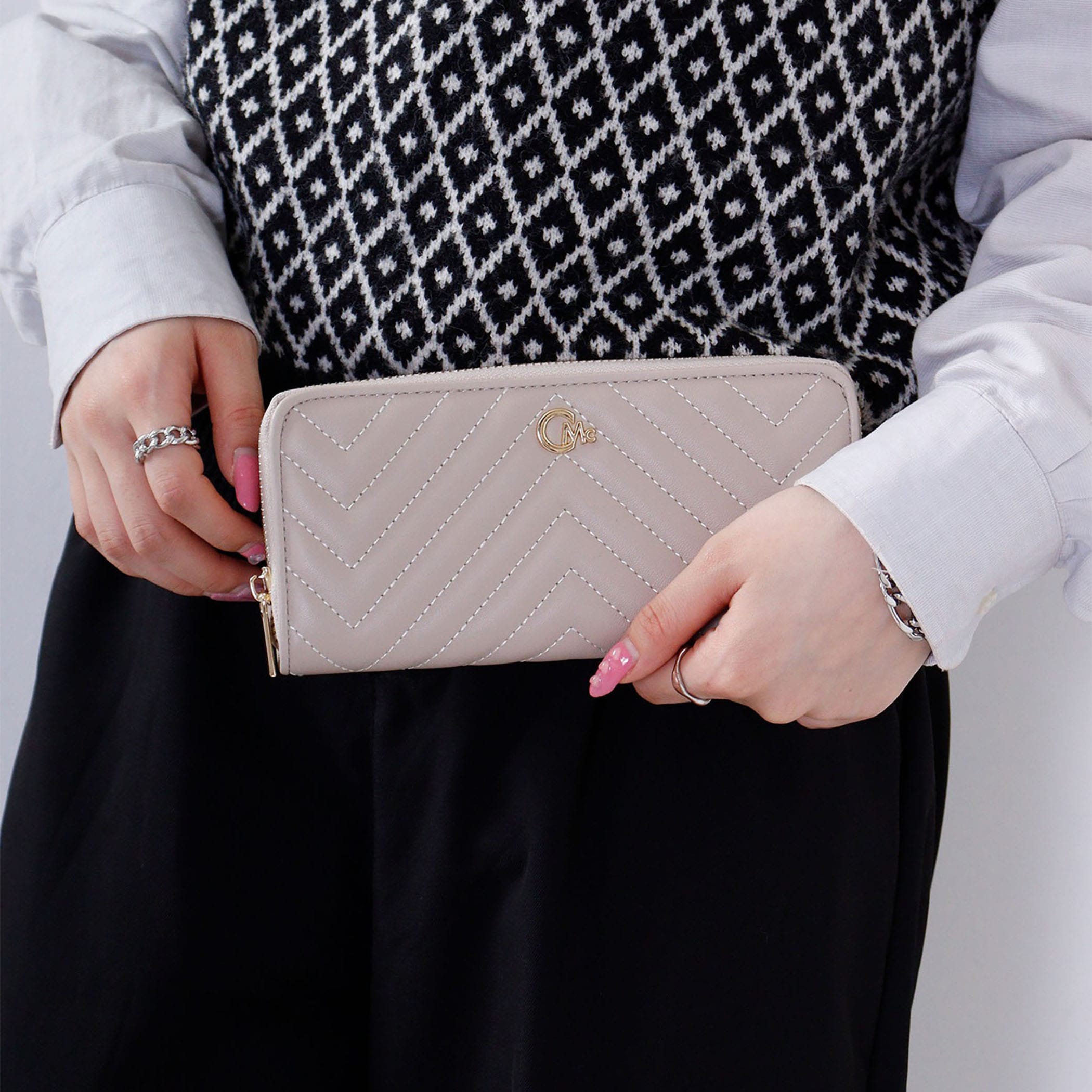 CECIL McBEEの定番アイコン、キルティング加工を羊革に施したお財布シリーズ。背胴側オープンポケット1。内装 中仕切り3。小銭入れ中仕切り付き1。カードポケット12。オープンポケット1。
