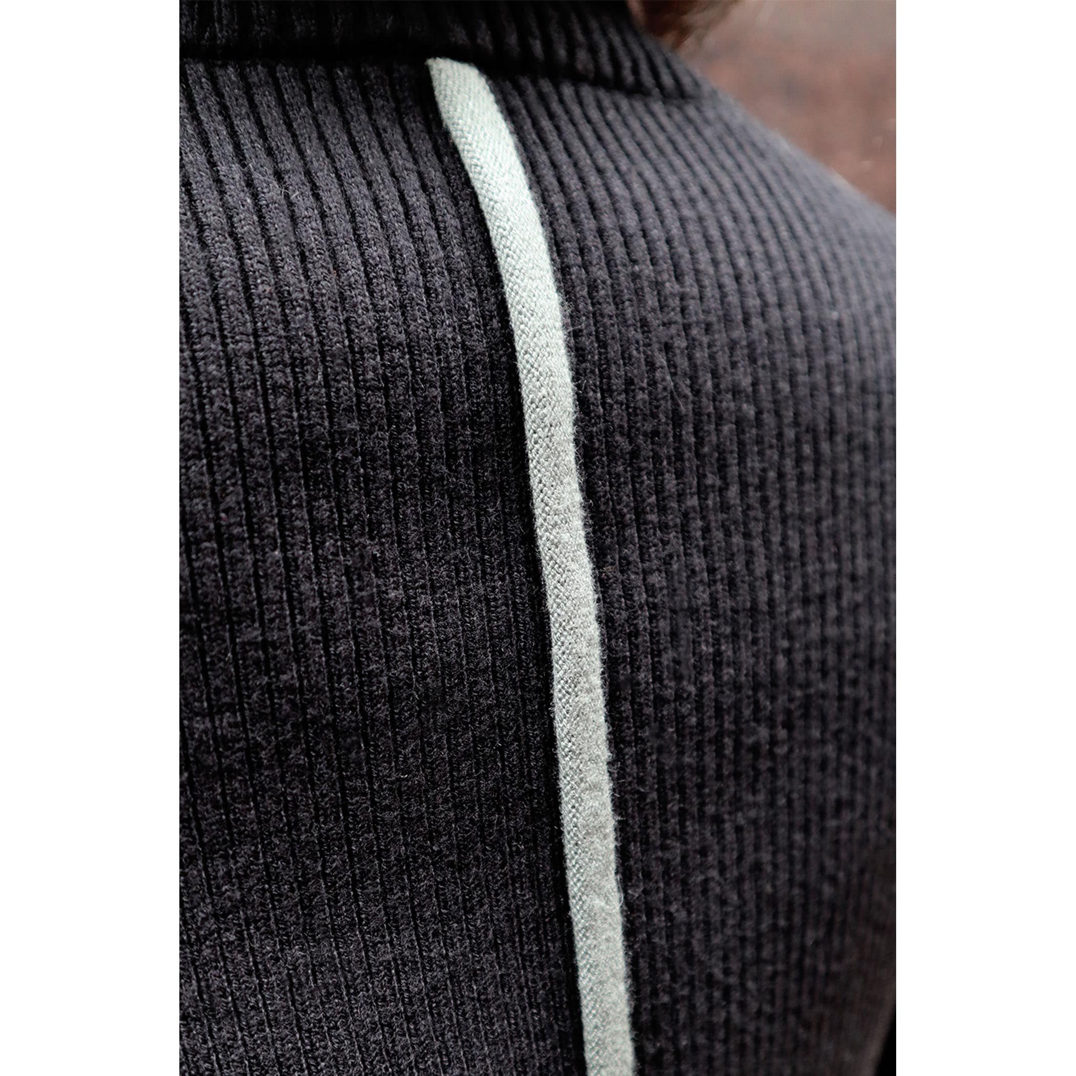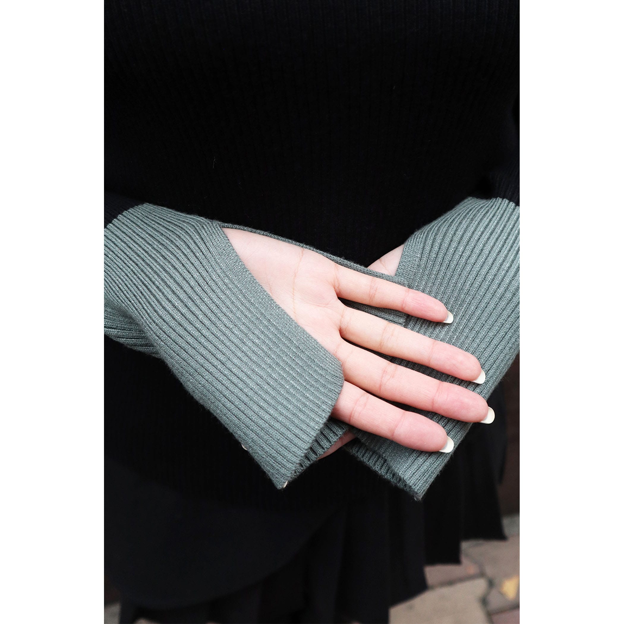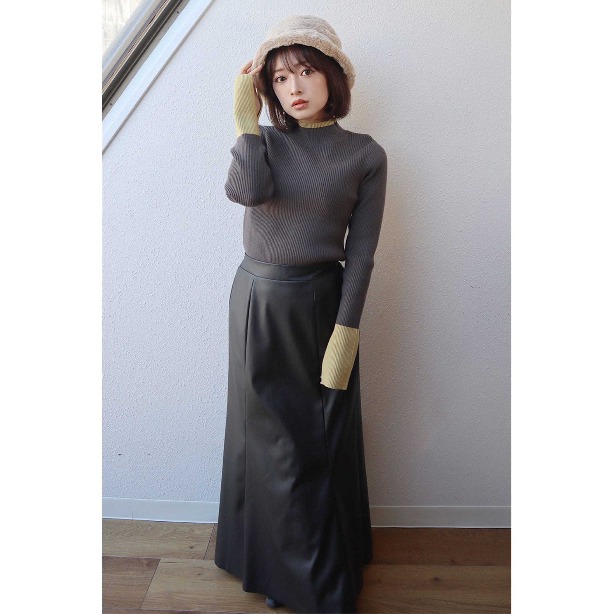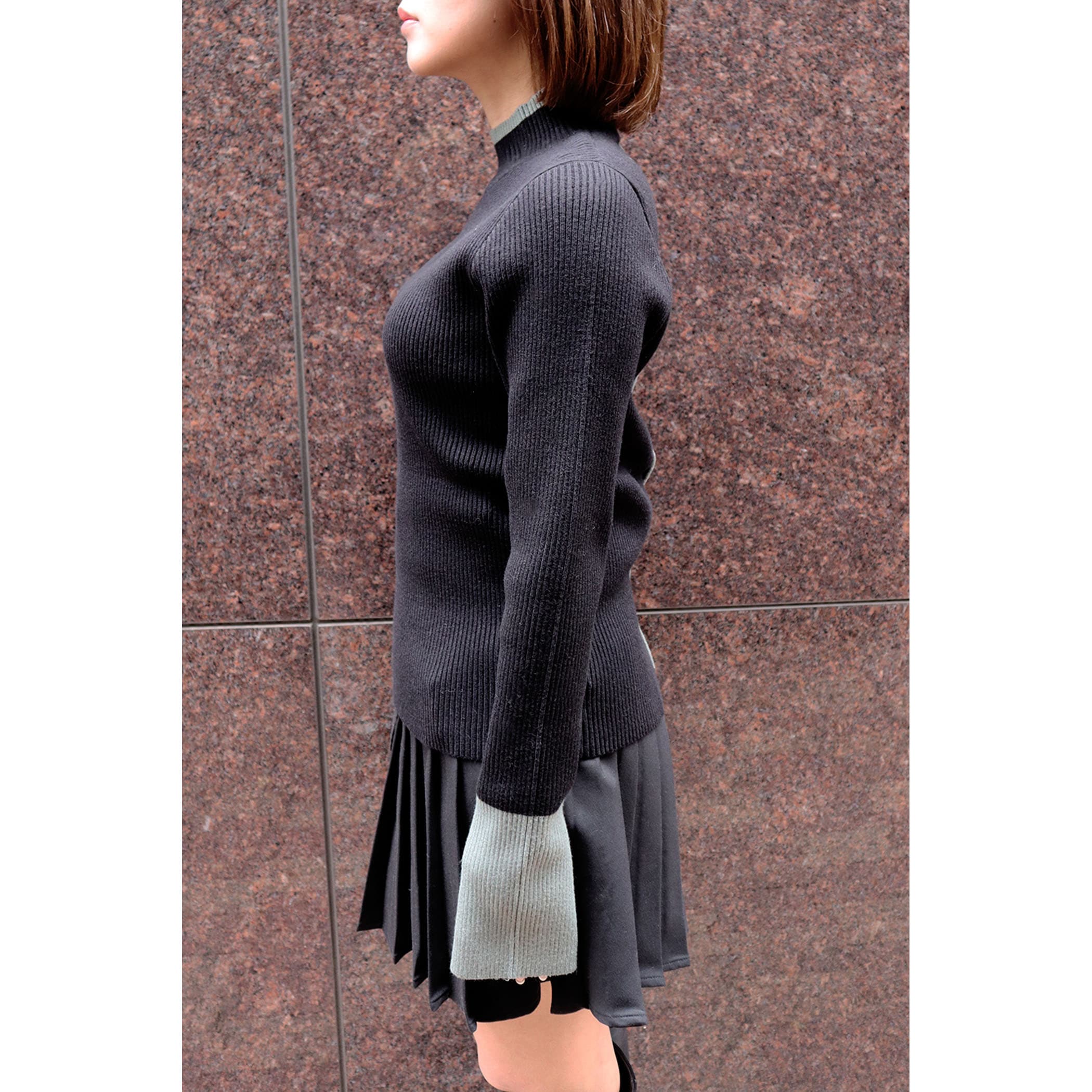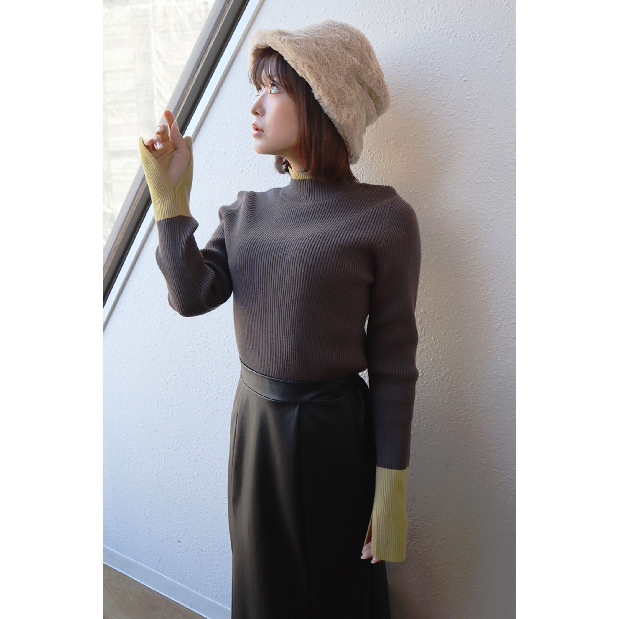 バイカラーがアクセントになるリブニット。安心感のある肉厚な生地とややハリ感のある素材で、伸縮性もあり着心地抜群です!ニット特有のチクチク感もありません!配色デザインですがシンプルなので着回しのきく一枚です。