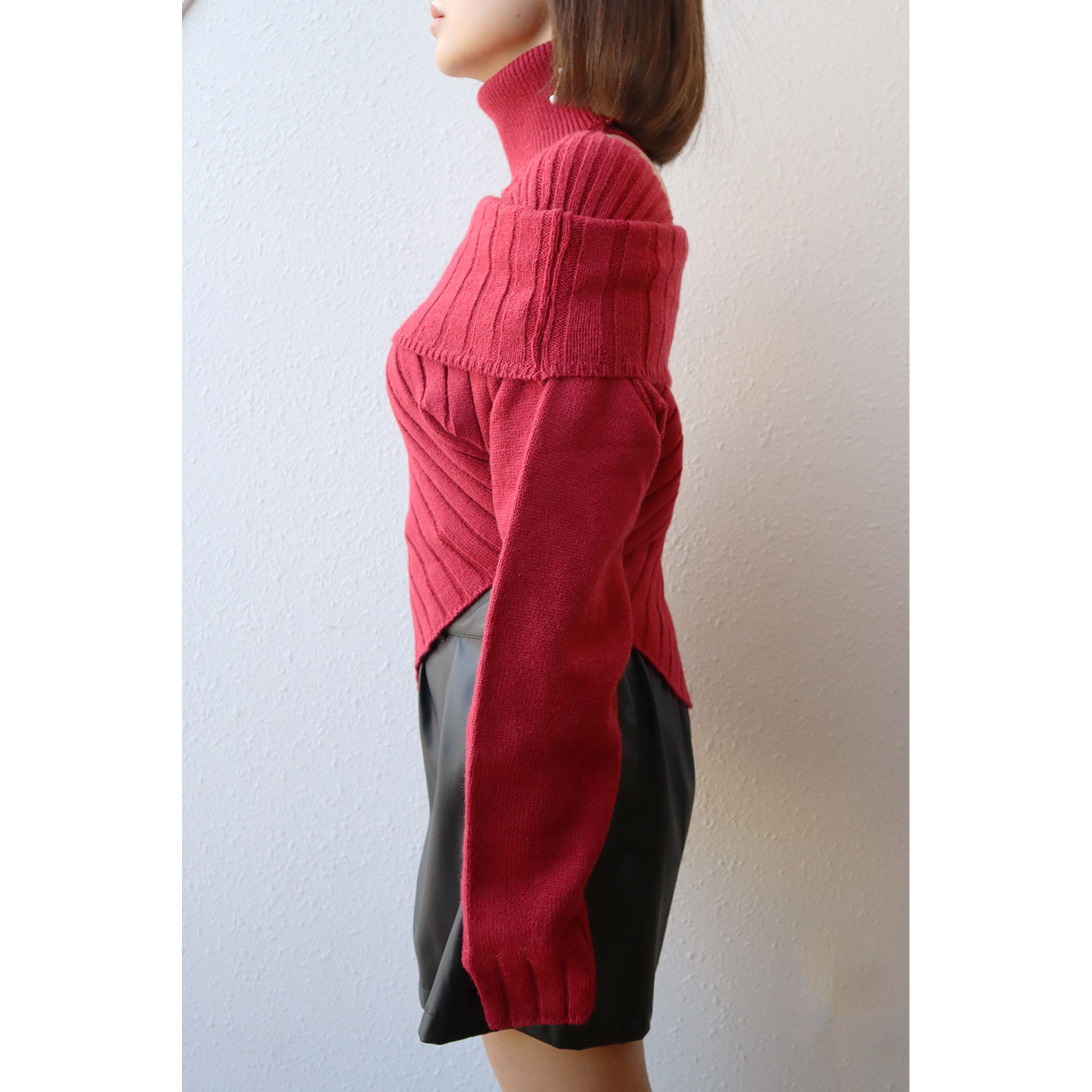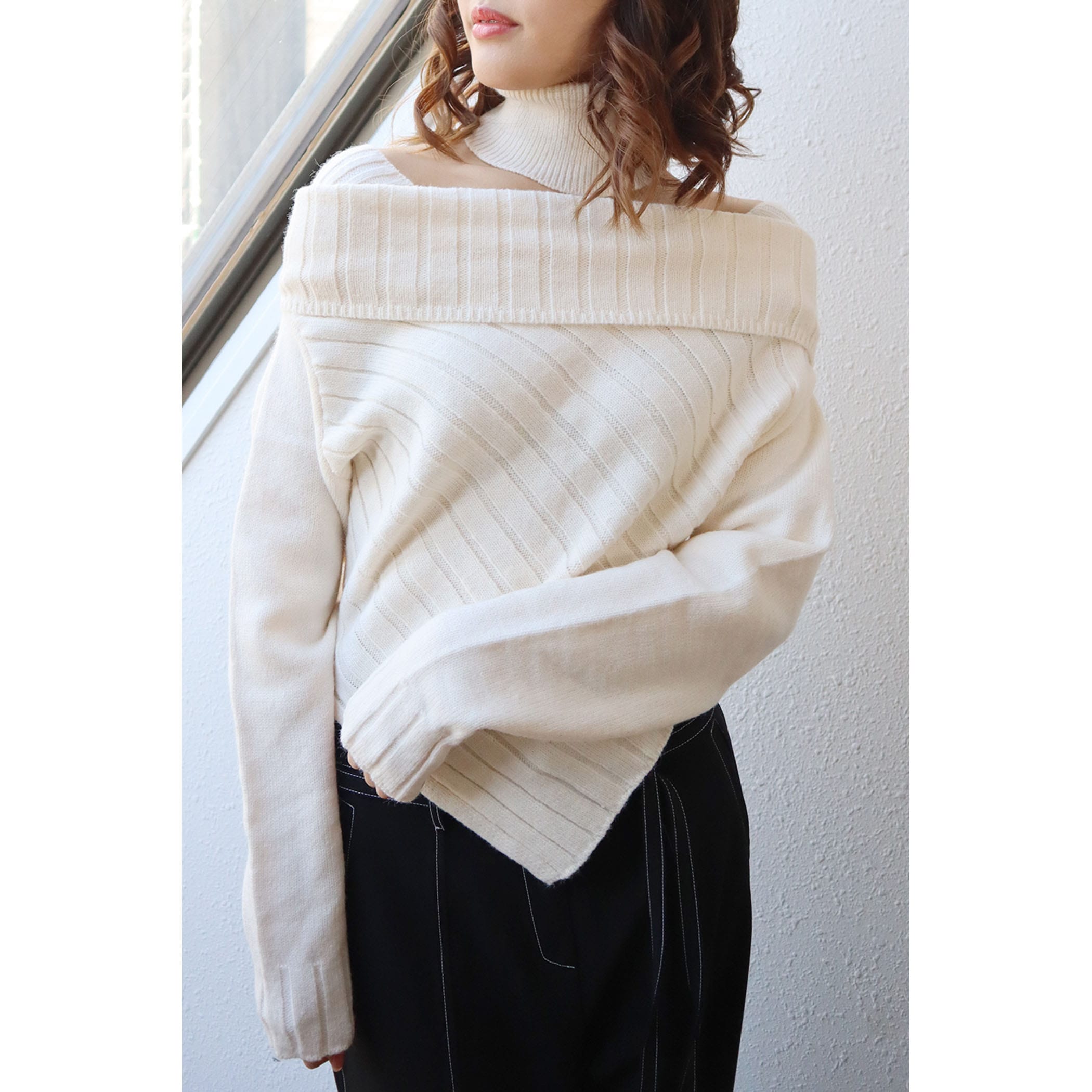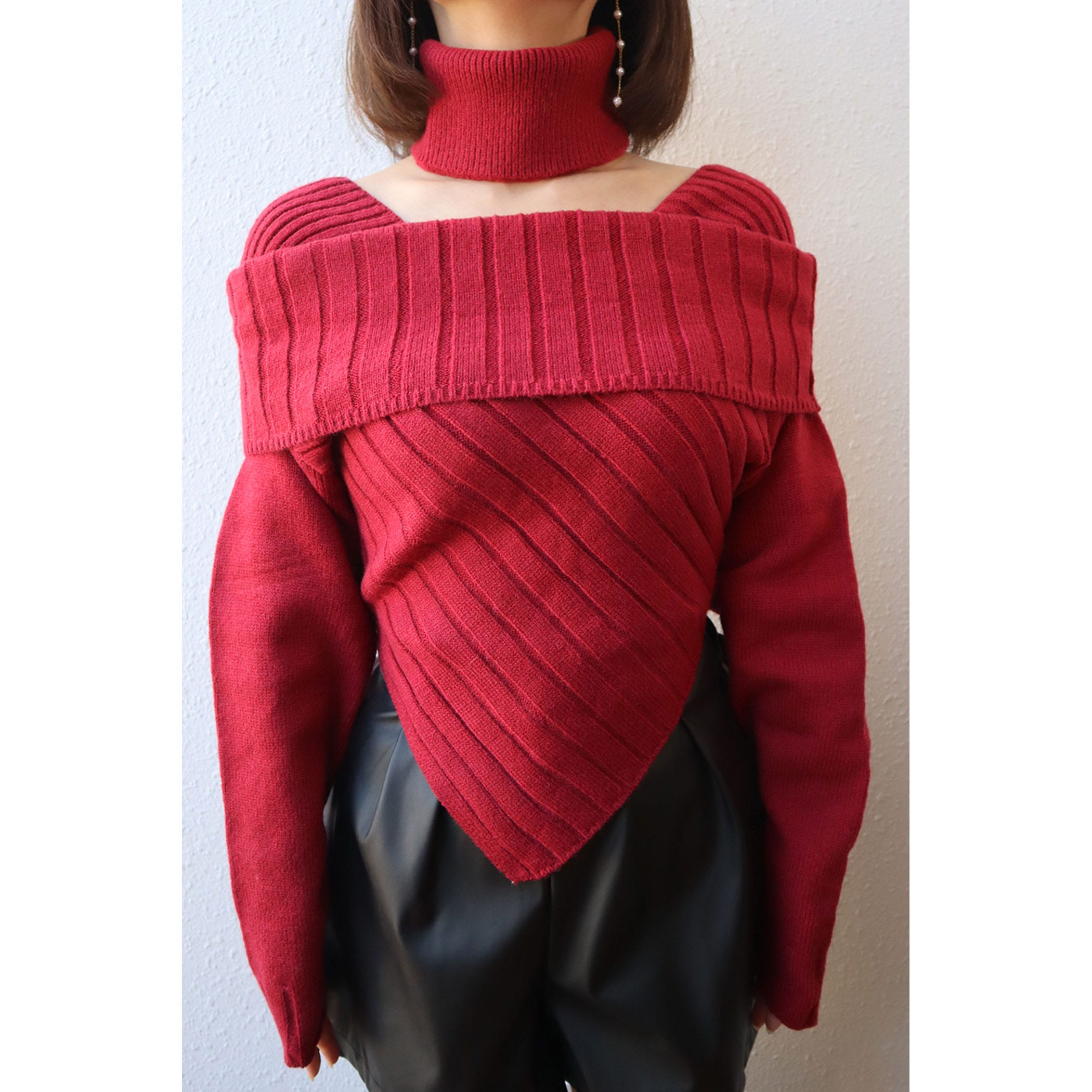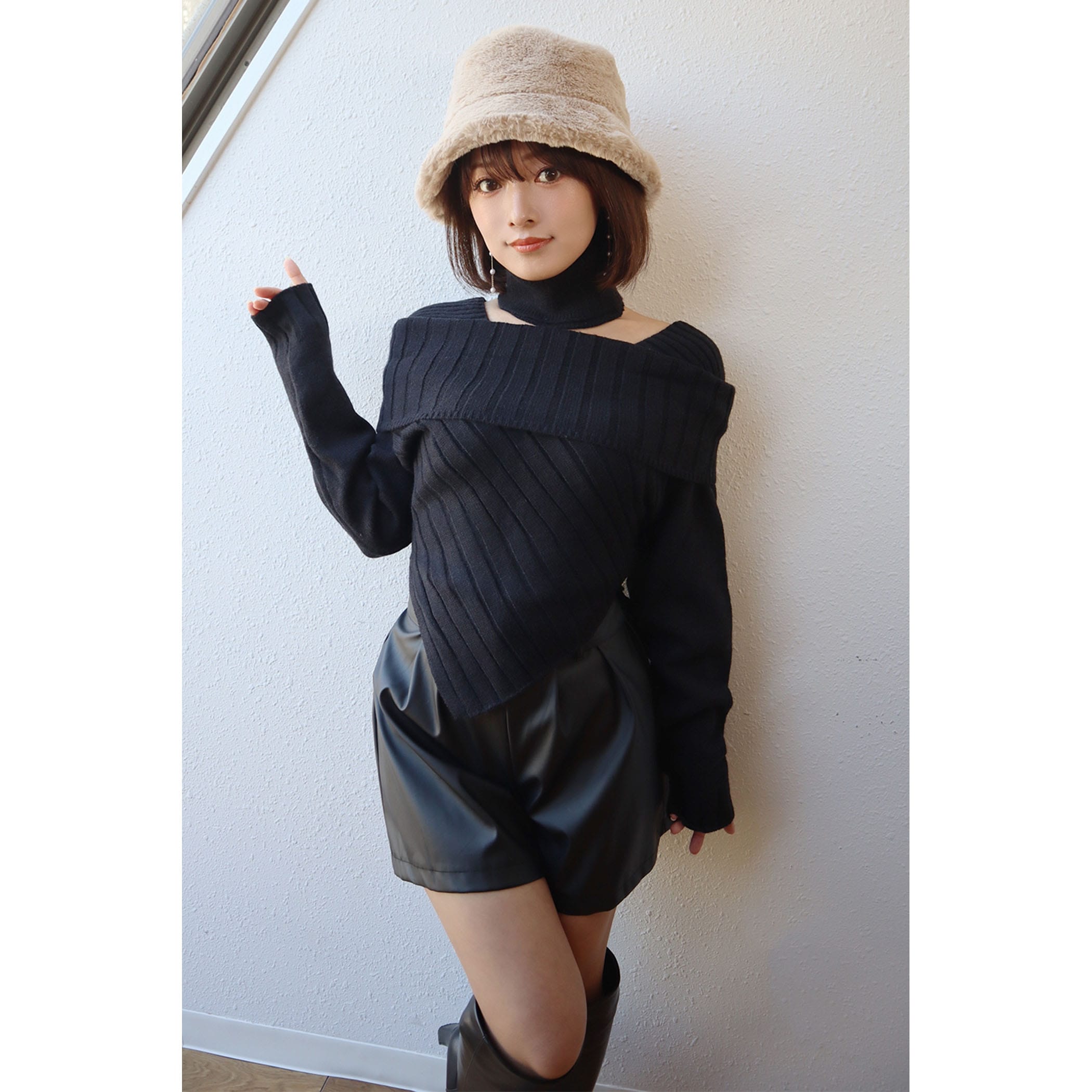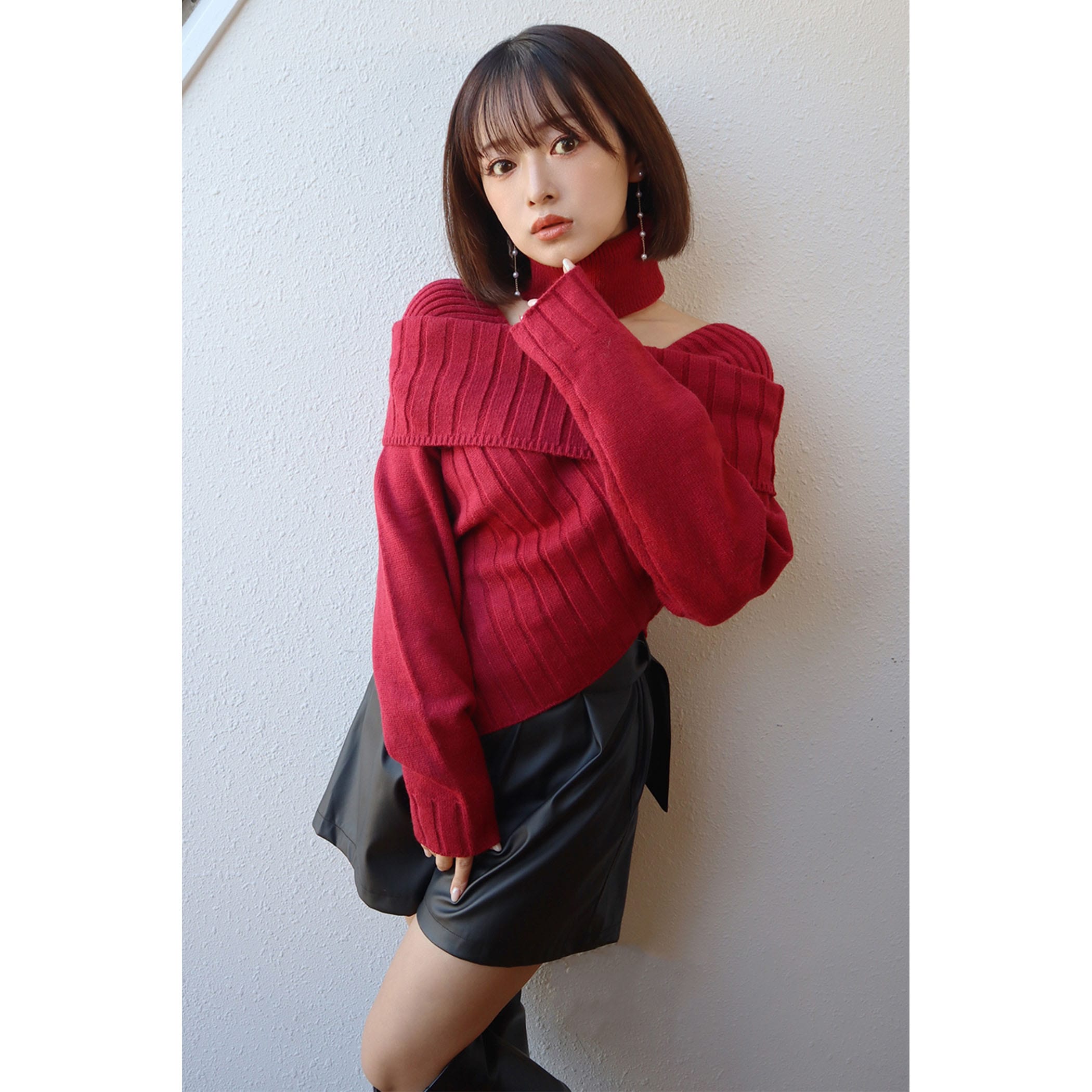 トレンド感のあるオフショルデザインで仕上げたリブニットです。程よい肌見せでデコルテラインをキレイに見せ、小顔効果も狙えます◎やわらかなタッチがよりキュートな印象を与え、女性らしい着こなしを実現。変形デザインとが他と被らないので1枚持っているとコーデの巾が広がります♪ネックウォーマー付きで首元も暖かいのもうれしいポイント。