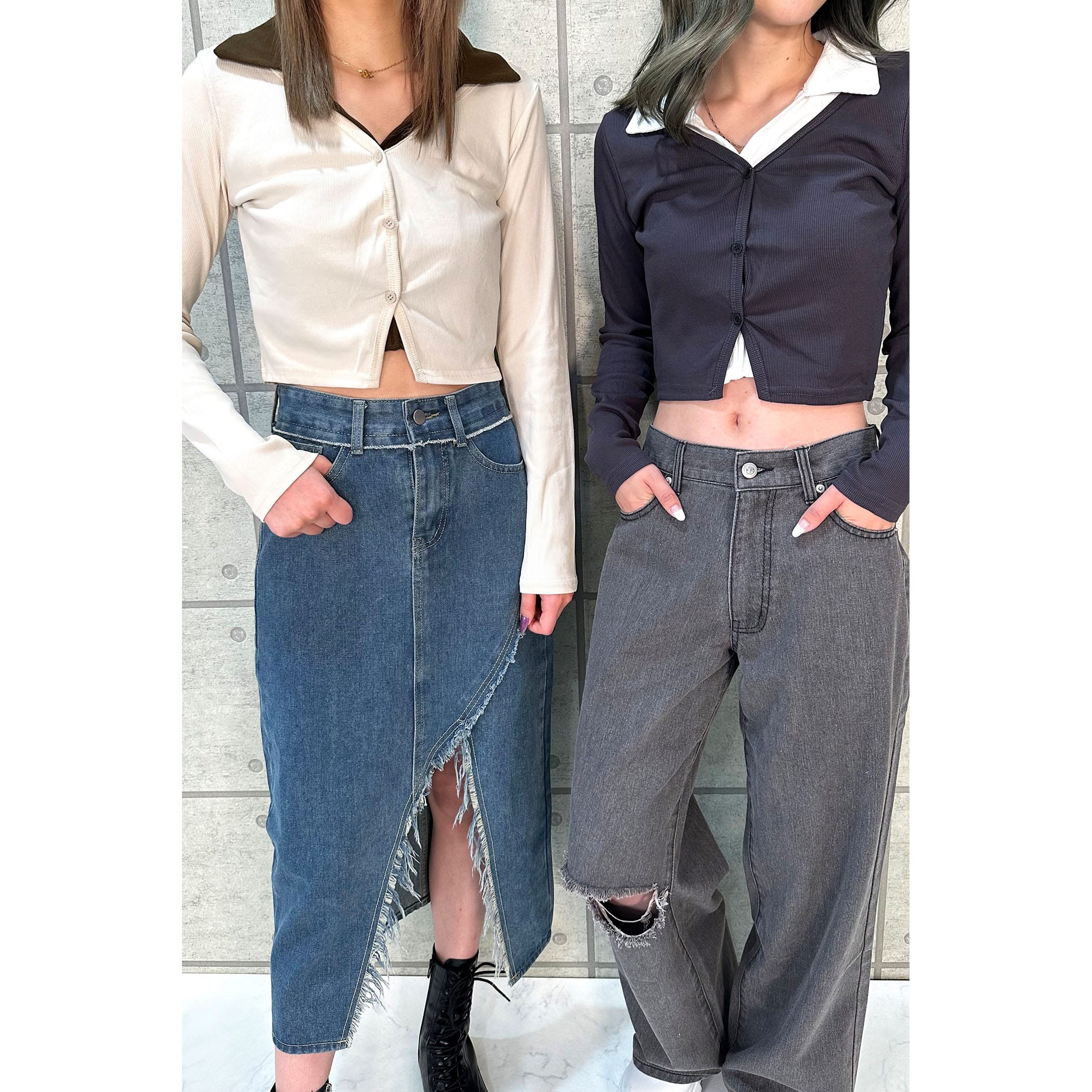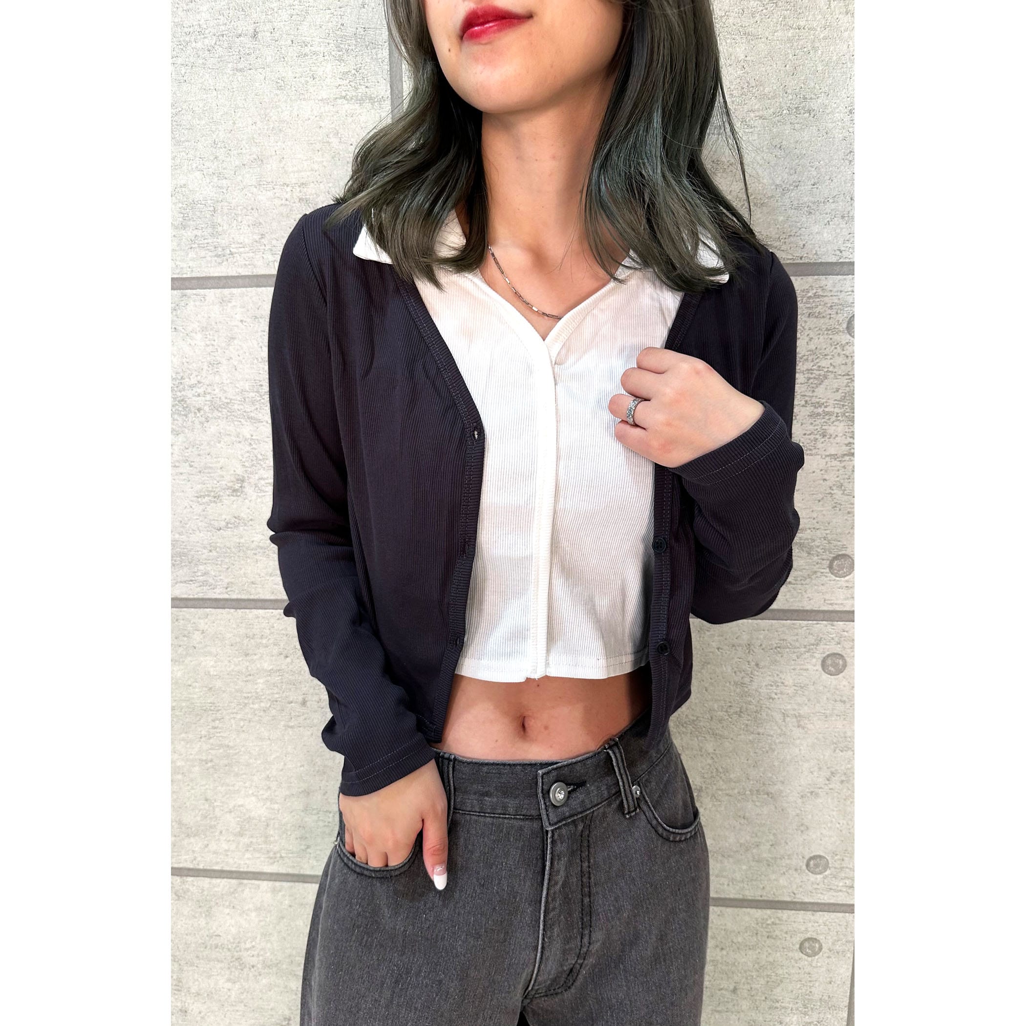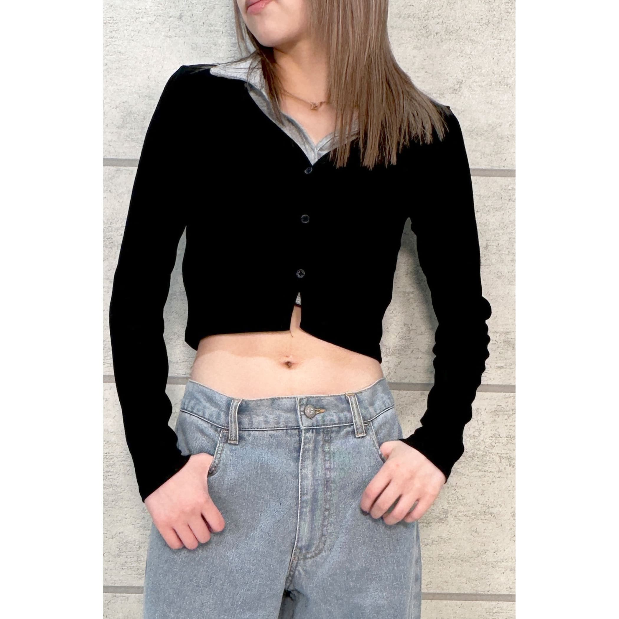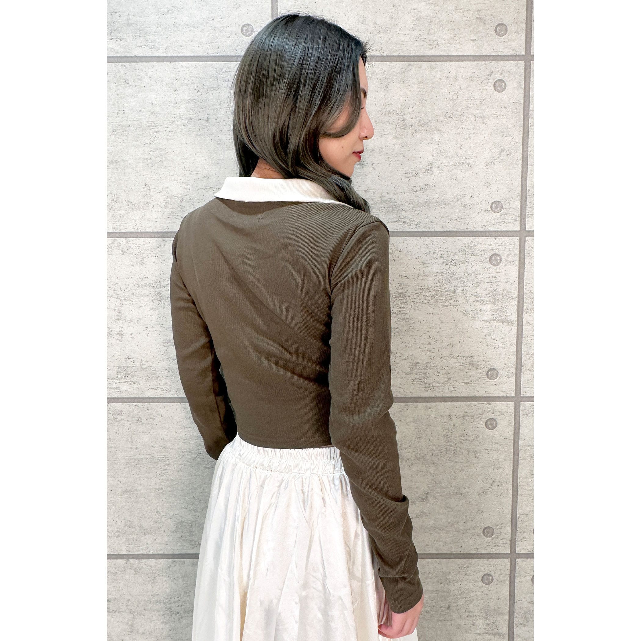 トレンドの配色のポロ衿トップス。程よくフィット感のあるシルエットが女性らしい印象に。カジュアルなデニムパンツからスカート、きれいめのスラックスなど幅広いボトムスと相性が良く着回し抜群の一枚です。