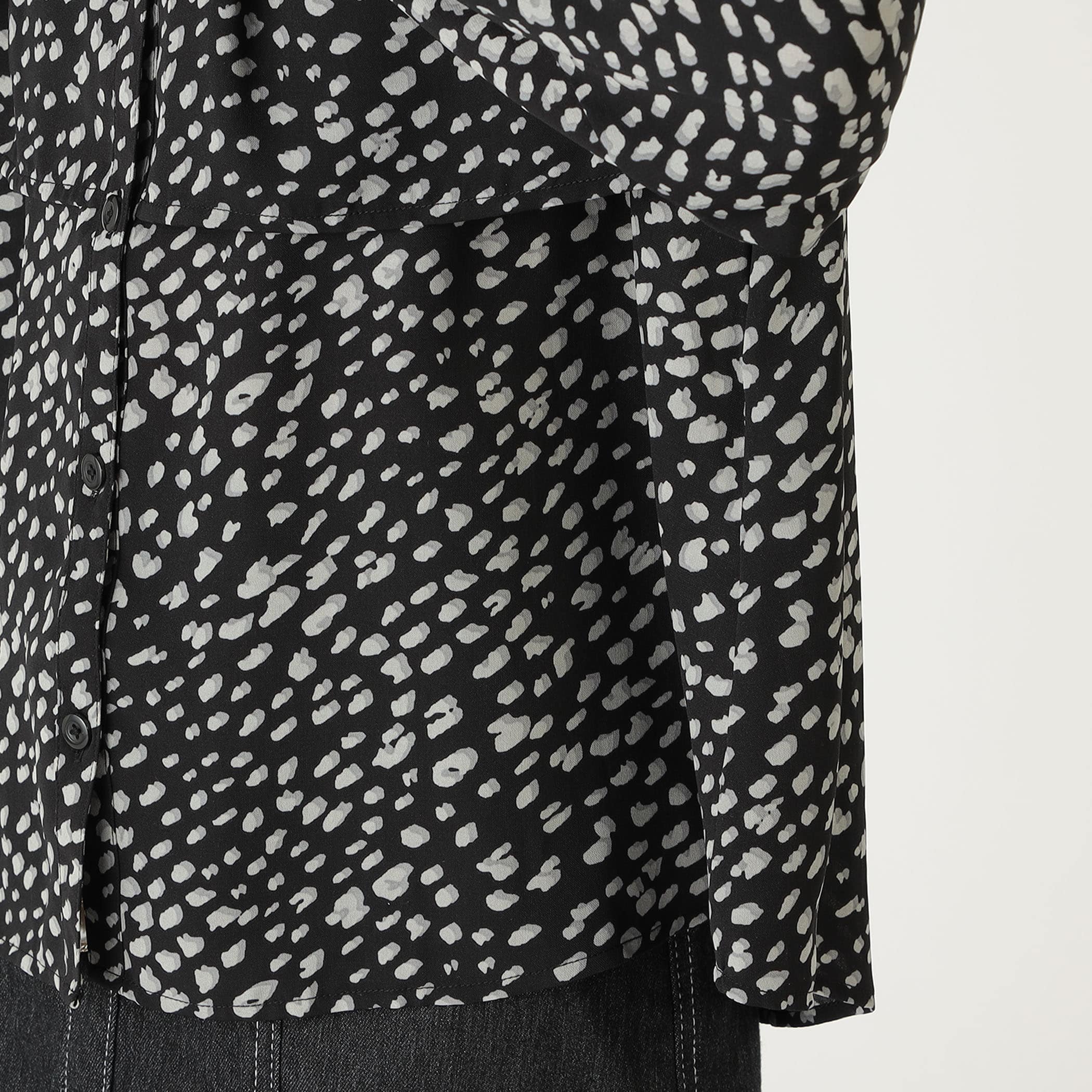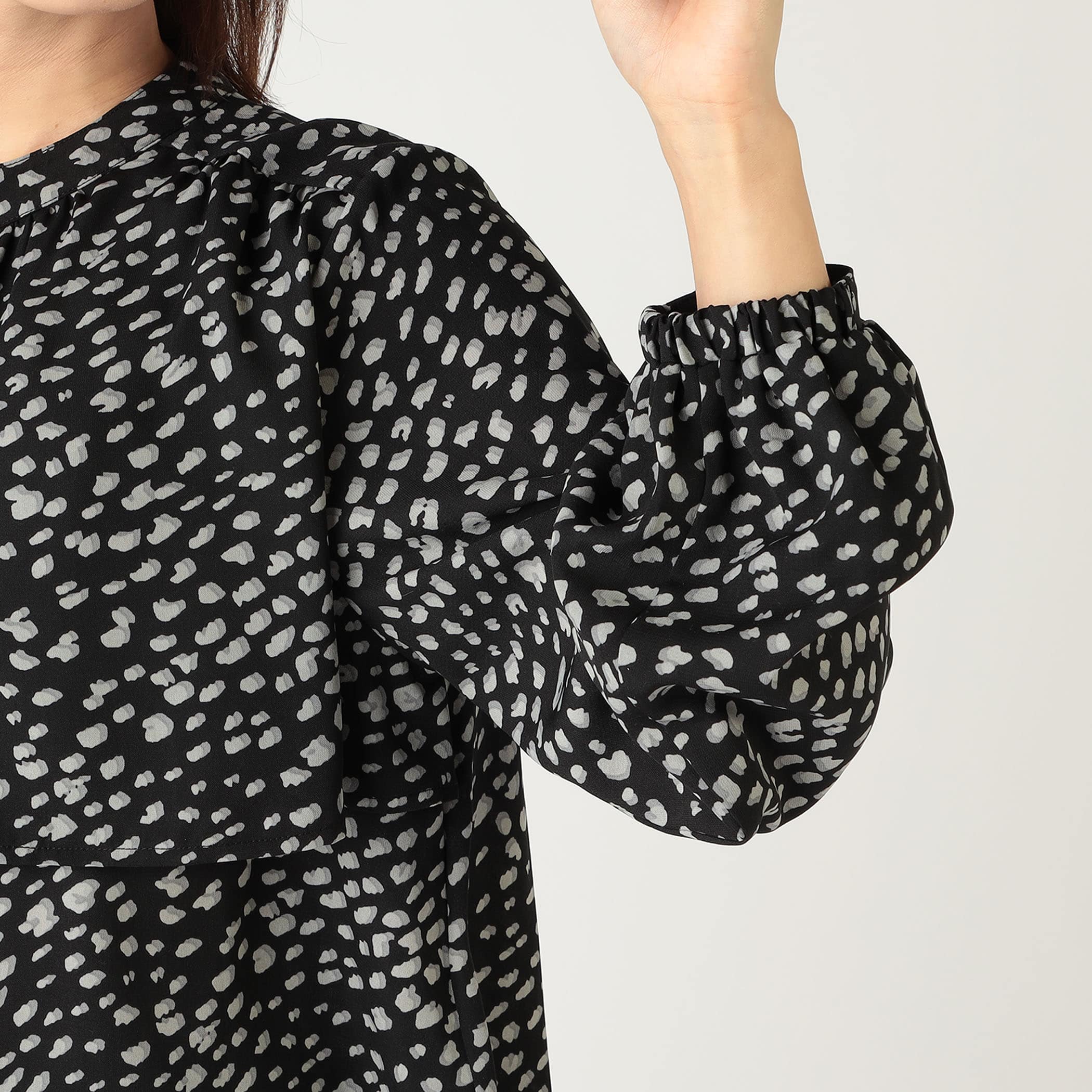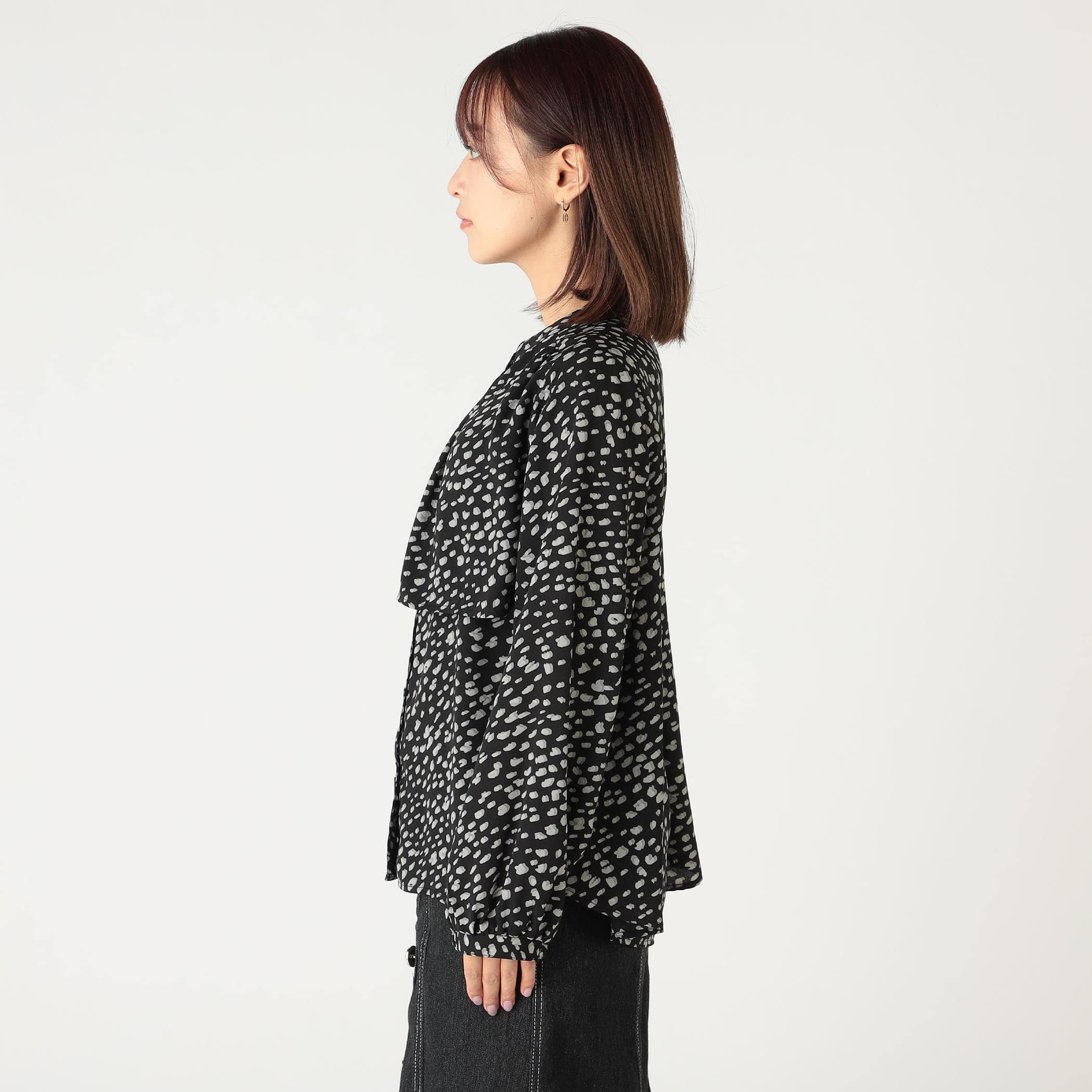 今期トレンドのケープデザインがポイントのブラウス☆シンプルなダルメシアン柄がコーディネートのアクセントに◎袖口もゴム仕様になっており脱ぎ着しやすいです。