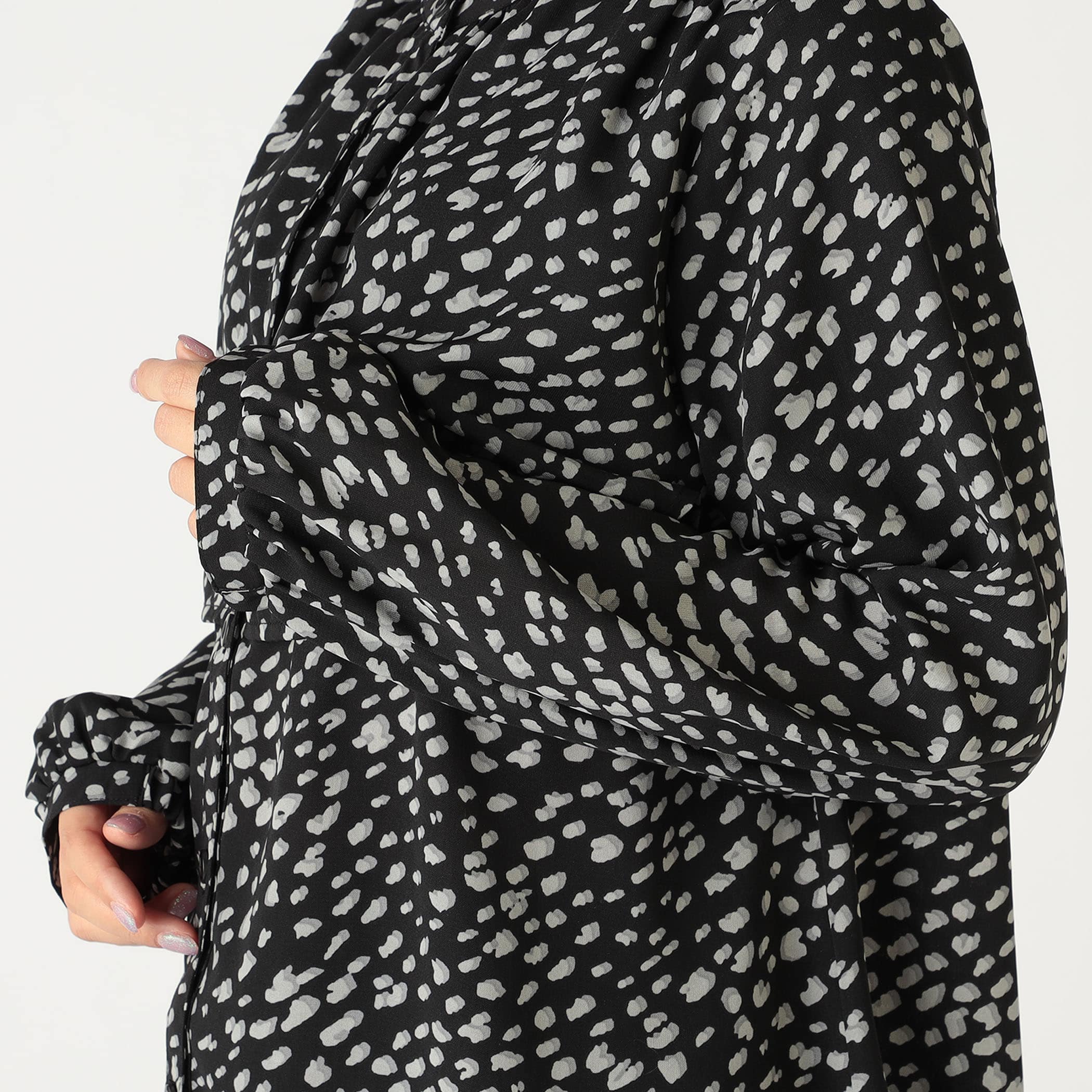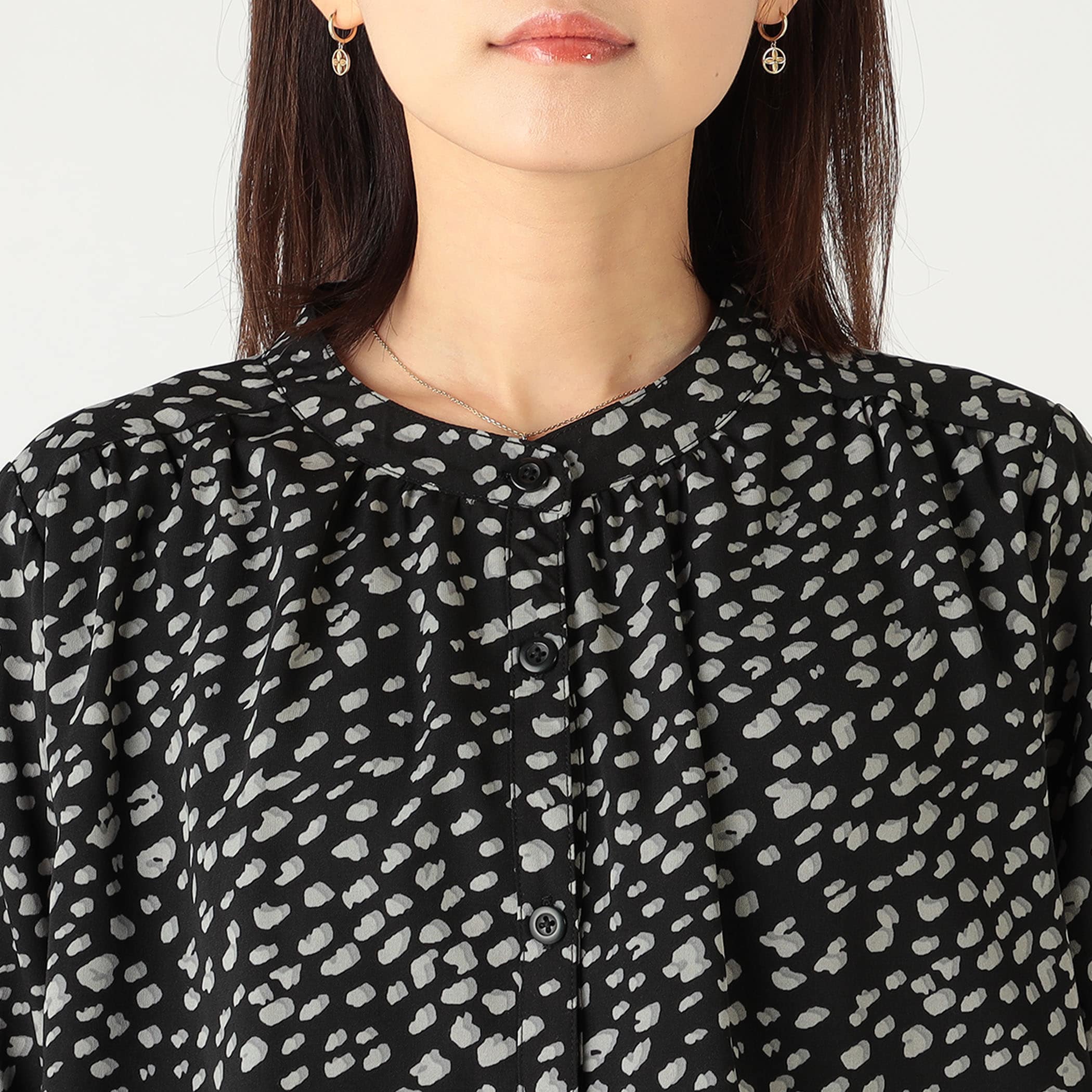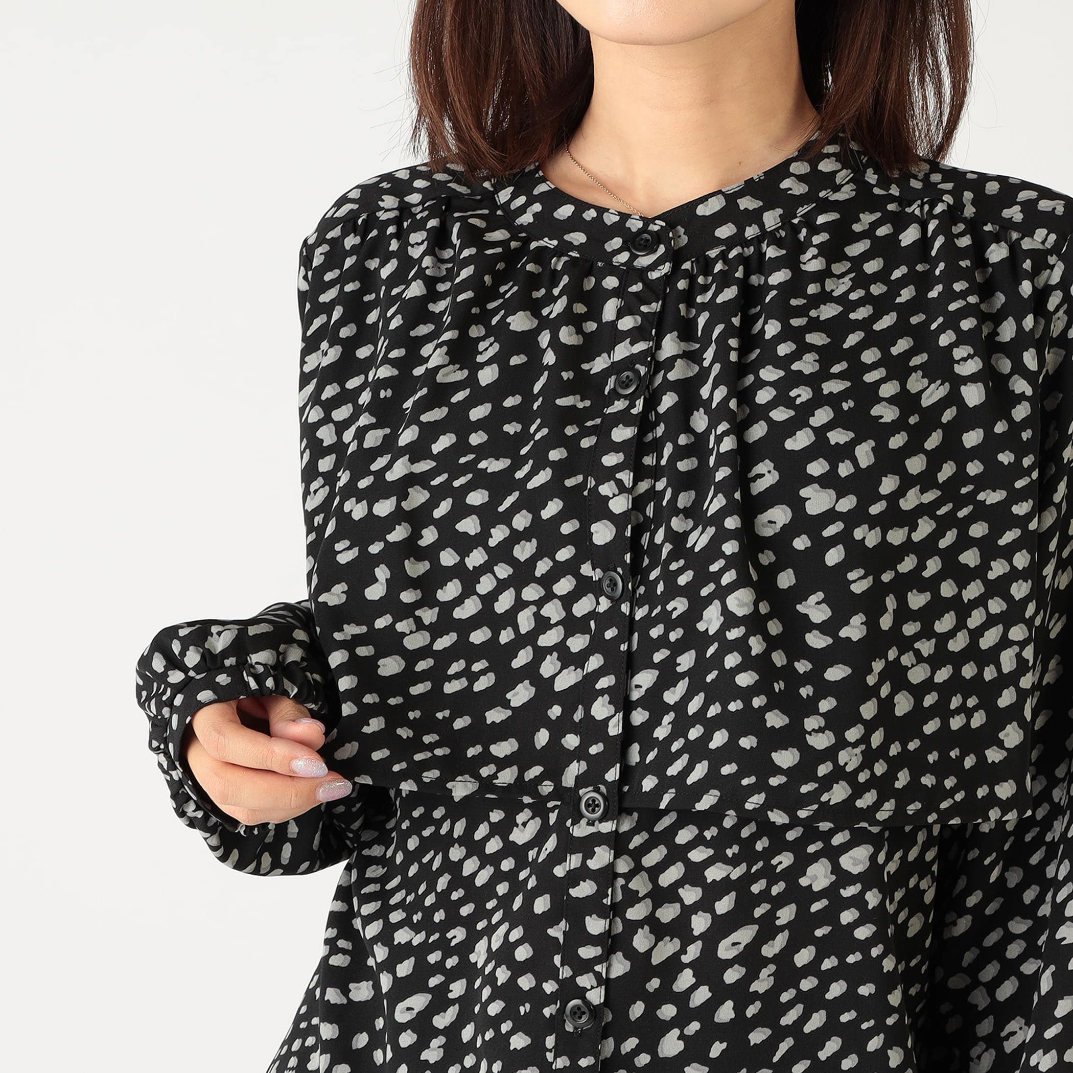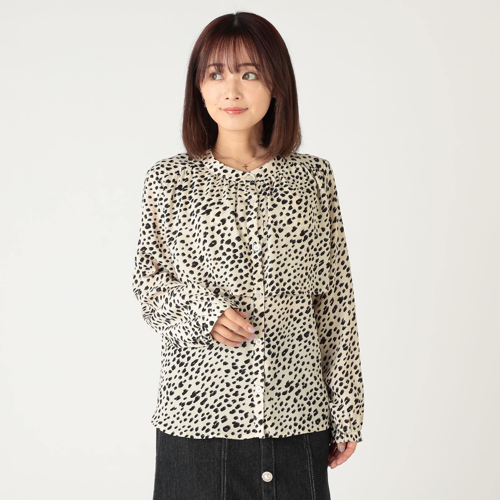 今期トレンドのケープデザインがポイントのブラウス☆シンプルなダルメシアン柄がコーディネートのアクセントに◎袖口もゴム仕様になっており脱ぎ着しやすいです。