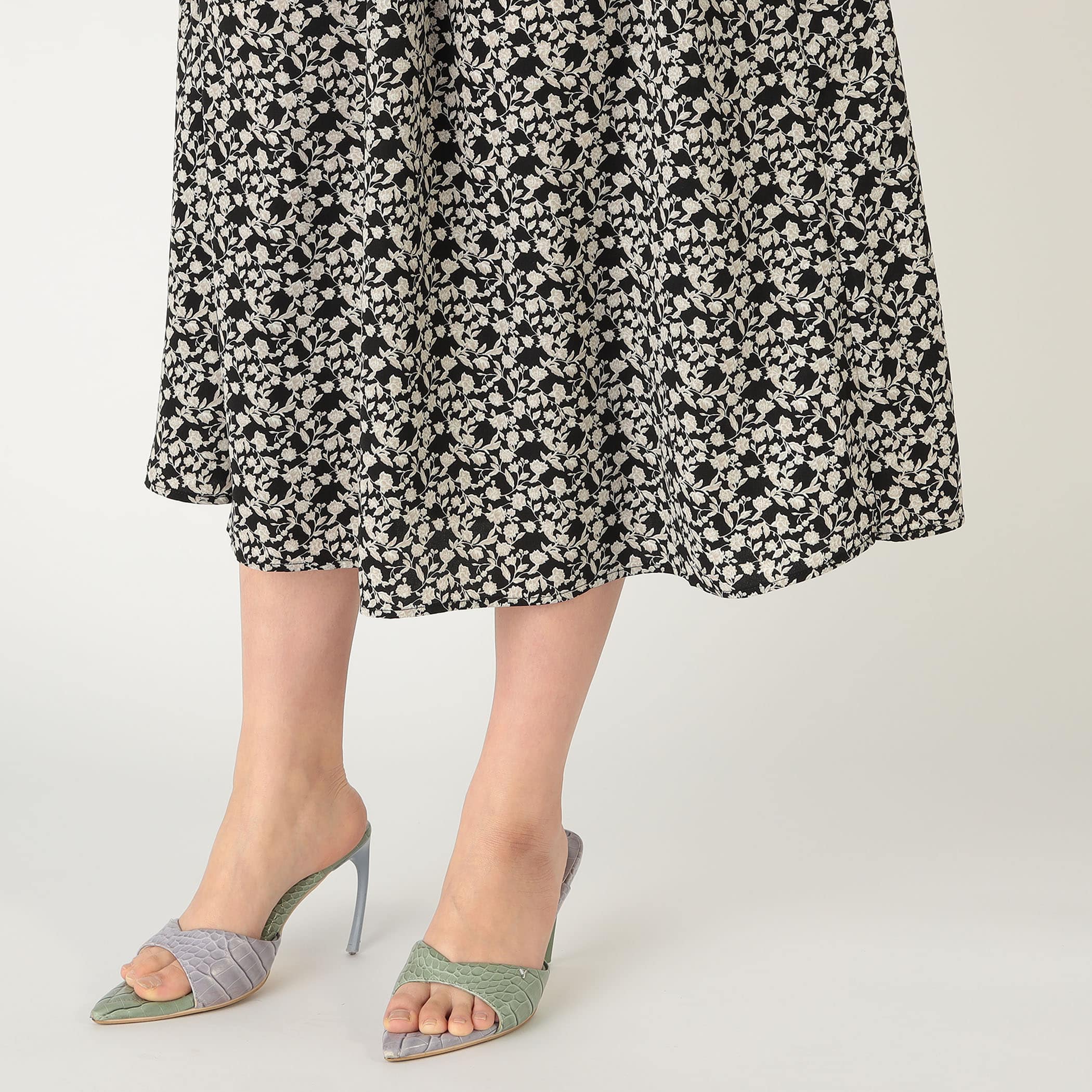 トレンドのケープデザインが可愛い小花柄ワンピース。さらっとした素材でウエスト部分と袖口がゴム仕様になっており、とても着心地が良いです。裾に広がったフレアがきれいなシルエットになっており、春先に1枚で着ても着てもサマになる1着です。☆