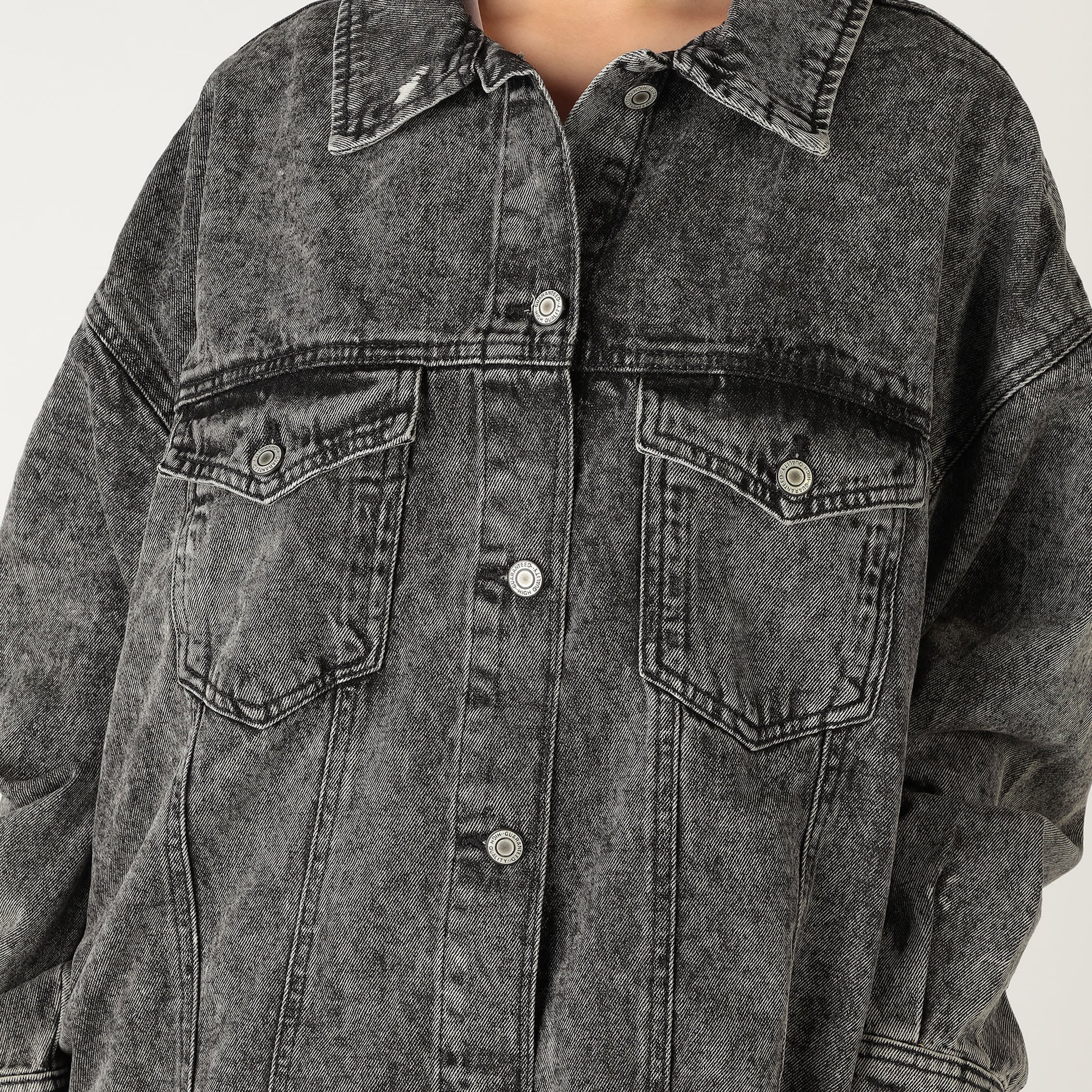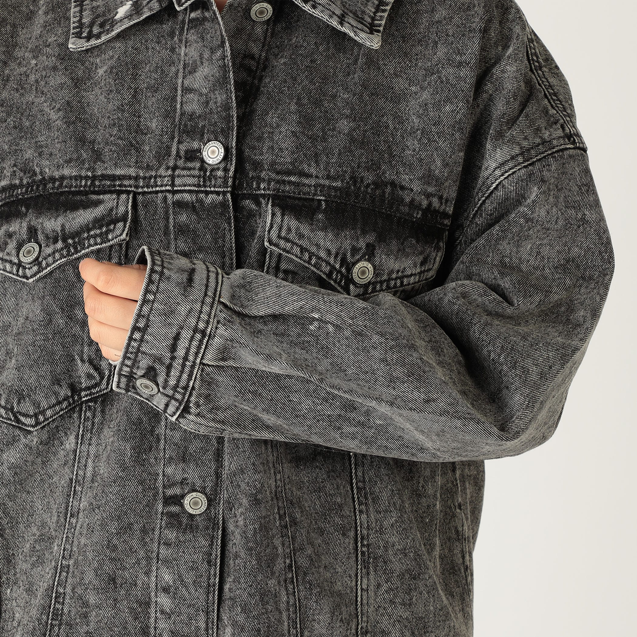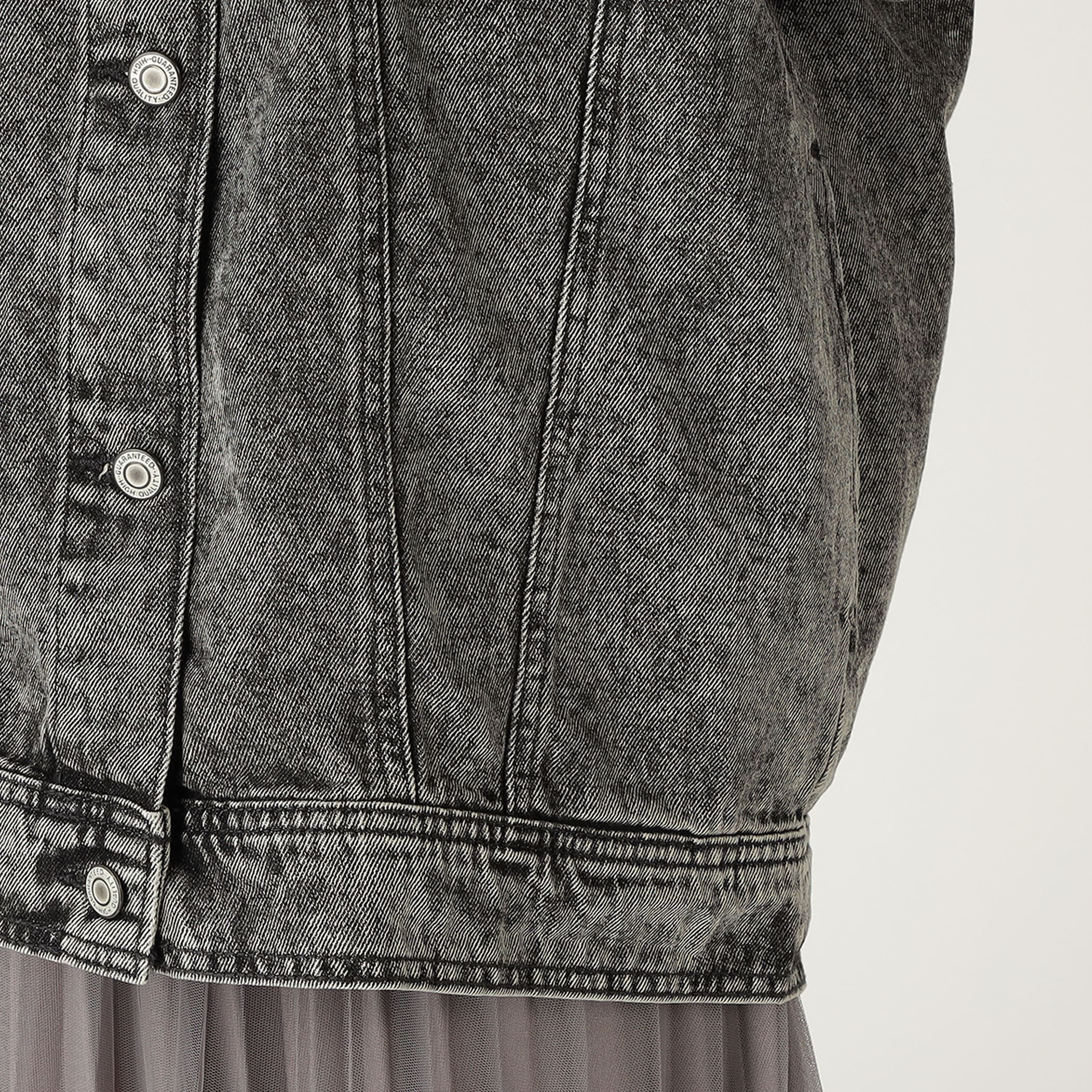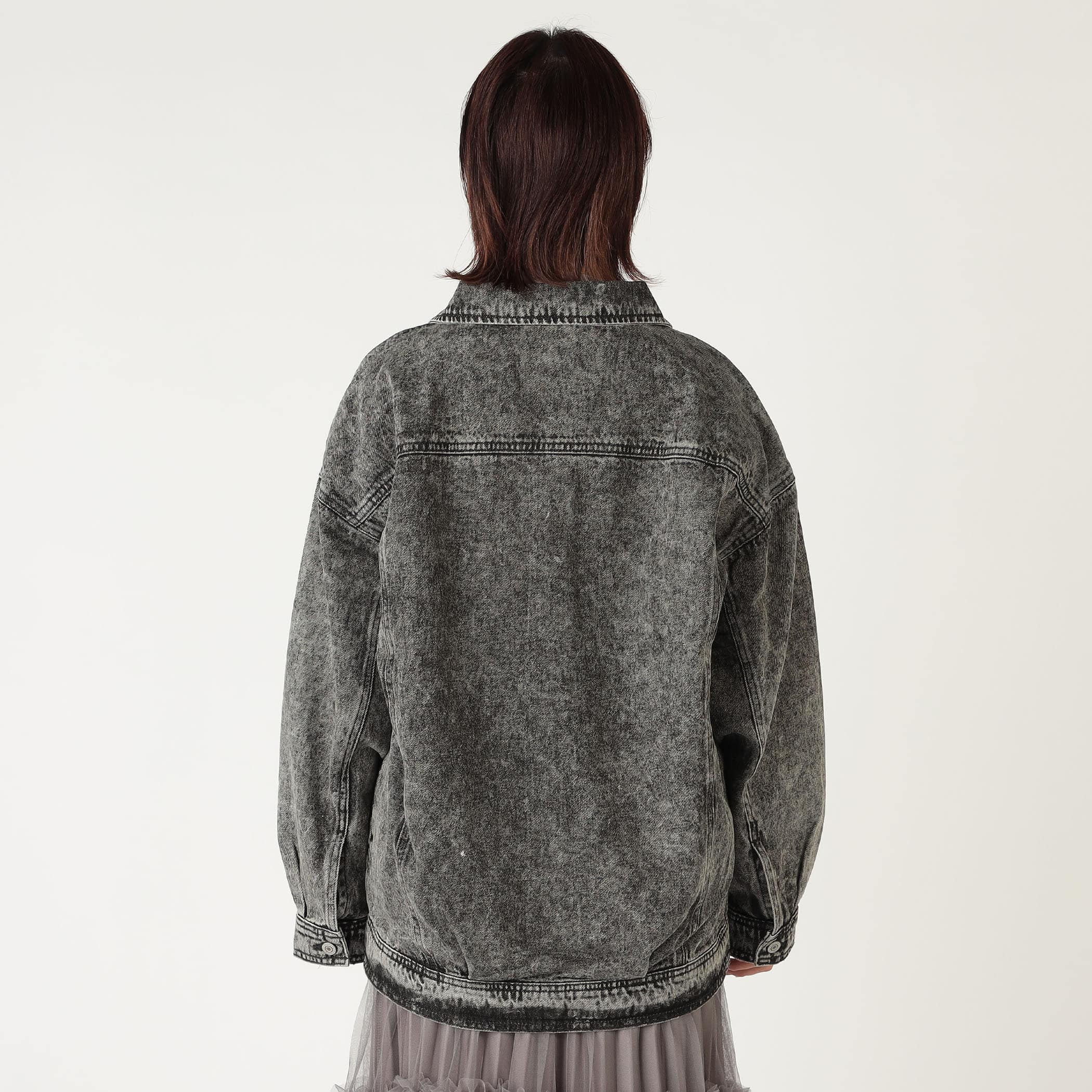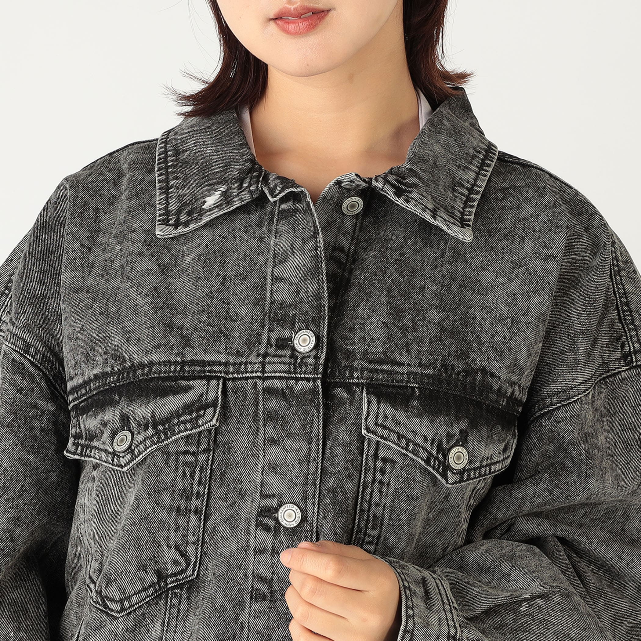 大きめのシルエットが可愛いデニムジャケット☆ゆったりめのサイズ感なので着ぶくれせず、様々なアイテムとのコーディネートに合わせやすい一着です。少し肌寒い時にさっと羽織れるので色んな季節に使えるアイテムです。