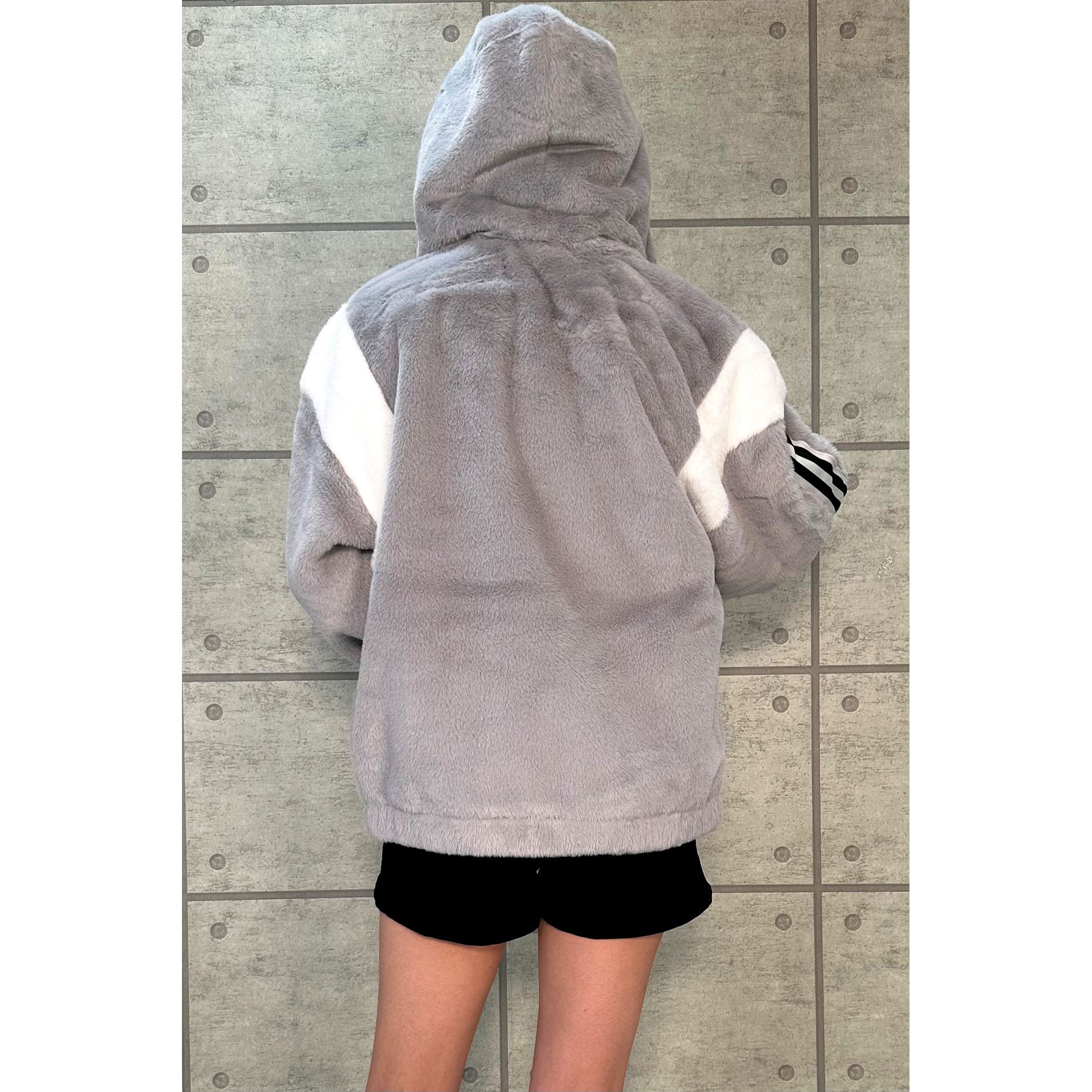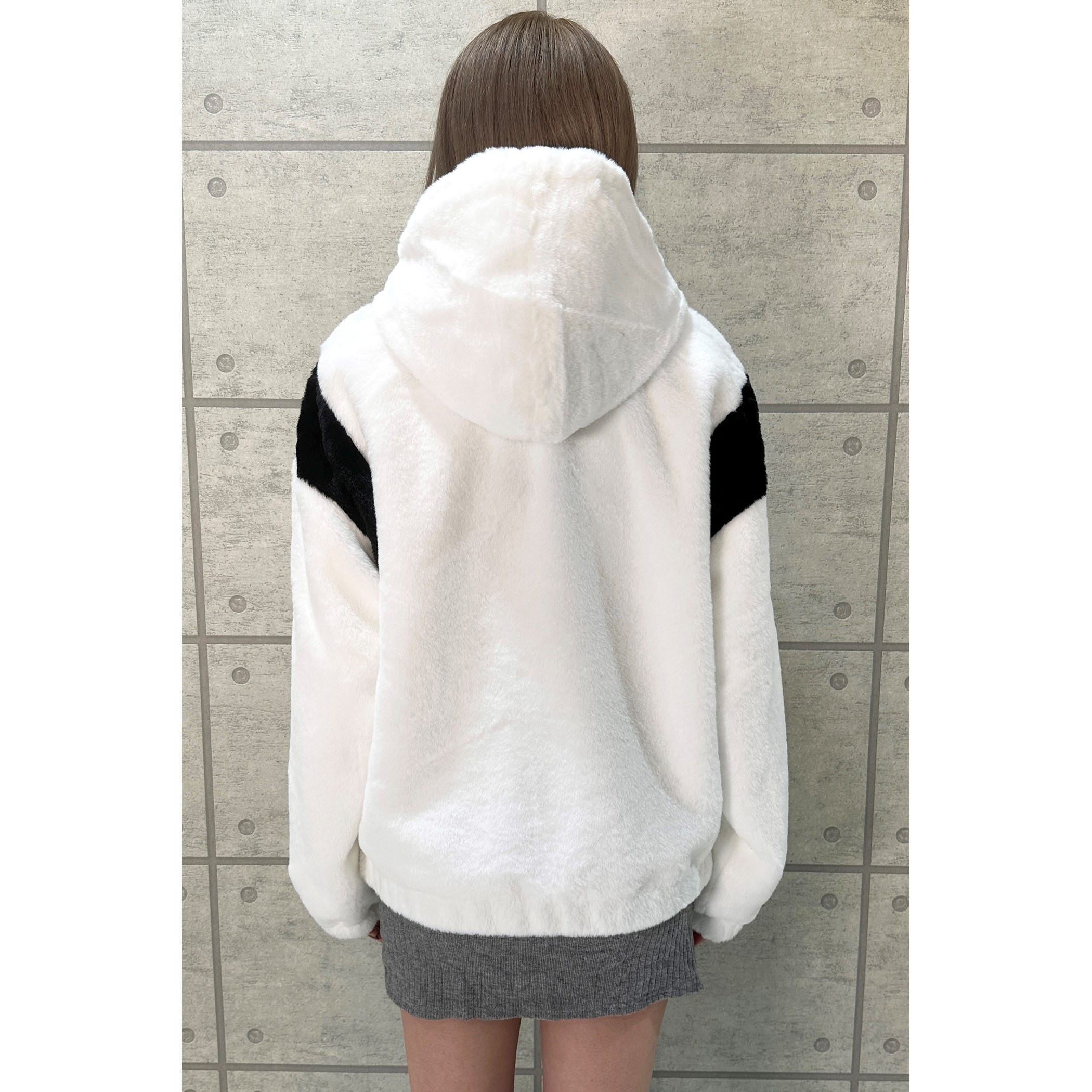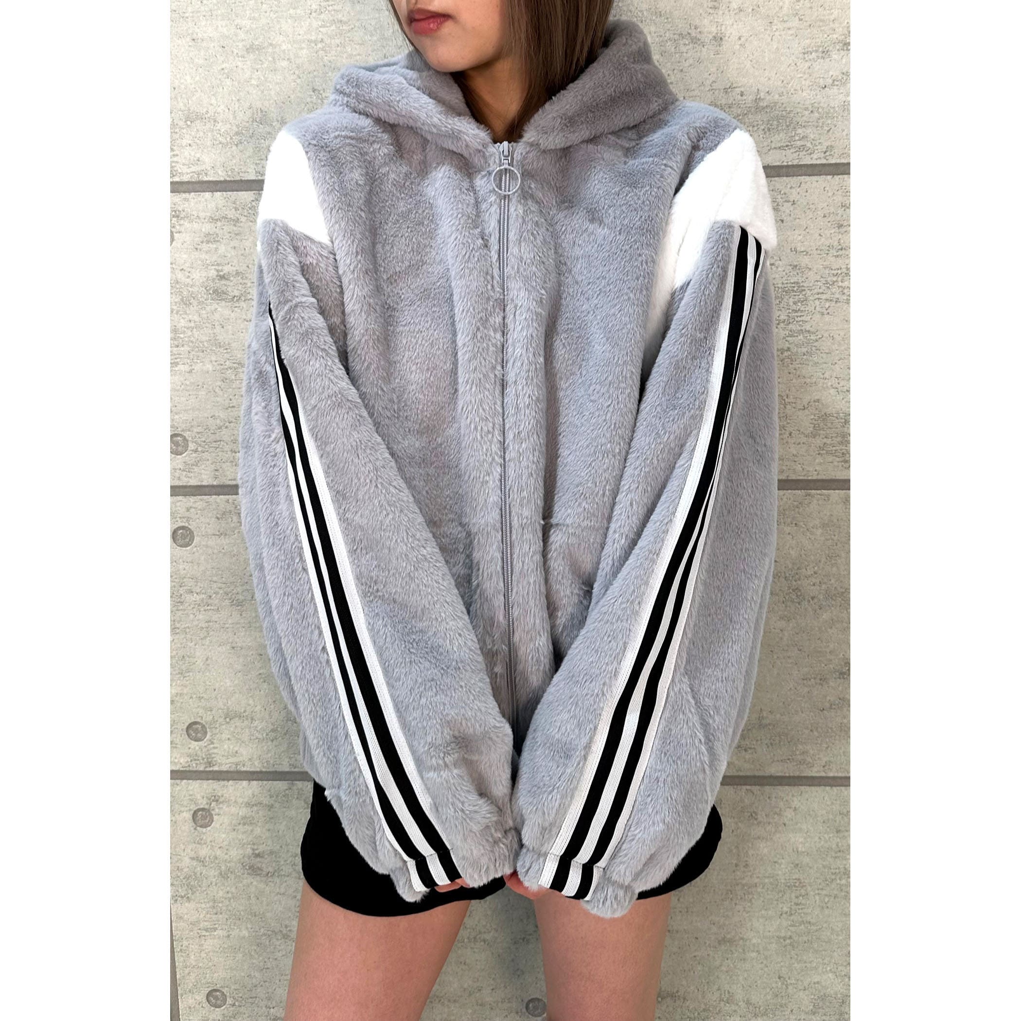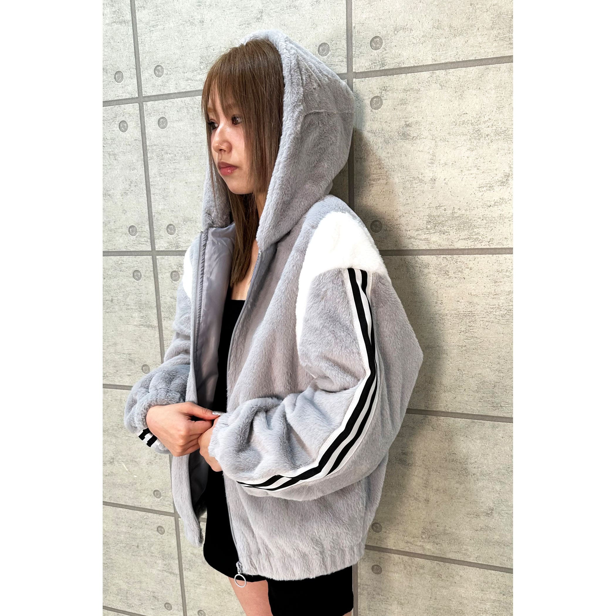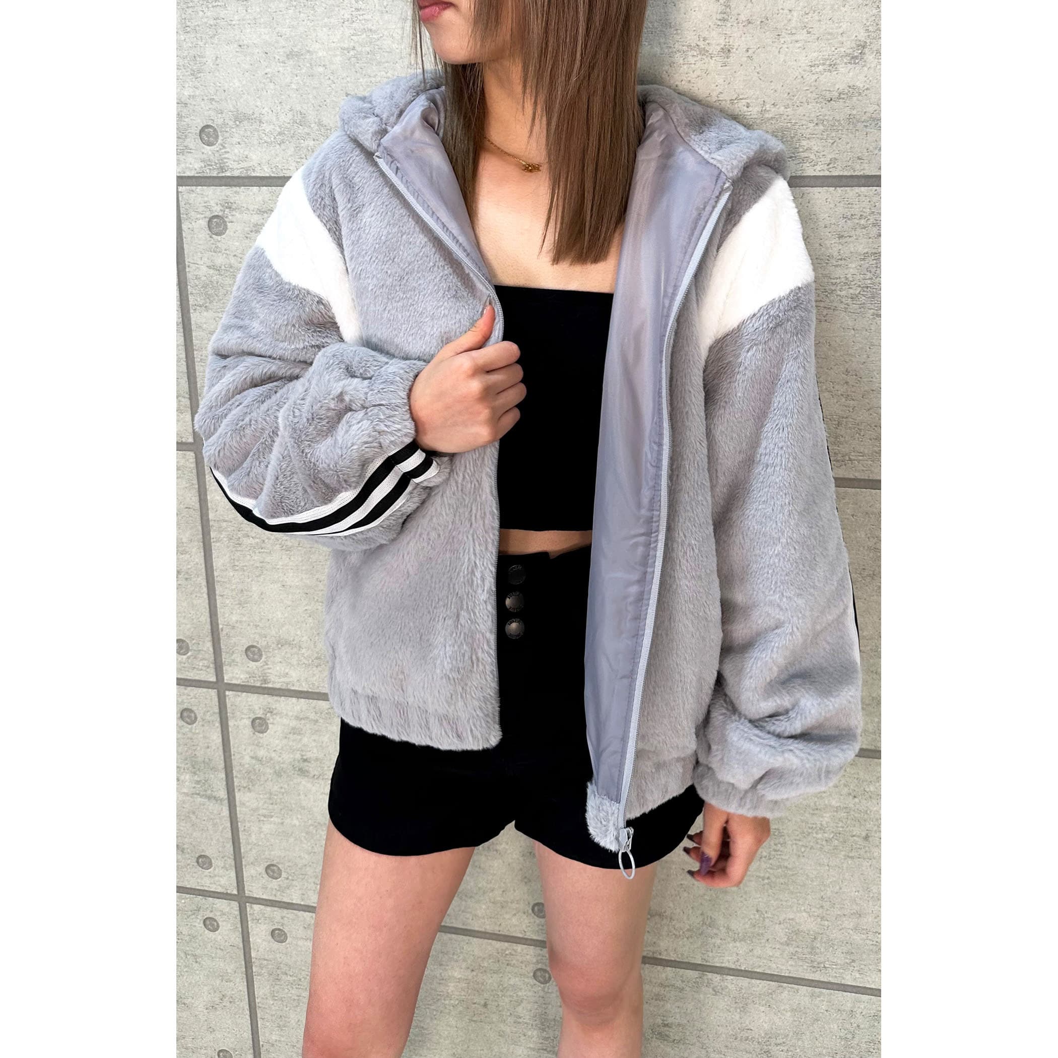 もこもことした柔らかなエコファー素材でシーズンムードが漂う一枚。今季トレンドのトラックデザインがスポ―ティなルックでフェミニンなワンピース合わせのテイストミックスしたスタイルもオススメ。ゆとり感のあるシルエットなのでインナーにも沢山着込んでも着ぶくれしにくい嬉しい一枚です。