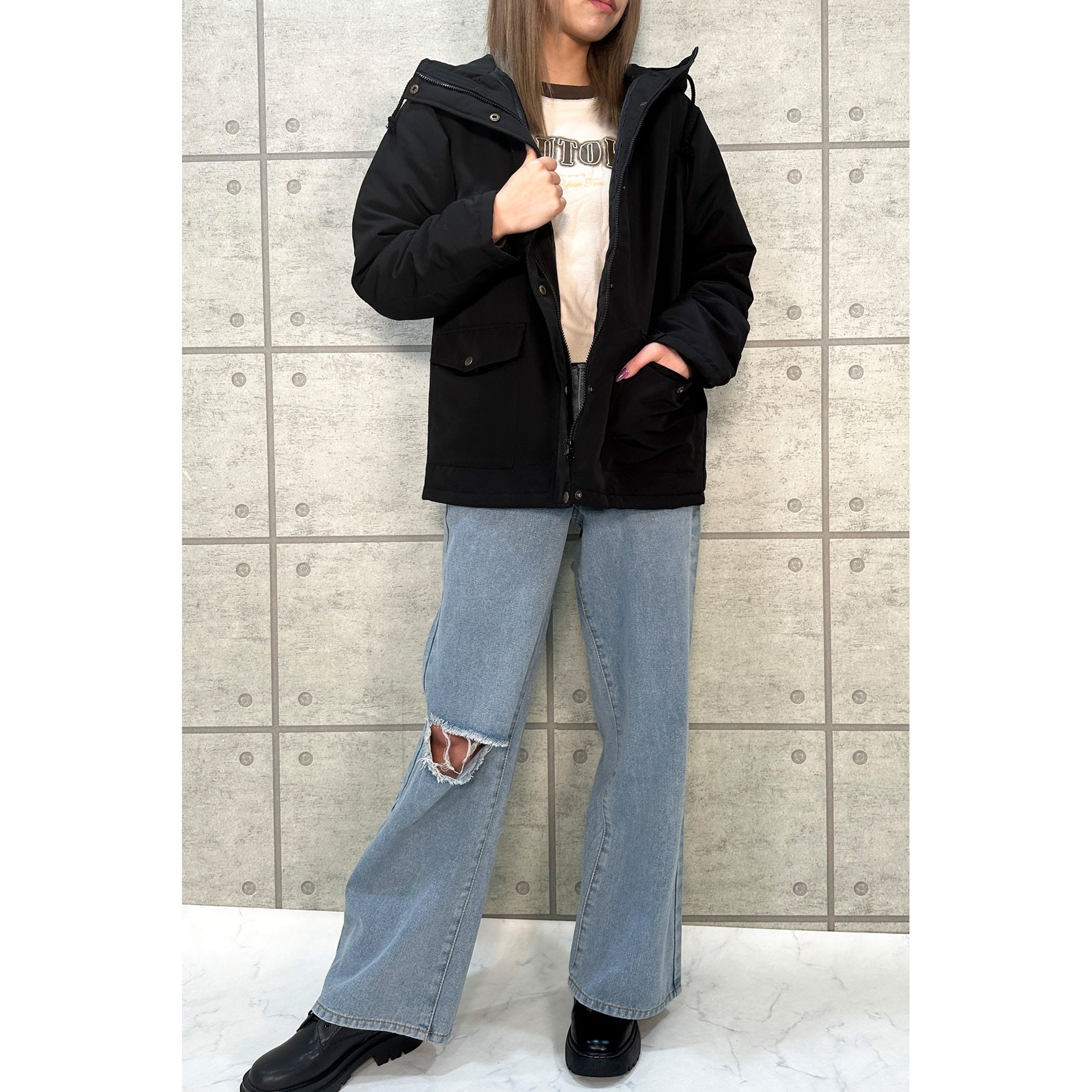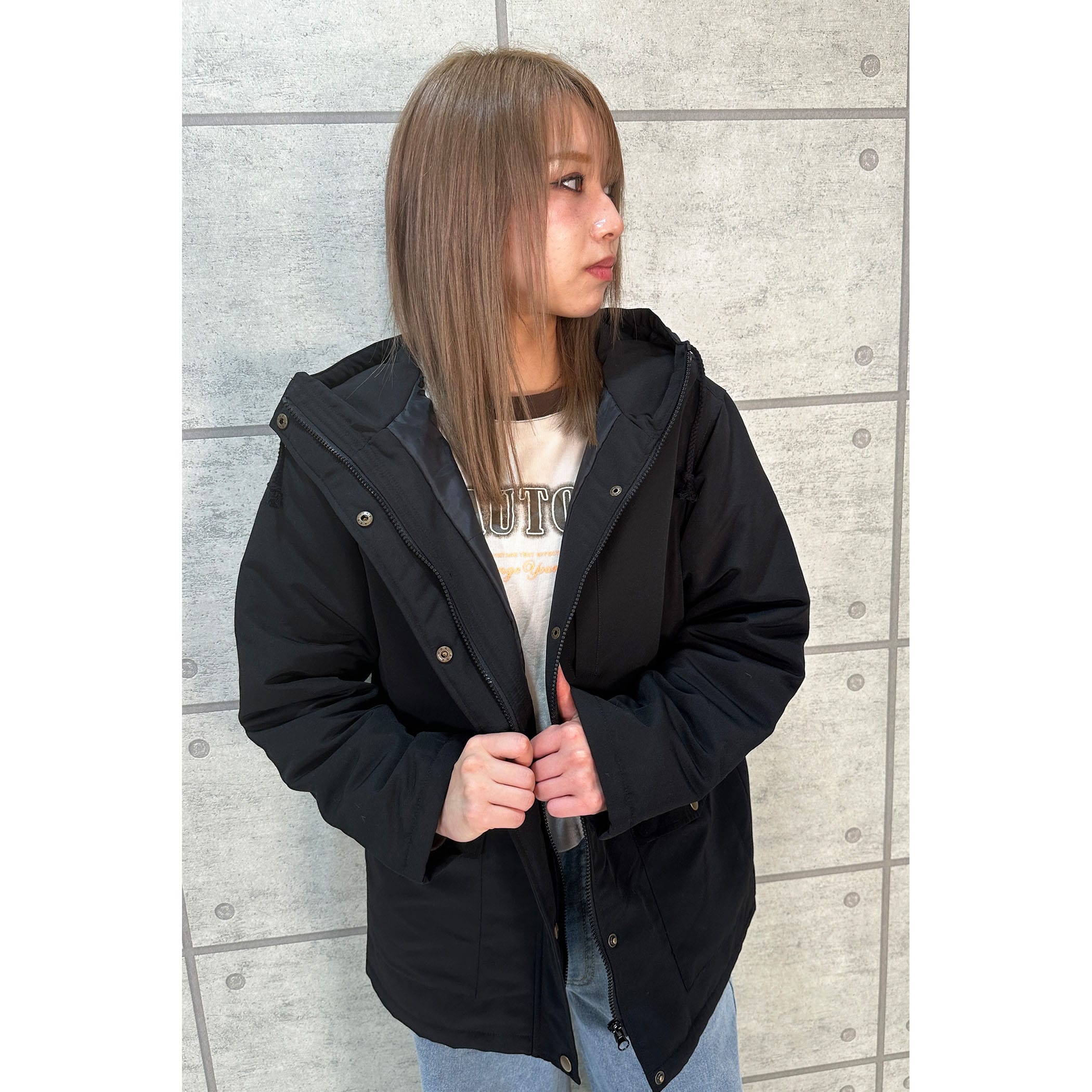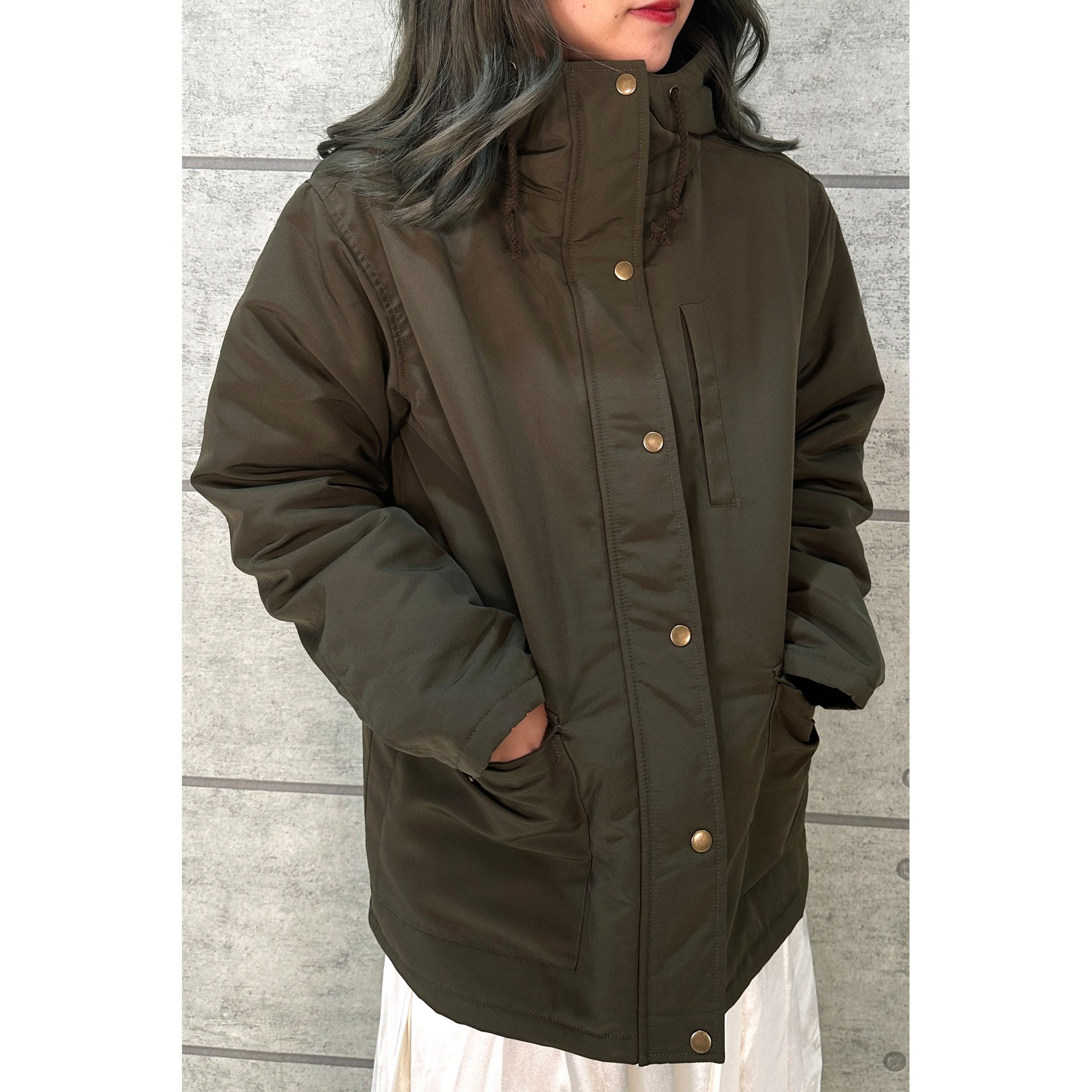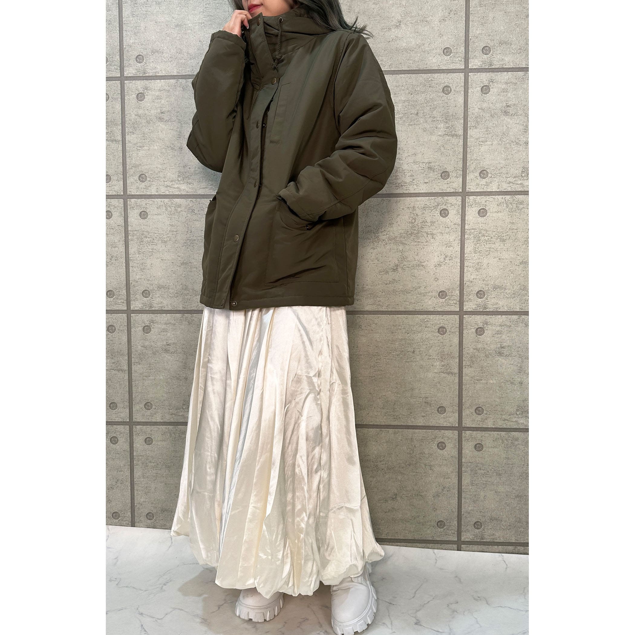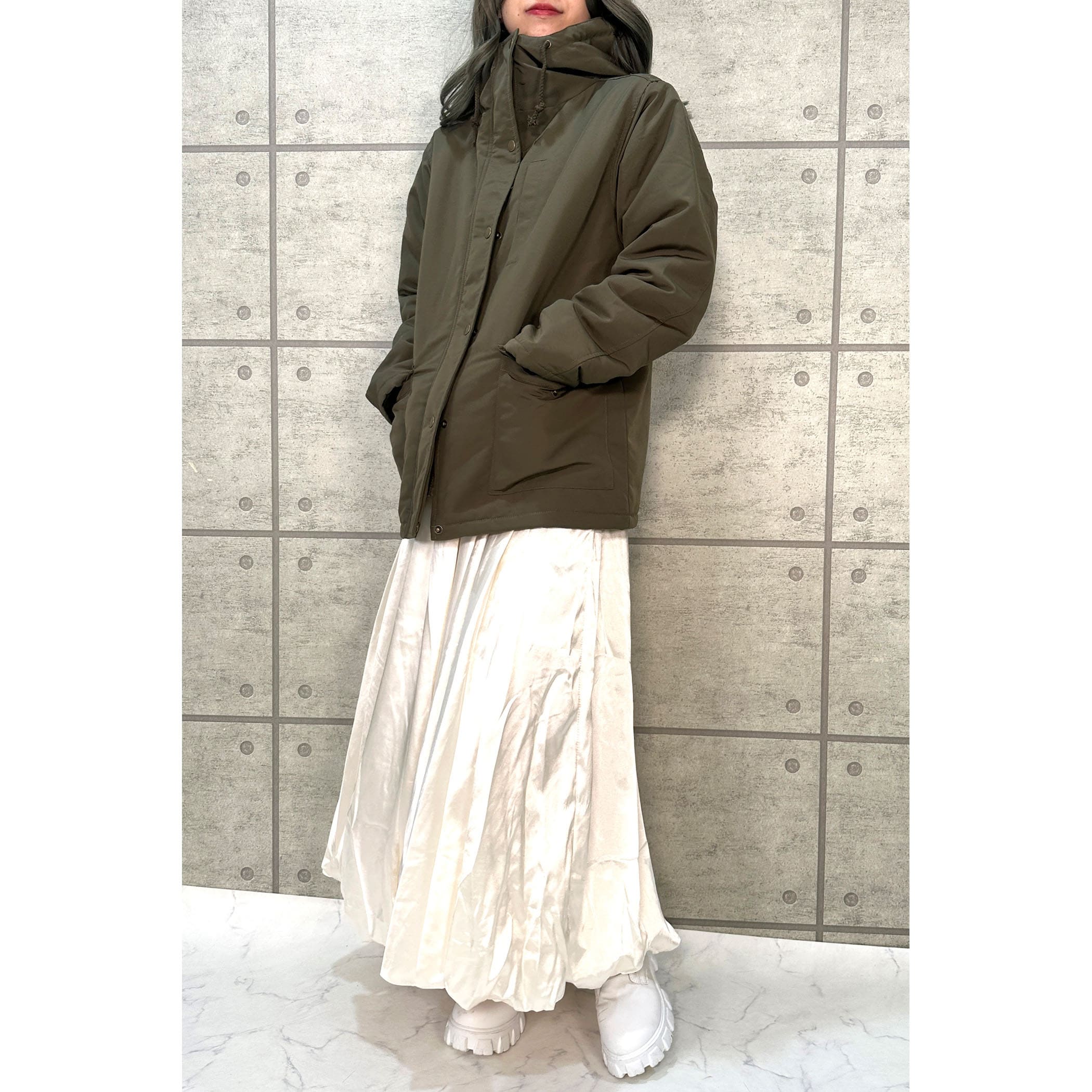 ハリのある表地素材に中わたの入ったあたたかみのあるマウンテンパーカー。あたたかみが有りながら軽量なデザインが嬉しいポイントです。シンプルなデザインなのでパンツスタイルにはもちろん。フェミニンなスカートやワンピースと合わせたミックススタイルもオススメの一枚です。