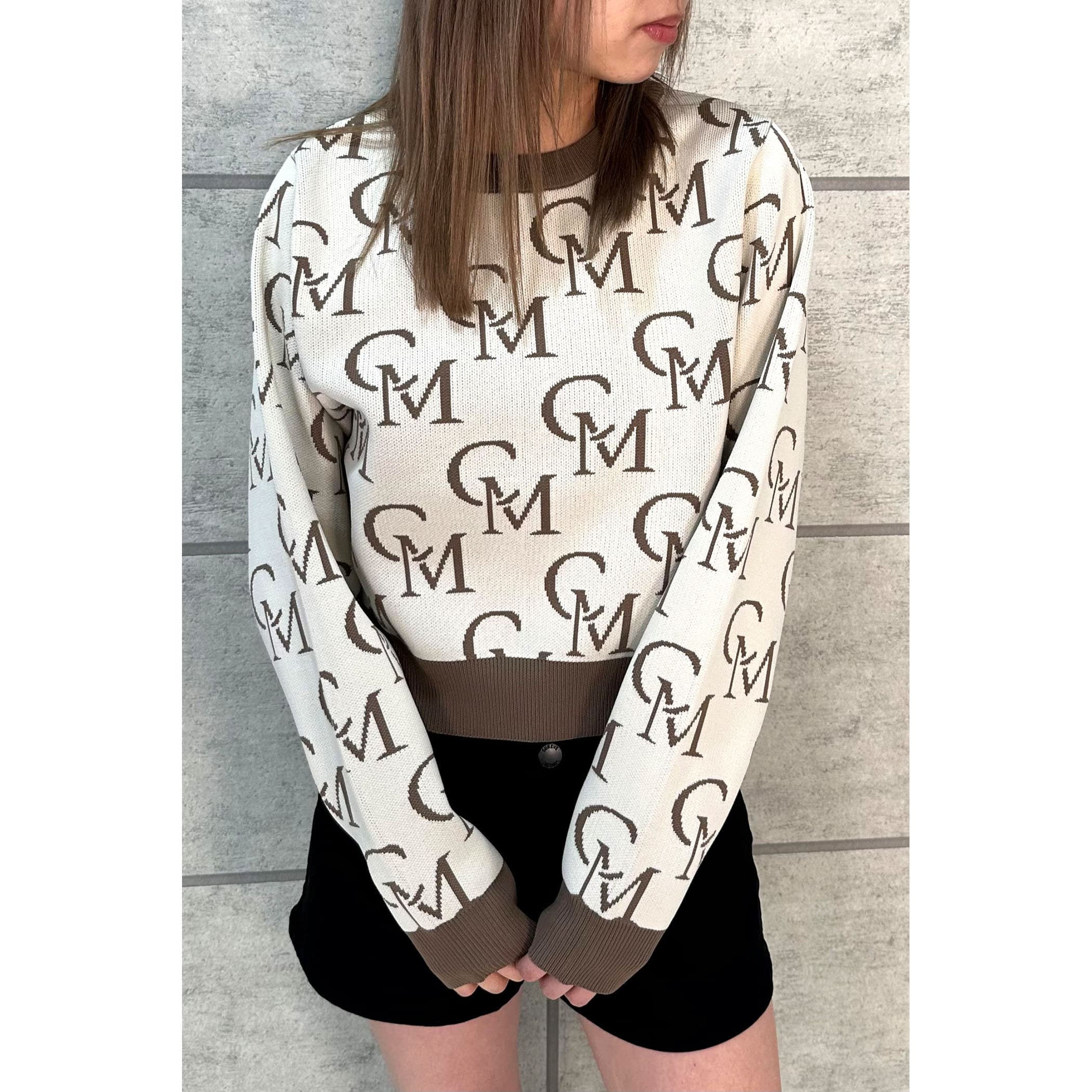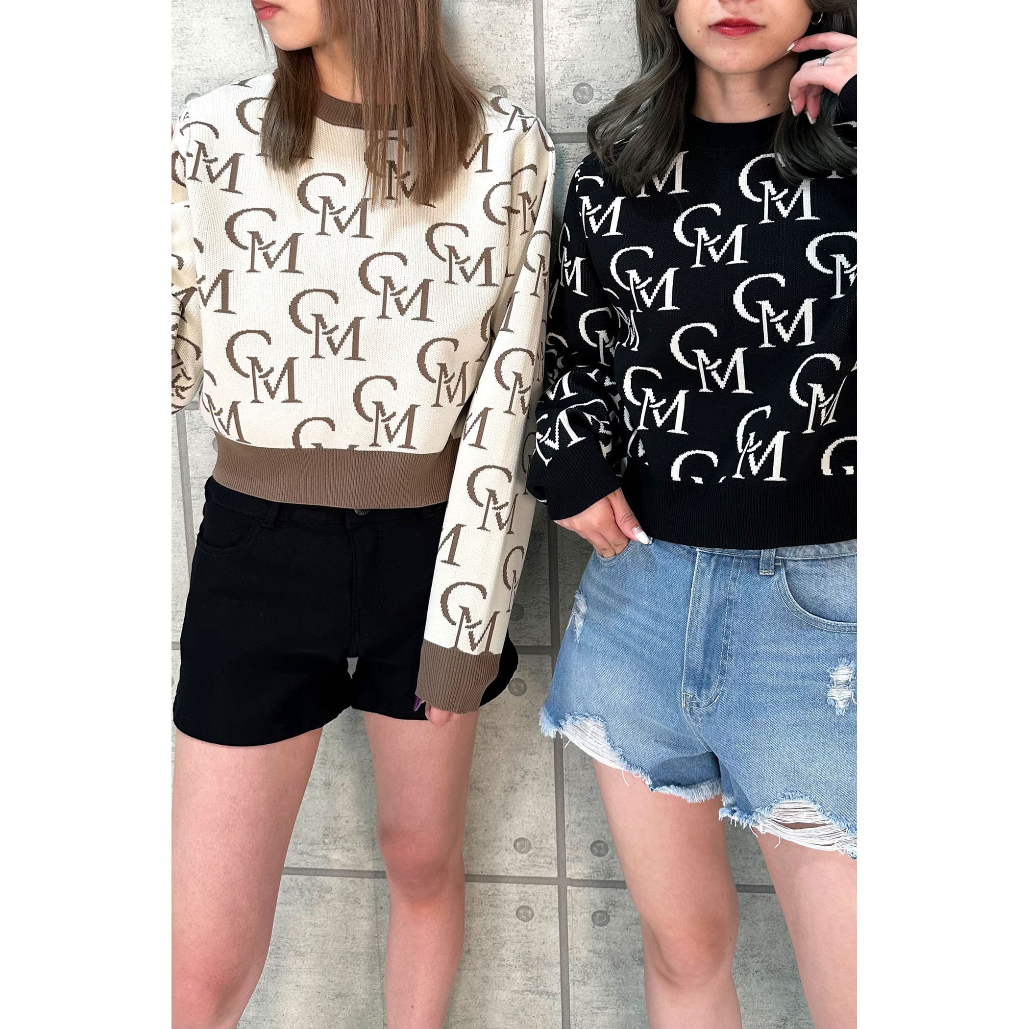 全面にCMロゴをあしらったニットは、シルエットがキレイに見えるサイズ感にこだわりました。軽く、滑らかなモチっとした生地なので着心地抜群◎毛足が長くないので毛玉になりにくいのも嬉しいポイント。 インパクトのある総柄ニットはマストアイテム間違いなし!