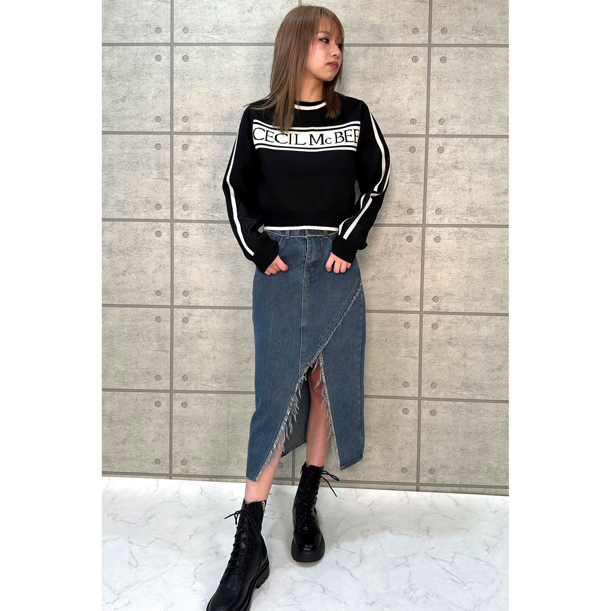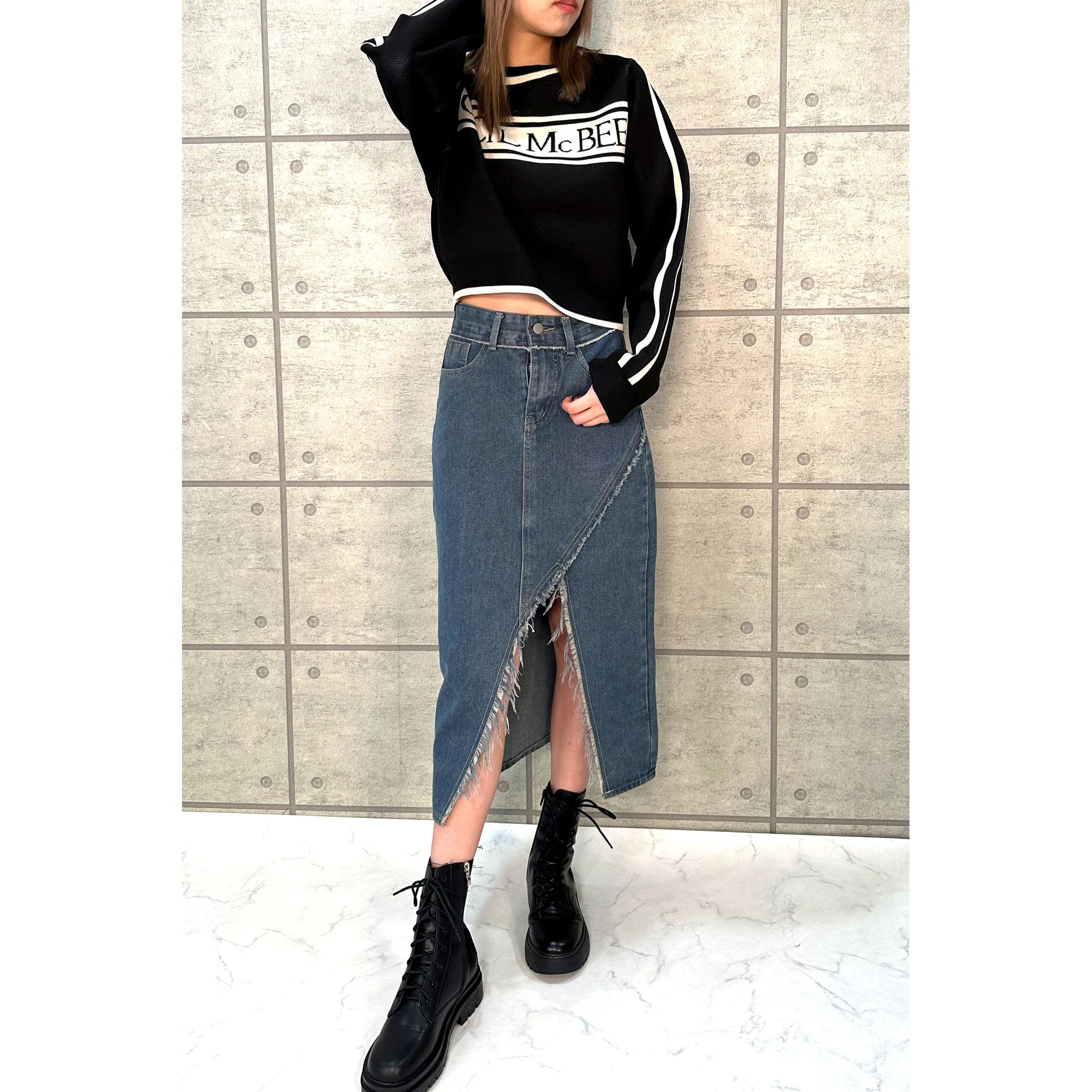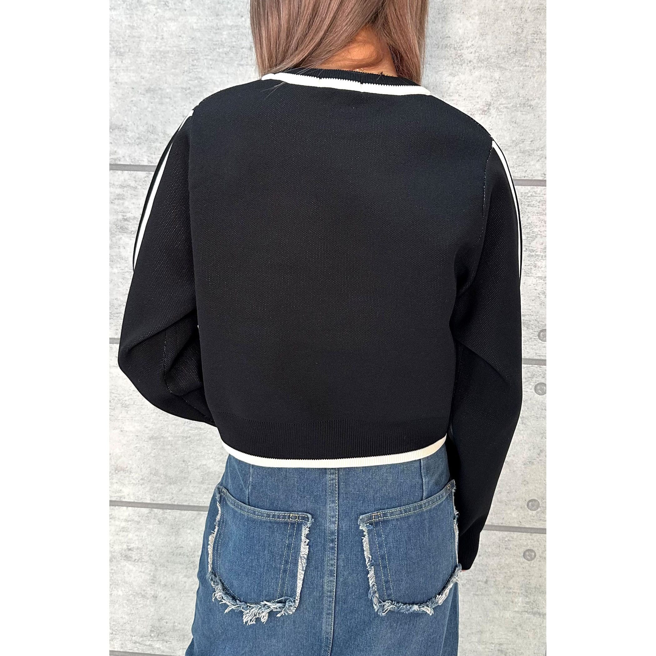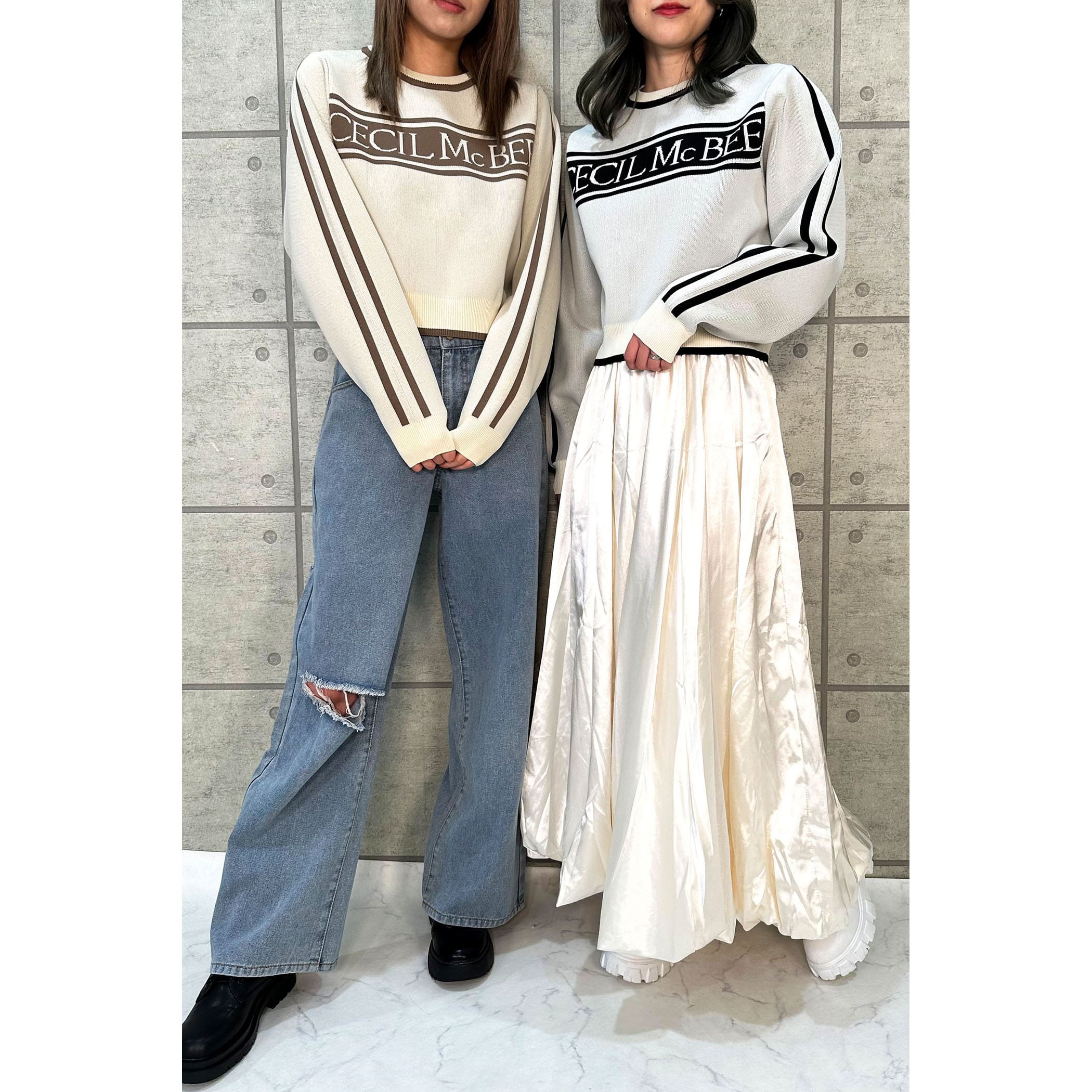 ジャガード編みでとってもオシャレなニット。フロントのロゴ、カラー配色がレトロな雰囲気。ゆったりとしたサイズ感ですが、袖口はリブになっているので手首でしっかり止まります。