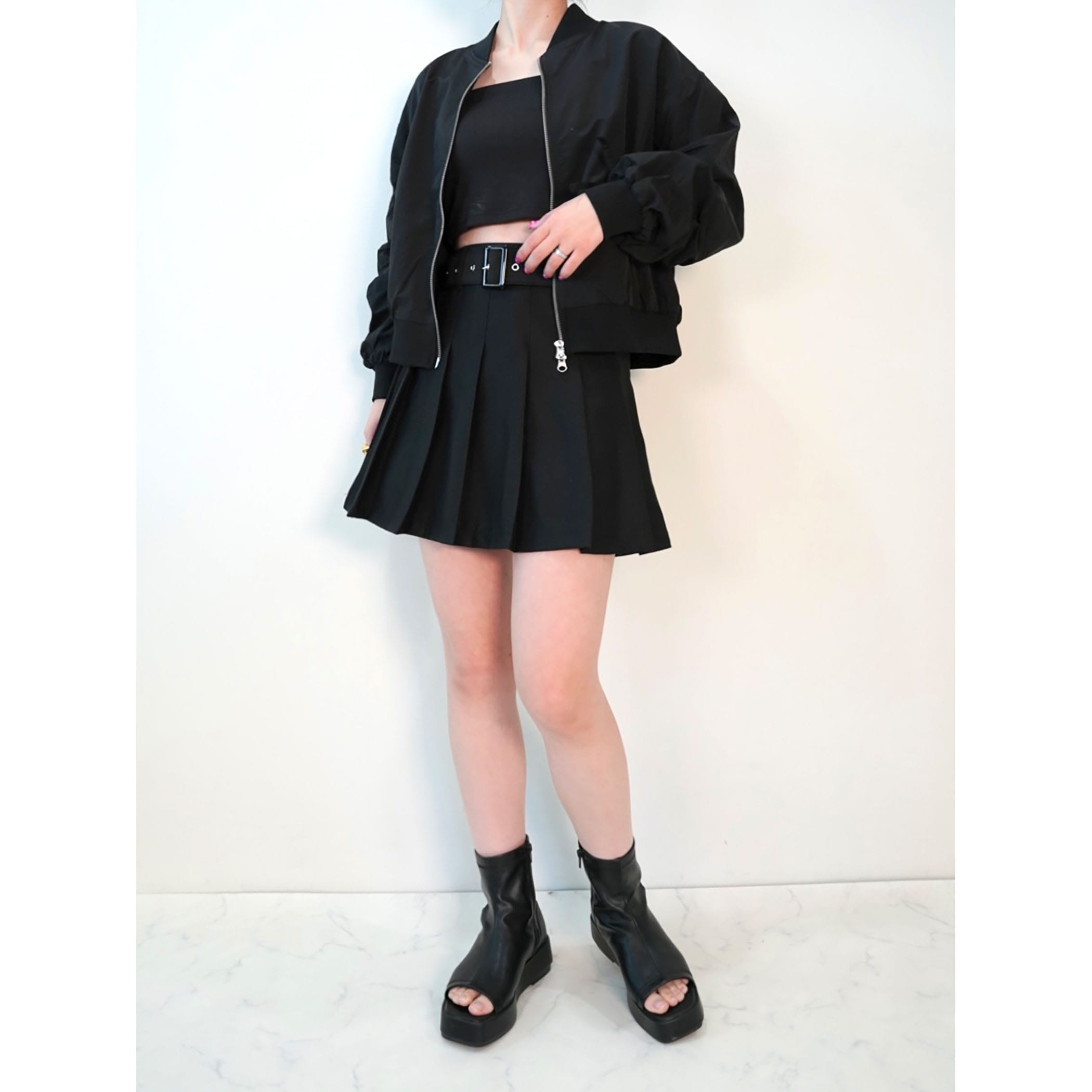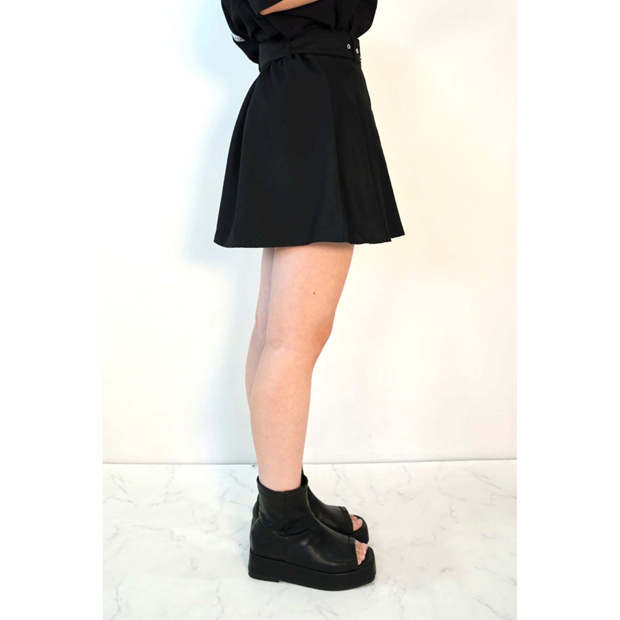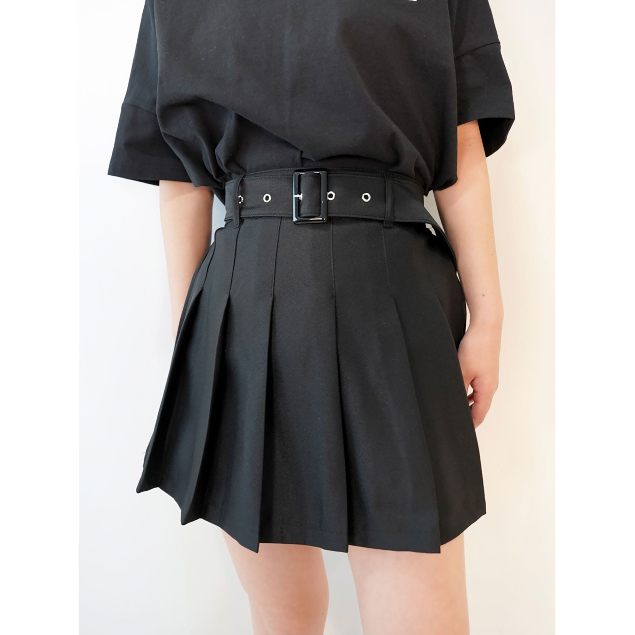 太めのウエストベルトがアクセントになったプリーツミニスカート。クロップド丈のトレンドライクなトップスからフィット感のあるタートルネックまで、どんな着こなしにもモダンでスタイリッシュなニュアンスをプラスし、シーズンレスにお使いいただけるので、ロングブーツなどとの相性も抜群です。