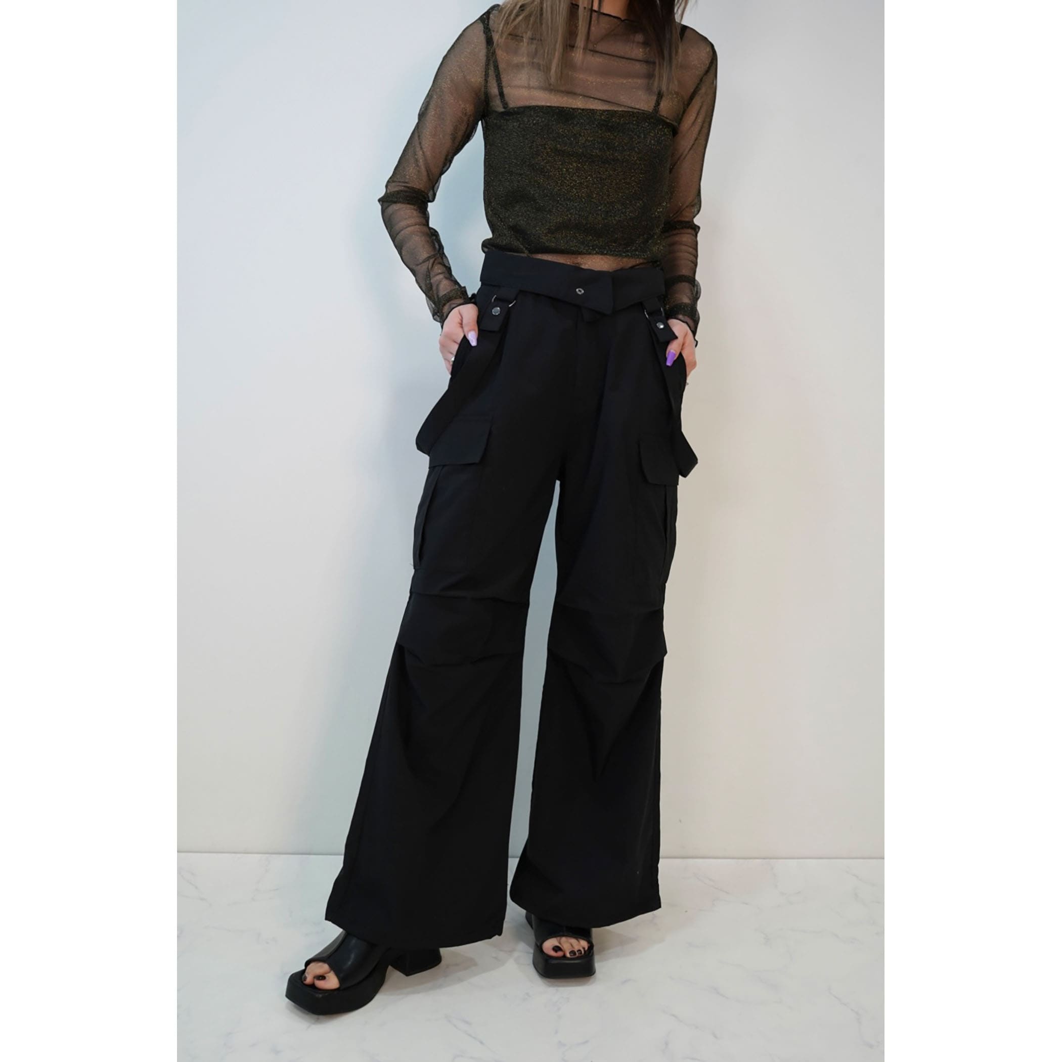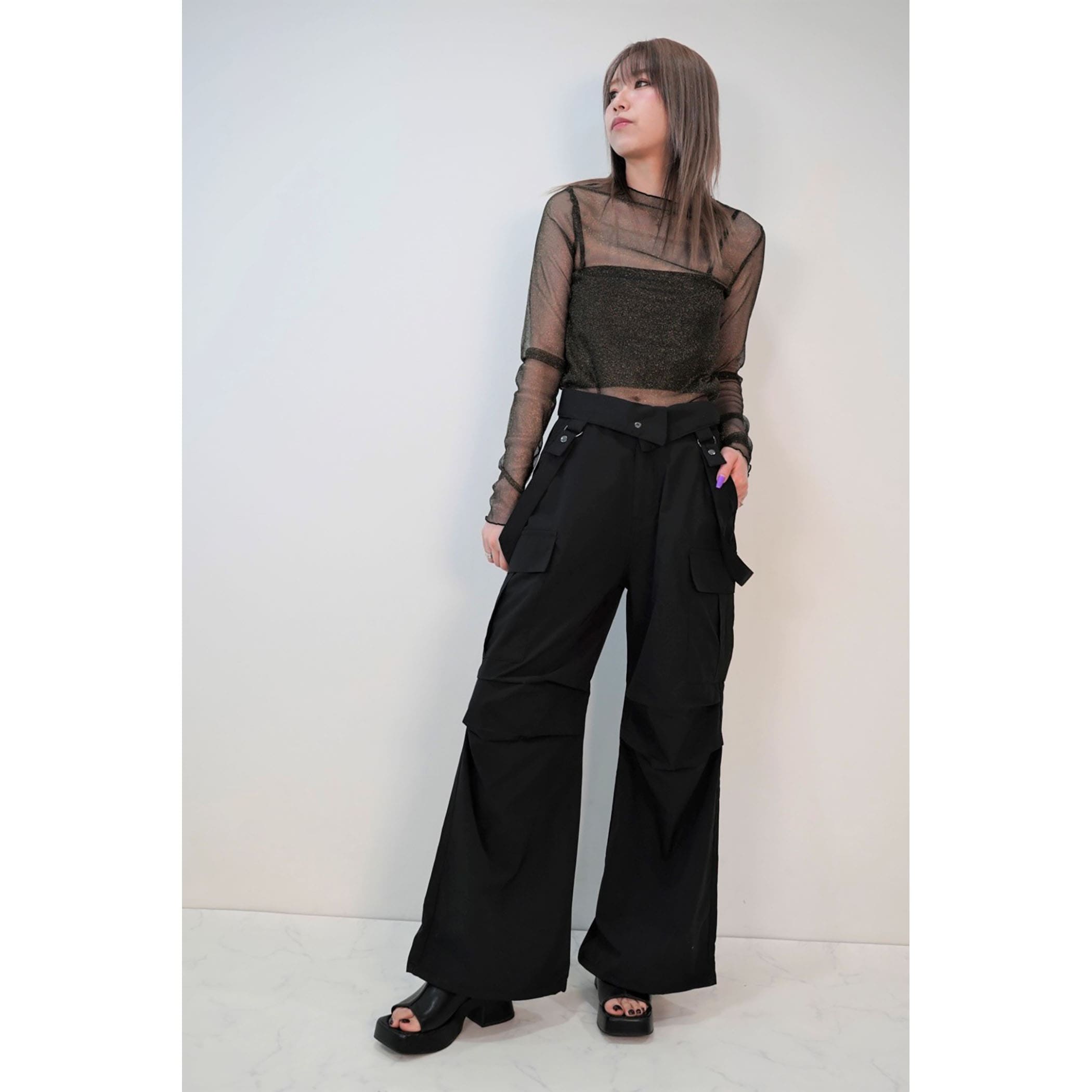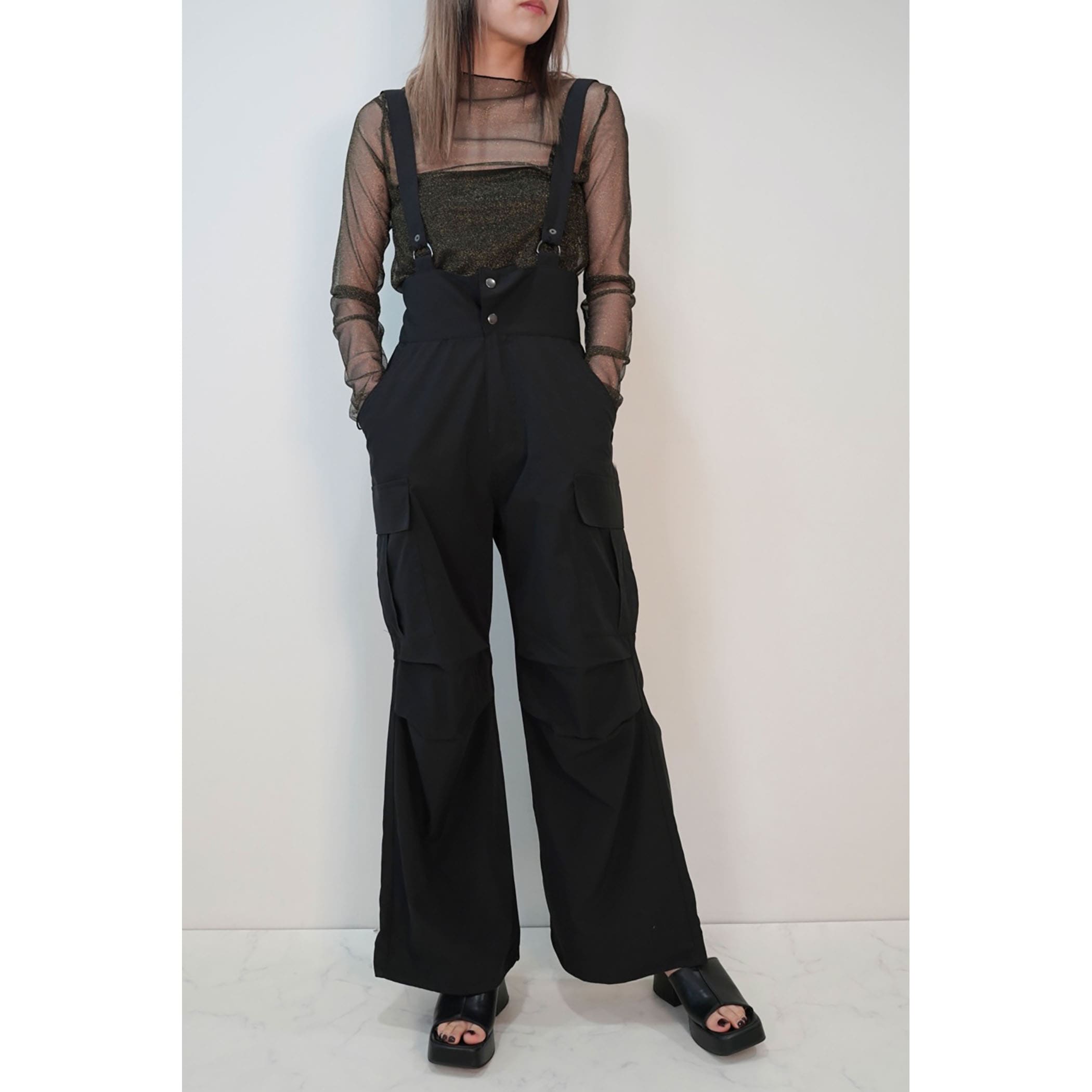 サスペンダー付きナイロンカーゴパンツ