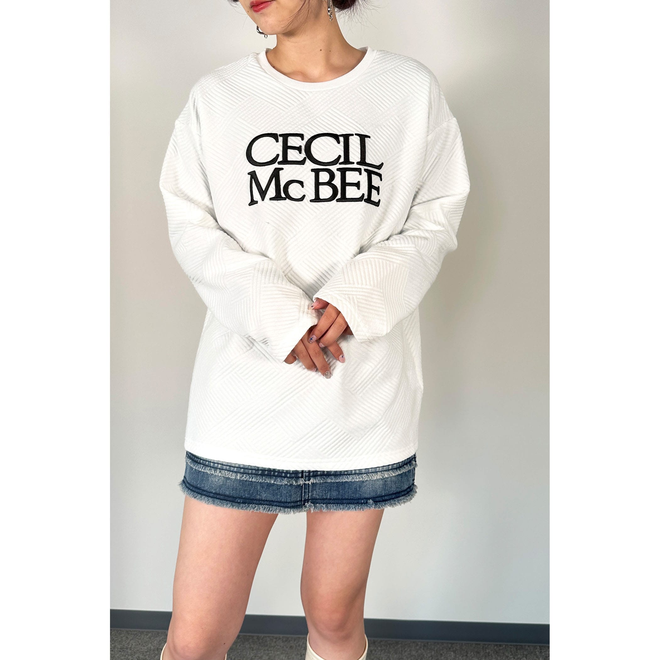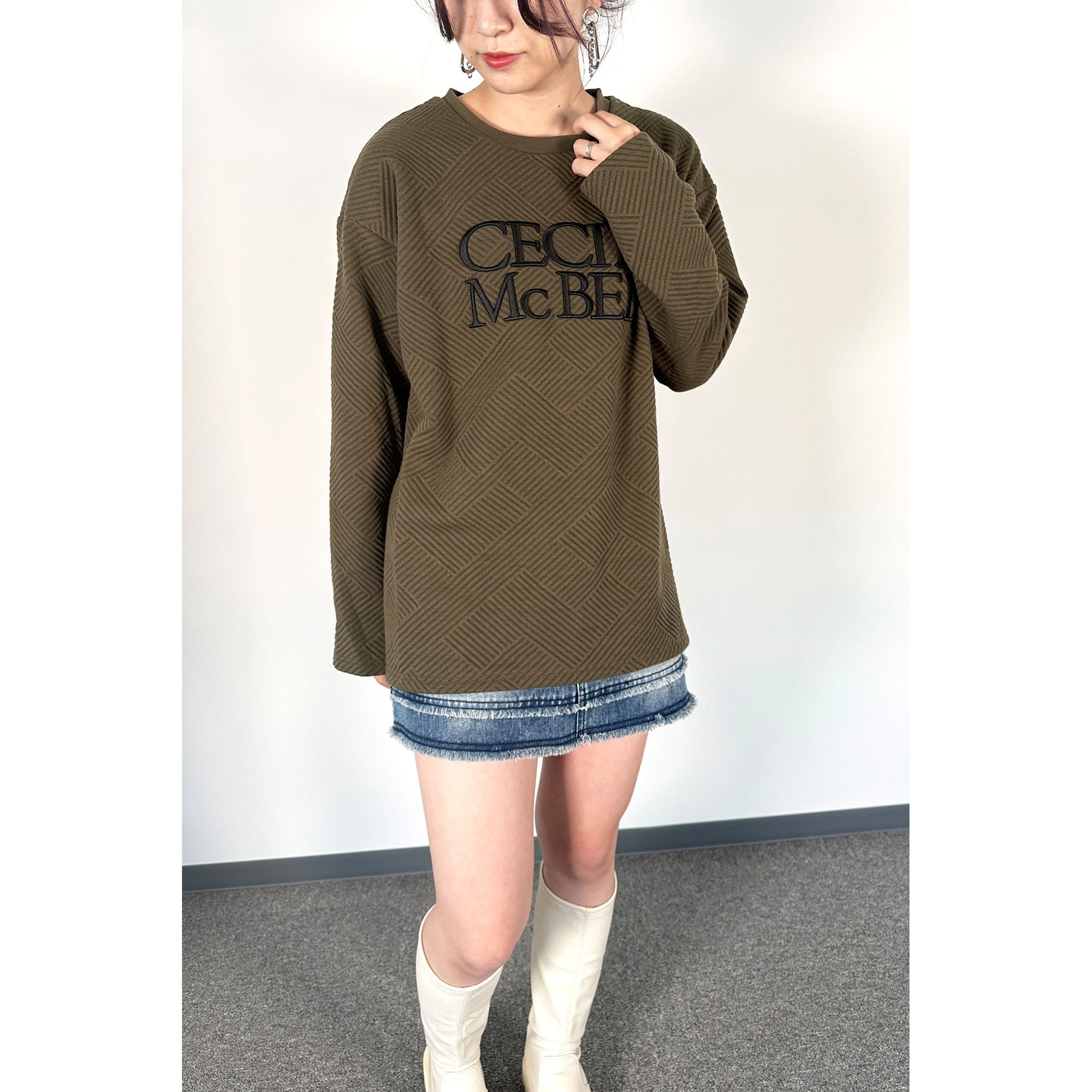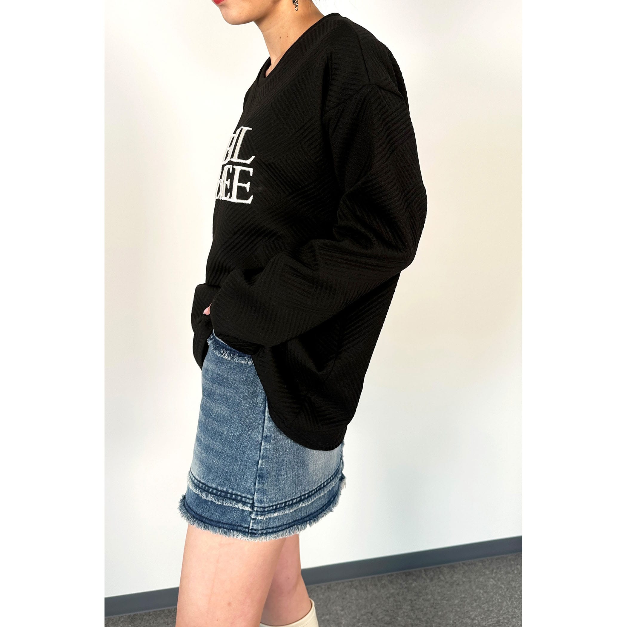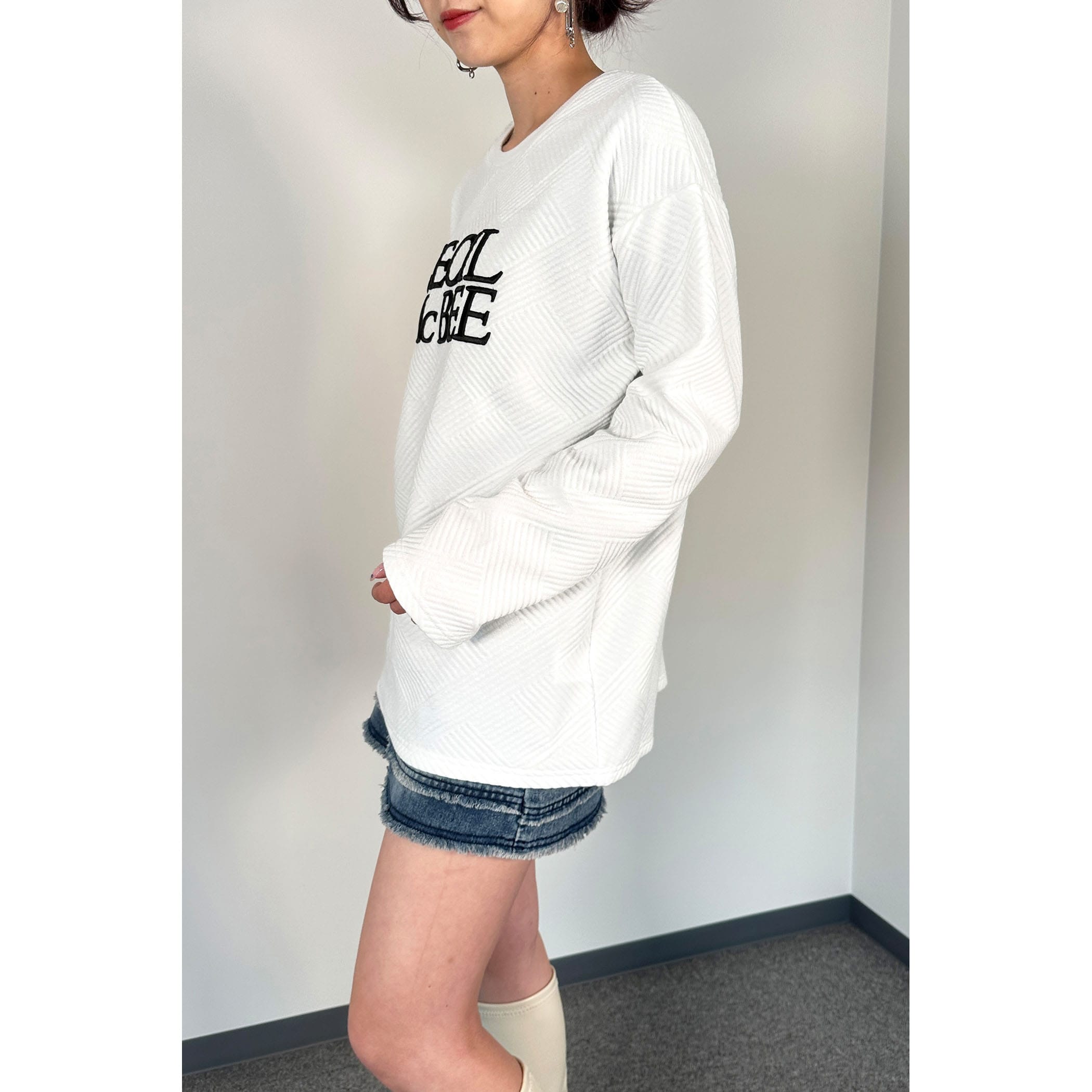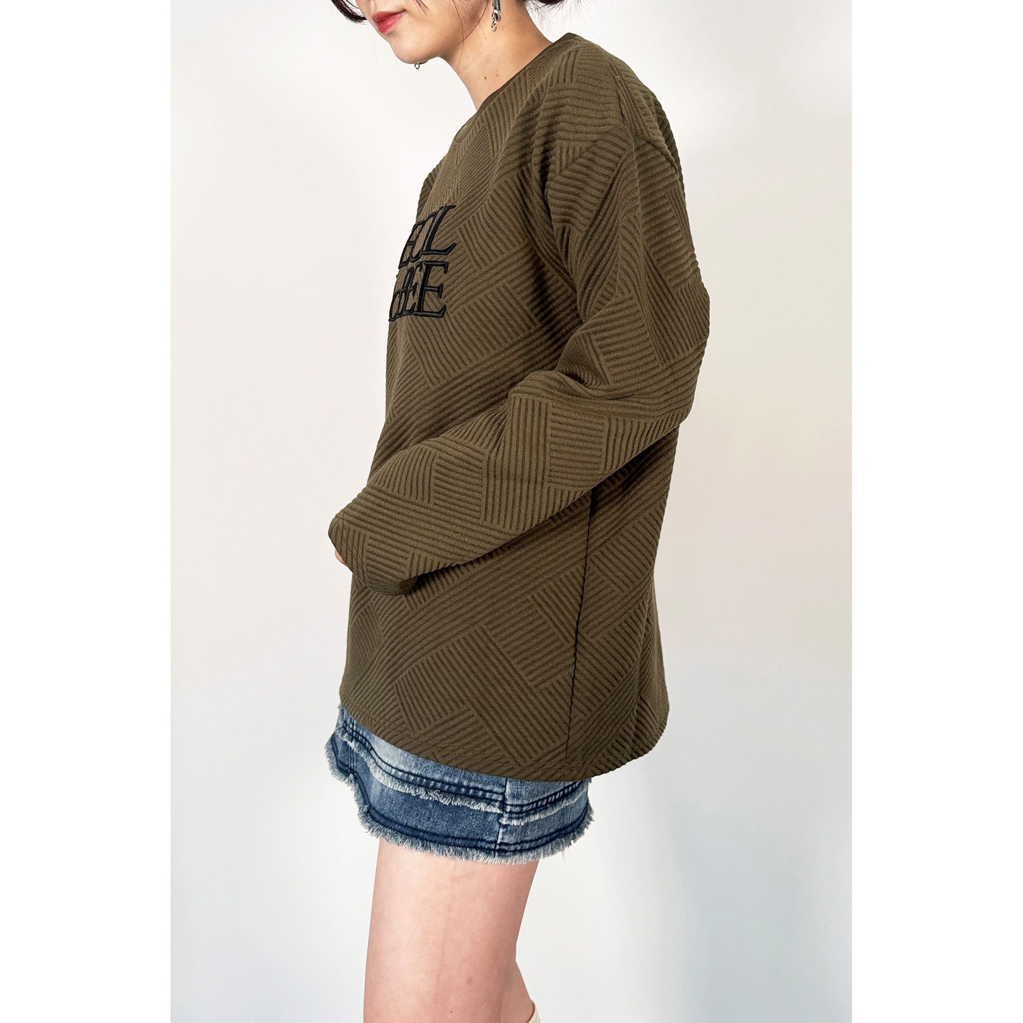 ブランドロゴ刺繍がポイントのプルオーバー。表面にさりげなく柄が入った素材で、この1着でコーディネートのアクセントに!ちょうどよい着丈感で色んなボトムに合わせやすいアイテムです。