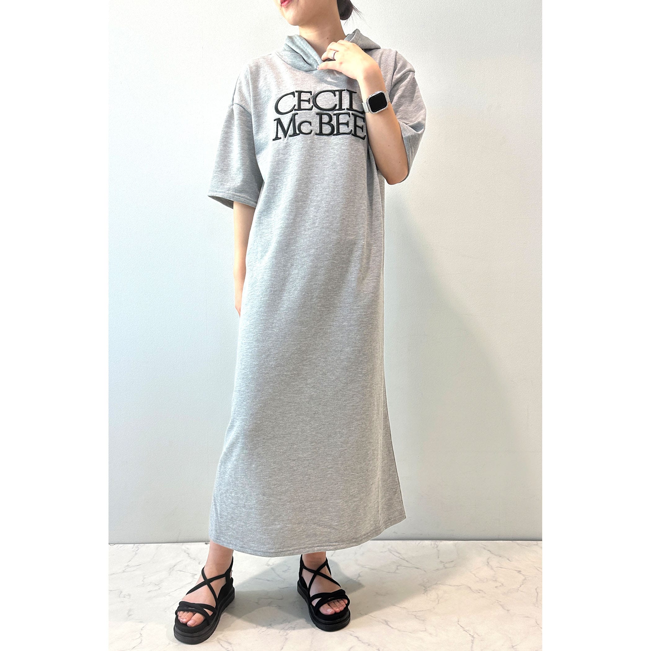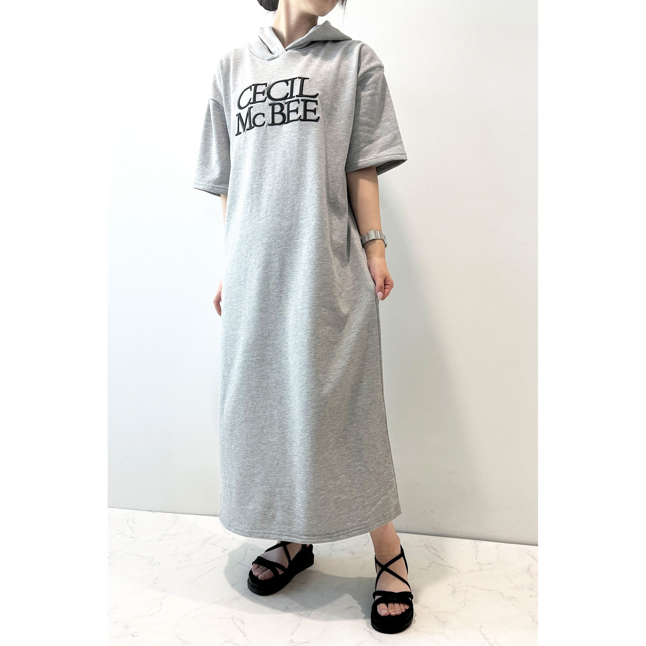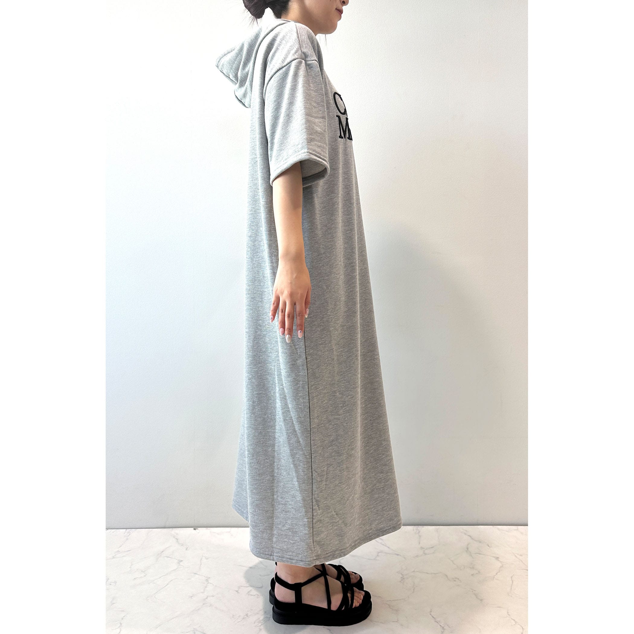 ロゴ刺繍フーディーワンピース