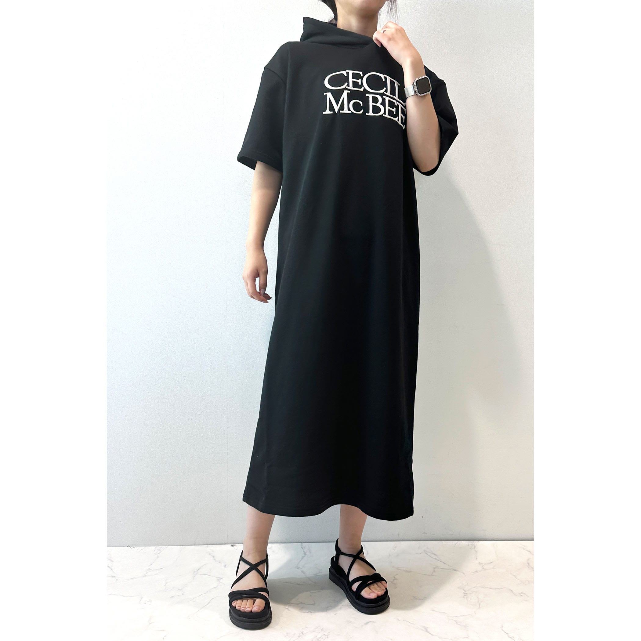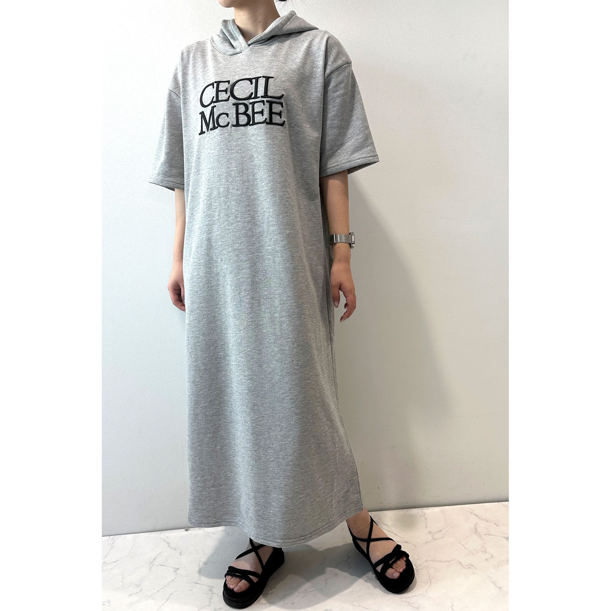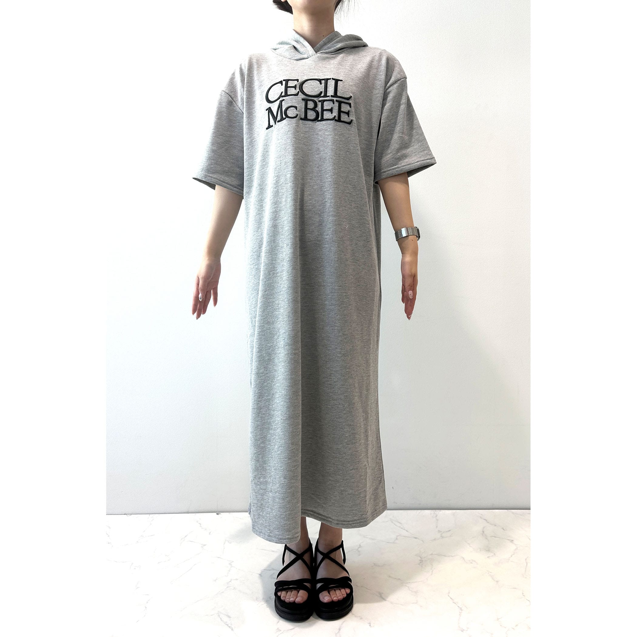 ロゴ刺繍フーディーワンピース