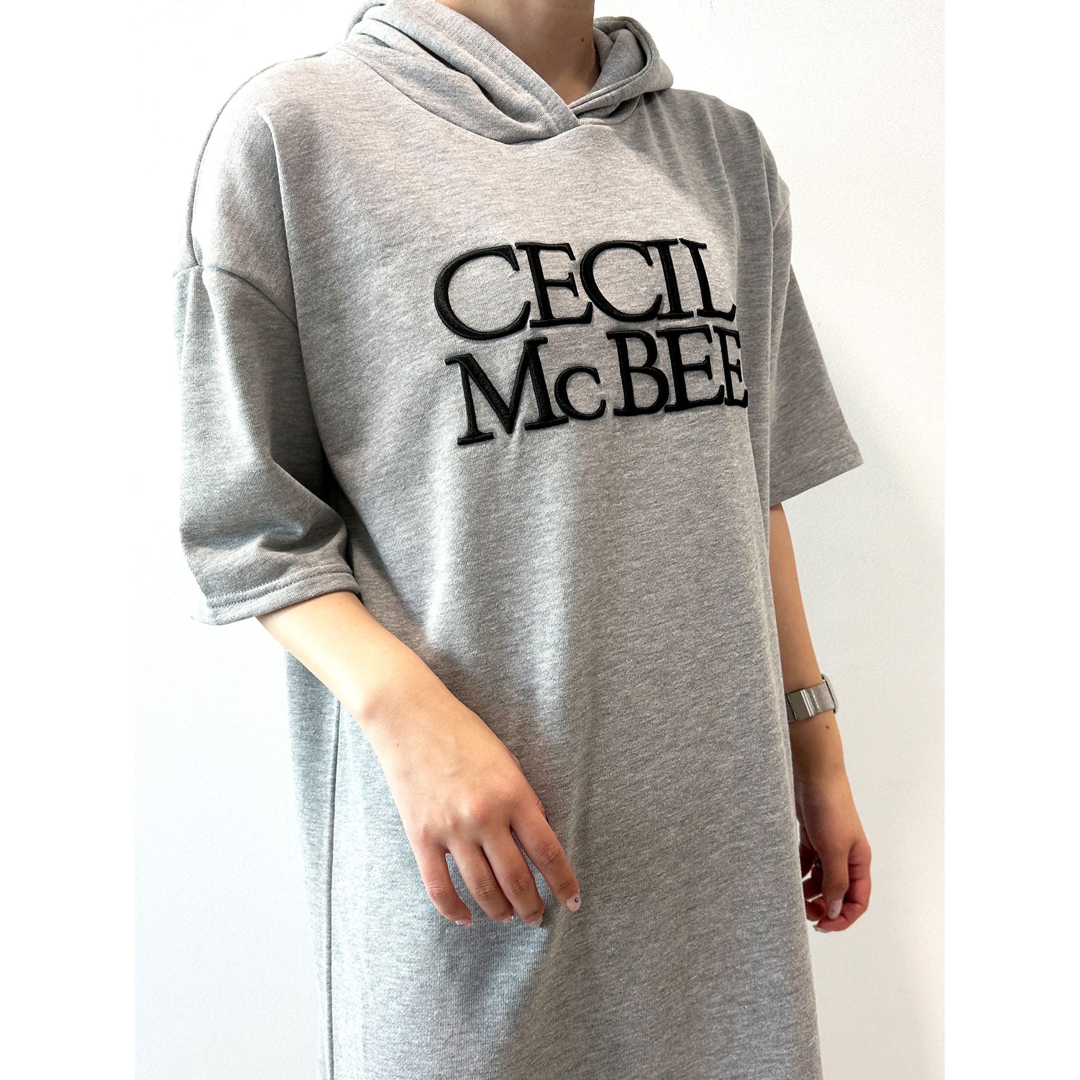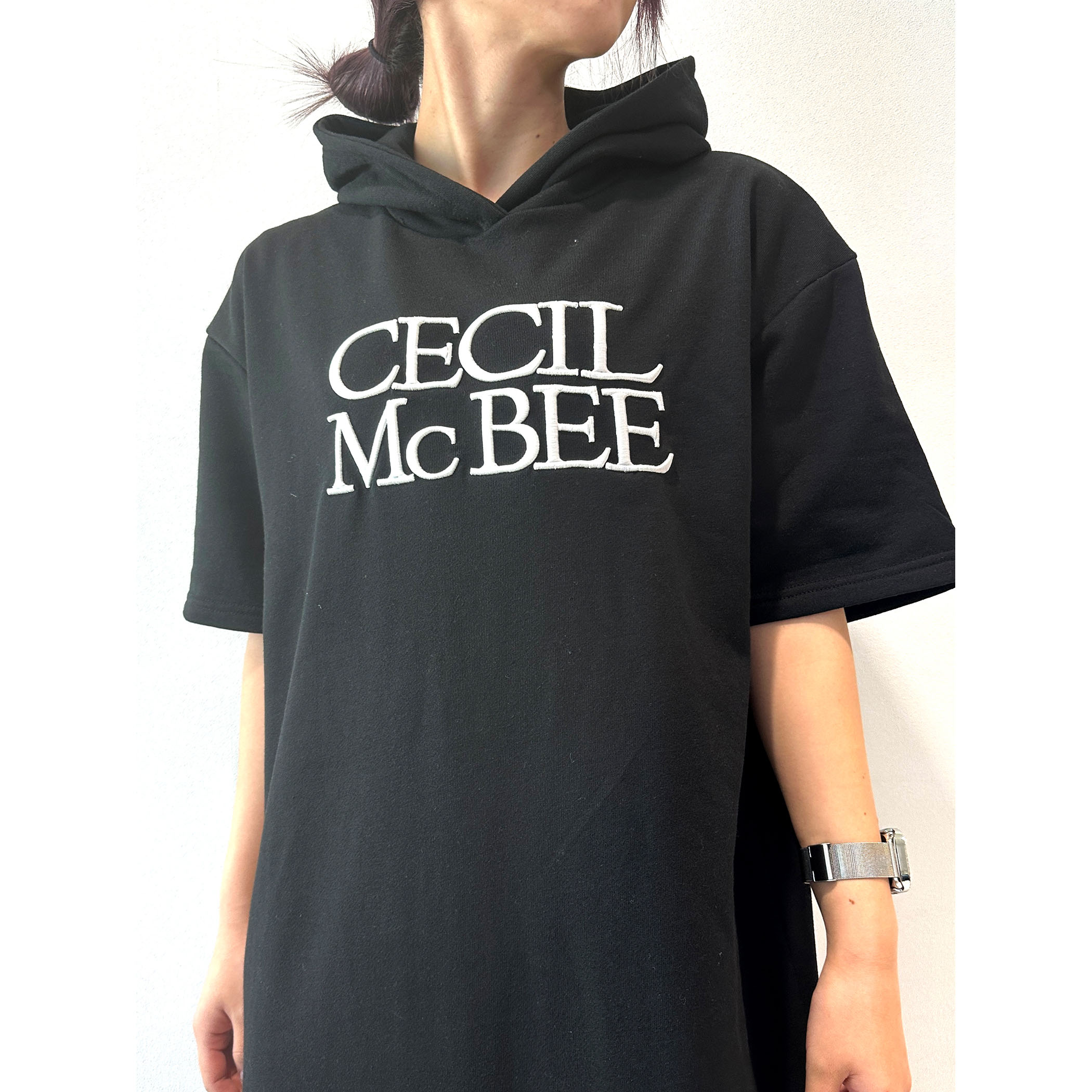 胸元のロゴ刺繍が目を引くカット素材ワンピース。半袖なので上に羽織ればオールシーズン使える1着です。フード部分は二枚仕立てになっており、しっかりしているのもポイント☆