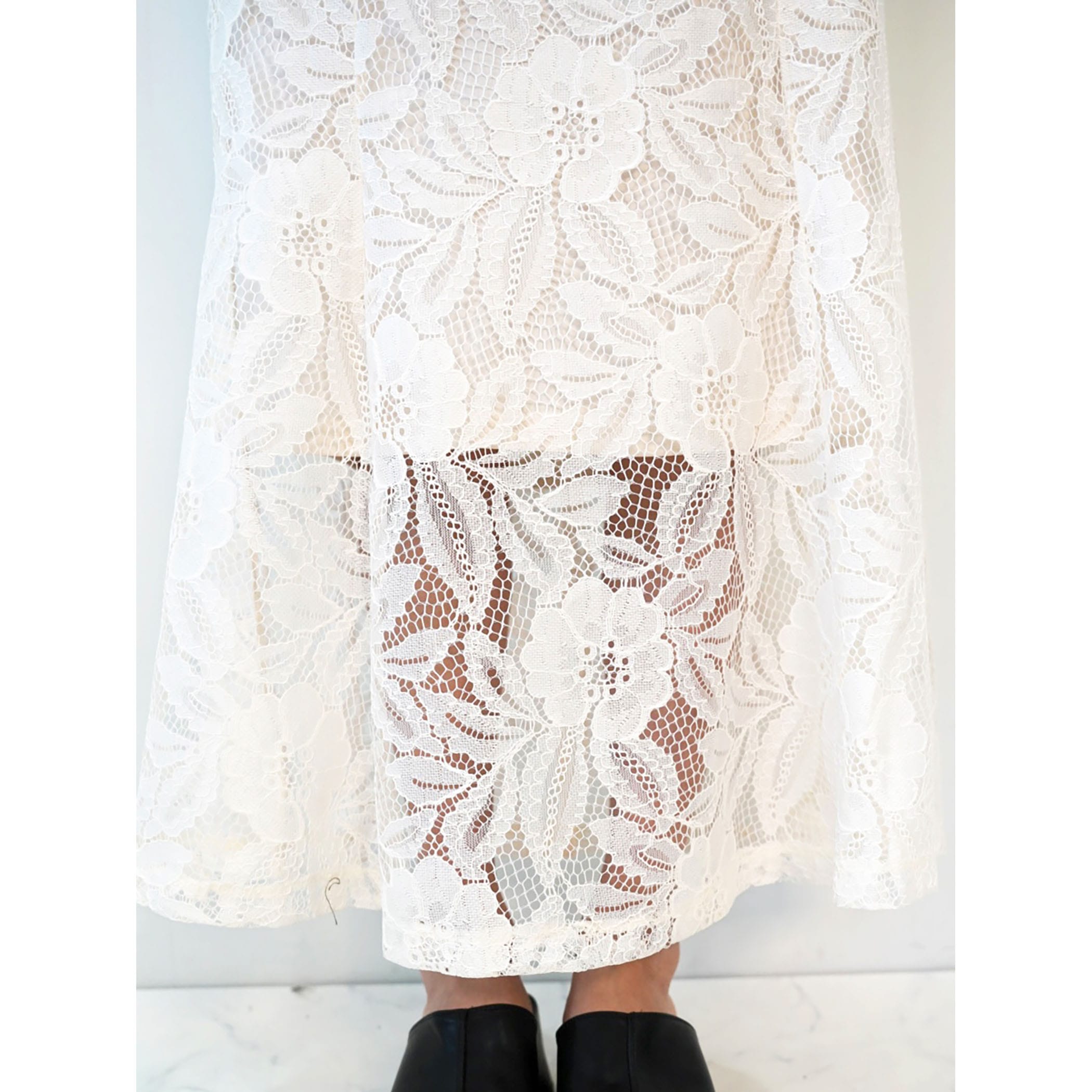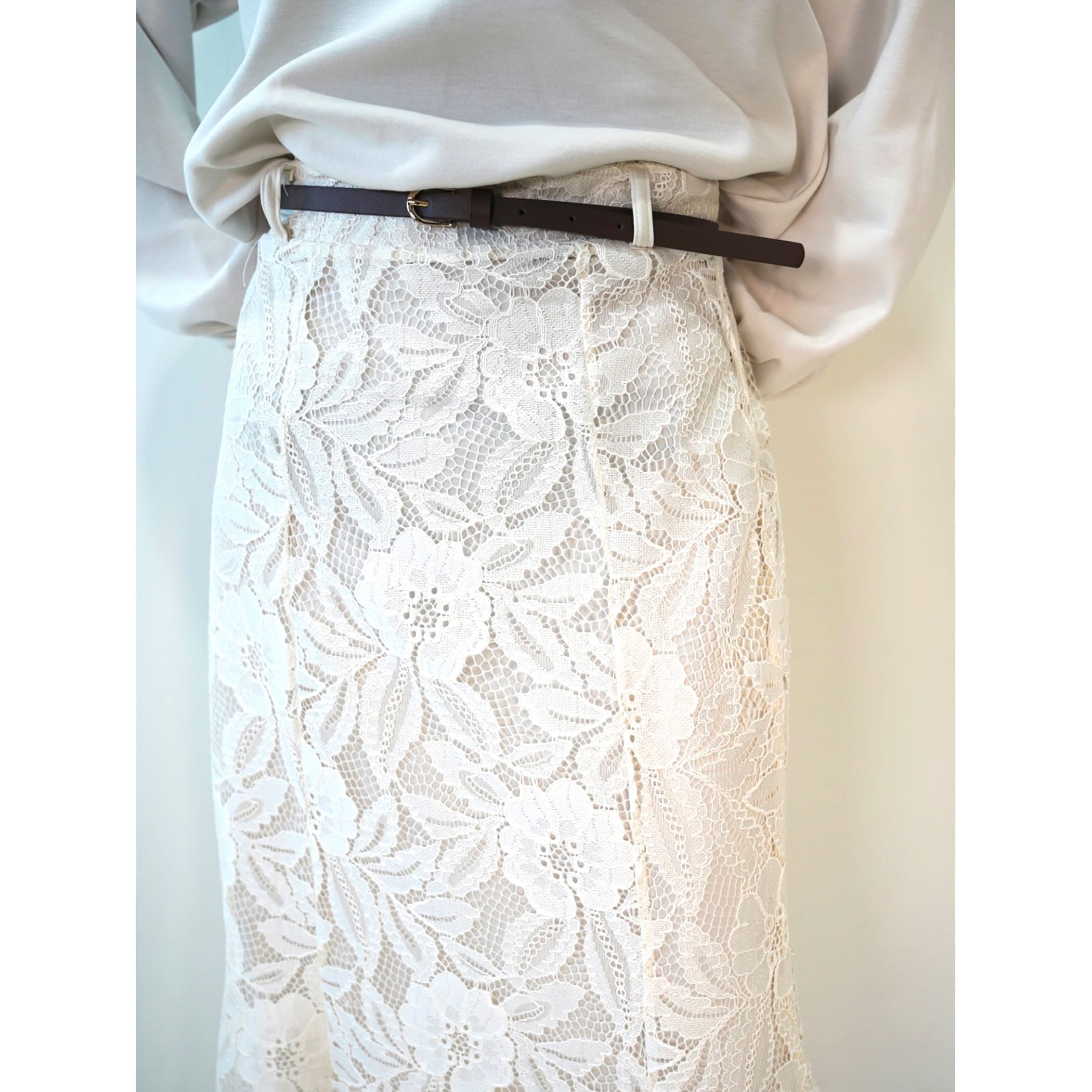 5枚でぱっと華やぐ繊細なレース柄をトレンドのマーメイドスカートに落とし込みました。歩くたびひらりと揺れる裾が女性らしく目を惹くポイント。ハイウエストなのでスタイルアップ効果も◎ウエストは一部ゴム仕様でラクにはいていただけます。トップスはコンパクトなものを合わせていただきインスタイルがお勧めです。