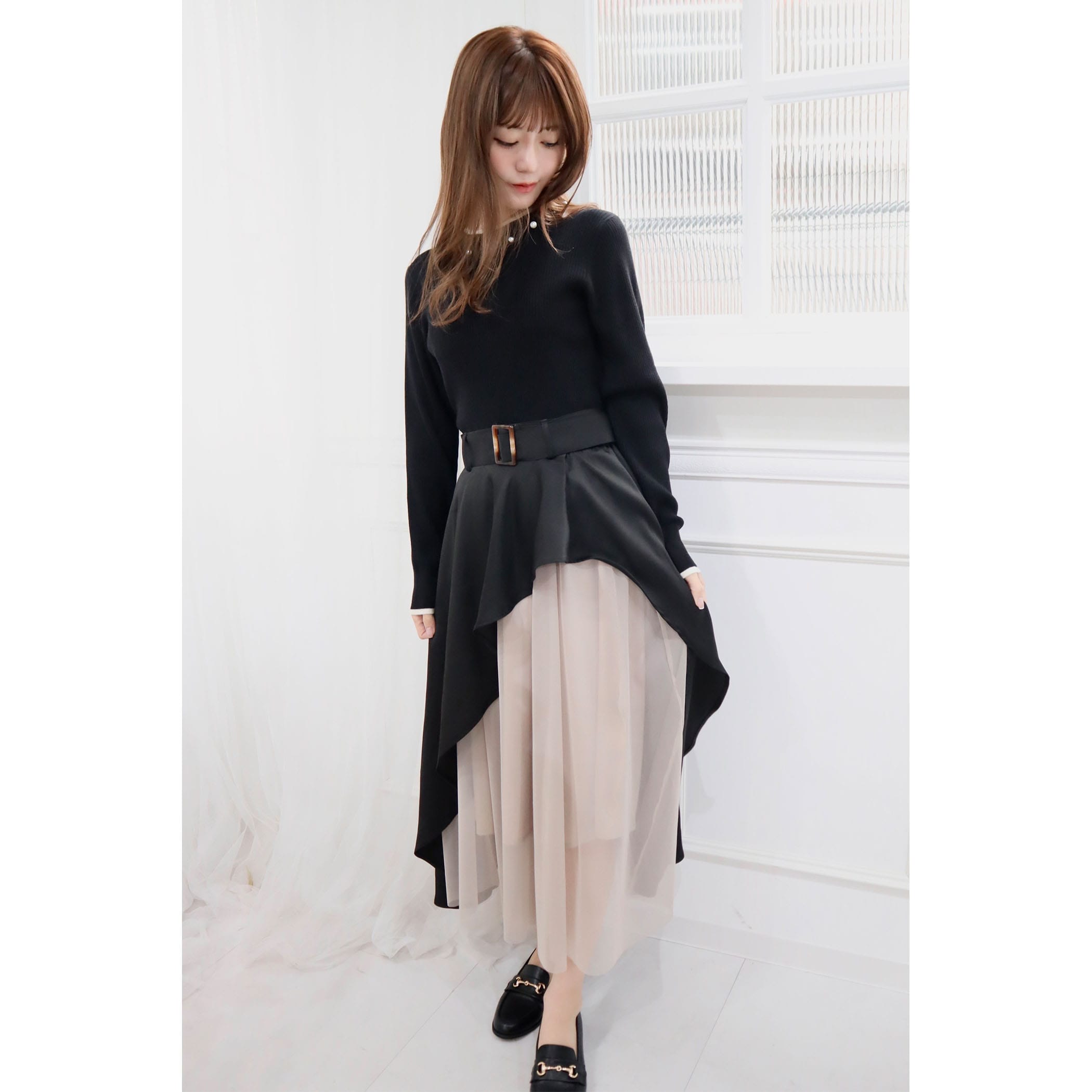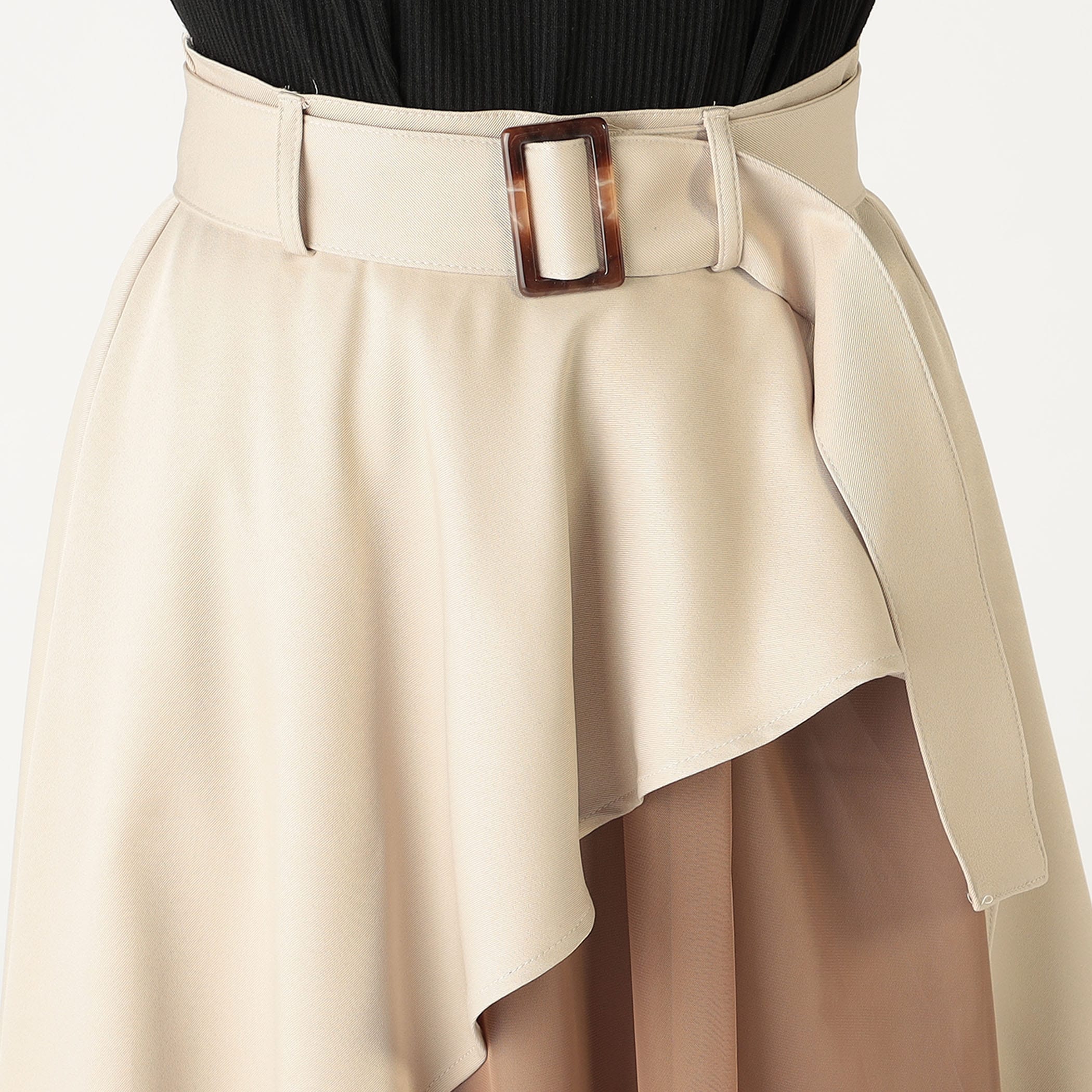ハイウエストデザインでスタイルUP効果が期待できる、アシンメトリースカート。チュール使いが全体の印象を軽やかに見せてくれるので、これからの季節にもぴったり◎TOPS次第でカジュアルからフェミニンスタイルまで楽しめます。