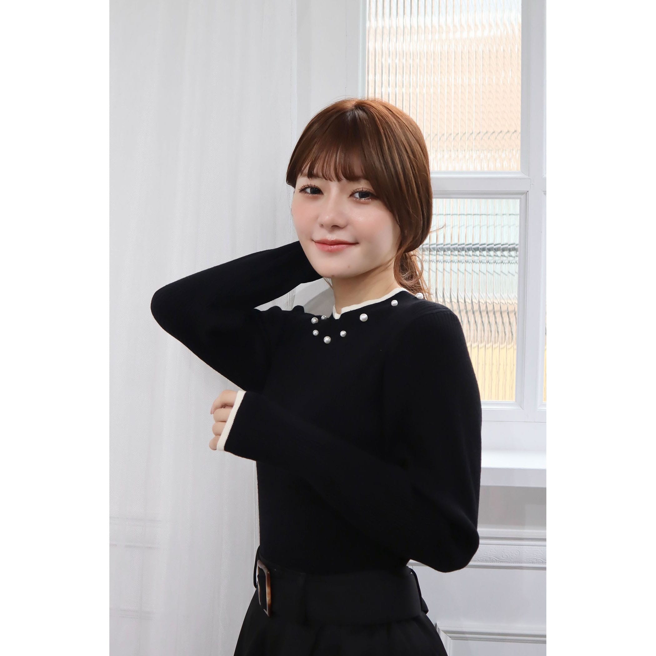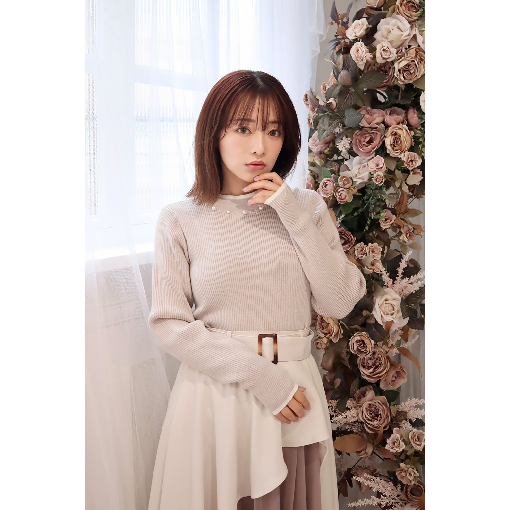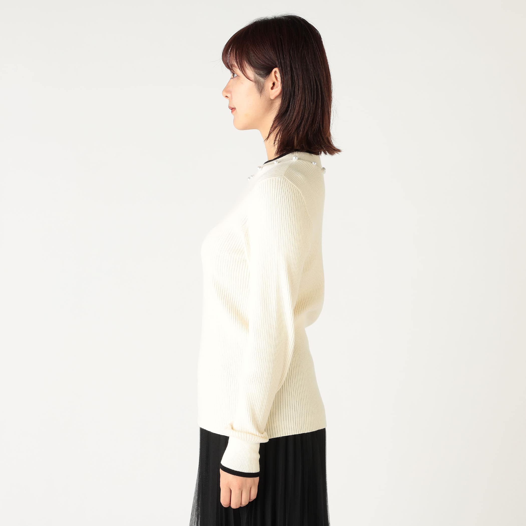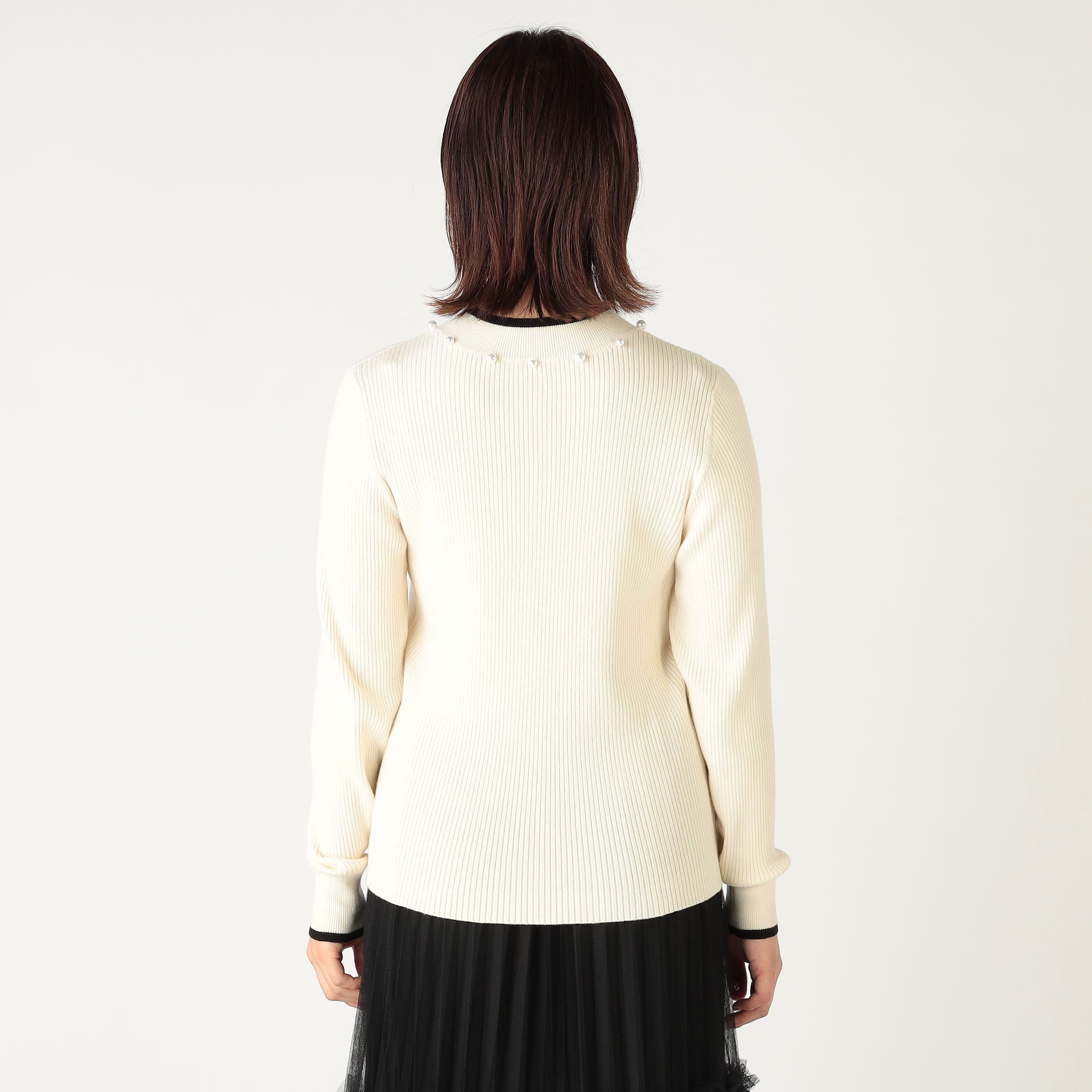 今季トレンドのパールデザインが可愛らしいデザインのプルオーバー。1枚でスタイルが決まるきれいめニット。襟ぐりに施された小ぶりなバールビジューが女性らしく高みえさせてくれます。フェミニン派は、マーメイドやフレアスカートに、カジュアル派はデニムパンツと合わせてカジュアルダウンさせたスタイルングがおすすめ◎パールがついているので、アクセサリーを付けなくても着映えする1枚です。