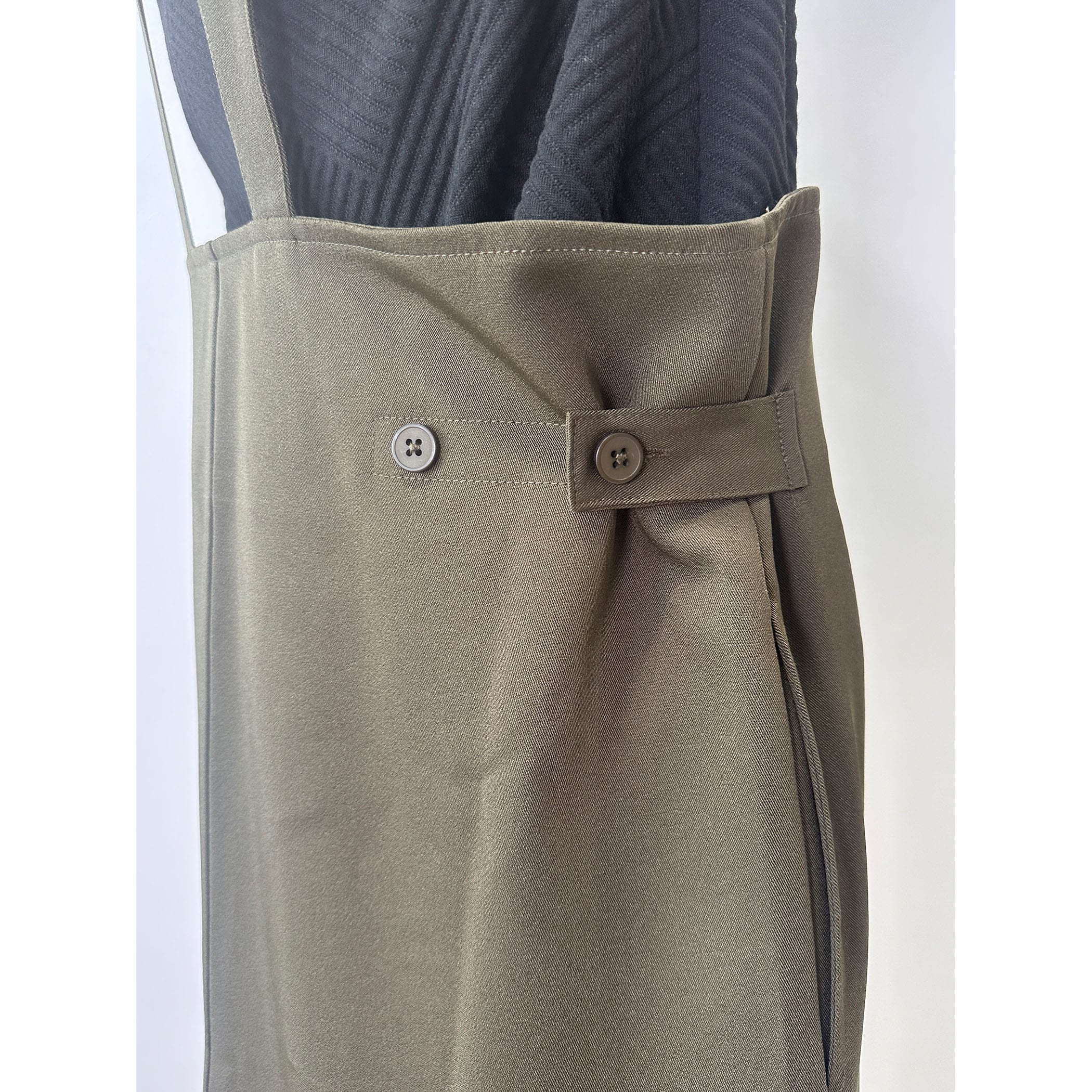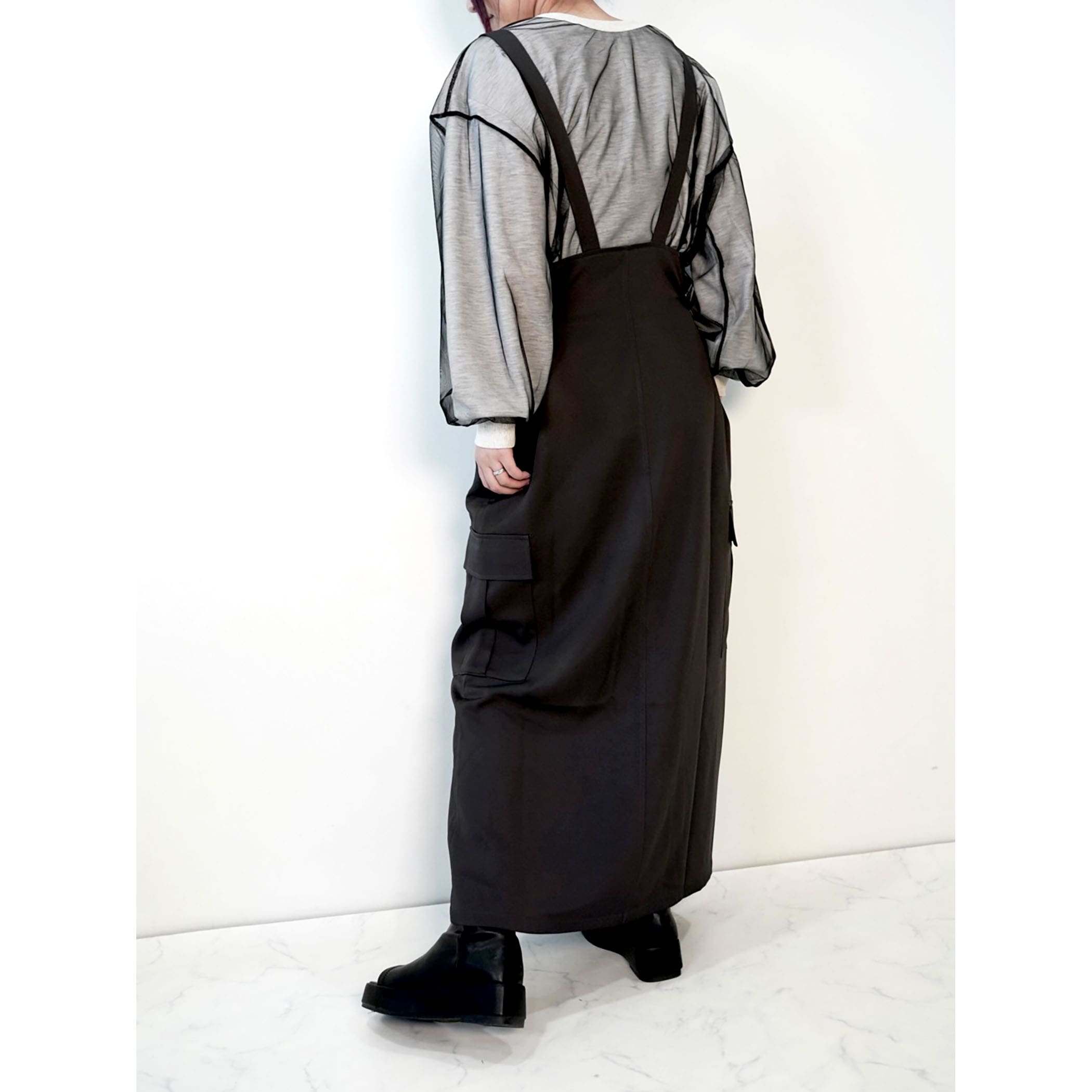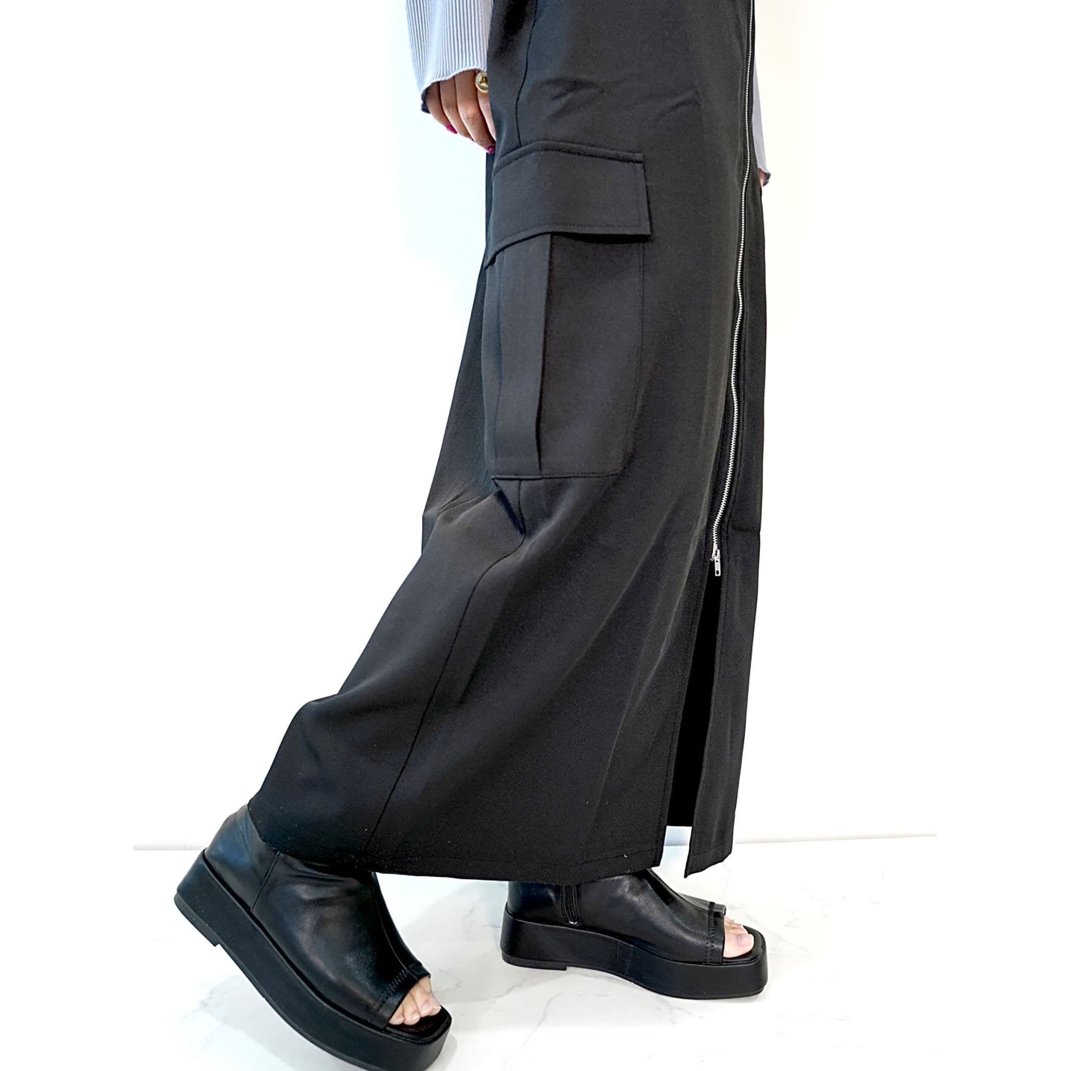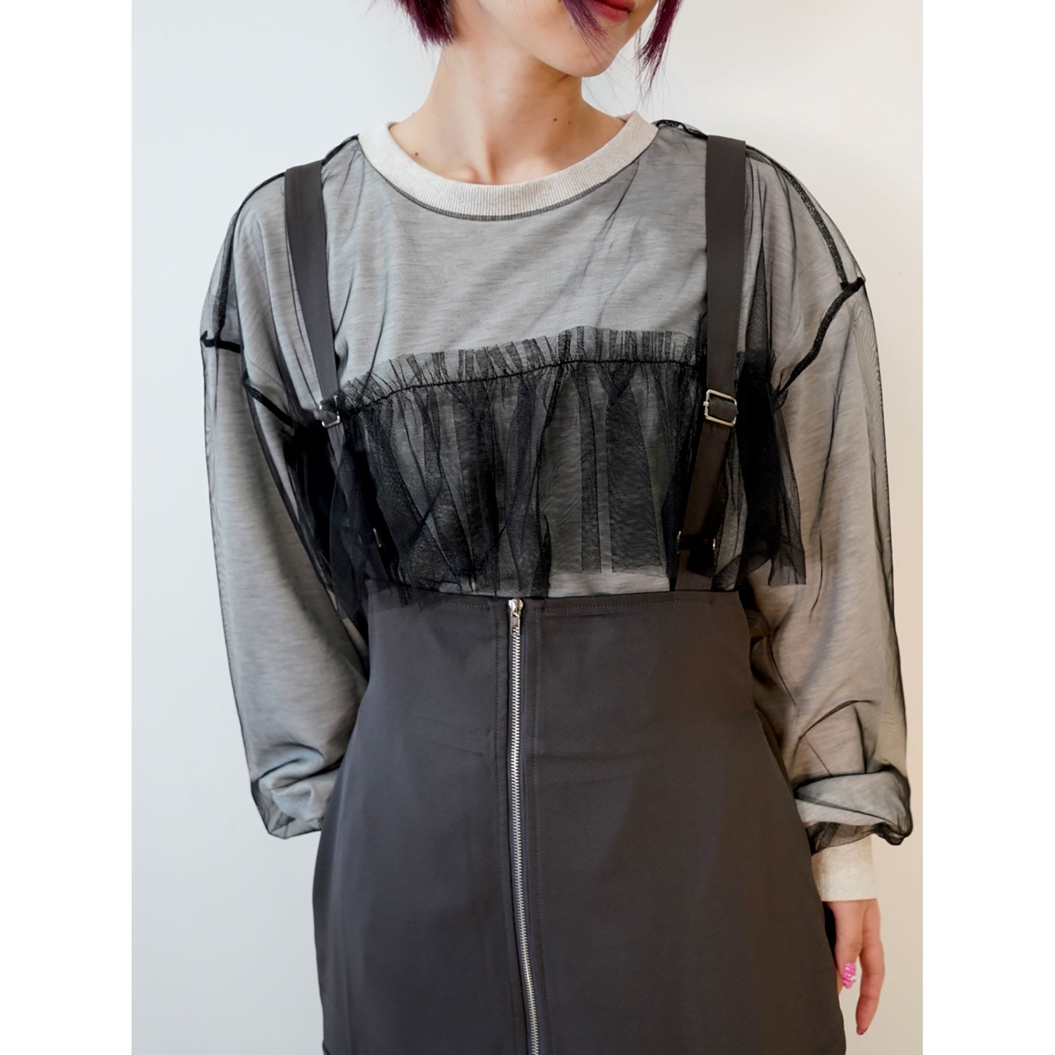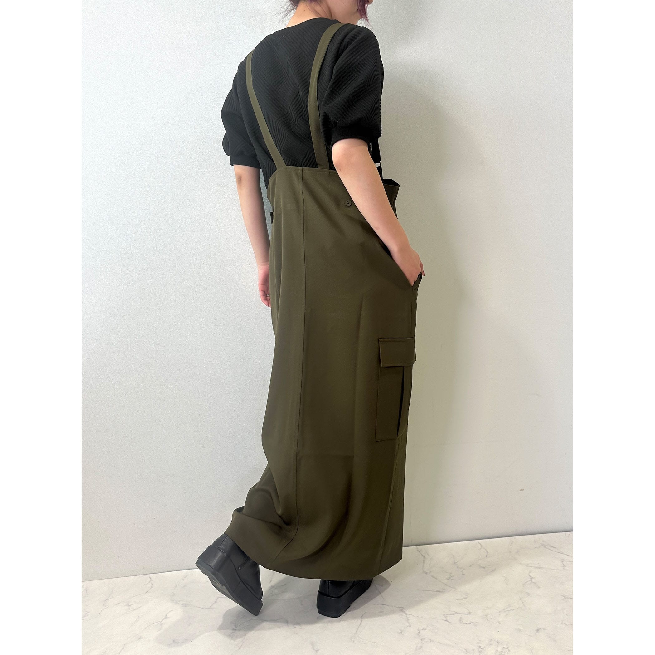 フロントジップとベルトショルダーがアクセントになった、ジャンスカワンピース。すとんと落ちるIラインのストレートシルエットでタイトそうに見えて、ゆったりめのデザインなので、体型を拾いにくくリラクシングな雰囲気で着ていただけます。春先からロンtやハイネックのカットソーなどレイヤードして着ていただくことができます。夏はタンクトップやキャミソールと合わせて、1枚あると楽にこなれ感のあるコーデが完成するおすすめの1着です。
