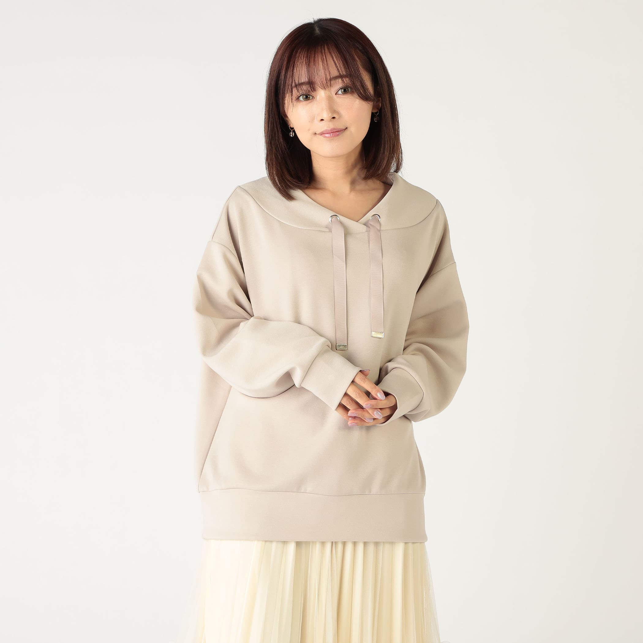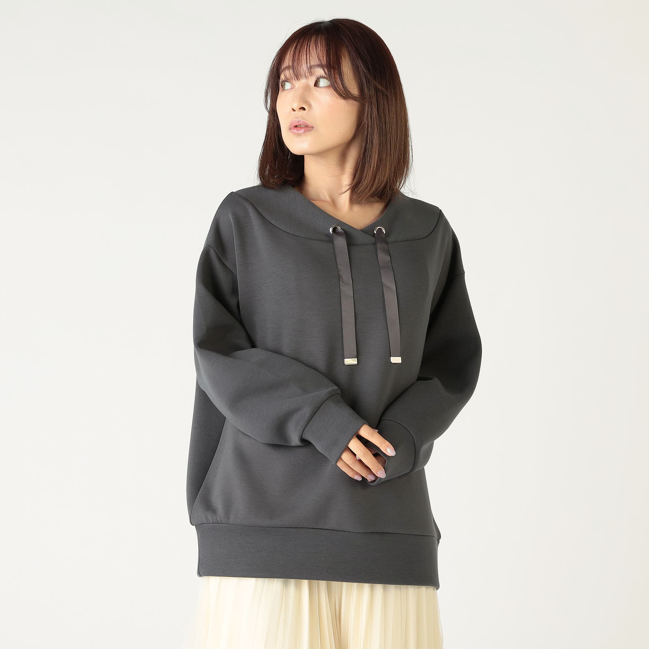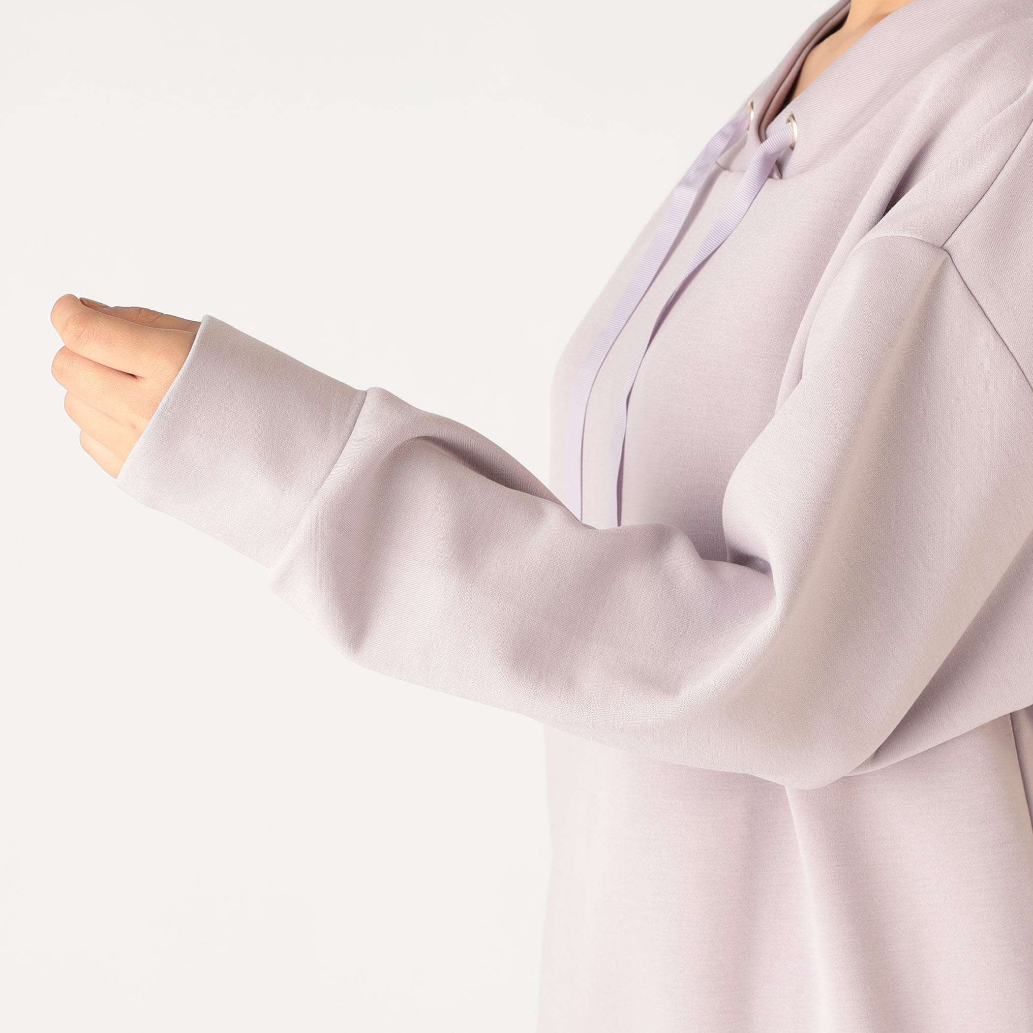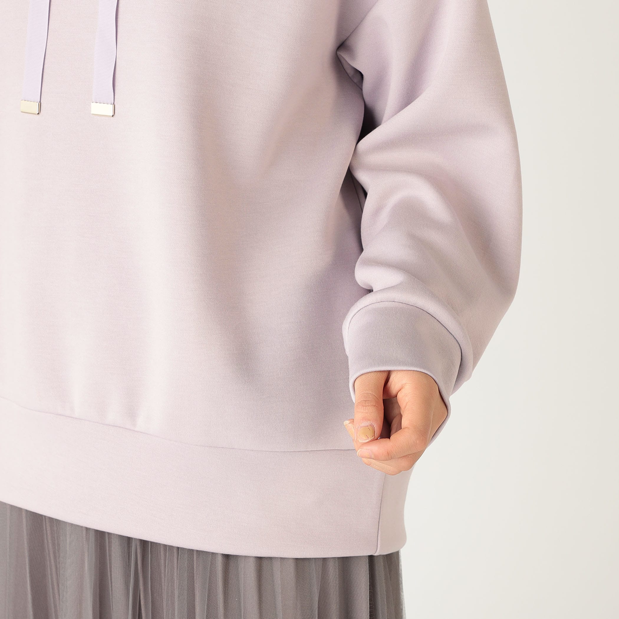 女性らしい、ドルマンスリーブプルオーバー 。カジュアルになりすぎないパーカはシルエットが決め手。もちっとふわふわした触感はまるでスフレのよう。包まれるような優しい着心地を体感できます。ハリ感があり、立体的な上品シルエットを叶えます。カジュアルさと上品さのバランス感がほどよく、スカートはもちろんのこと、きれいめなテーパードパンツに合わせてもスタイリッシュに決まります。