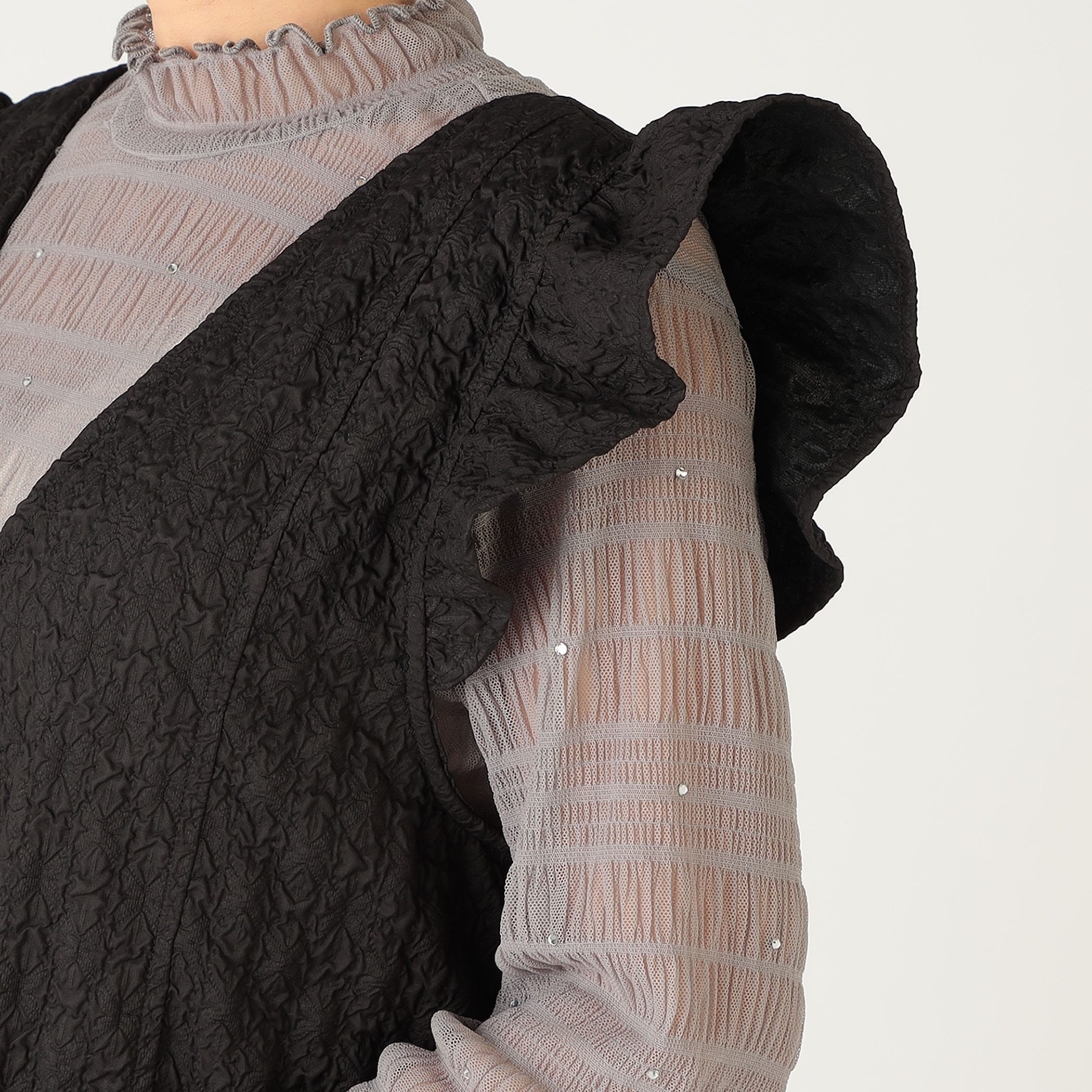 花柄エンボス 肩フリルジャンスカ