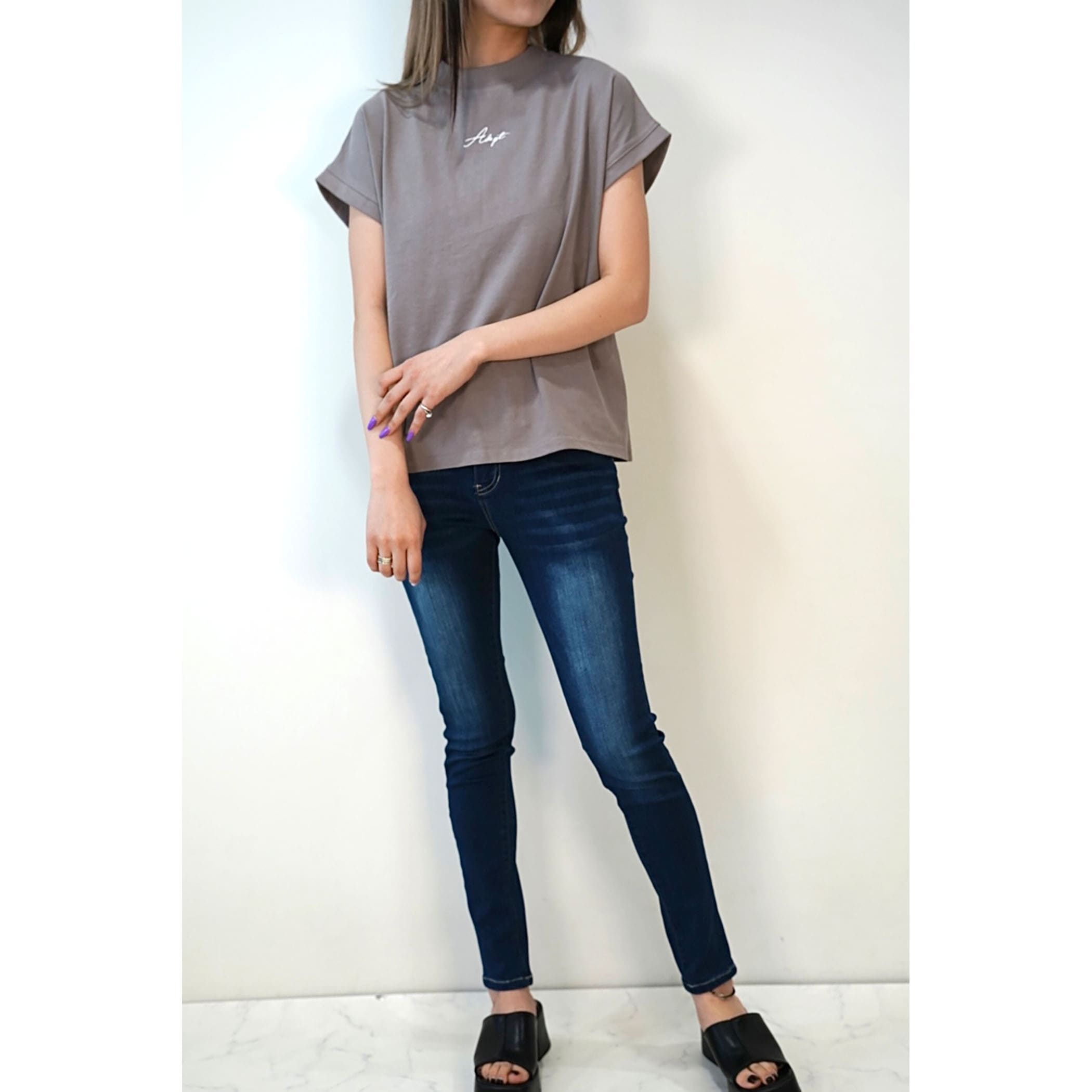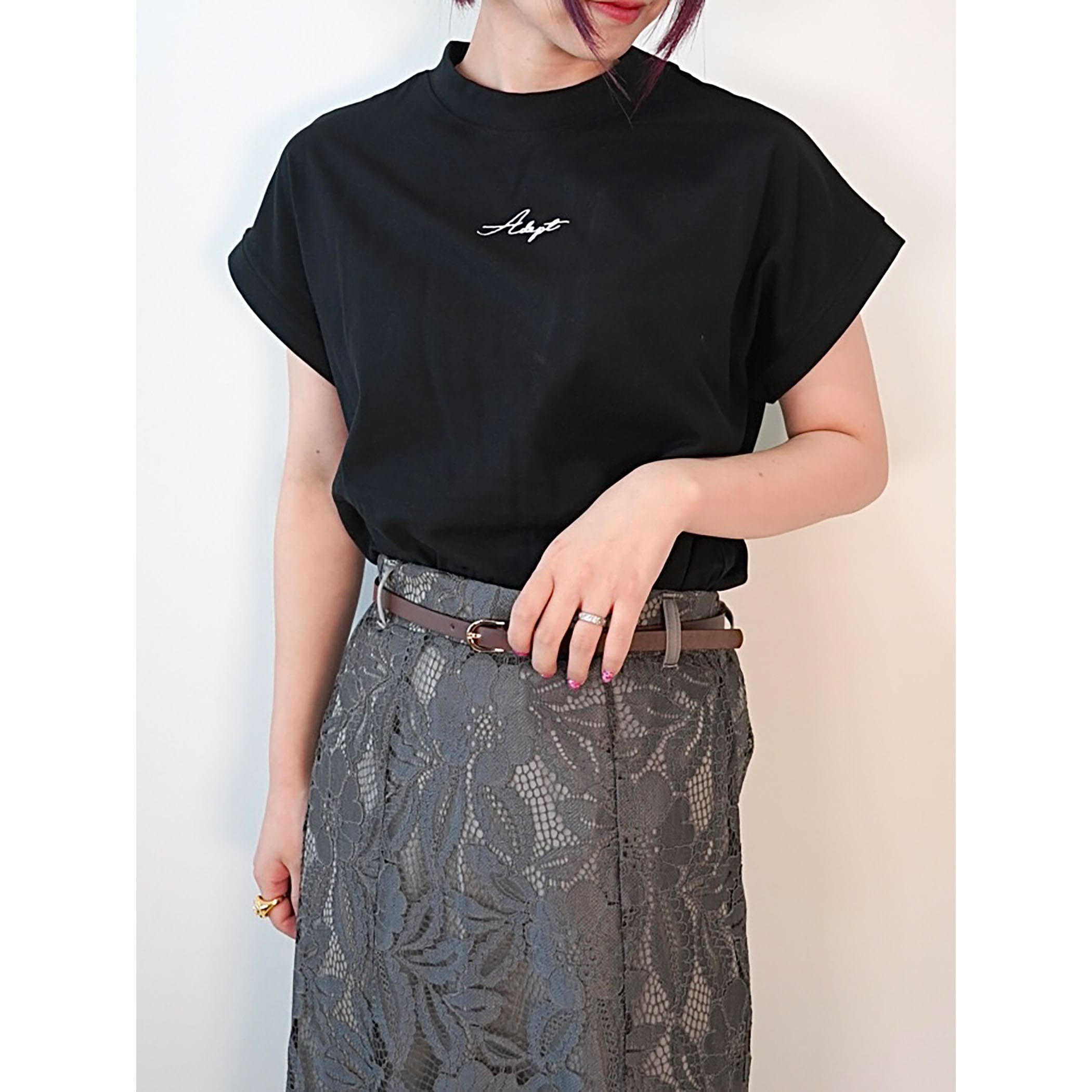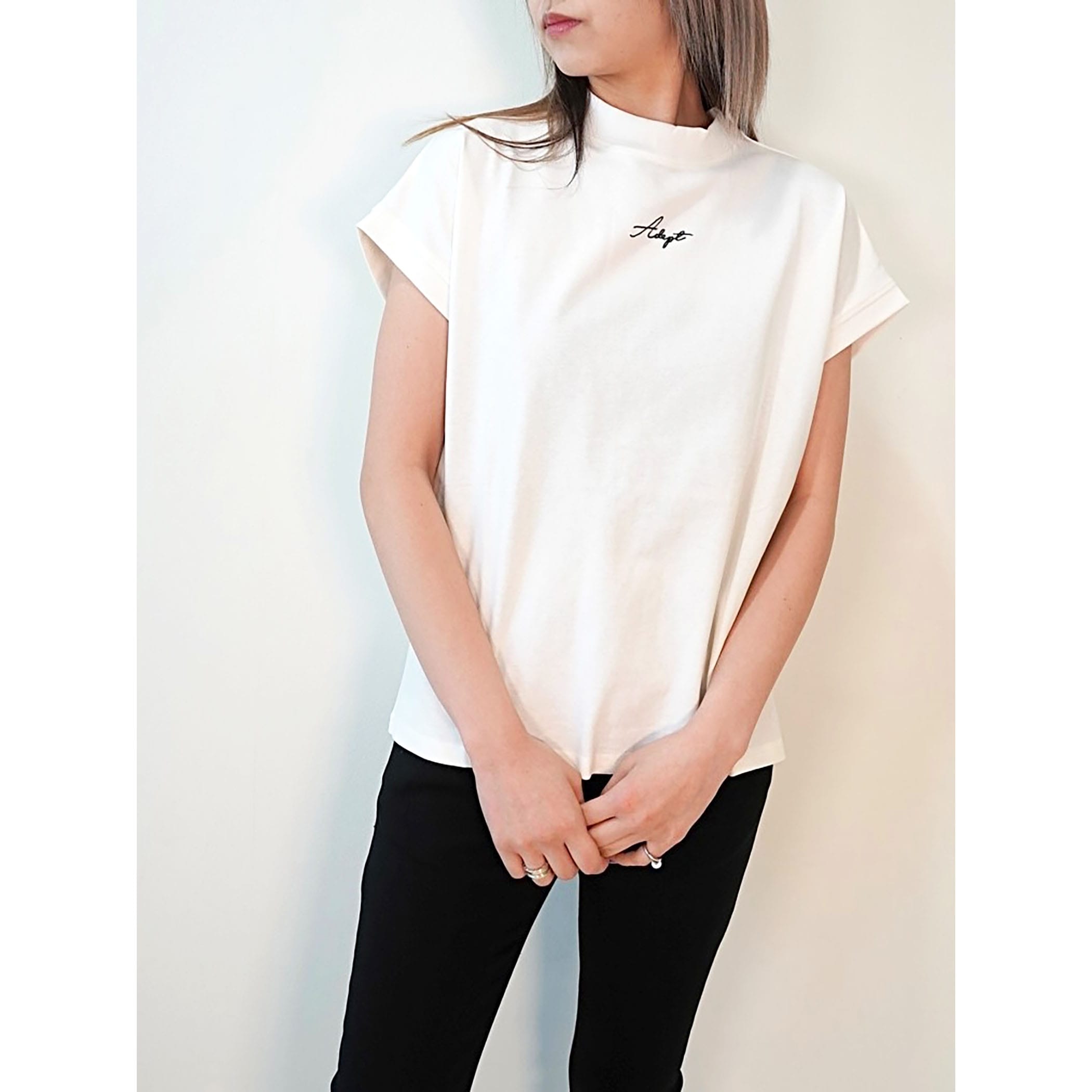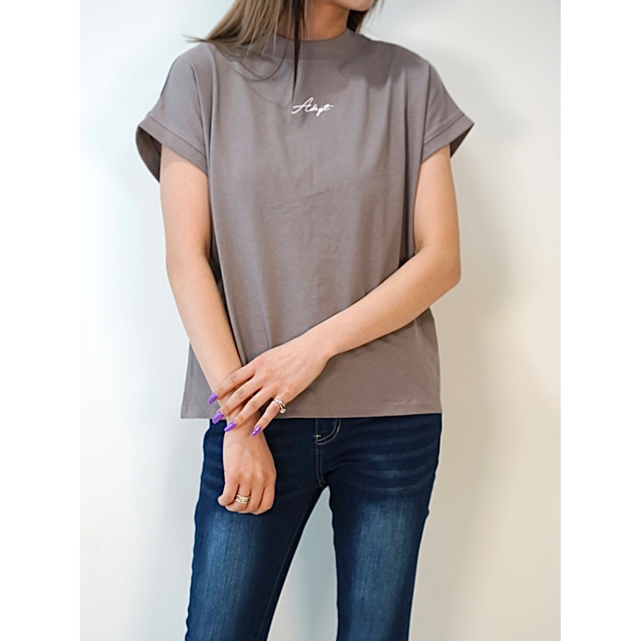 胸元のワンポイント刺繍が目を引くフレンチスリーブプルオーバー。首に沿ったモックネック仕様でキレイ目な印象に◎シンプルなデザインなので色々なコーディネートに使える1着です!