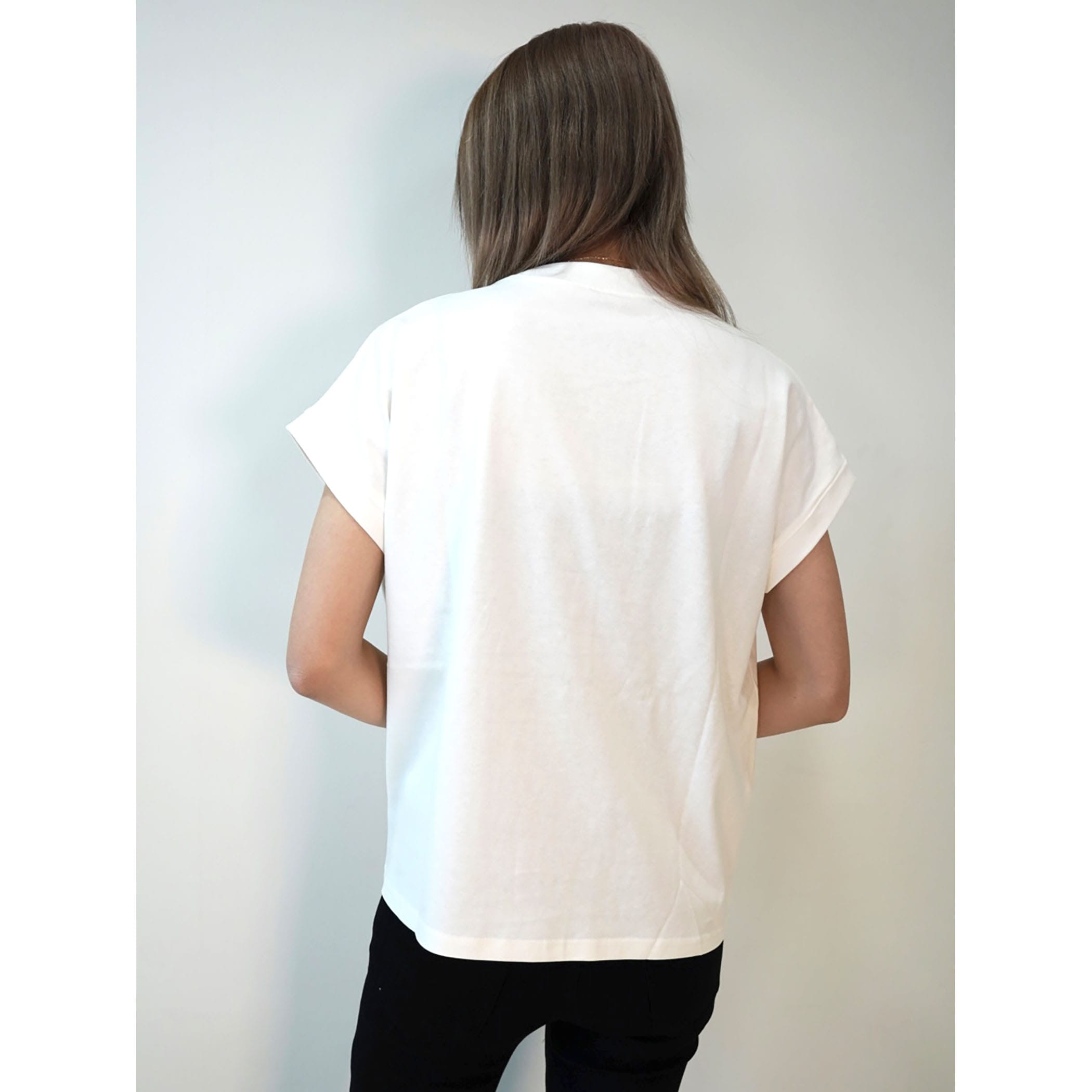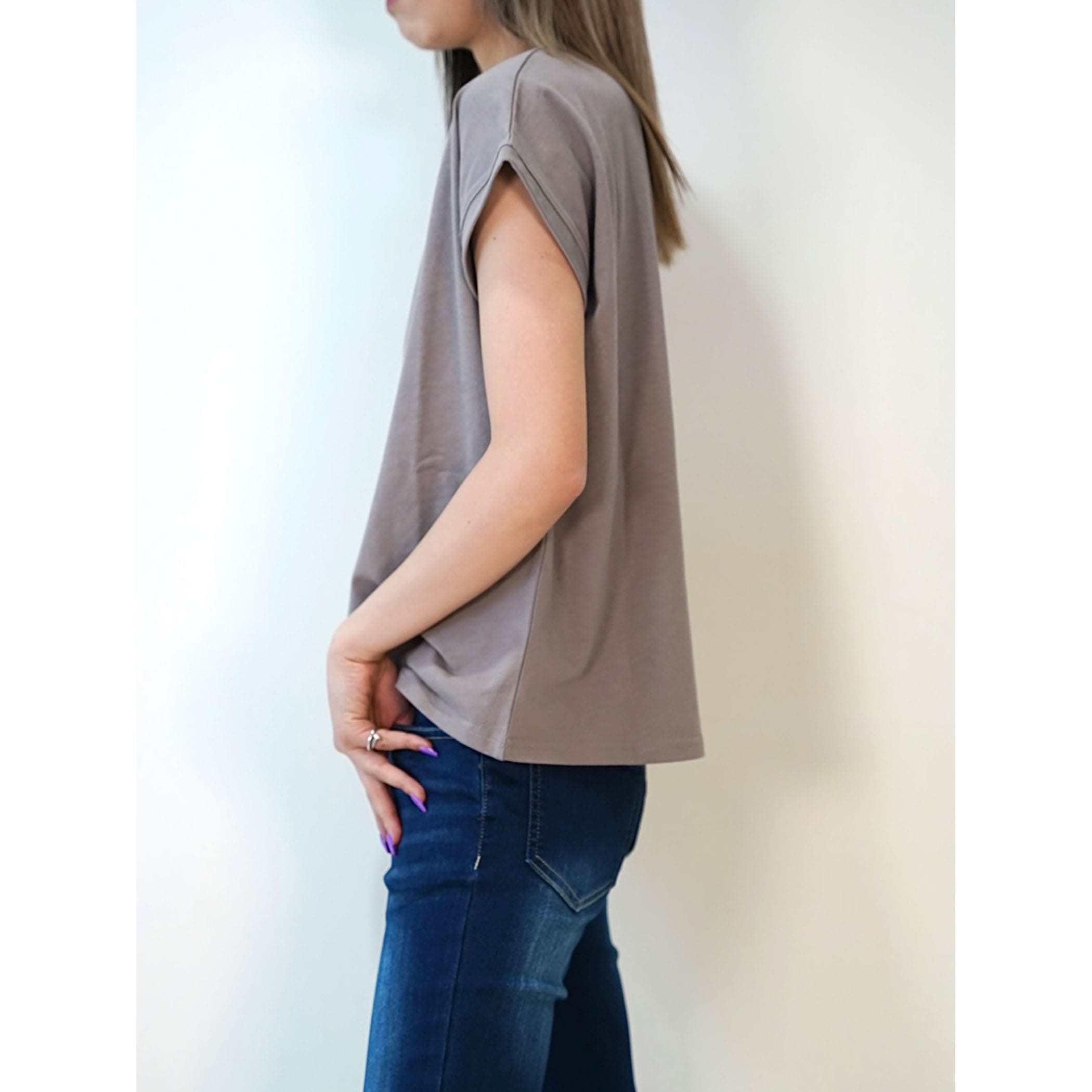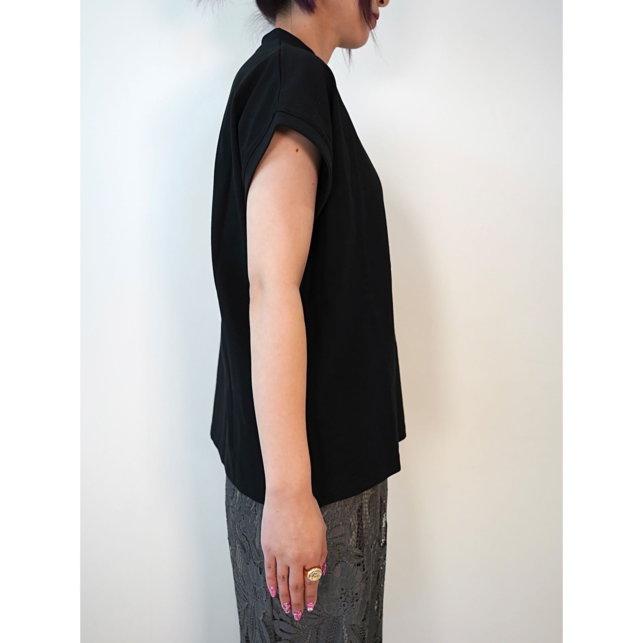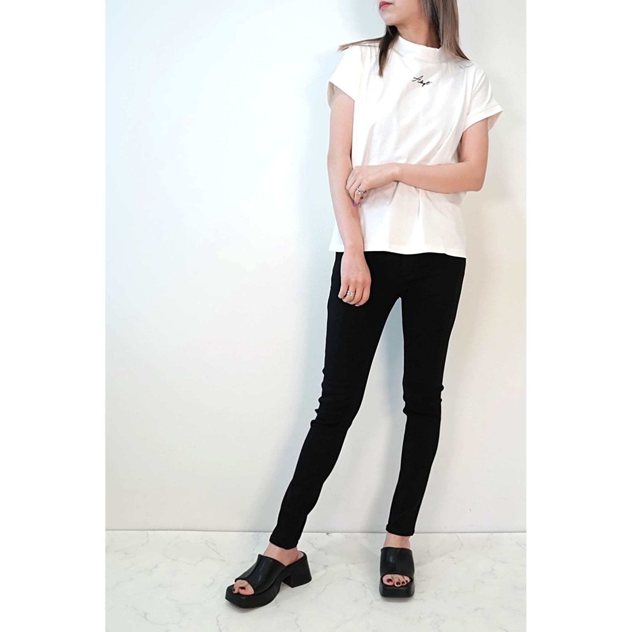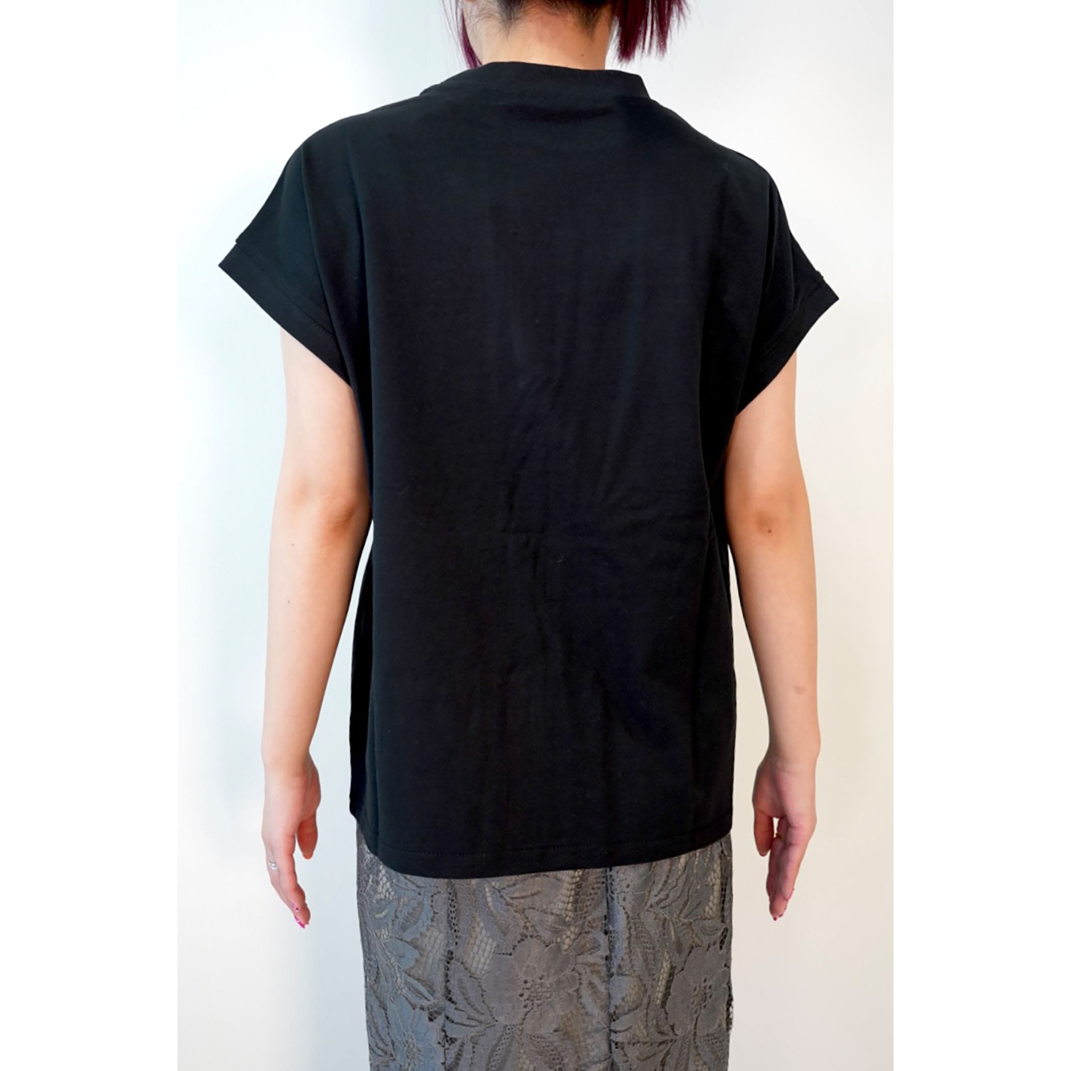 胸元のワンポイント刺繍が目を引くフレンチスリーブプルオーバー。首に沿ったモックネック仕様でキレイ目な印象に◎シンプルなデザインなので色々なコーディネートに使える1着です!