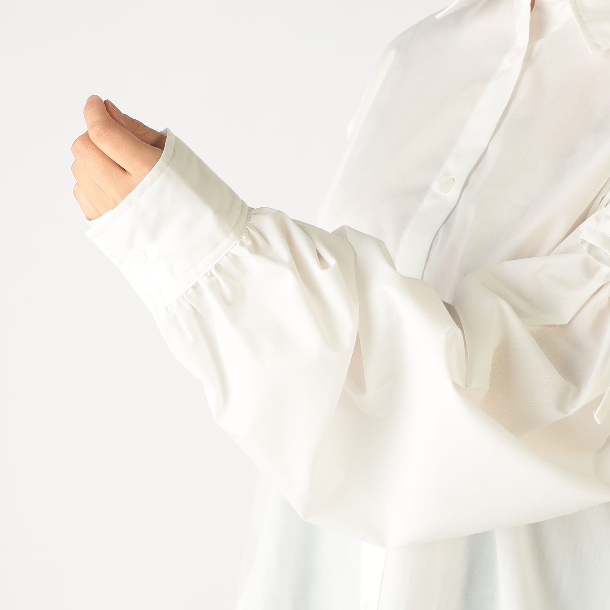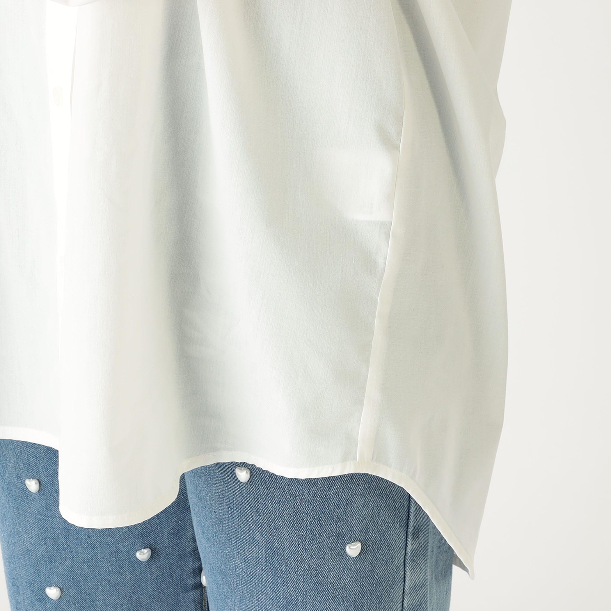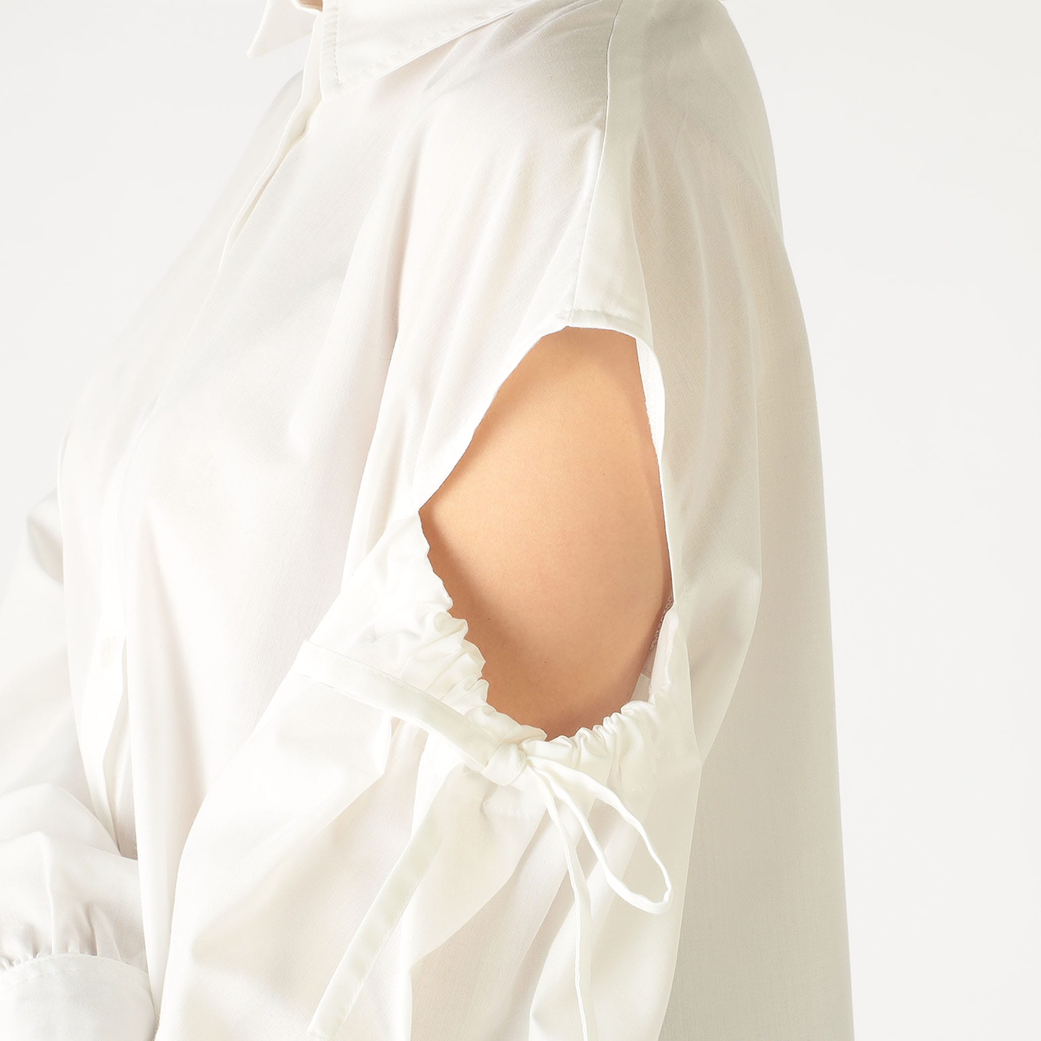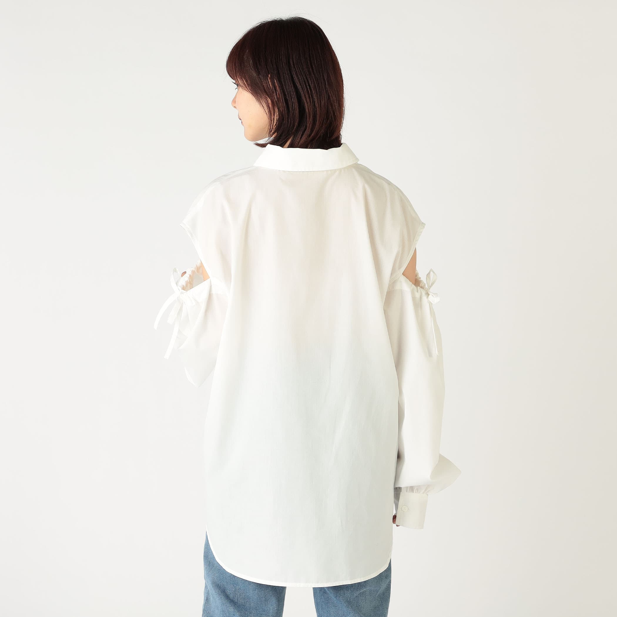 袖開きデザインが今っぽい、ゆるシルエットシャツ。袖開き部分はドロストで調節出来ます。合わせるボトムによって可愛くもクールにもなれる1着☆