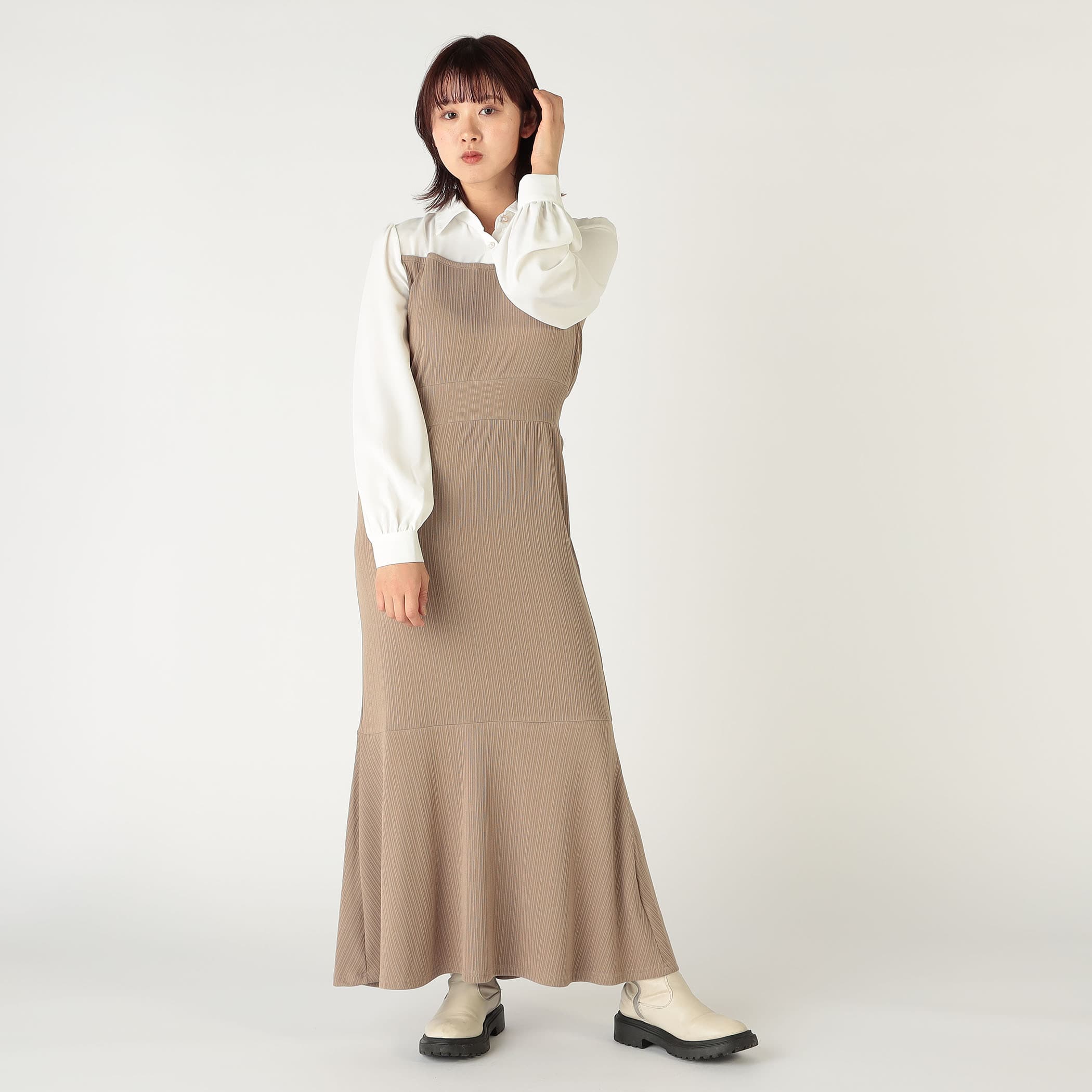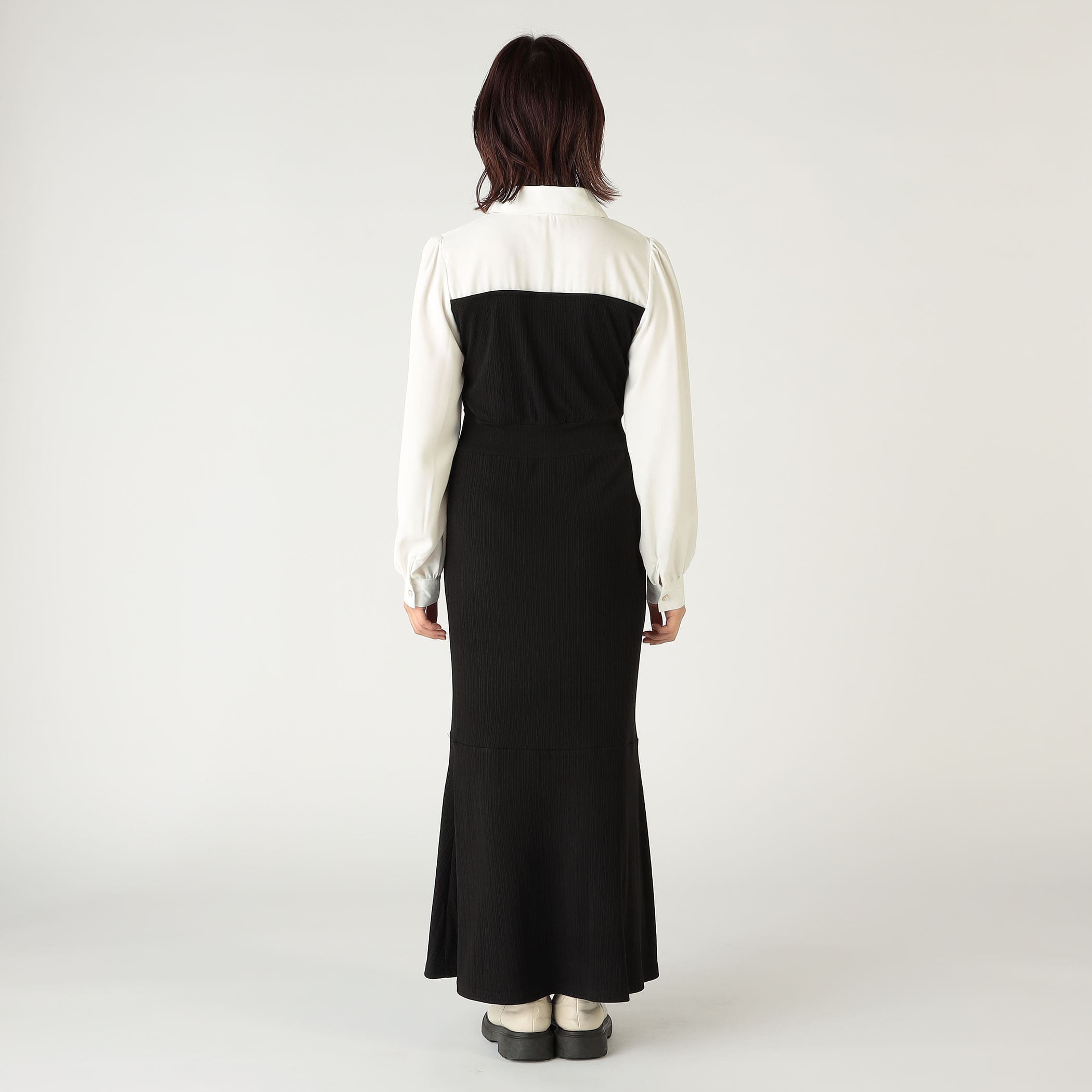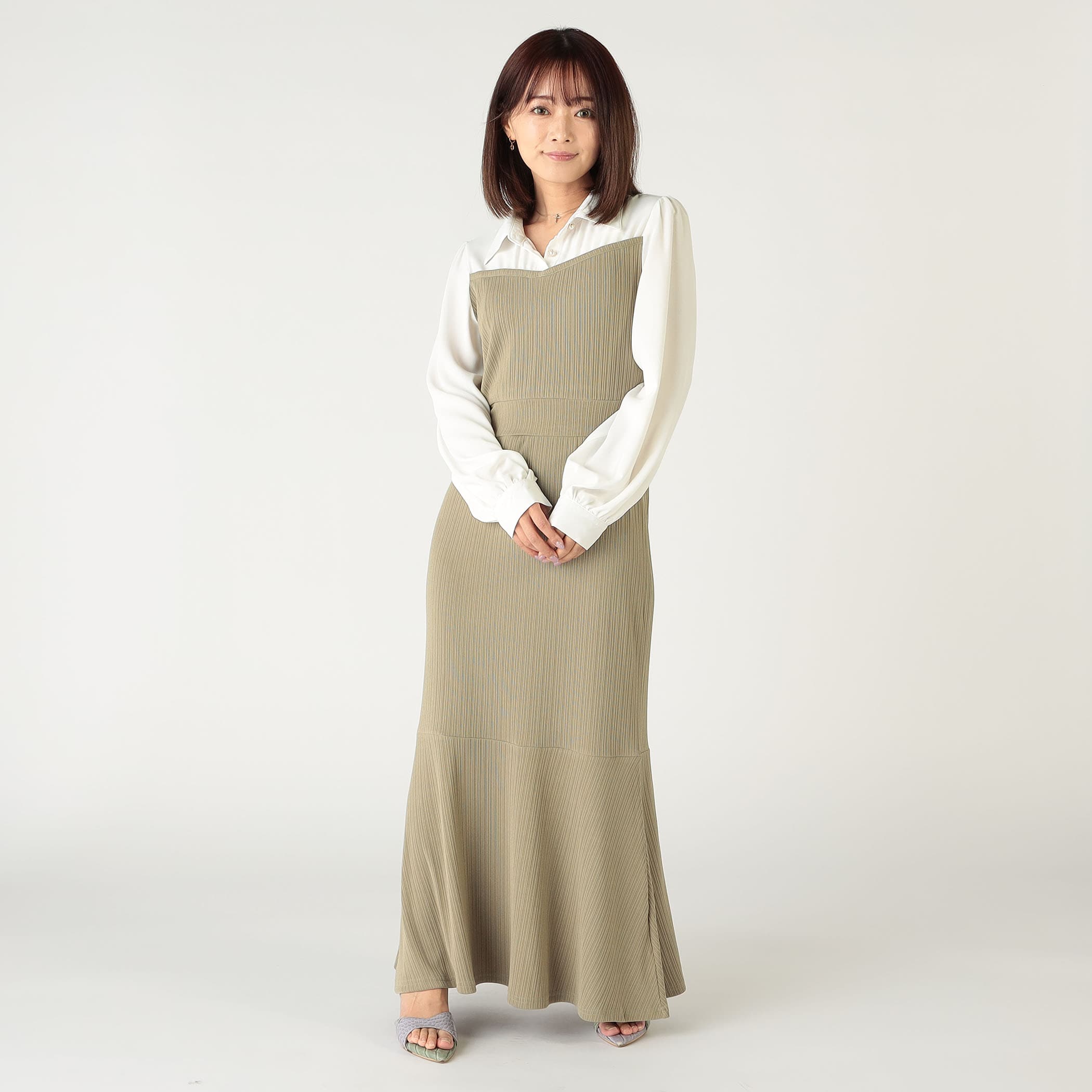 レイヤードスタイルが1枚で決まるブラウスドッキングワンピースワンピースとブラウスをレイヤードしているようなデザイン。高めのウエスト切り替えでスタイルアップ効果も◎程よいフレア感が女性らしさを引き立てくれる一着です。