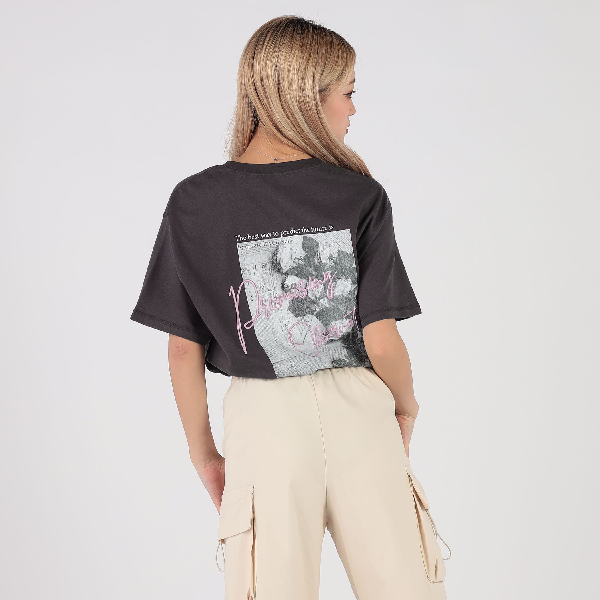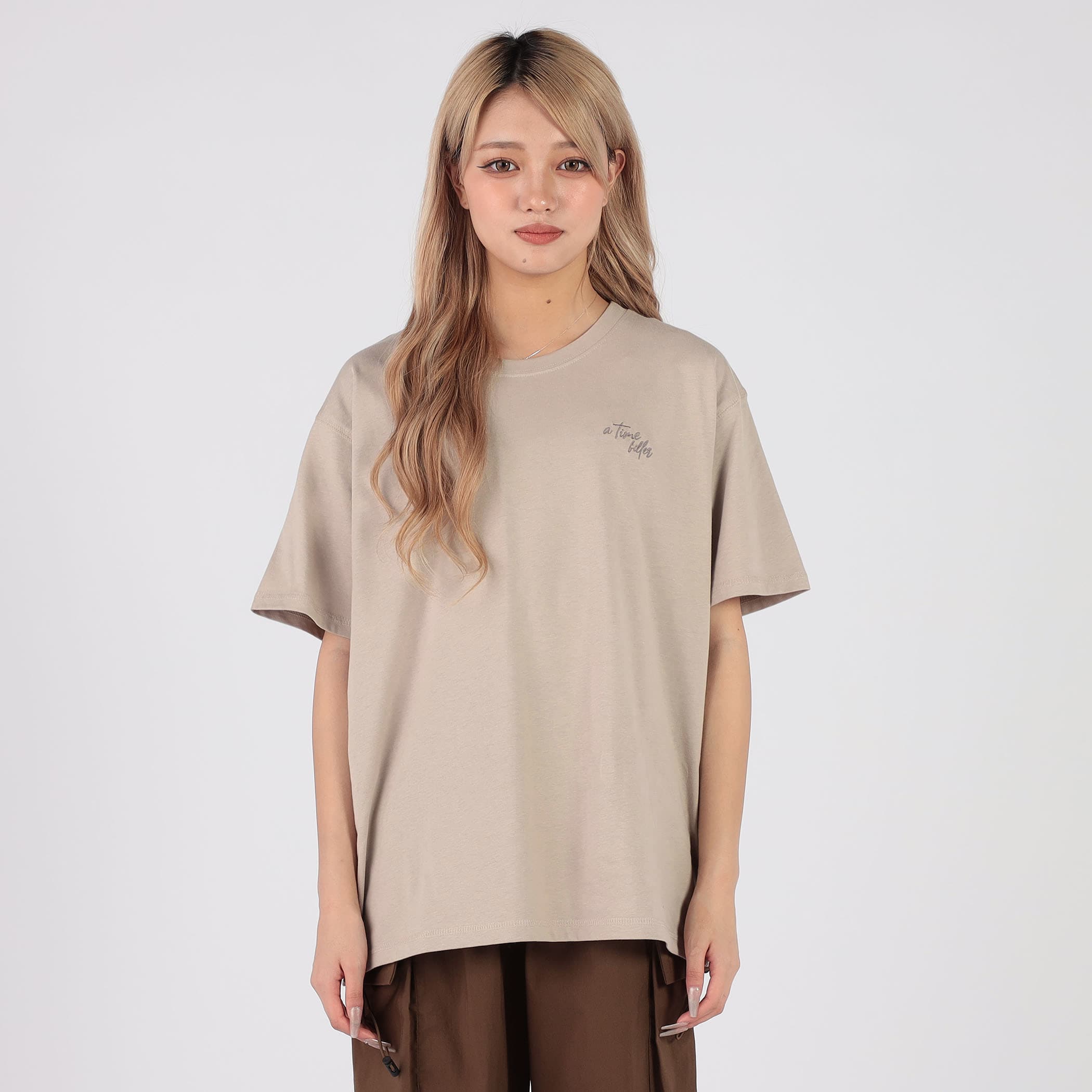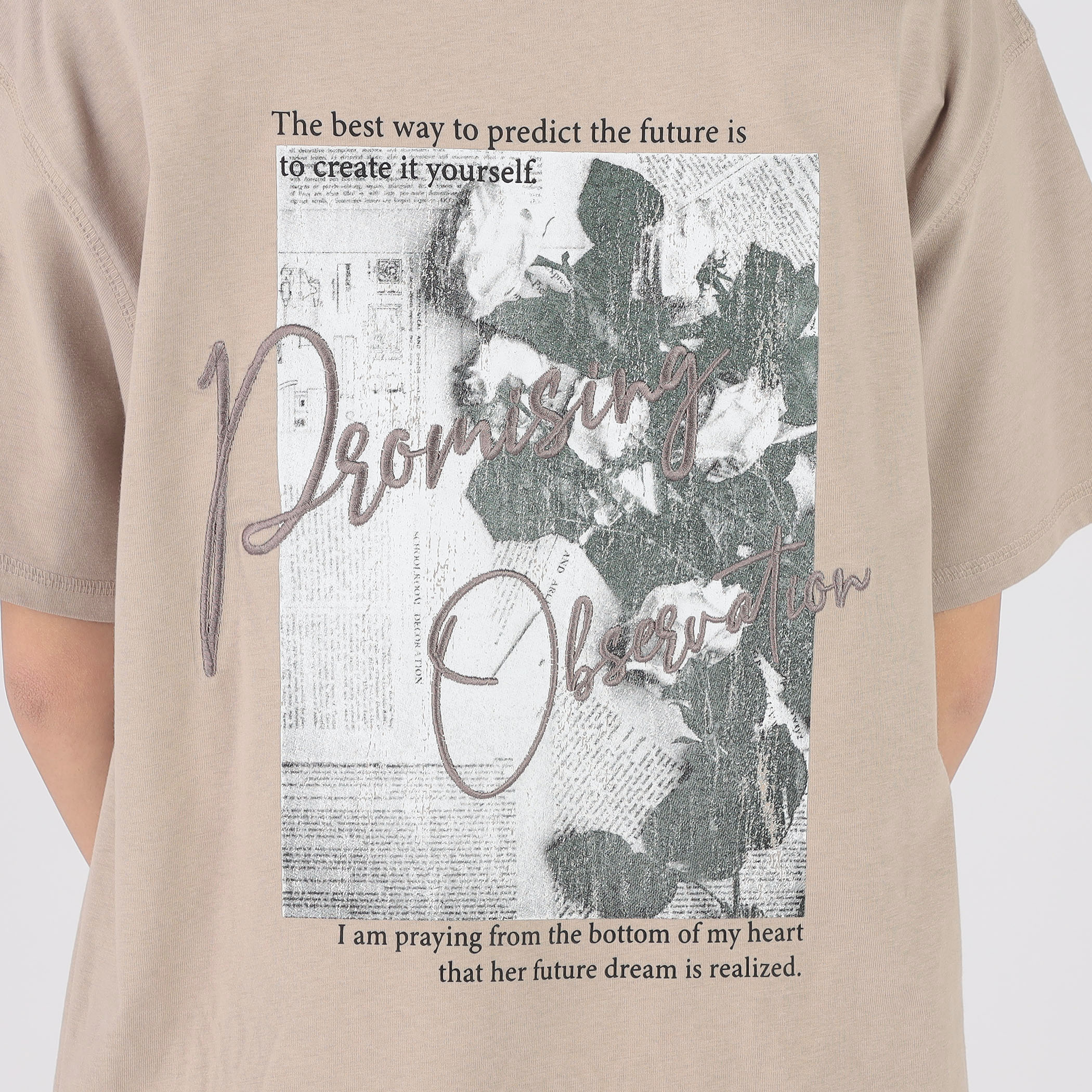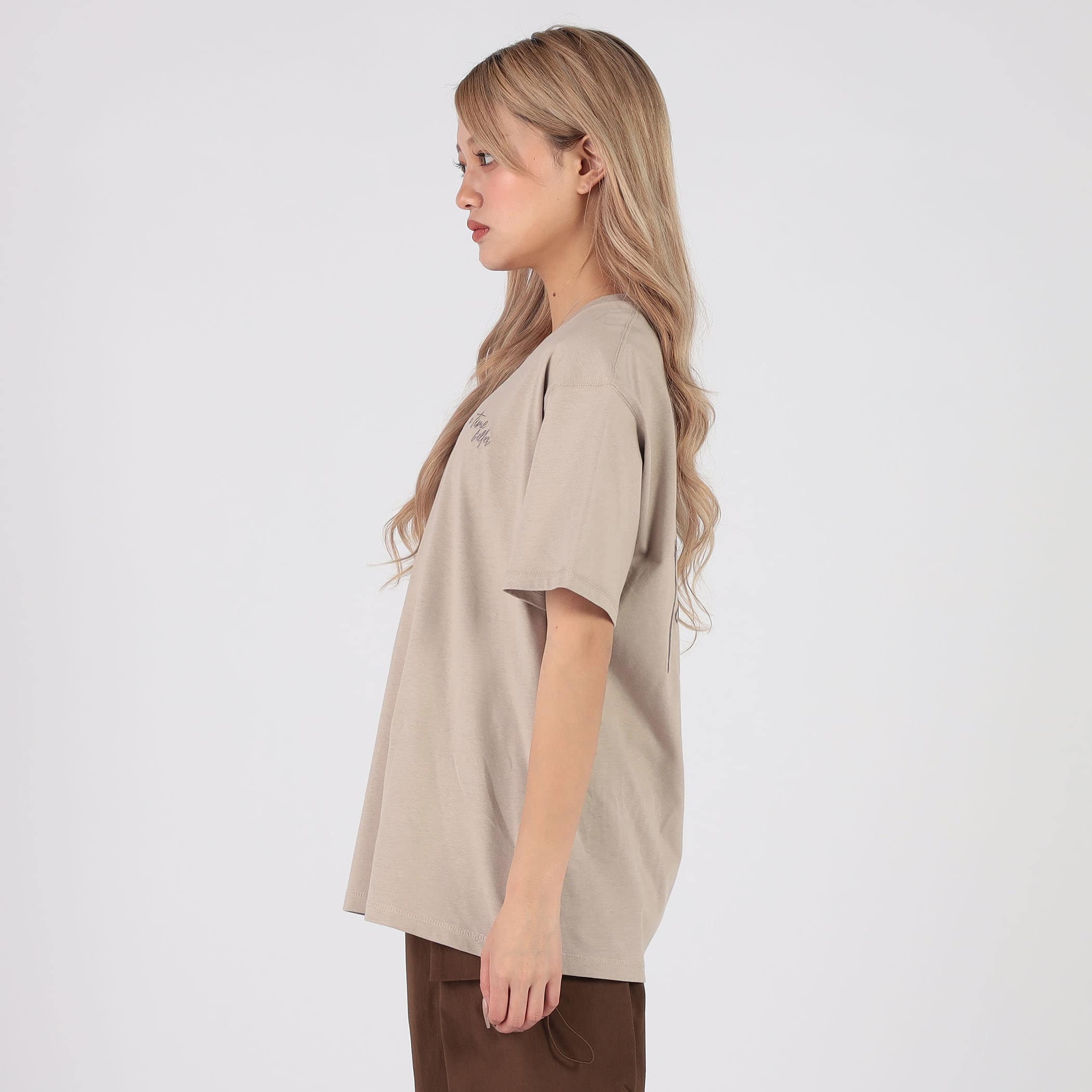 バックのモノトーンフォトPTにカラーの大き目ロゴ刺繍が映えるBIGシルエットTシャツ。左胸にも刺繍が入っているので、コーディネートのアクセントに☆カジュアルな素材感・ベーシックなシルエットで着回ししやすいアイテムです。