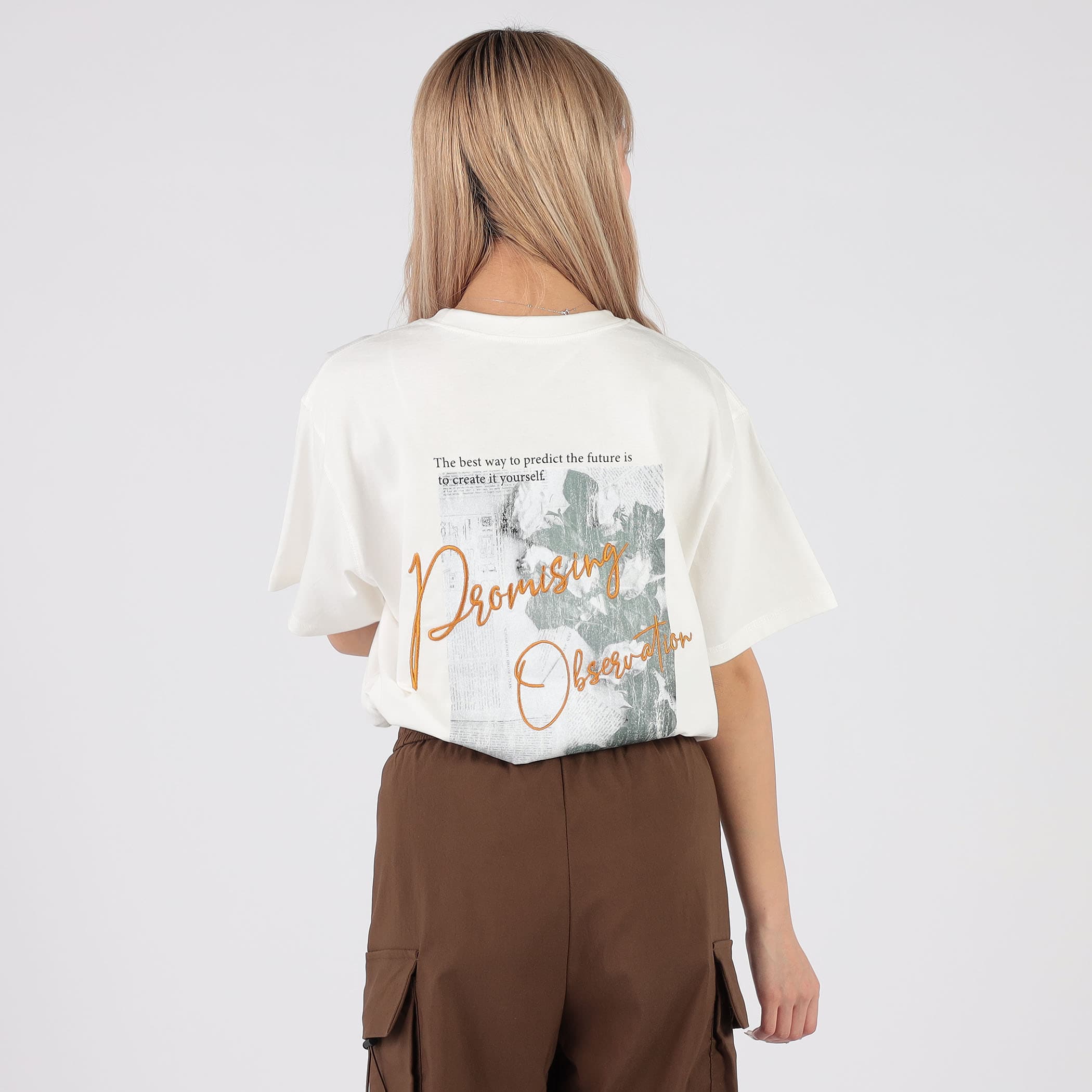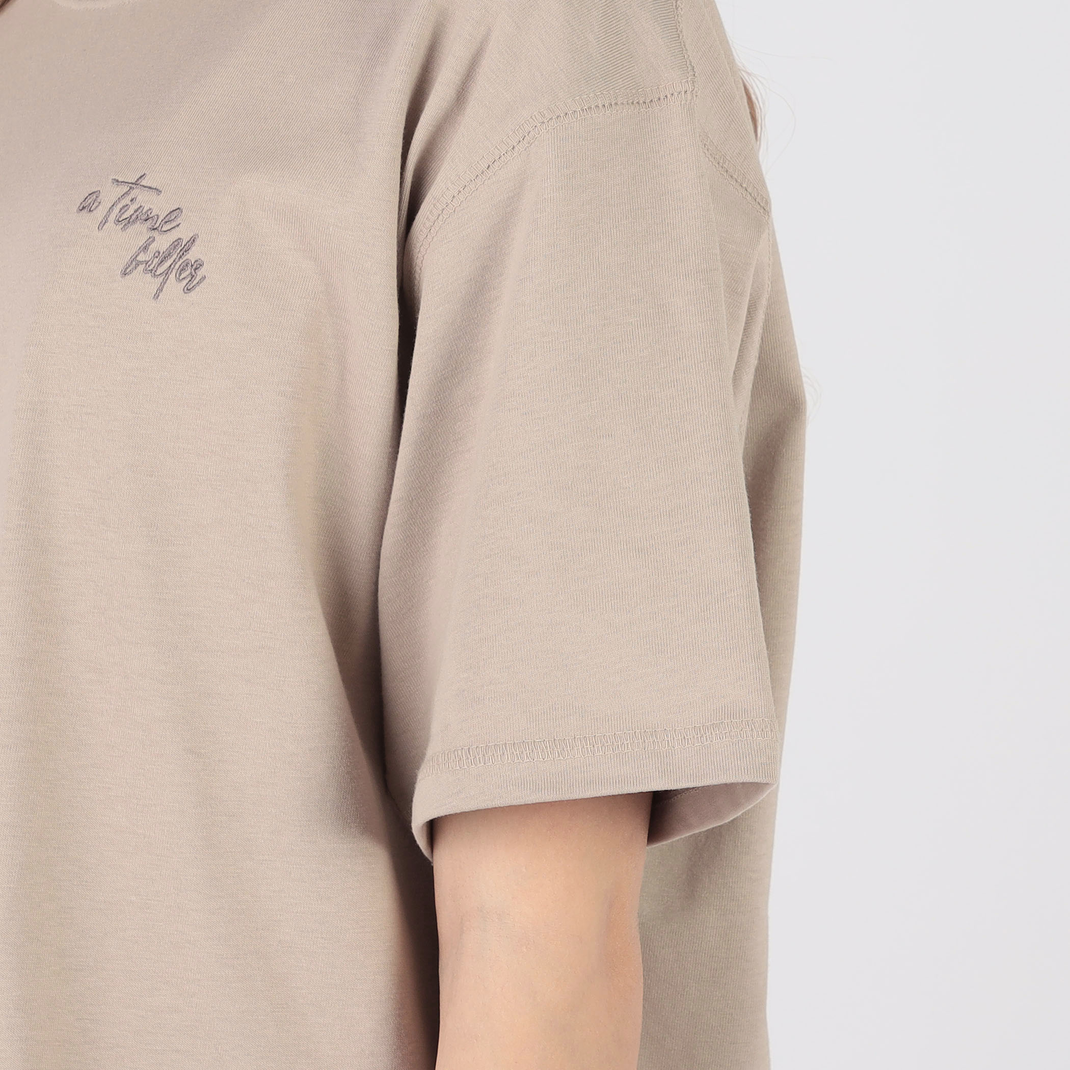 バックレタリングプリント刺繍Tシャツ