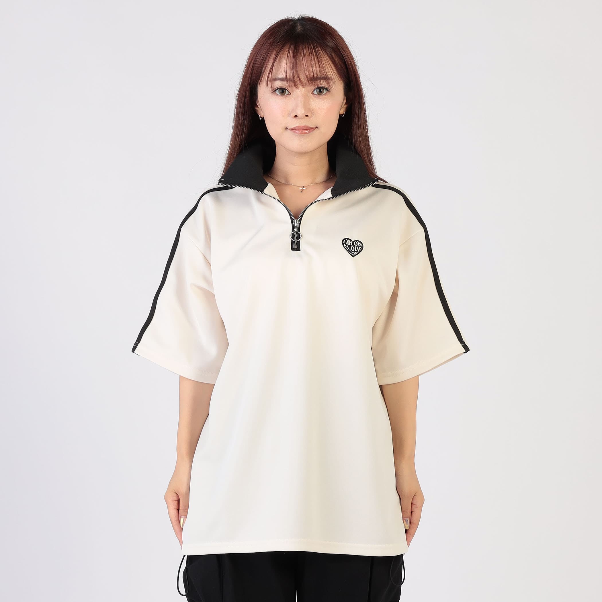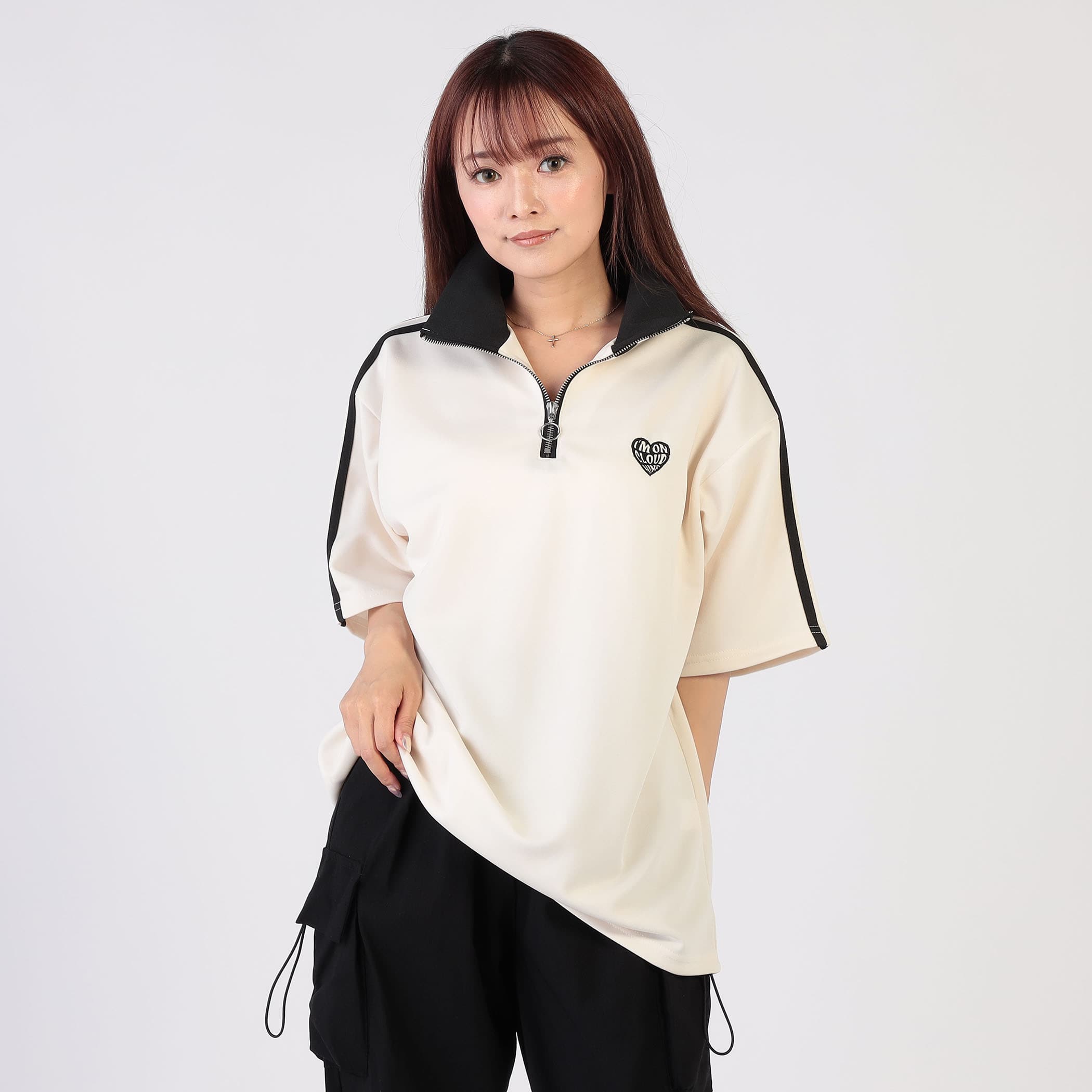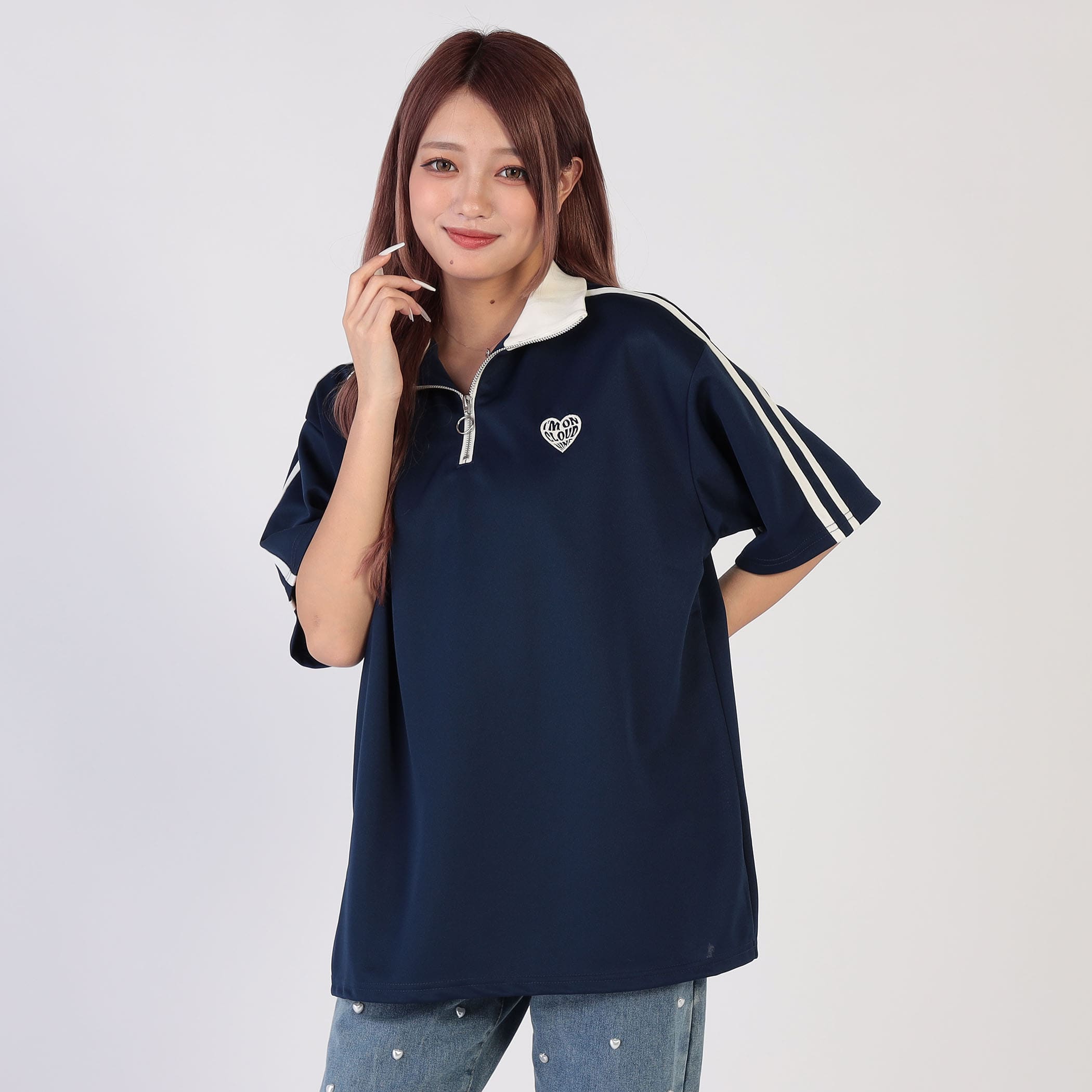 トレンドのトラックデザインにハーフジップデザインを取り入れたスポーティーPO。袖のライン使いと配色のワンポイント刺繍がアクセントに。さらっとしたジャージ素材なのでこの時期に活躍してくれる通気性良い有能アイテムです。