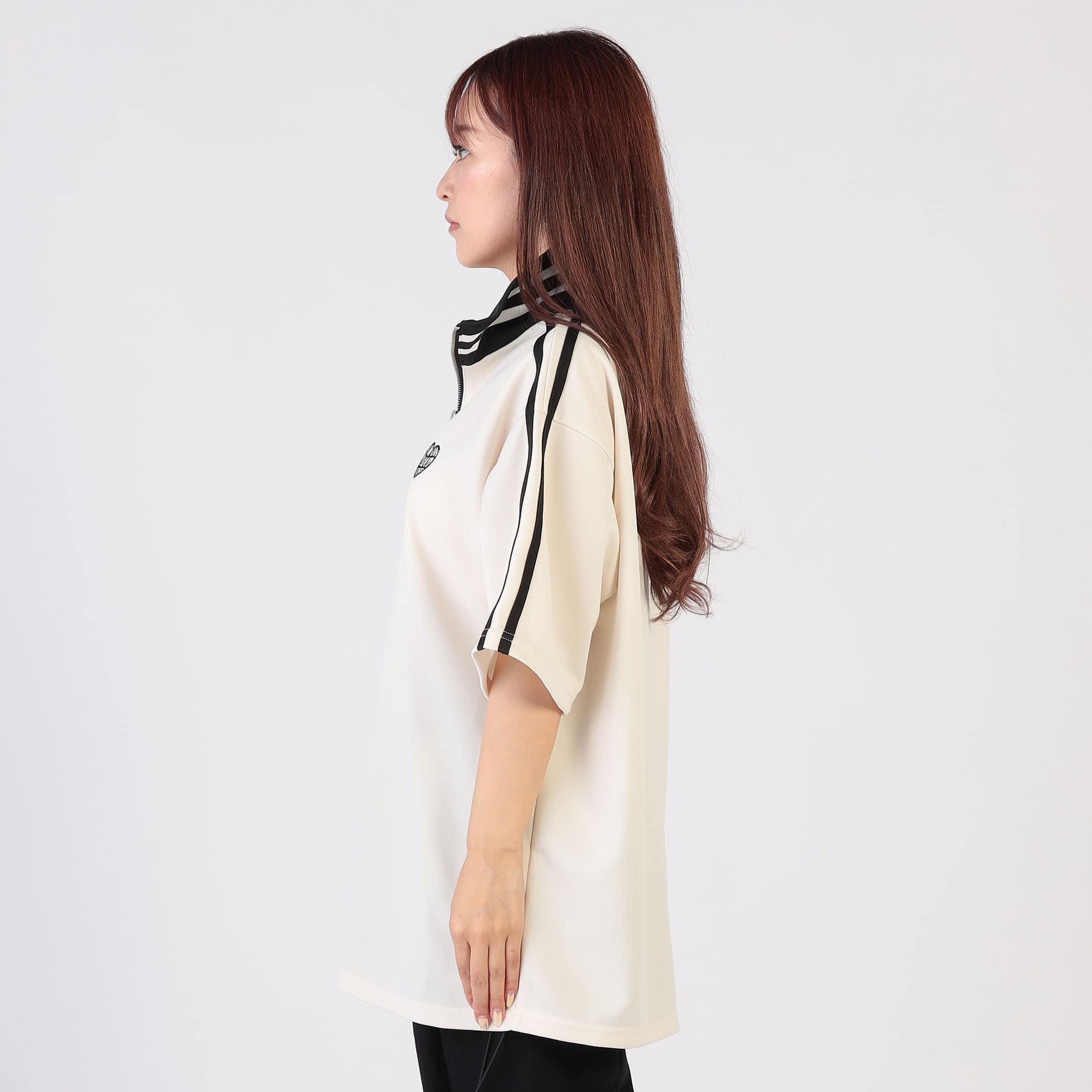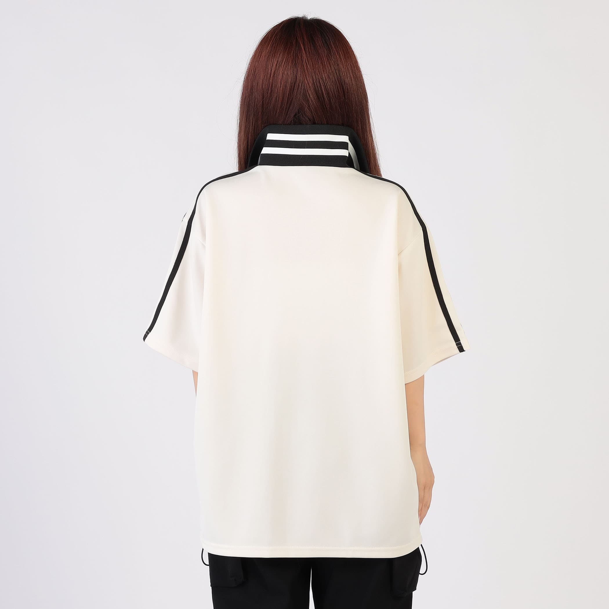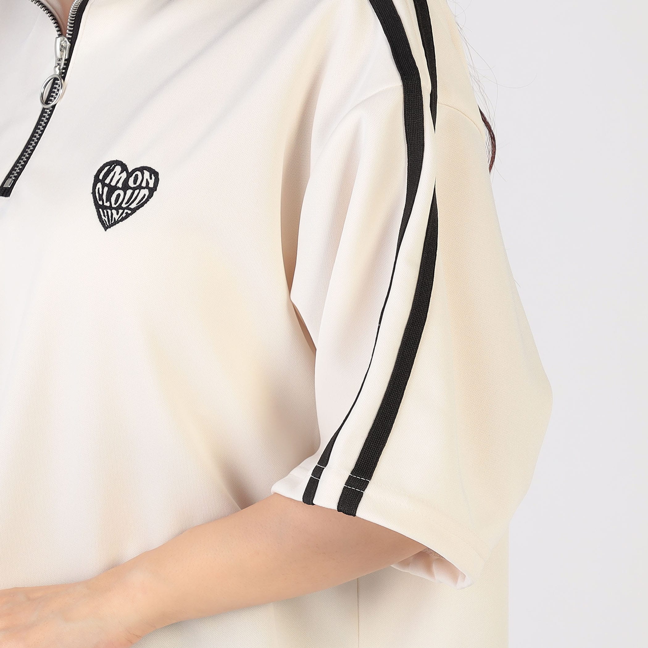 トレンドのトラックデザインにハーフジップデザインを取り入れたスポーティーPO。袖のライン使いと配色のワンポイント刺繍がアクセントに。さらっとしたジャージ素材なのでこの時期に活躍してくれる通気性良い有能アイテムです。