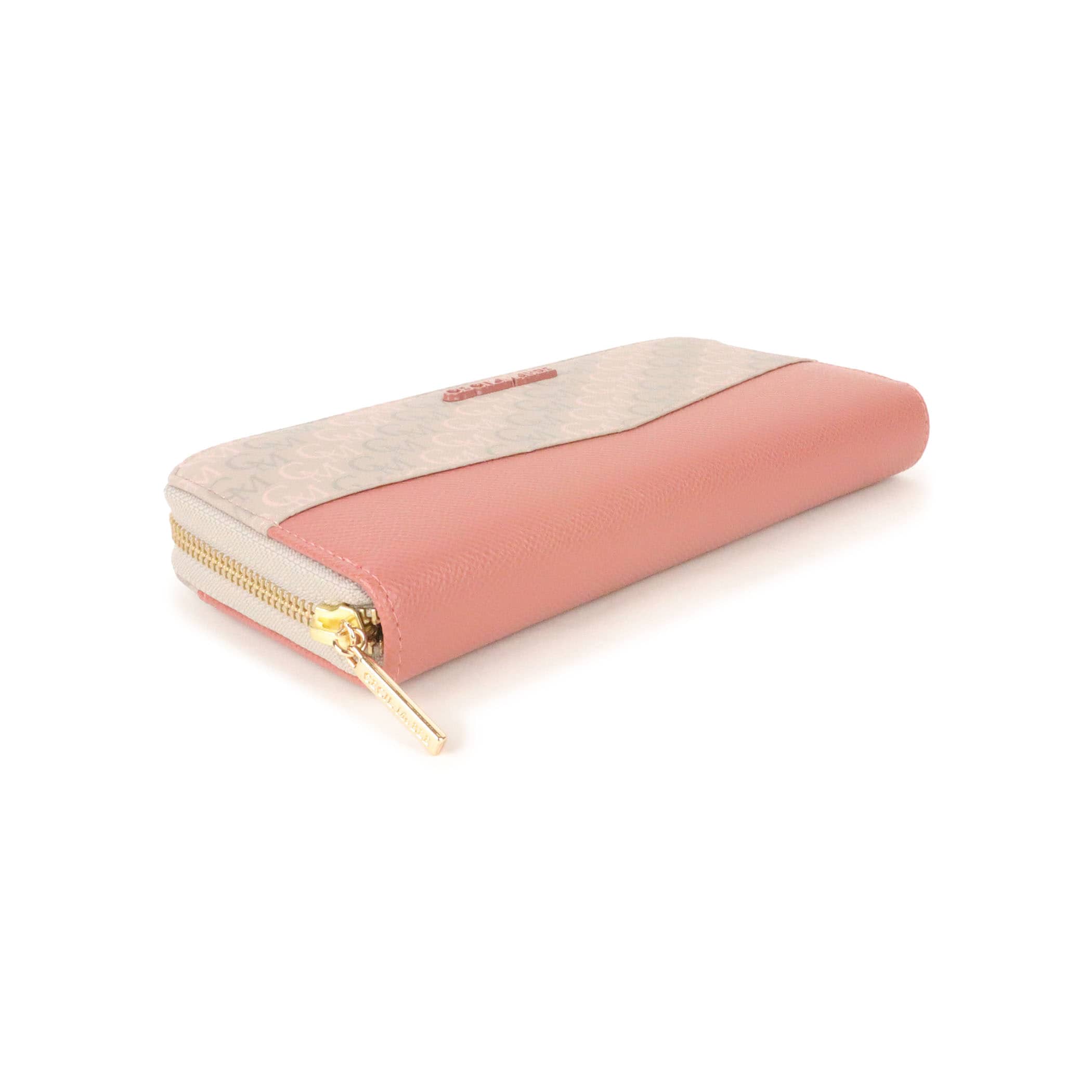 オリジナルのモノグラム柄をプリントしヴィンテージライクに仕上げたシリーズ。色を効かせたブローチがスポーティな雰囲気に。切り返しの配色がアクセントになっています。