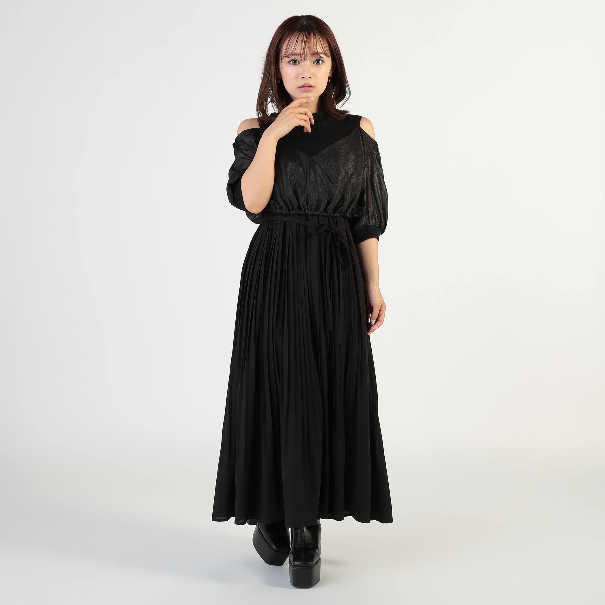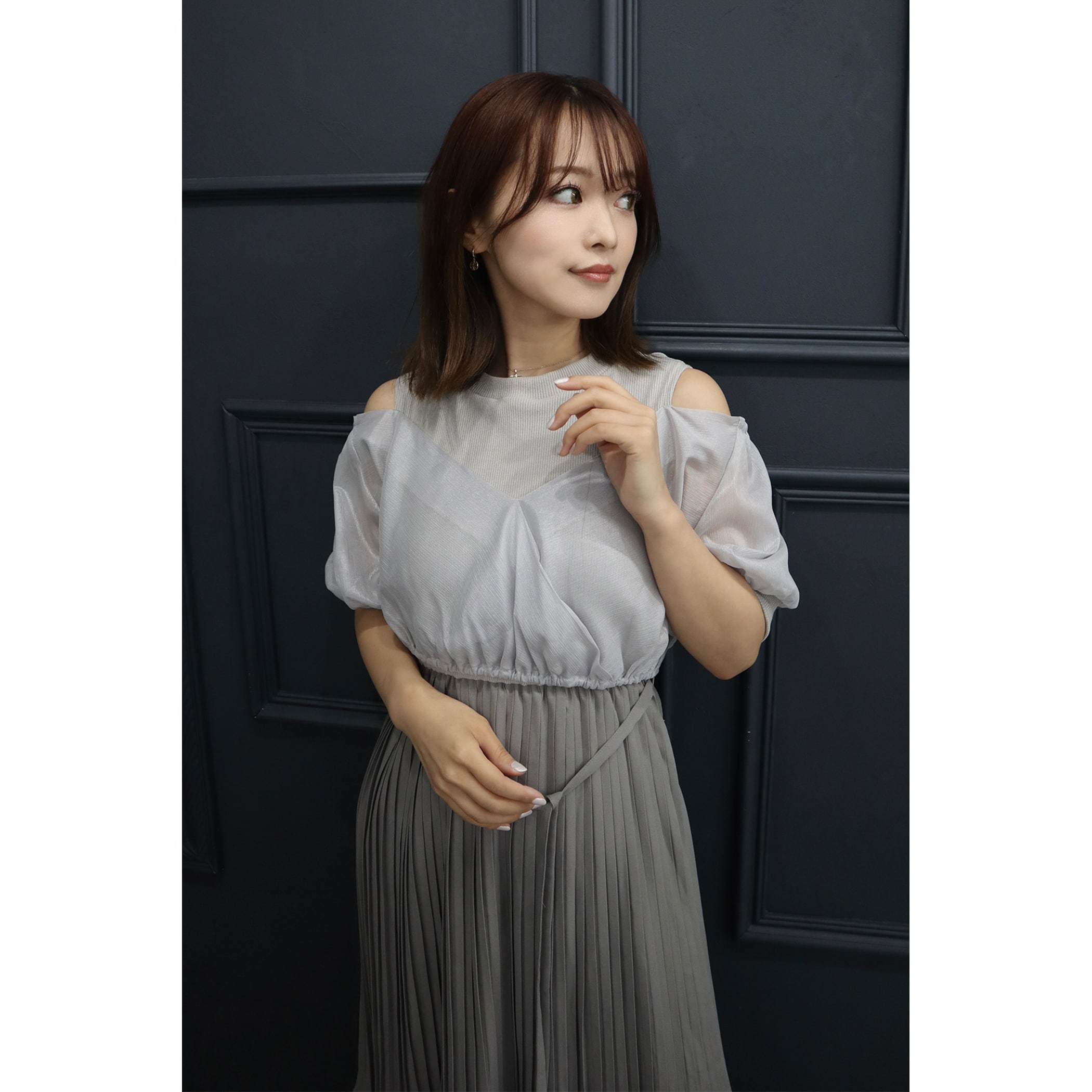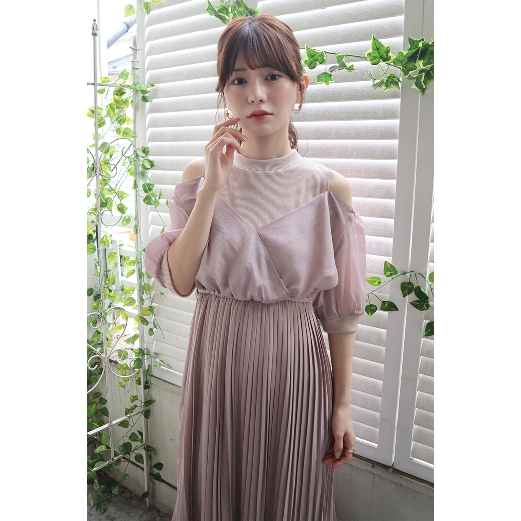 着心地のいいリブ素材にシアーなチュールをドッキングしたワンピース。スカート部分はプリーツを入れ、動くたびに揺れるフェミニンなシルエットを演出。1枚でスタイリングが完成する便利な1枚です◎
