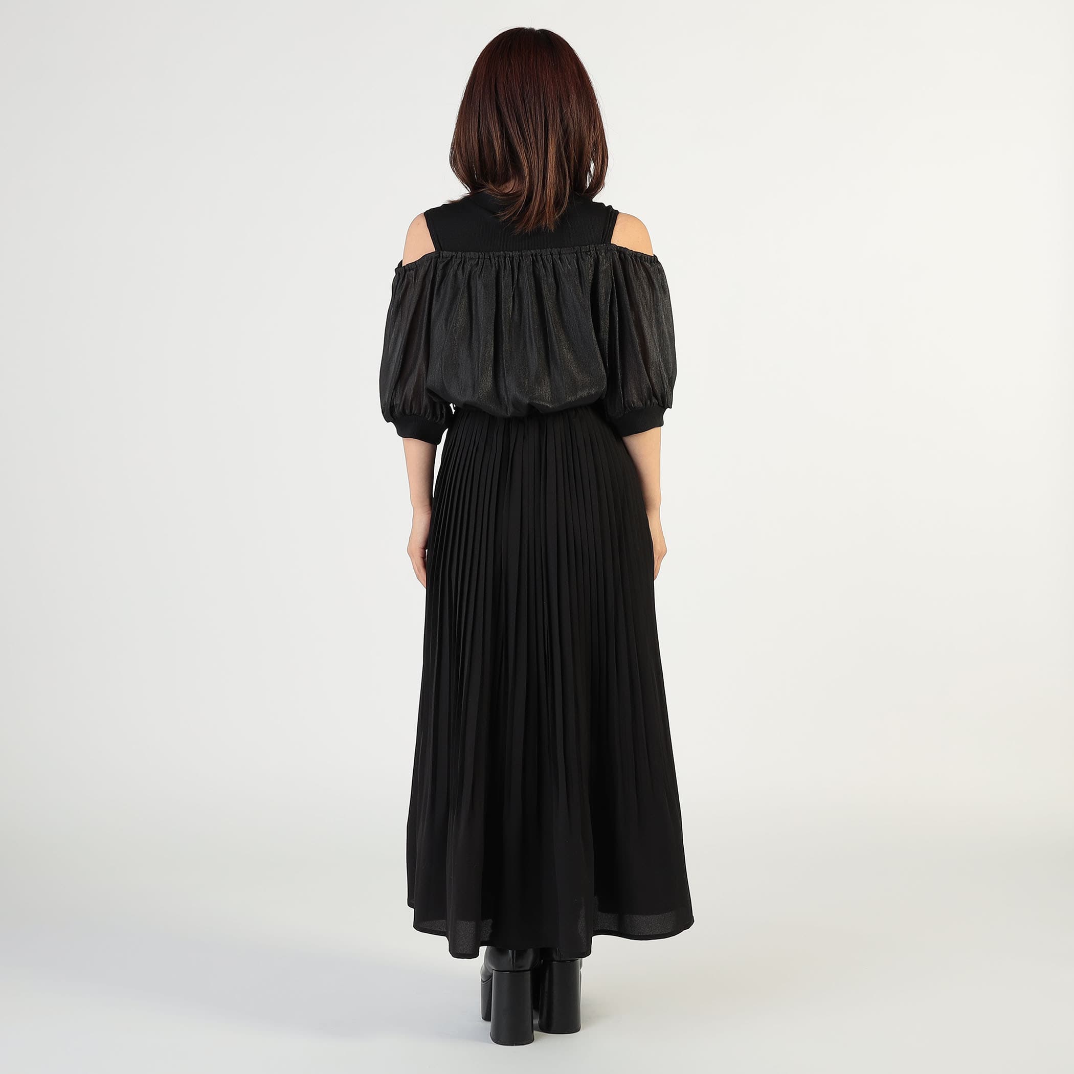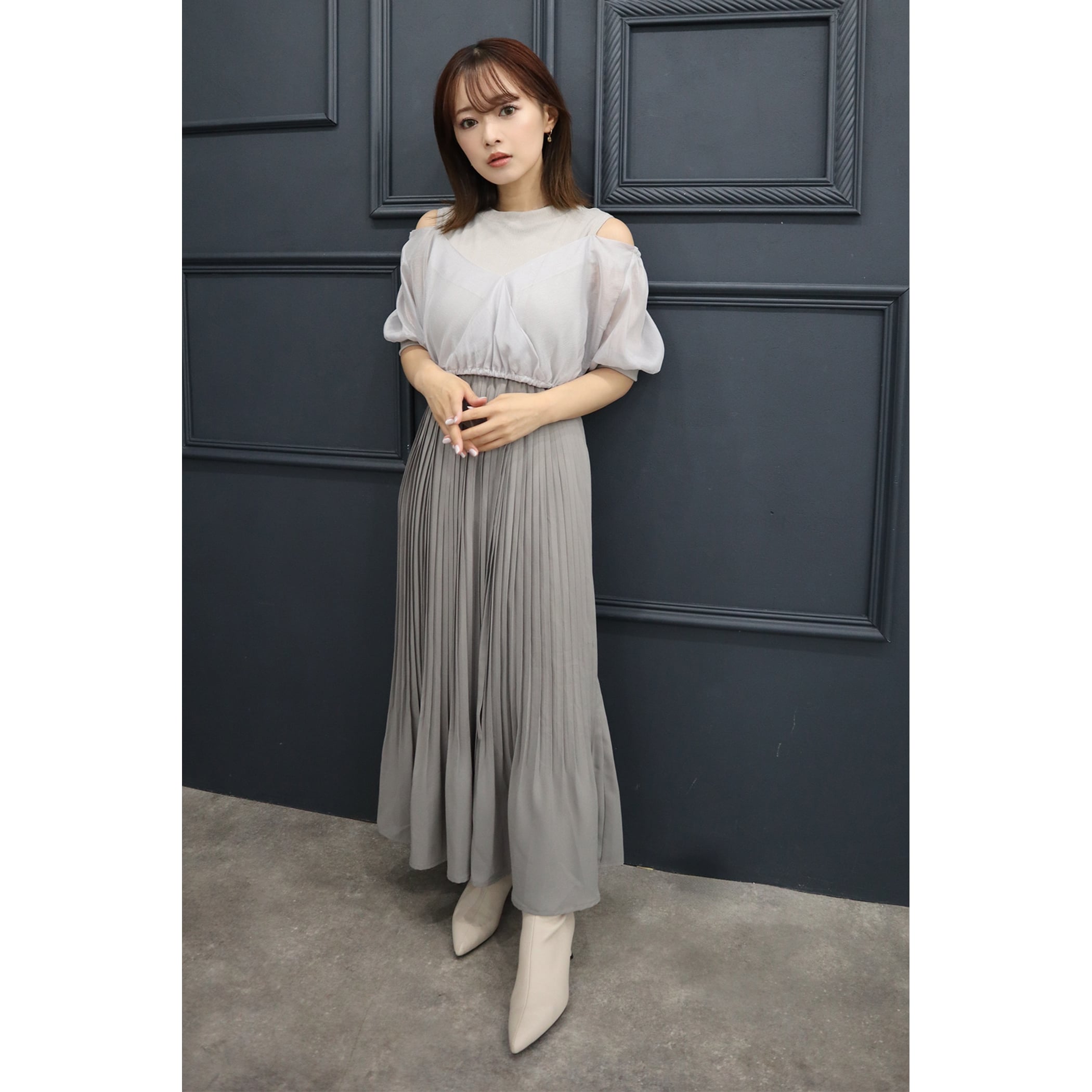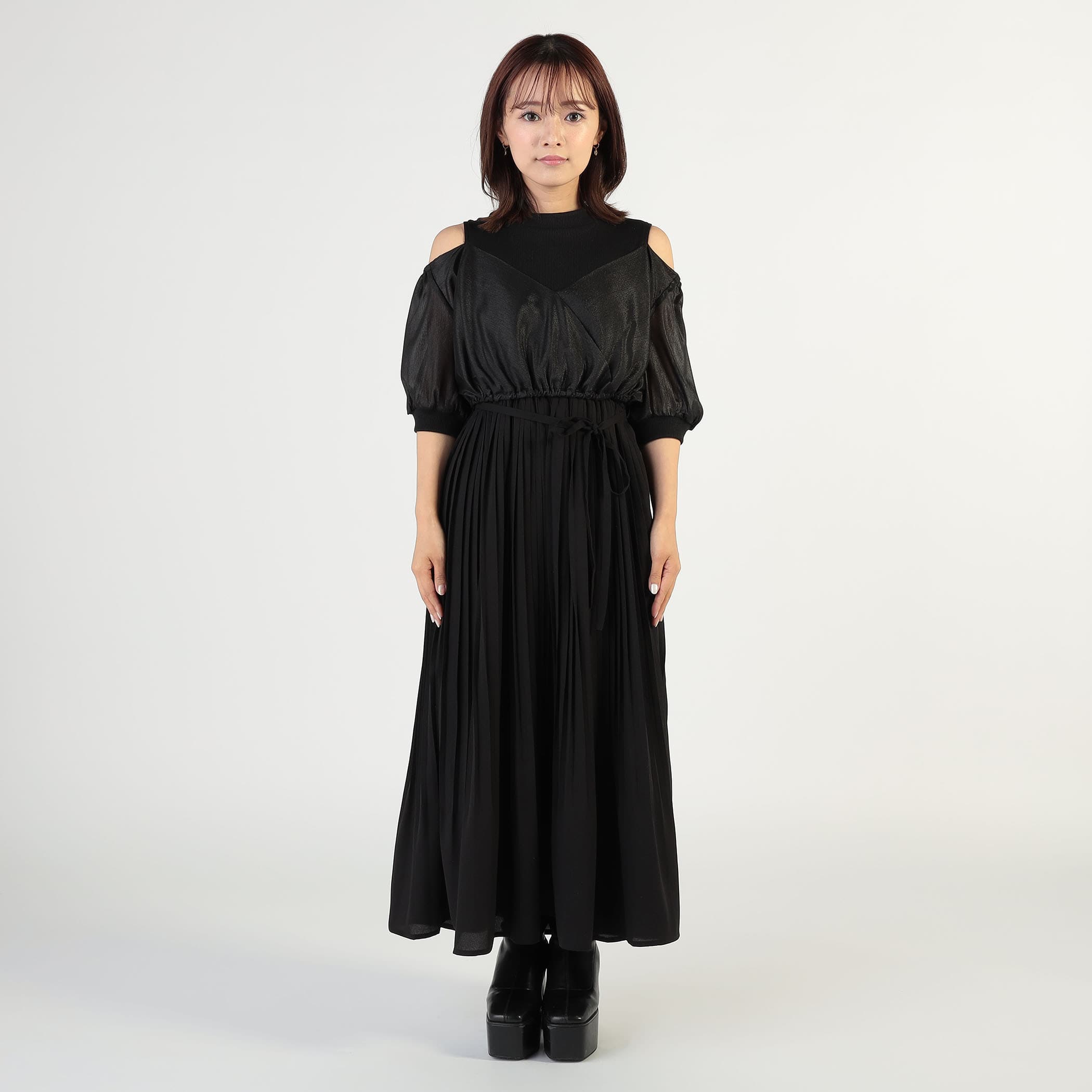 着心地のいいリブ素材にシアーなチュールをドッキングしたワンピース。スカート部分はプリーツを入れ、動くたびに揺れるフェミニンなシルエットを演出。1枚でスタイリングが完成する便利な1枚です◎