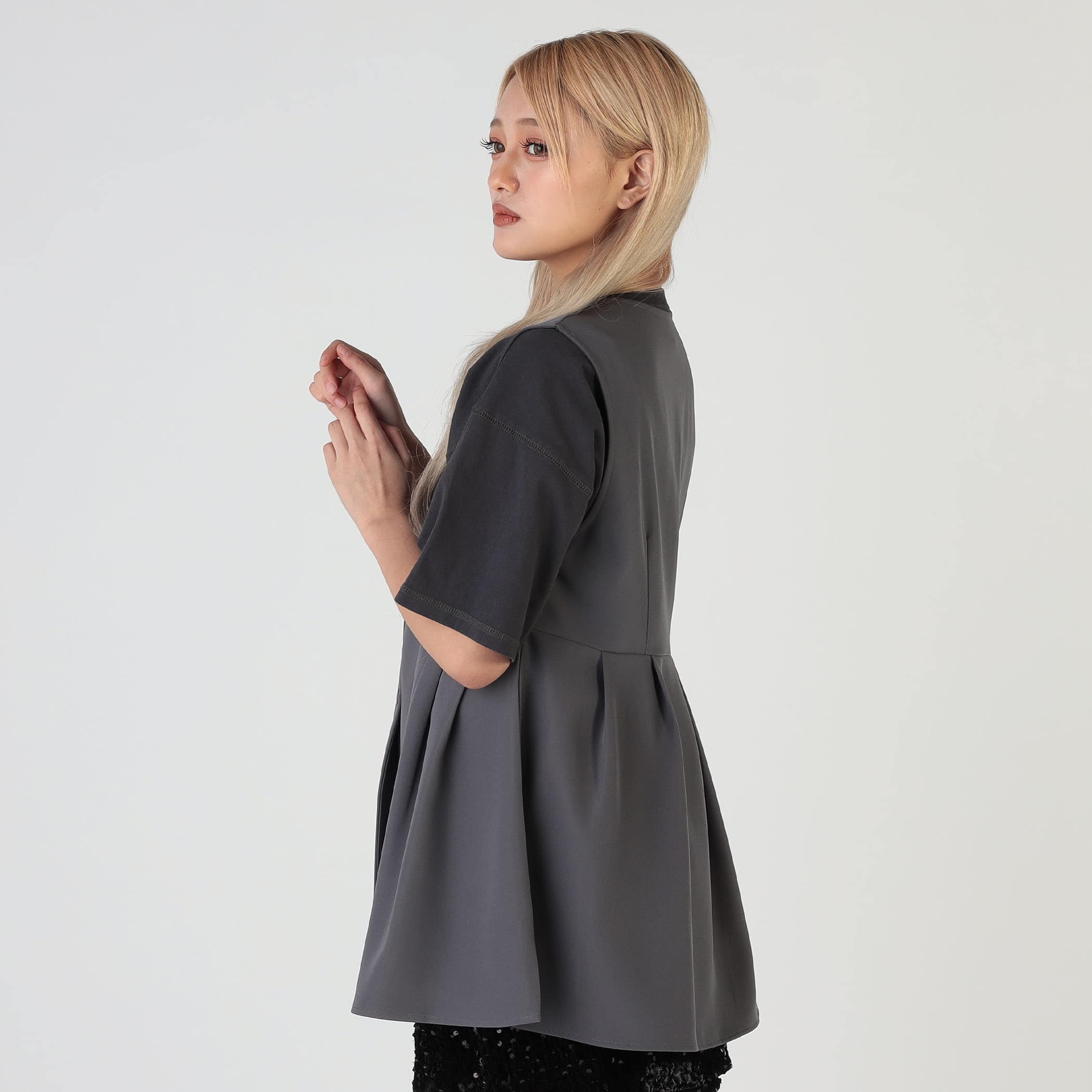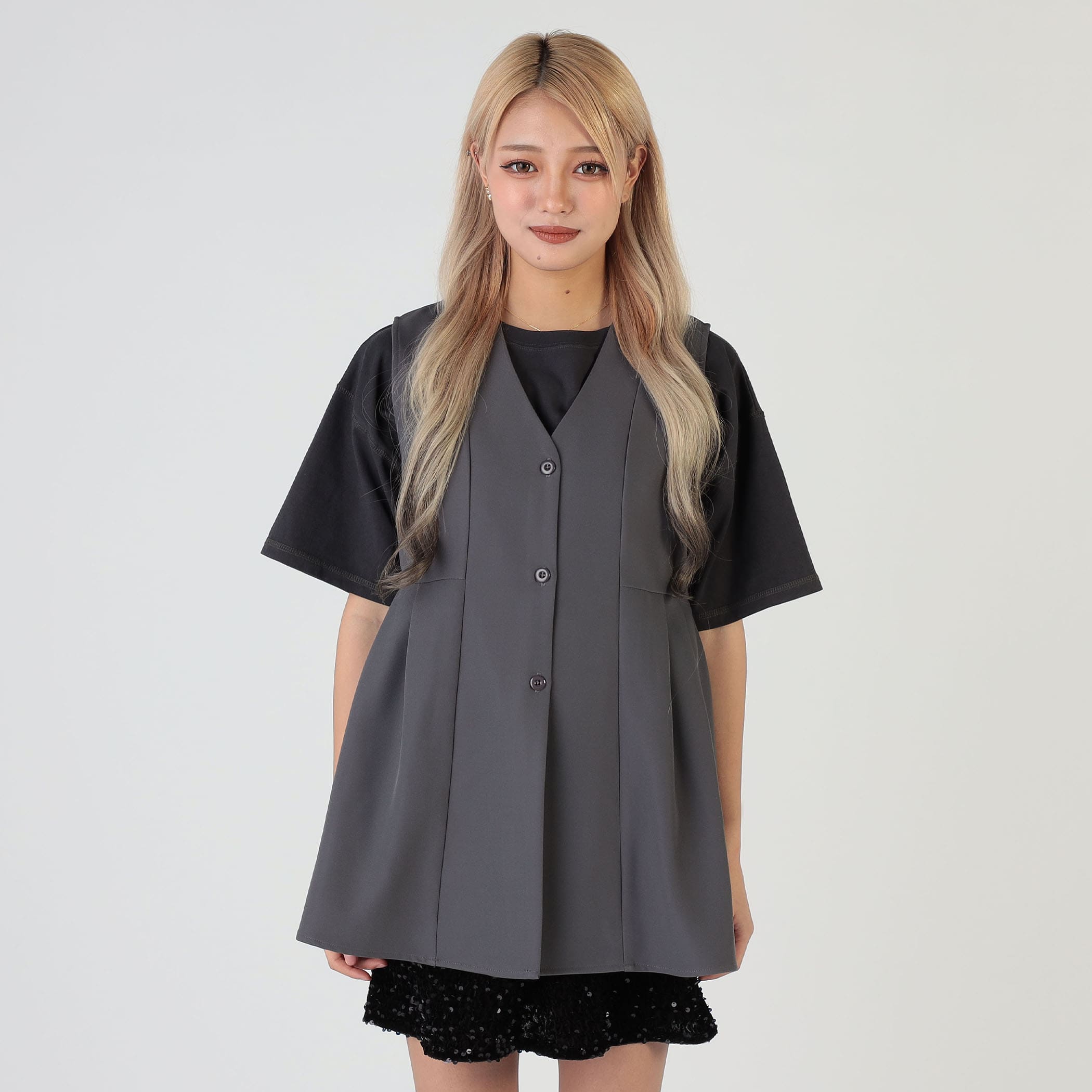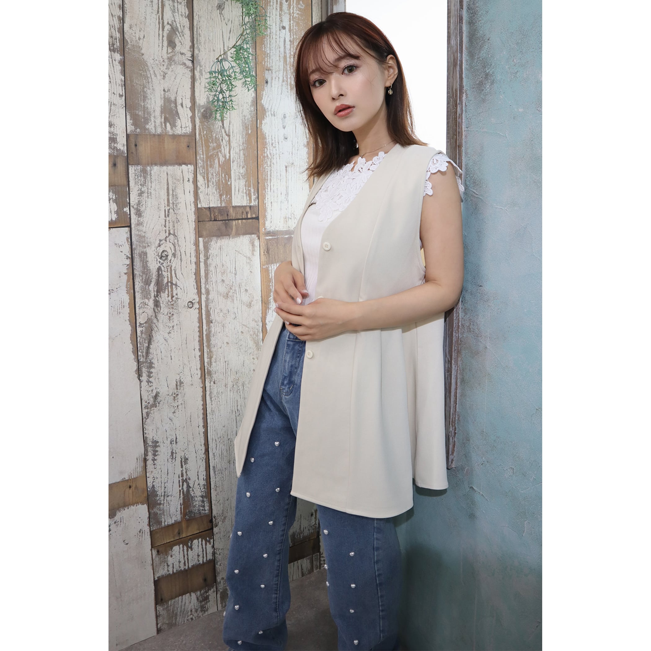 オンオフ問わず幅広いシーンで活躍してくれるアイテム。ペプラム仕様のふわっとしたデザインが大人フェミニンな印象に。デニムからスラックスまであらゆるボトムスと相性が抜群なので、1枚持っていると重宝します。インナーとボトムスをワントーンに合わせて、ジレをプラスすればメリハリのあるお出かけ大人スタイルに。インナーは、Tシャツやシアートップスから、タンクやキャミで肌魅せしたスタイリングもオススメ◎前ボタンを全て開けてラフに羽織っていただく、ジレスタイリングもワンランク上の着こなしが叶います!