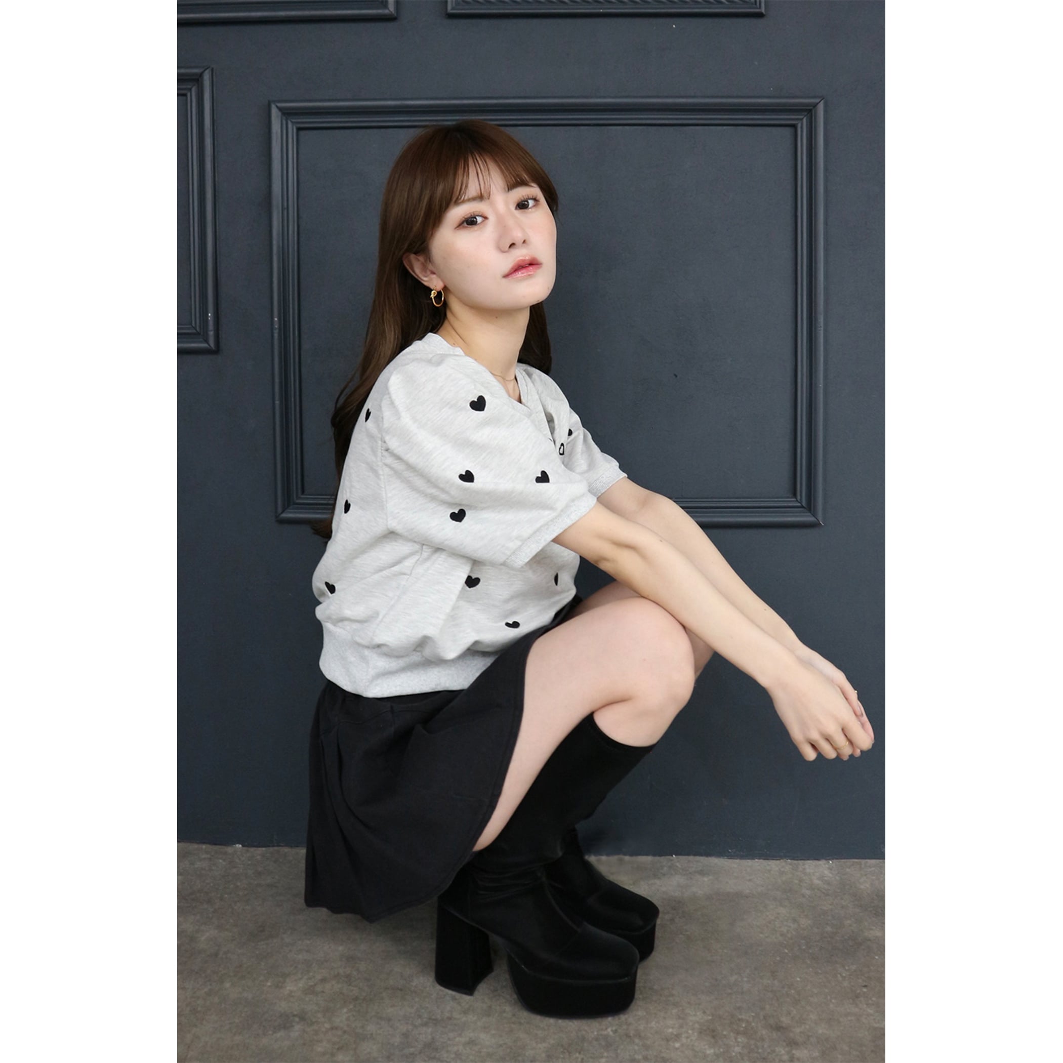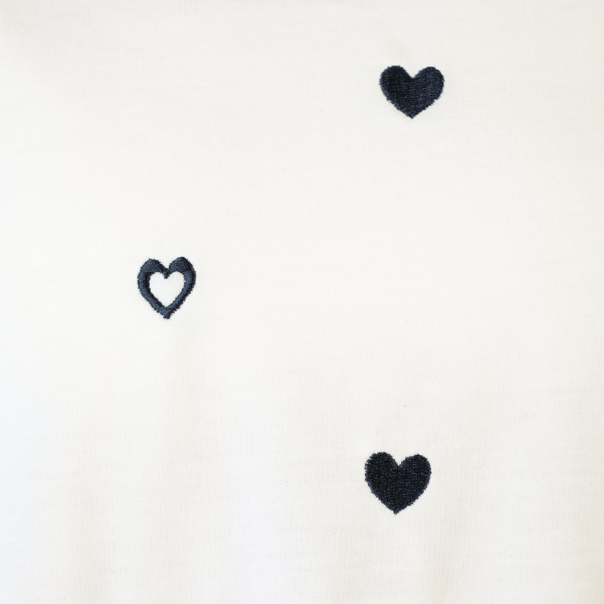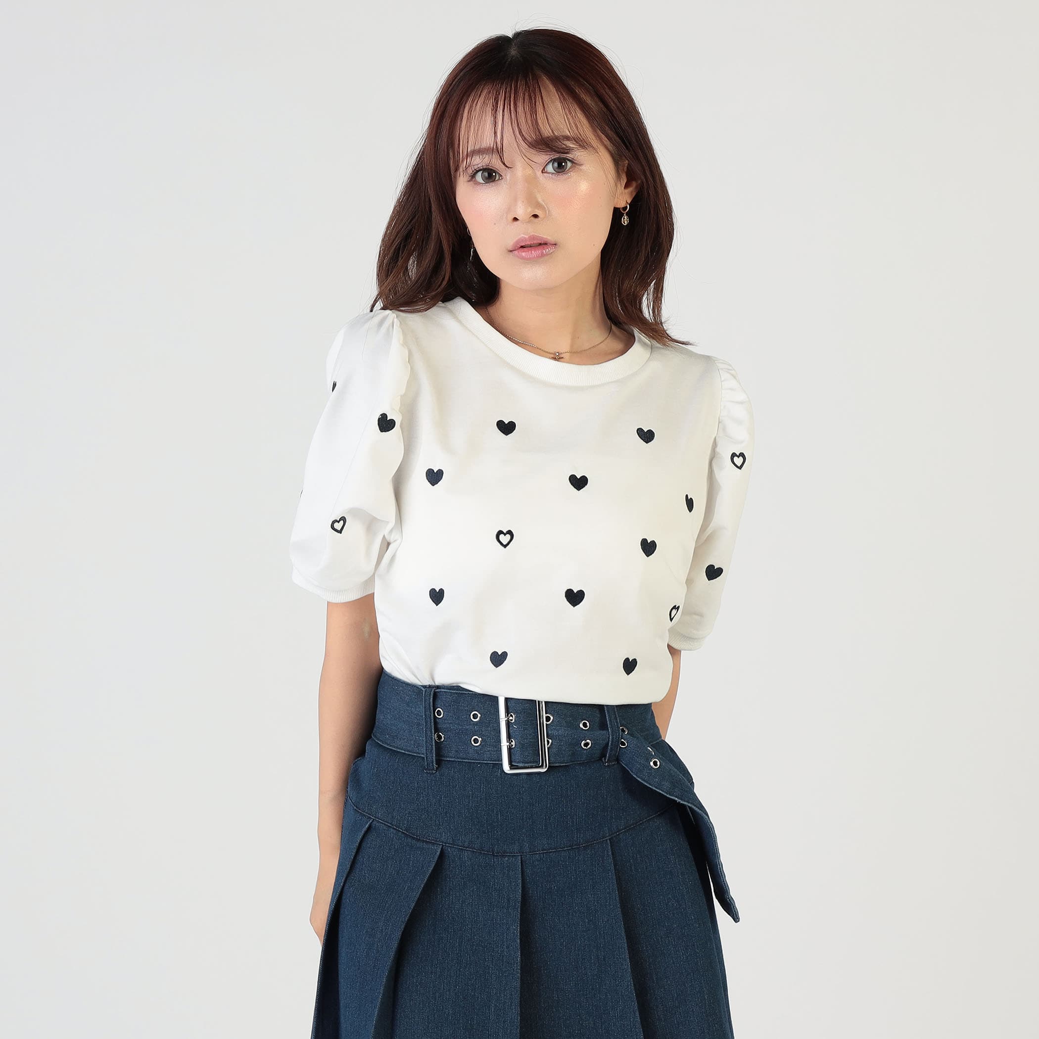 T/Cミニ裏毛 ハート総柄刺繍半袖トップス