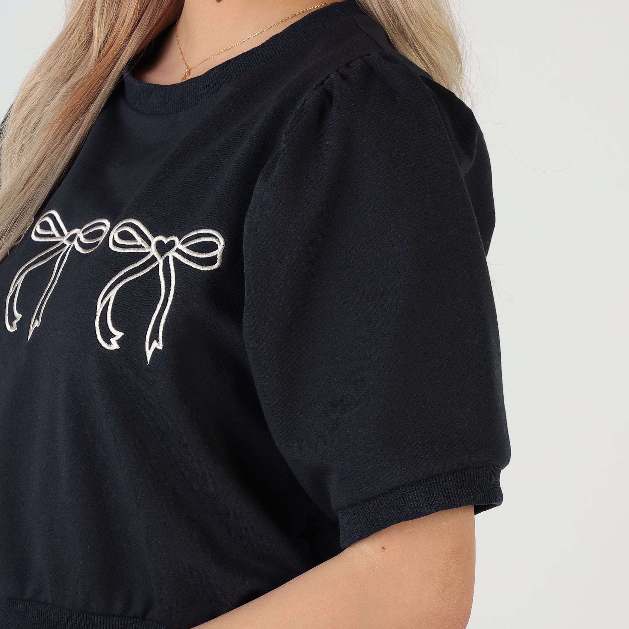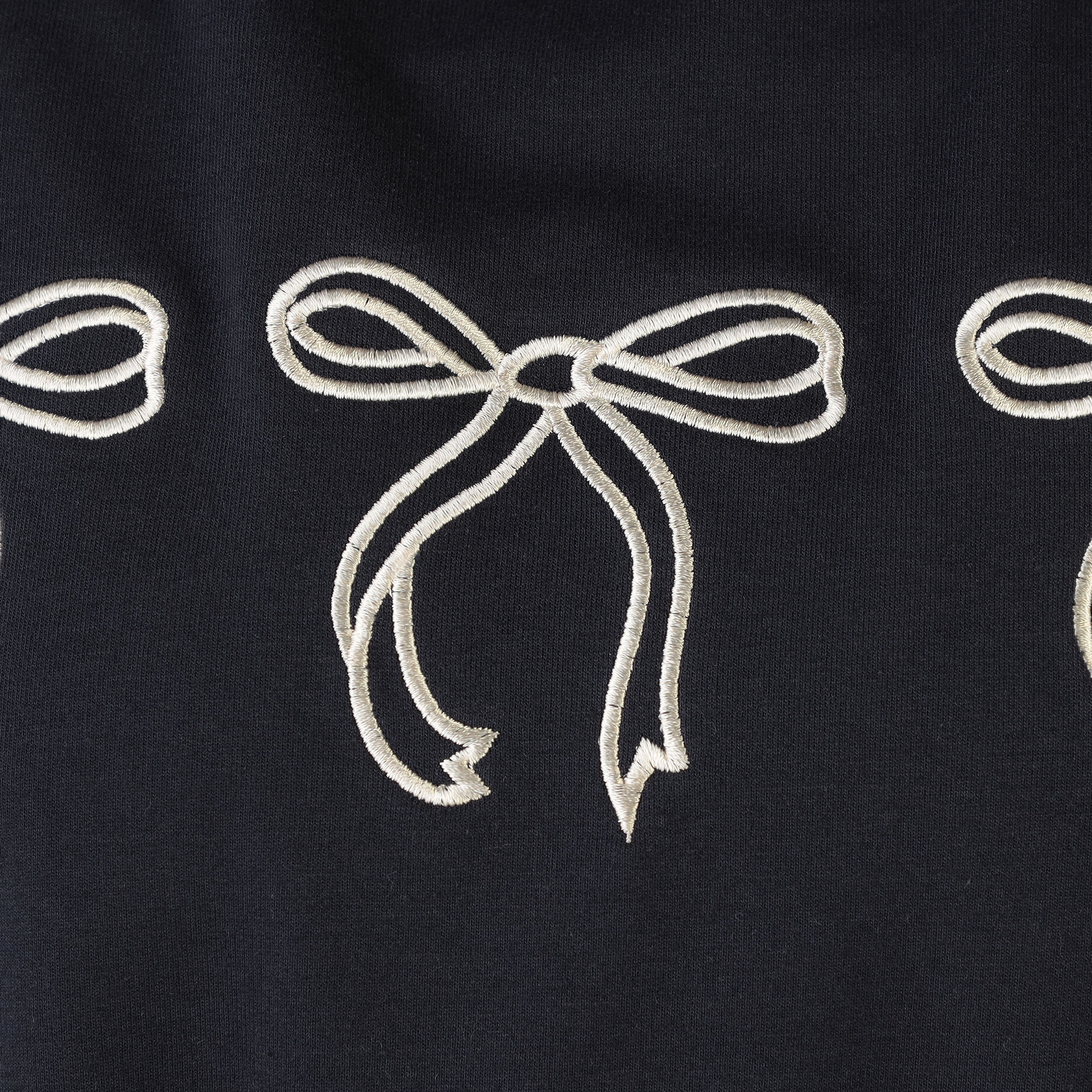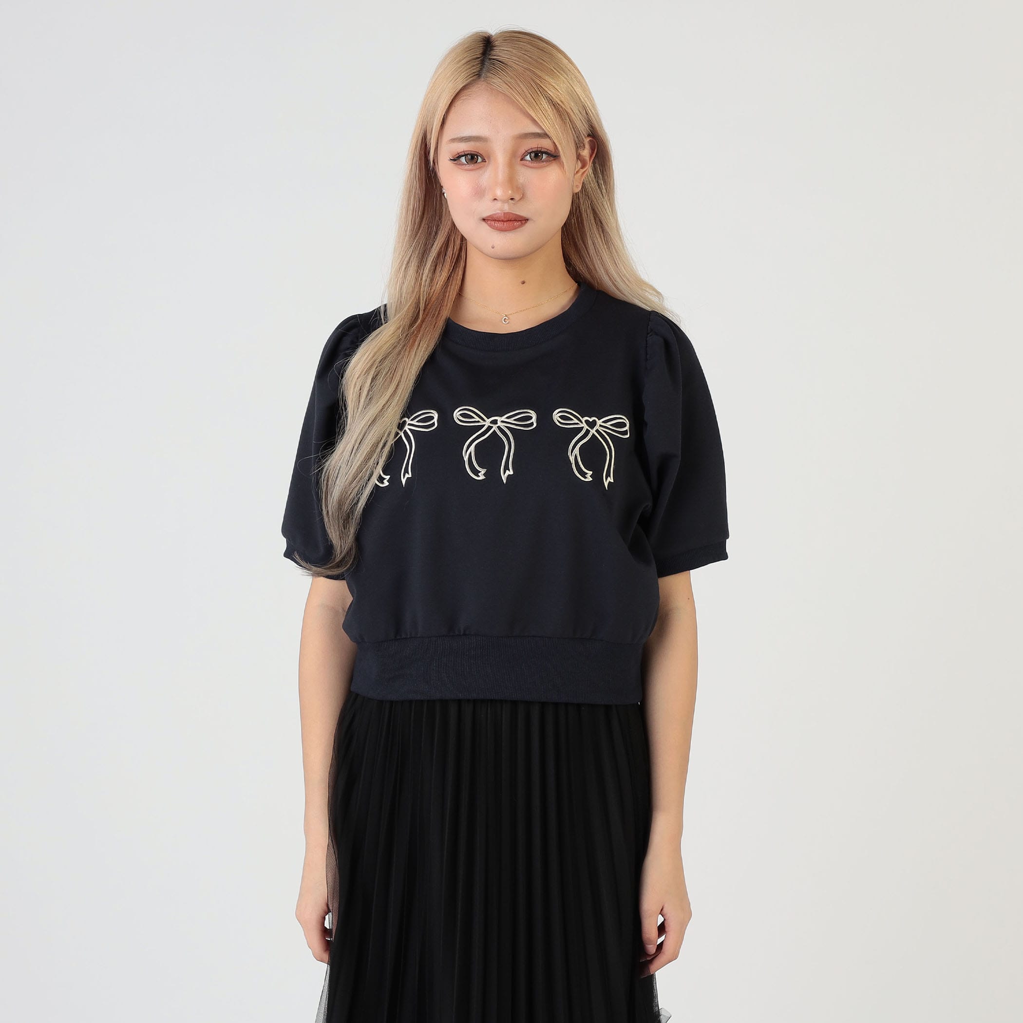 T/Cミニ裏毛 リボン刺繍半袖トップス