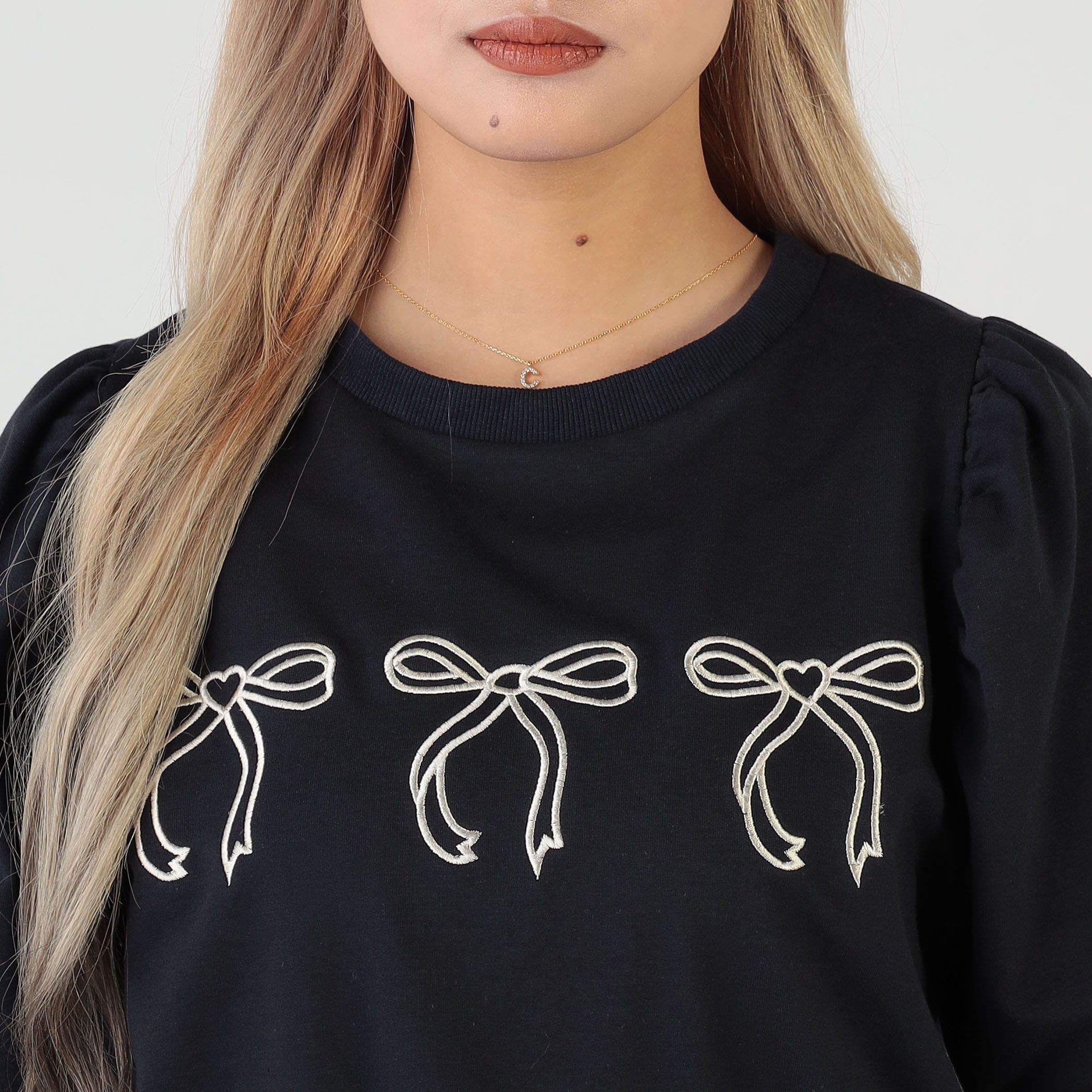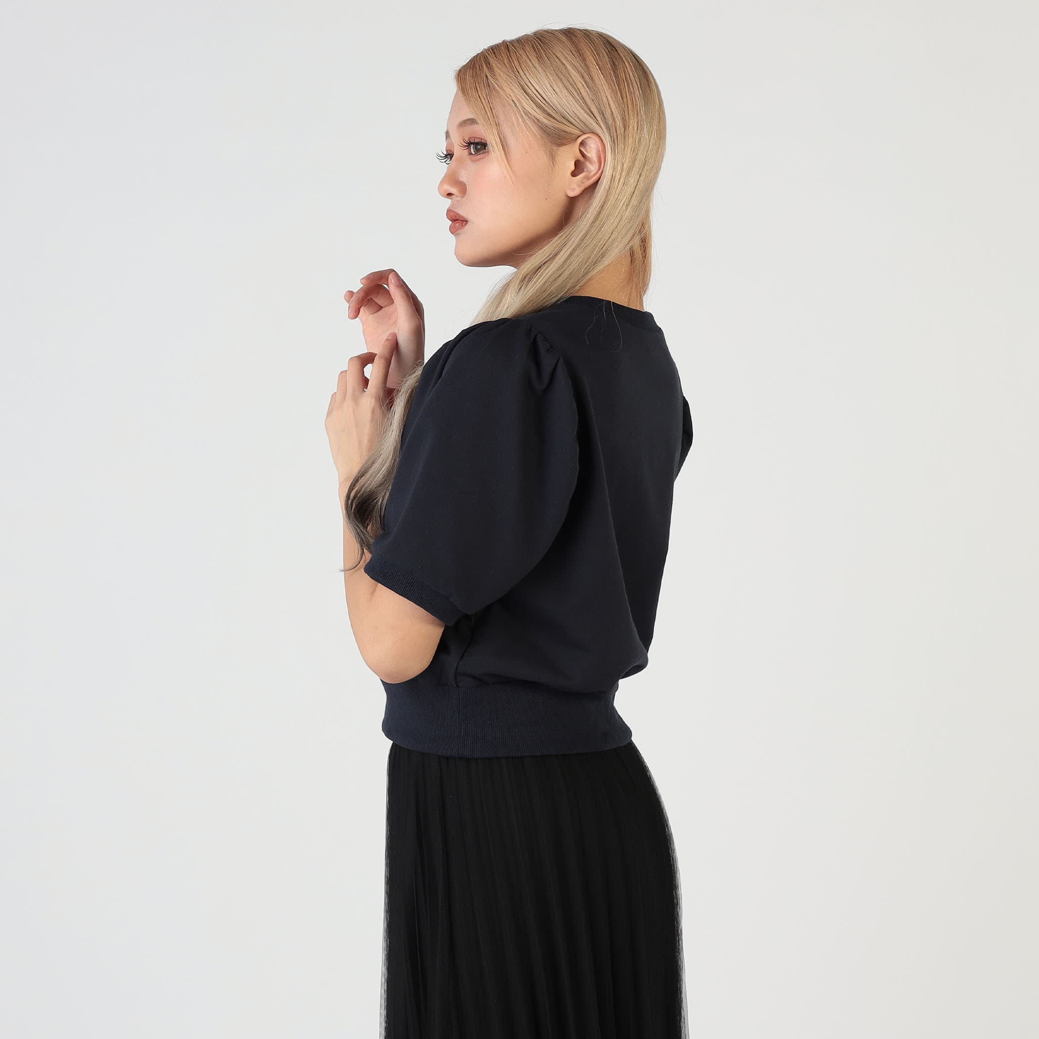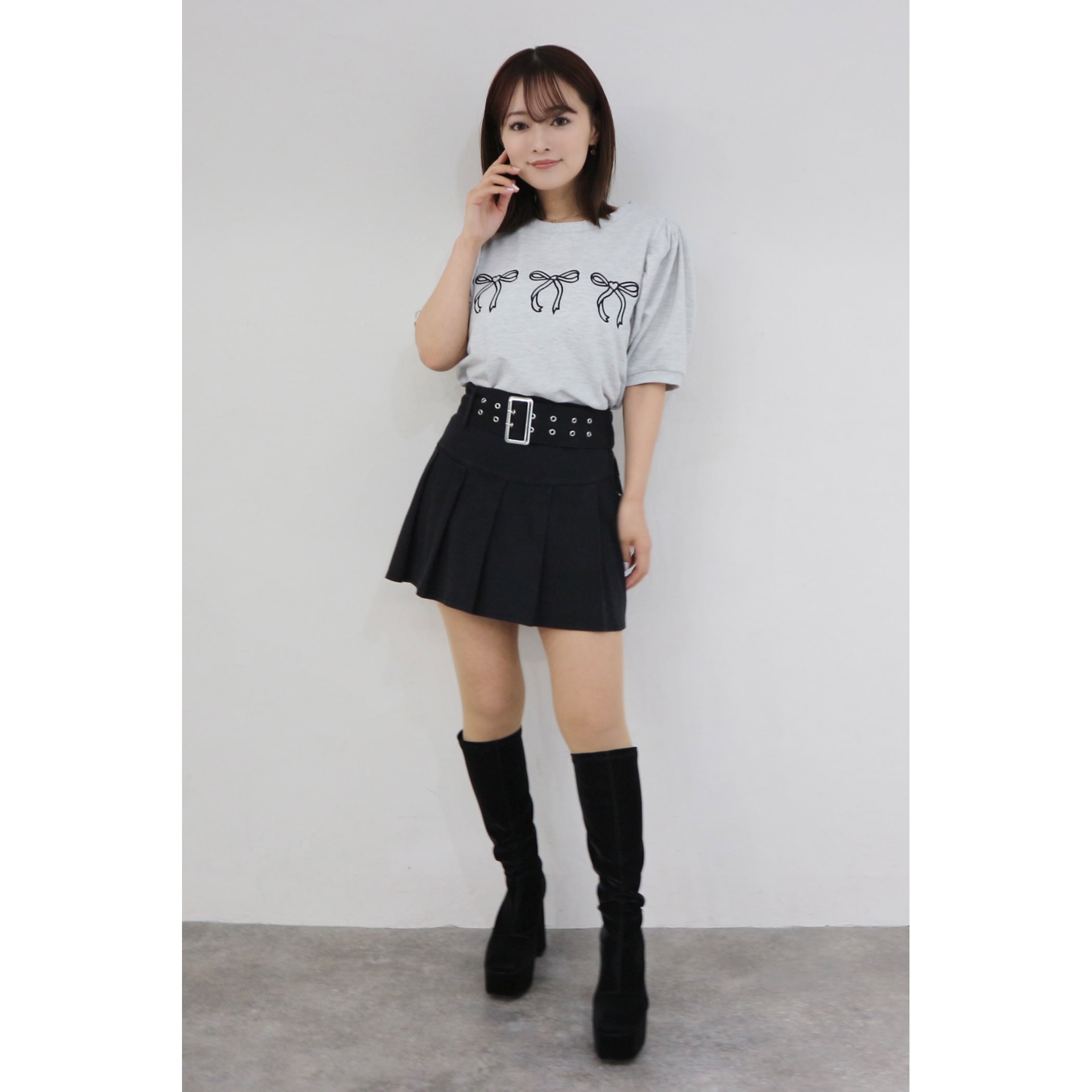 T/Cミニ裏毛 リボン刺繍半袖トップス
